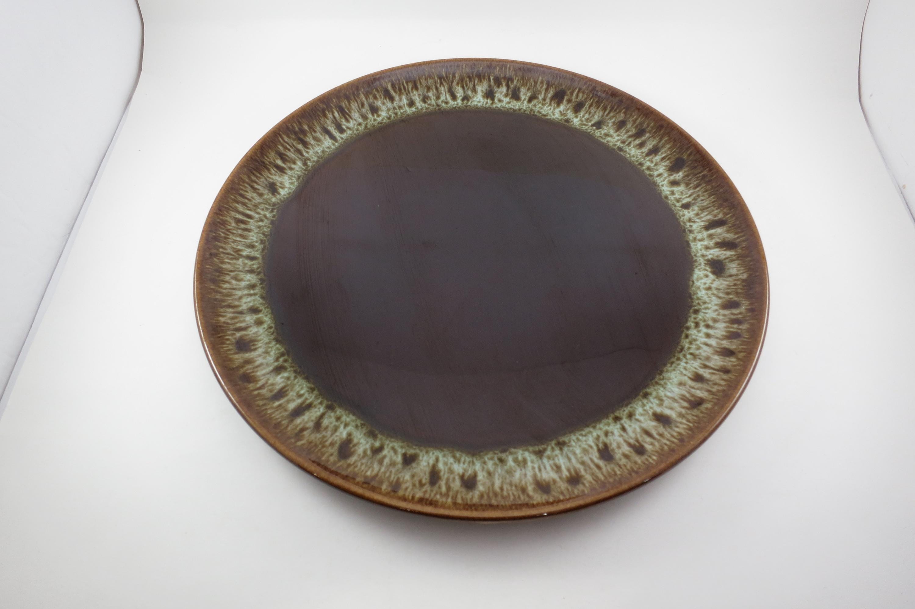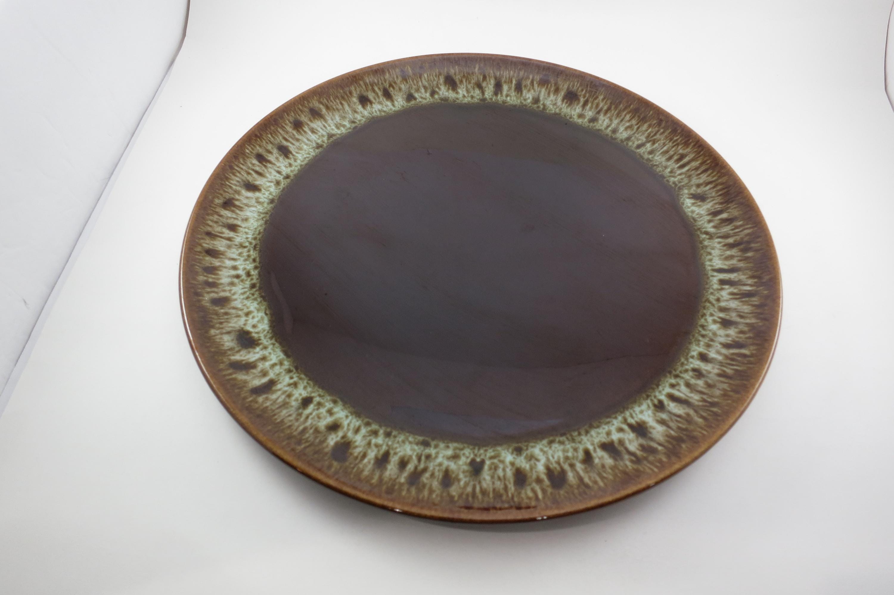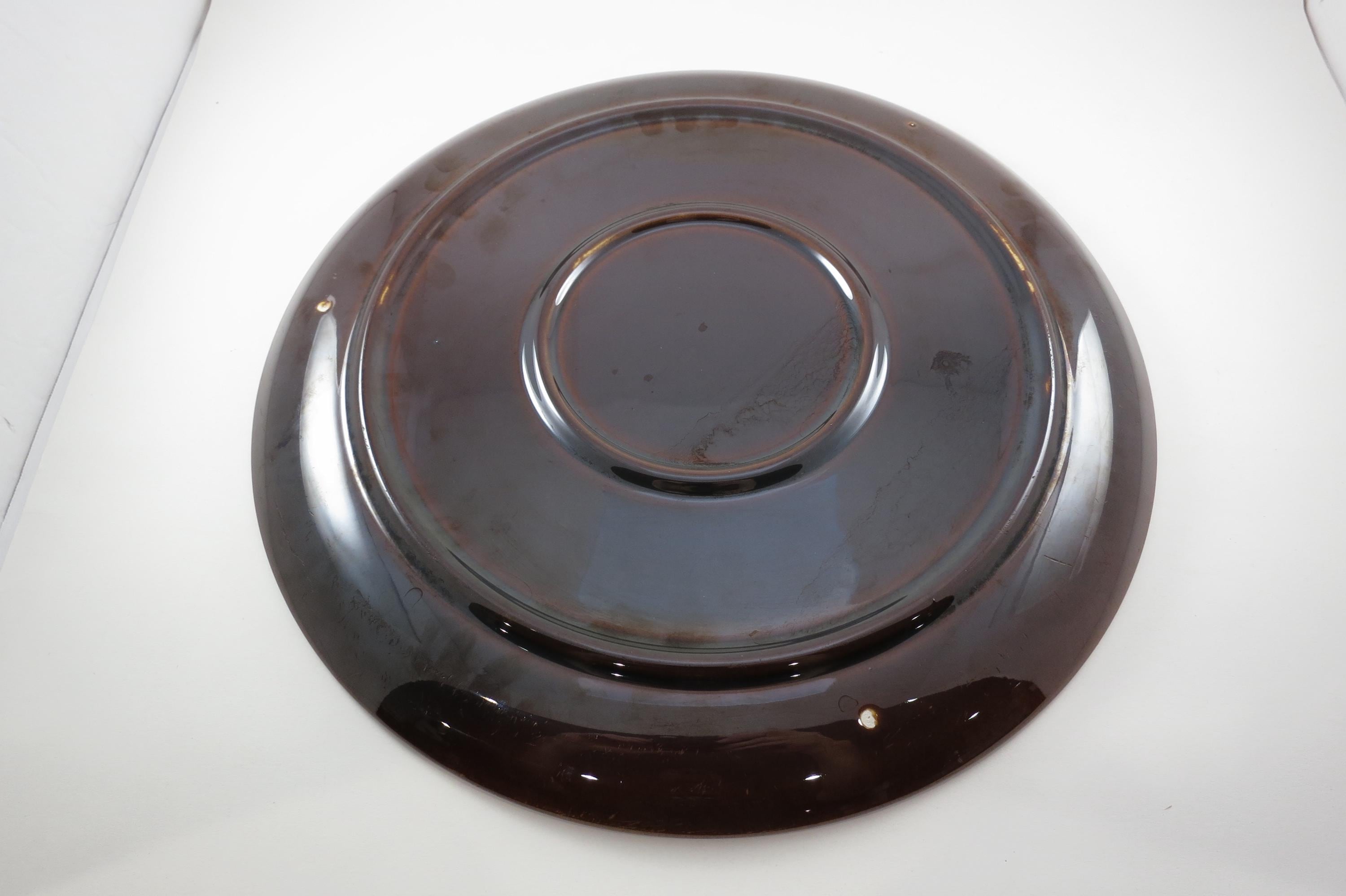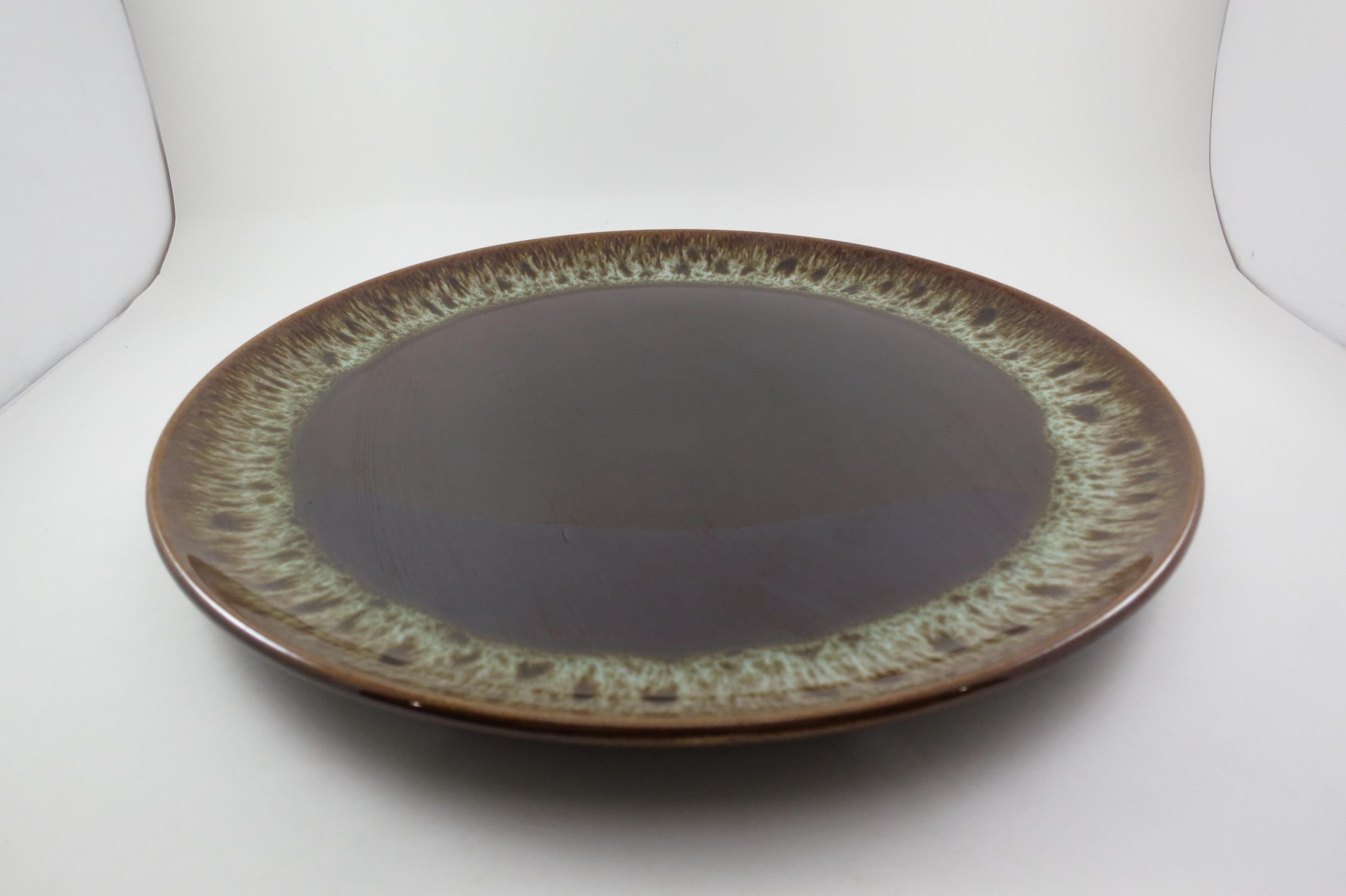Large 13 1/2 Inch Round Brown Drip Pottery Serving Platter.