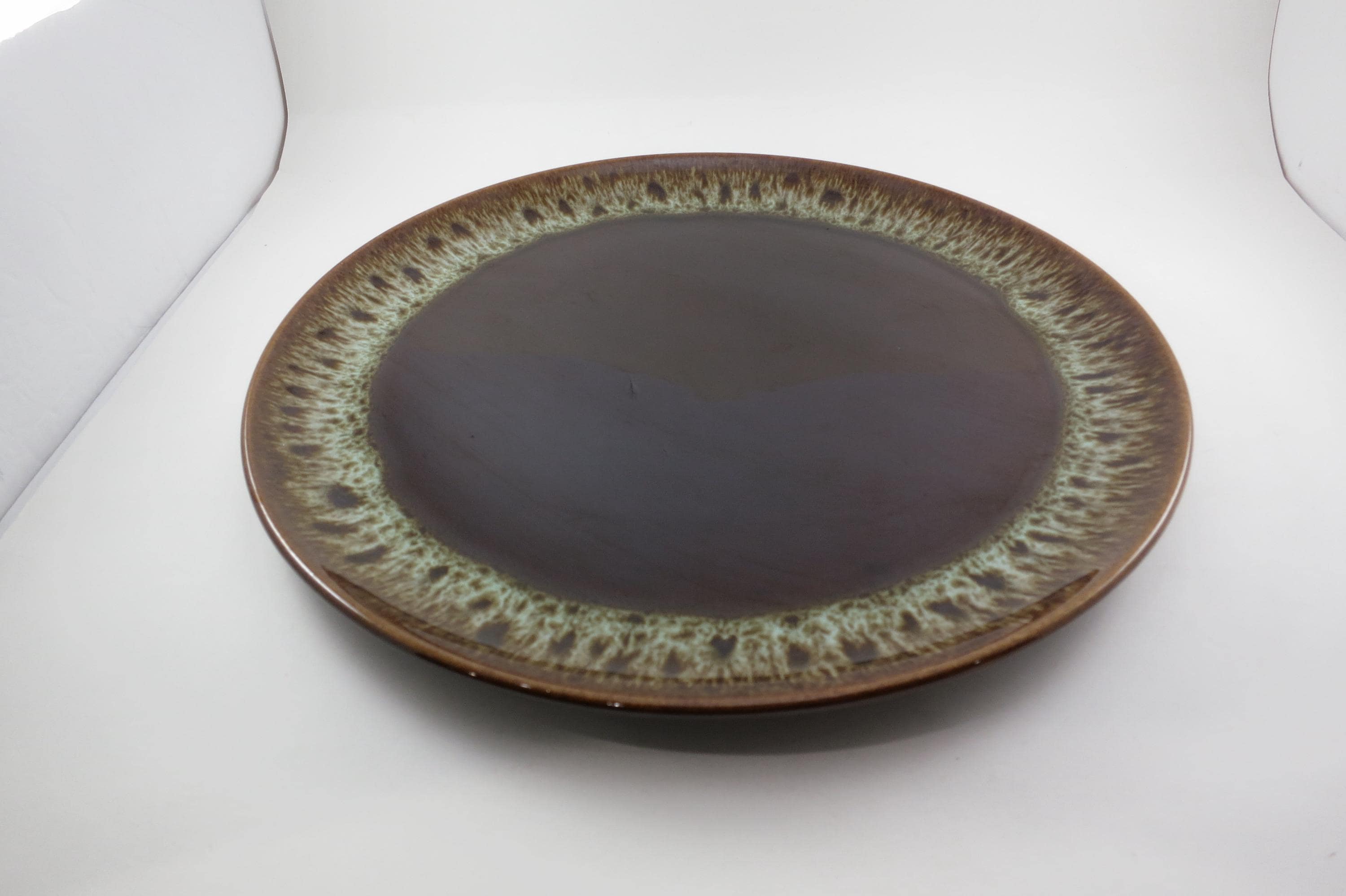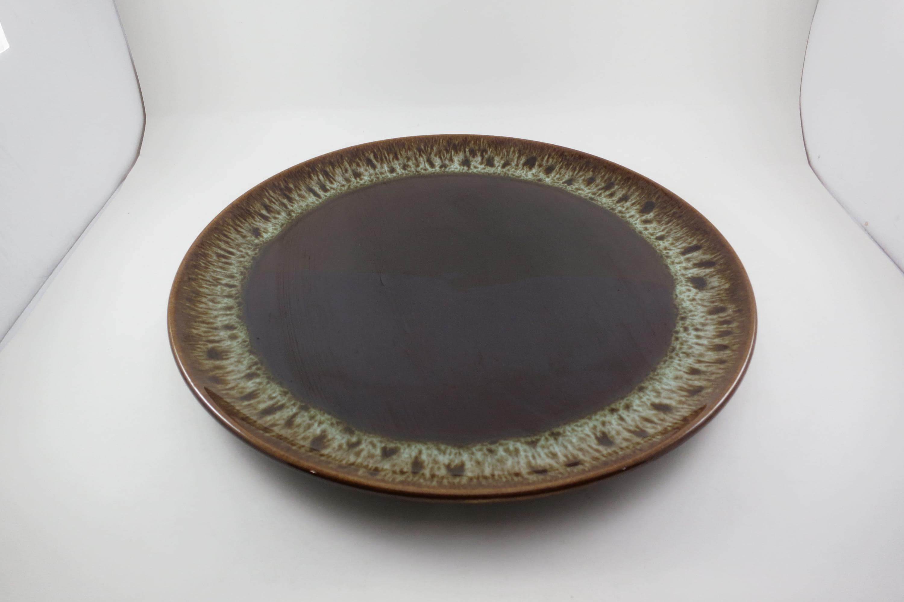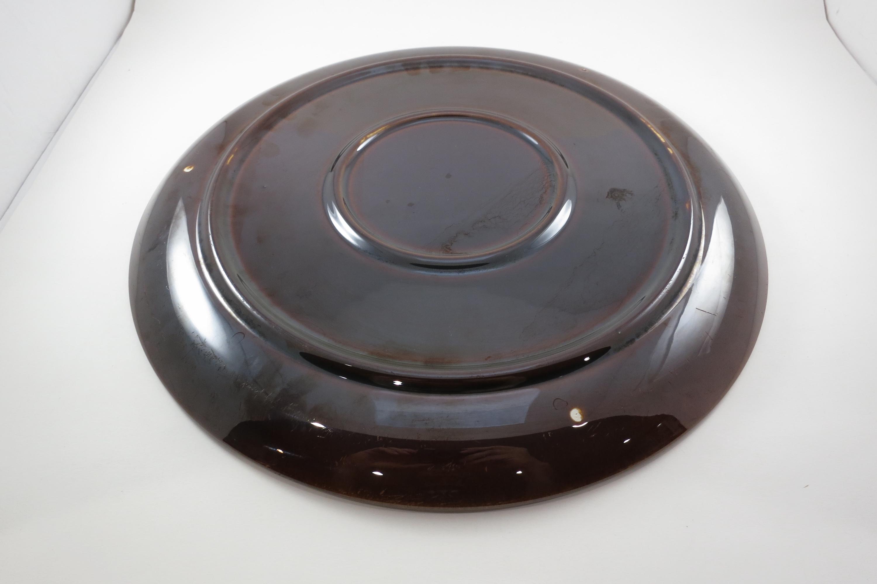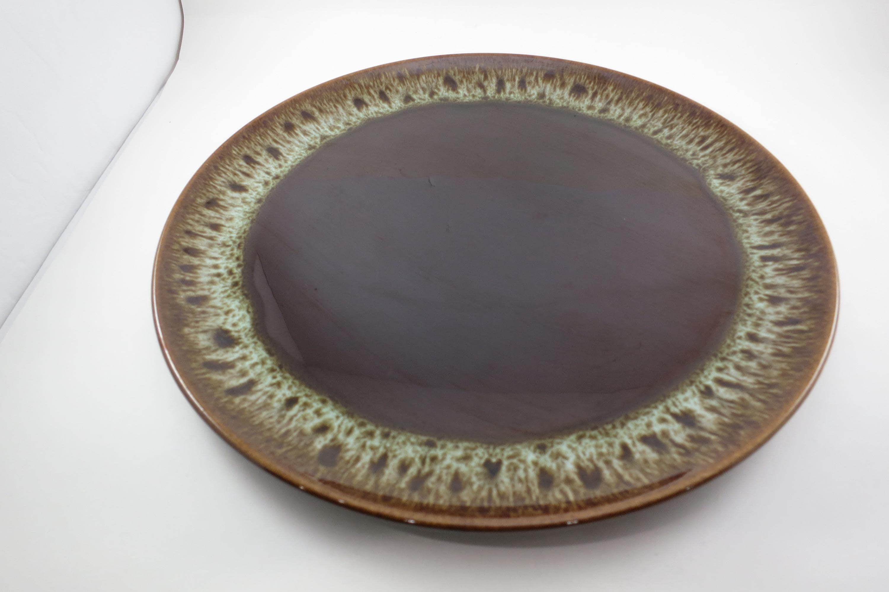 Large 13 1/2 Inch Round Brown Drip Pottery Serving Platter.