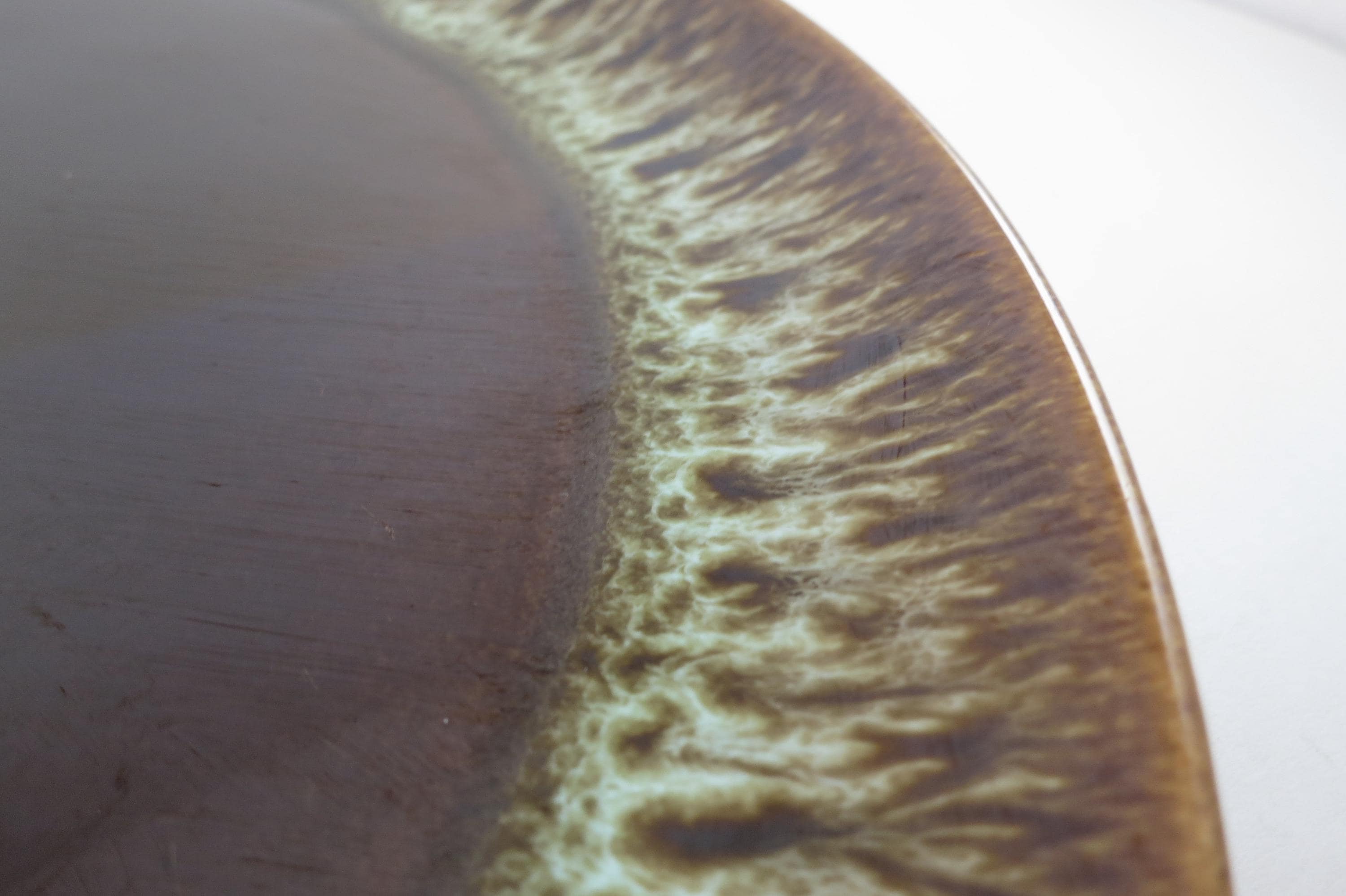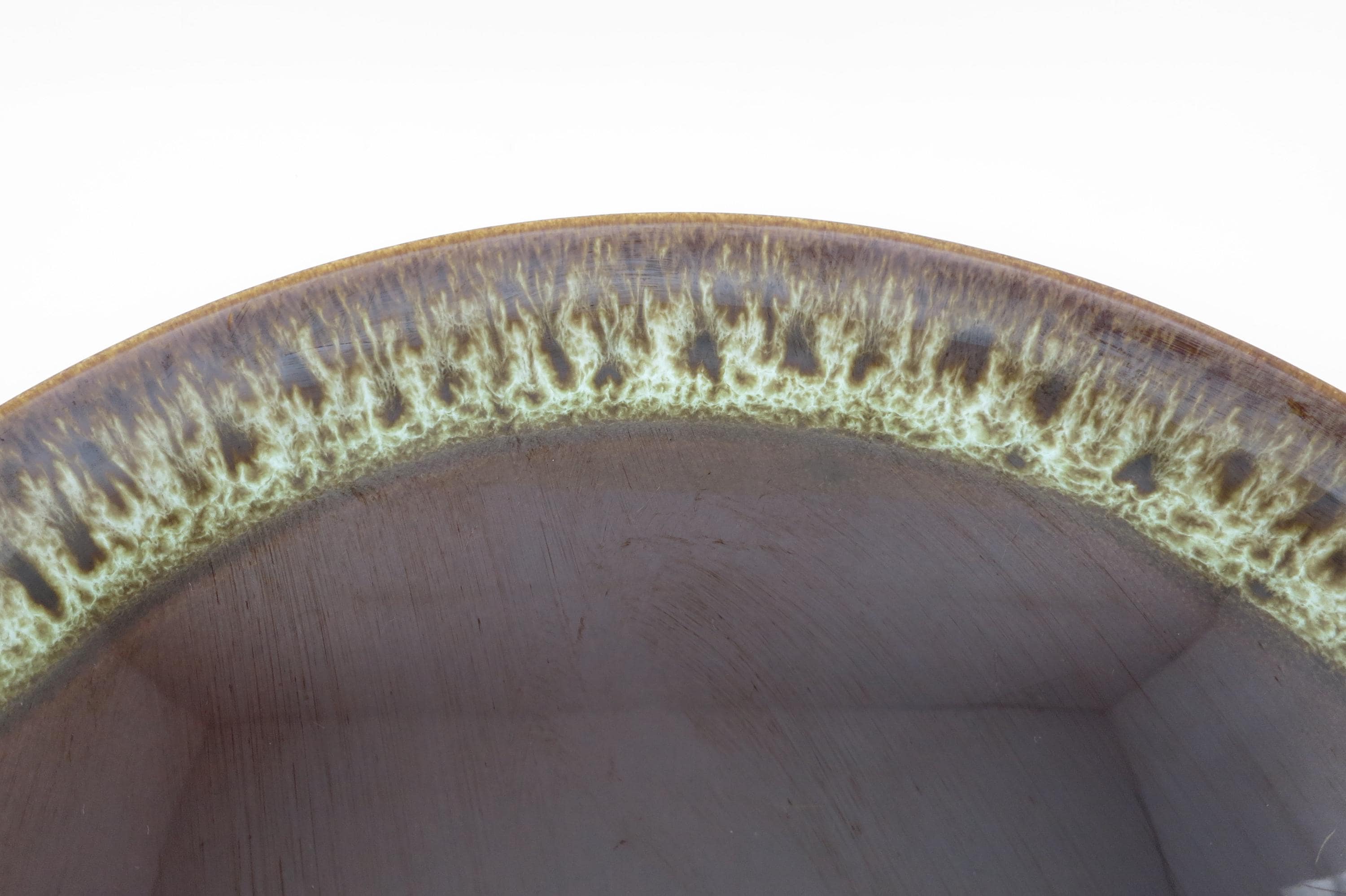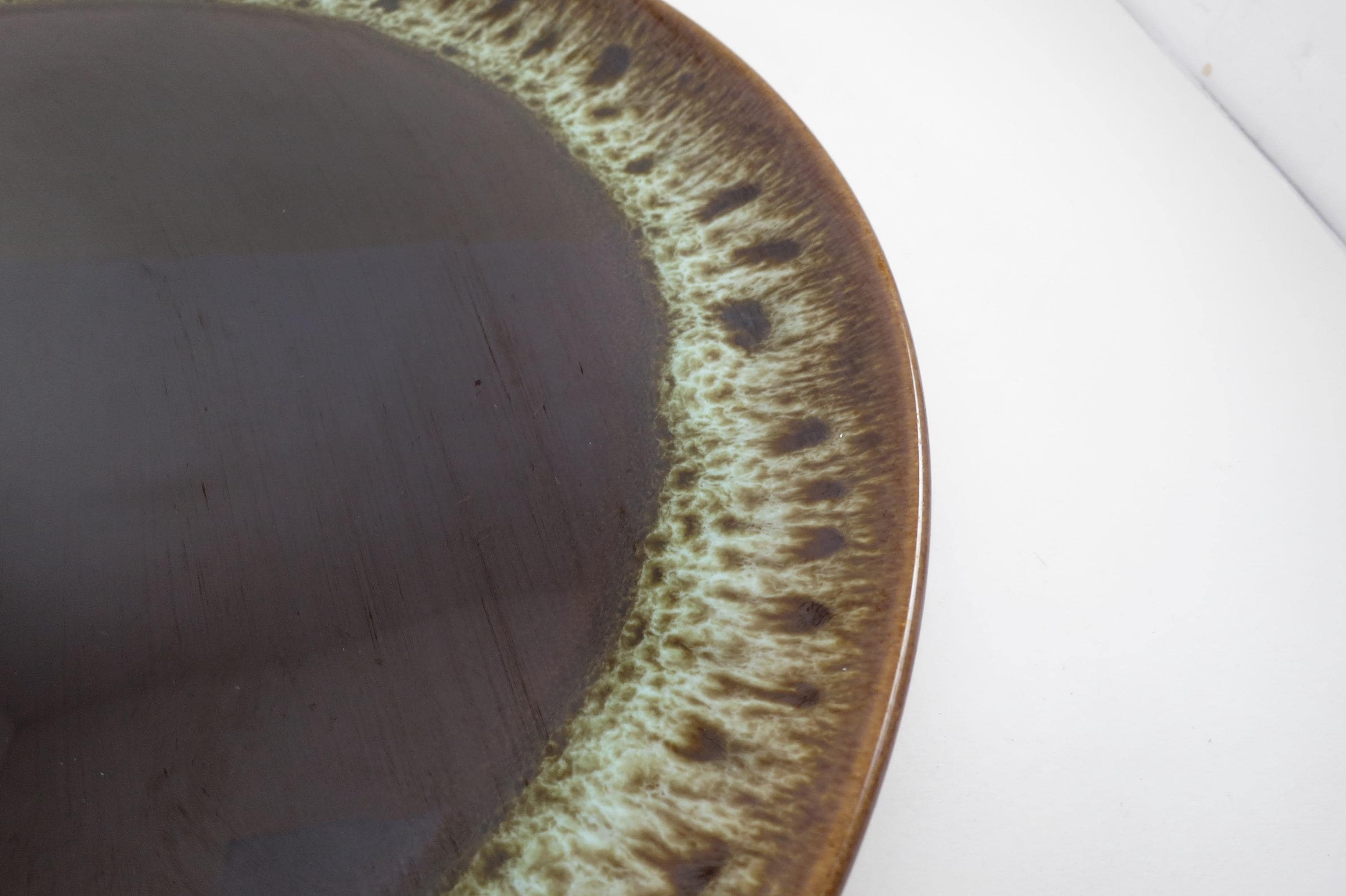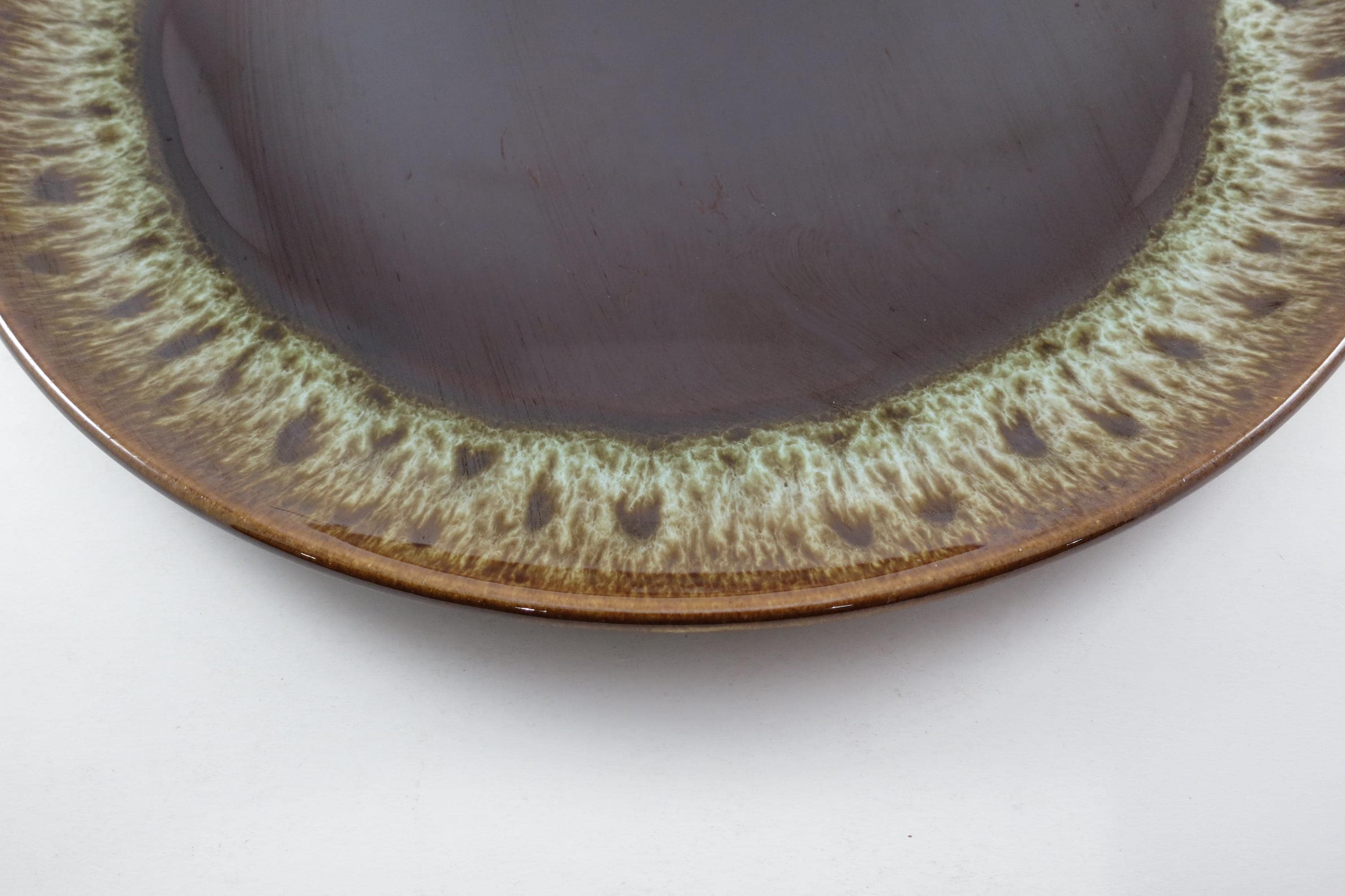 Large 13 1/2 Inch Round Brown Drip Pottery Serving Platter.