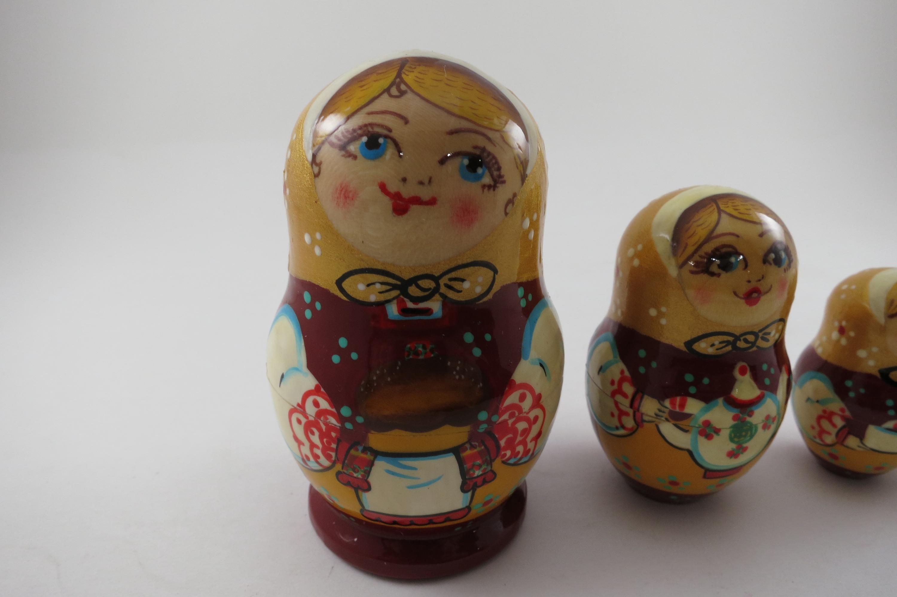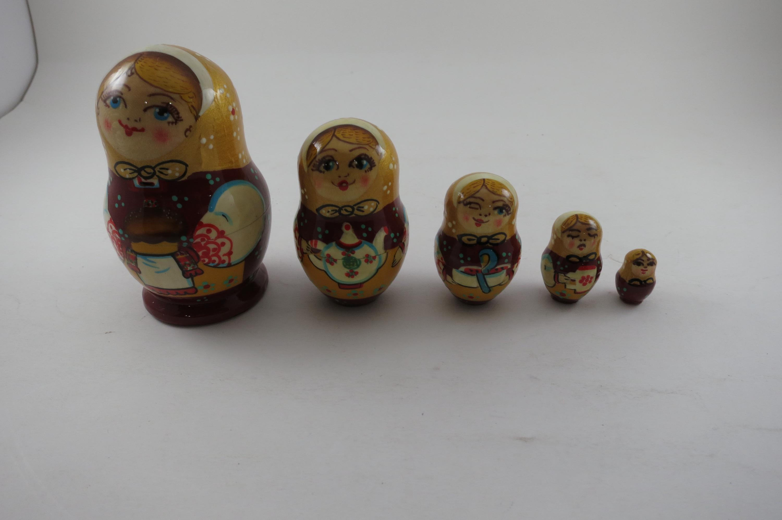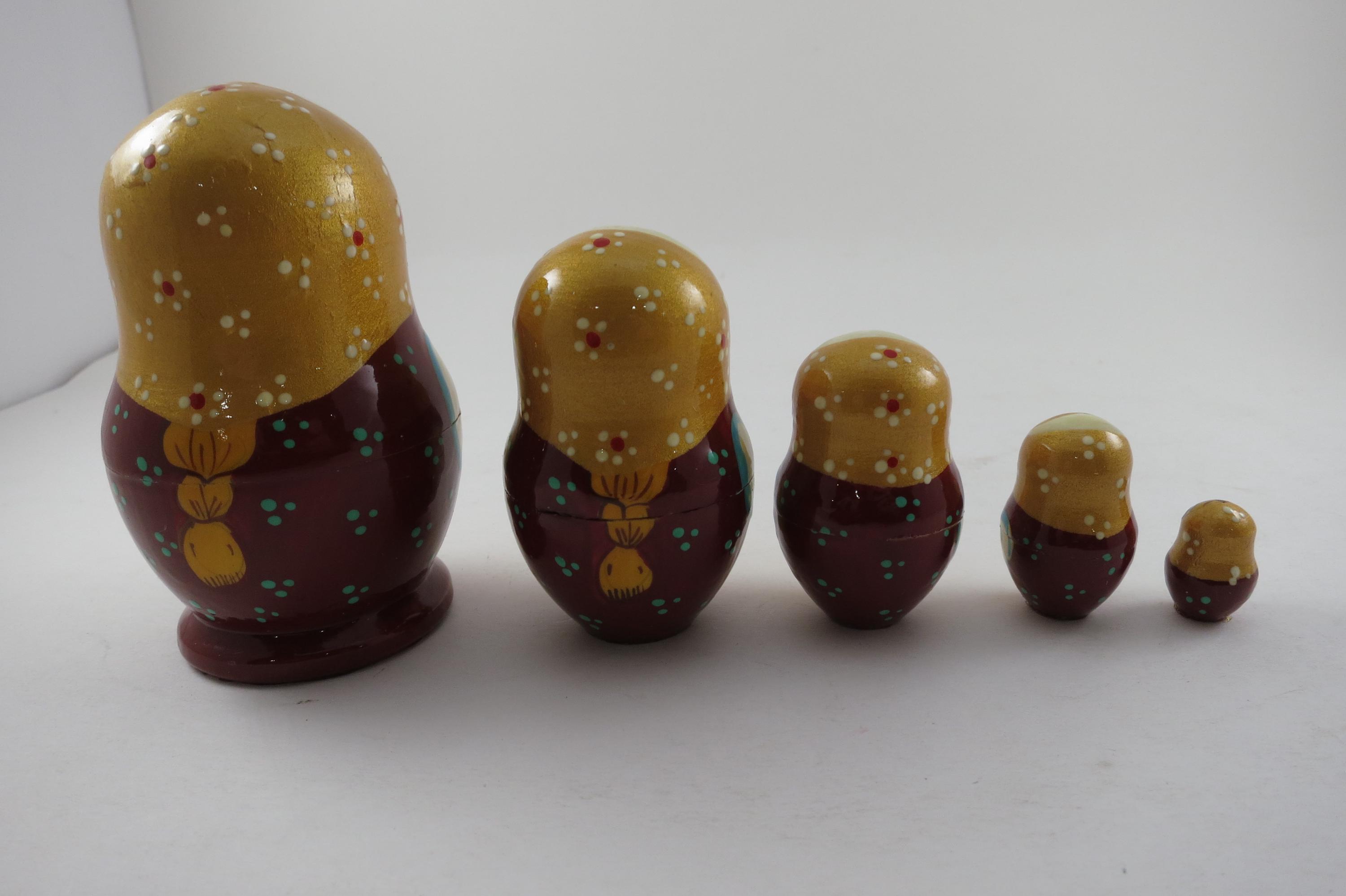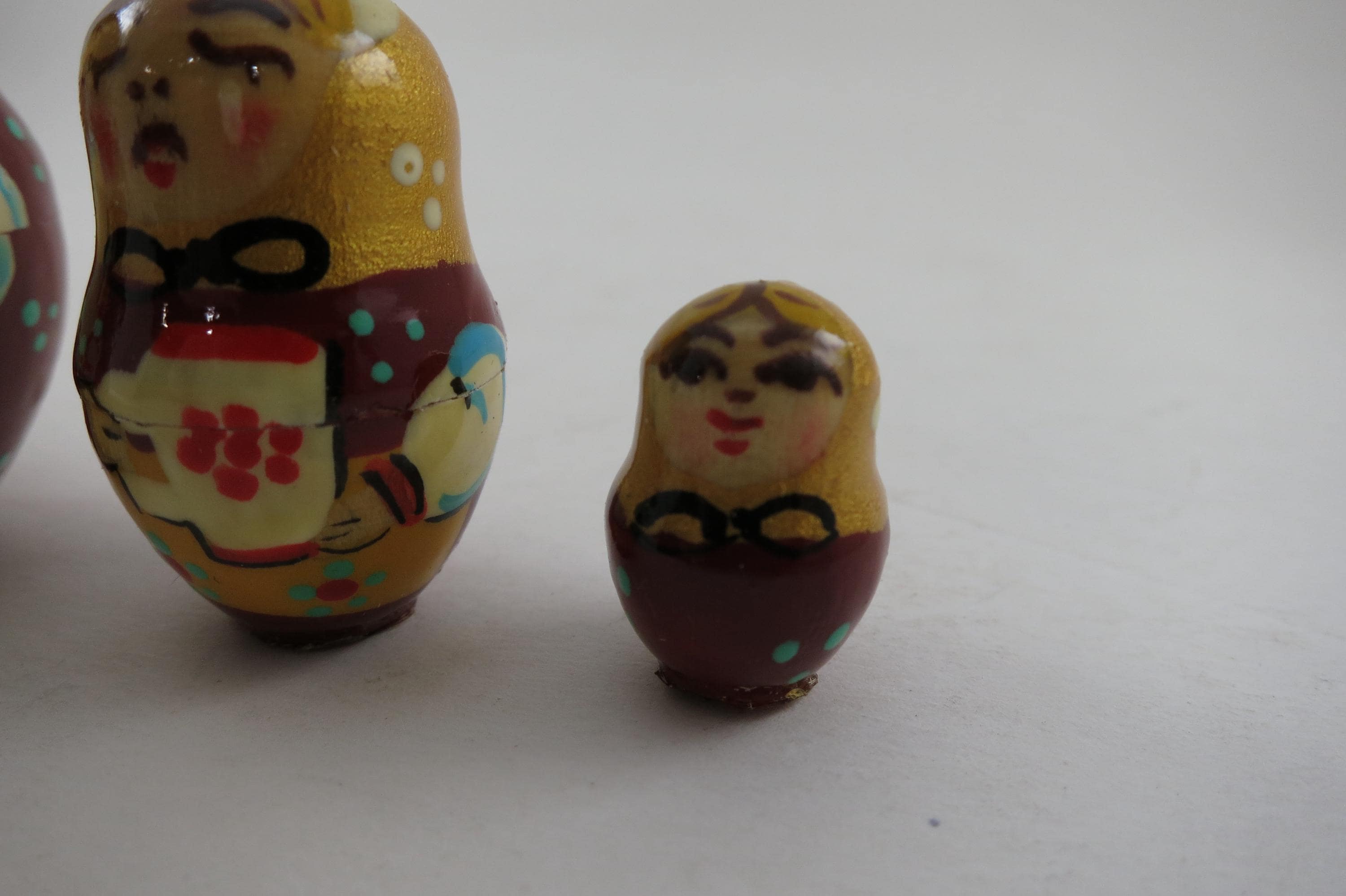 Five Piece Russian Nesting Doll Set Hand Painted Excellent Condition. Largest is 3 1/2 Inches Tall, smallest is only 1/4 inches tall. Excellent Original Condition. Neat Gift or addition to any collection.