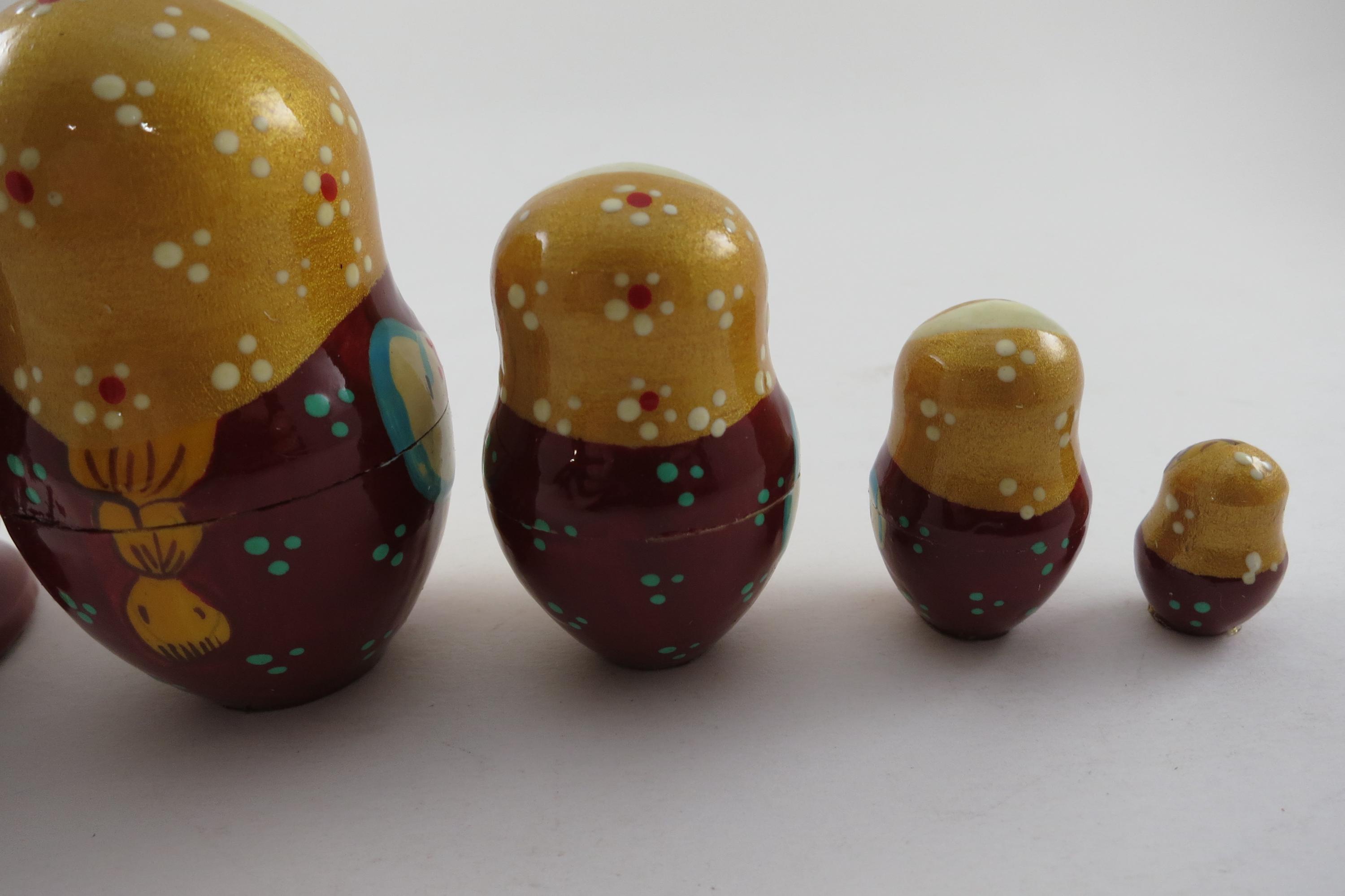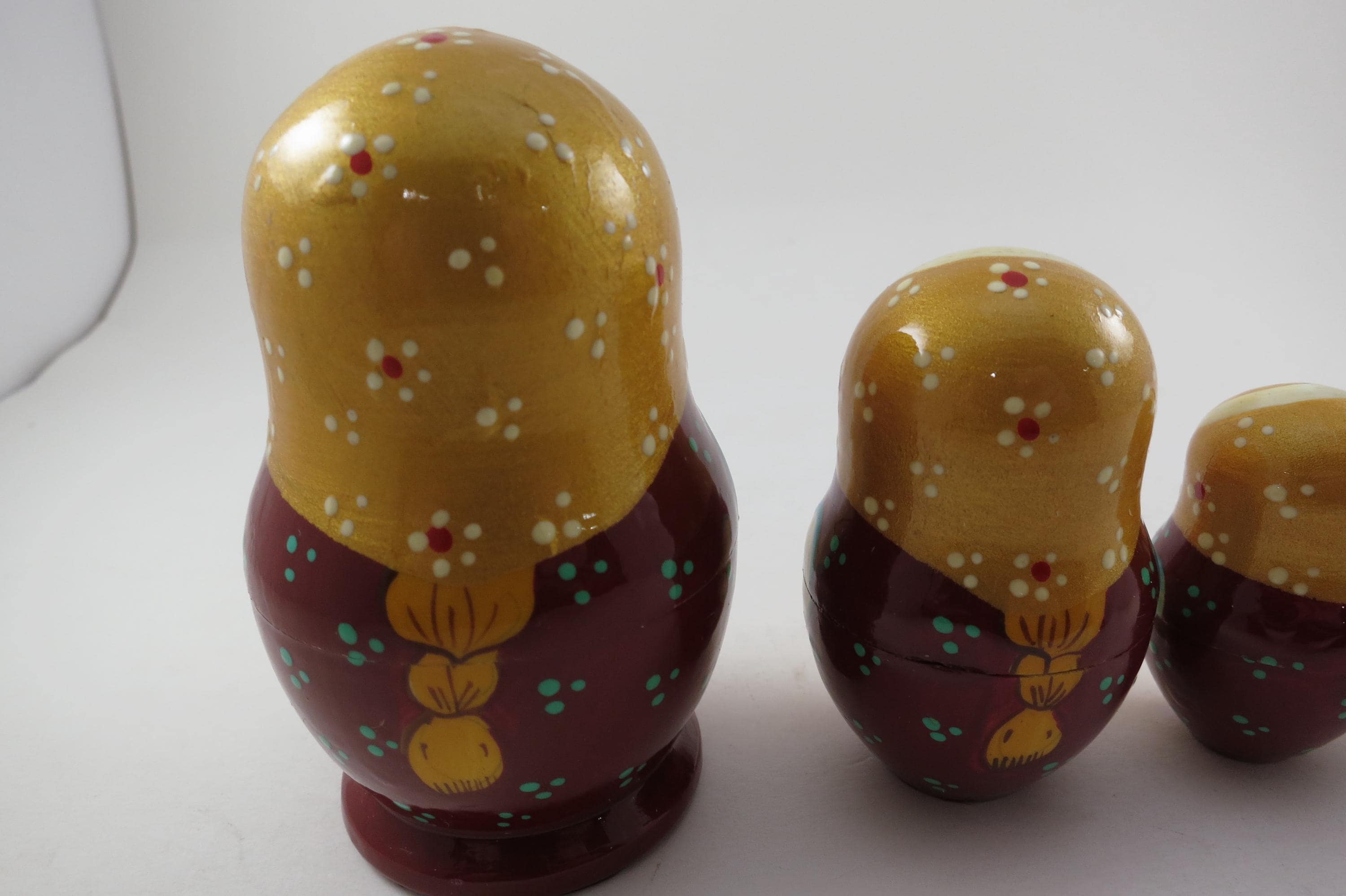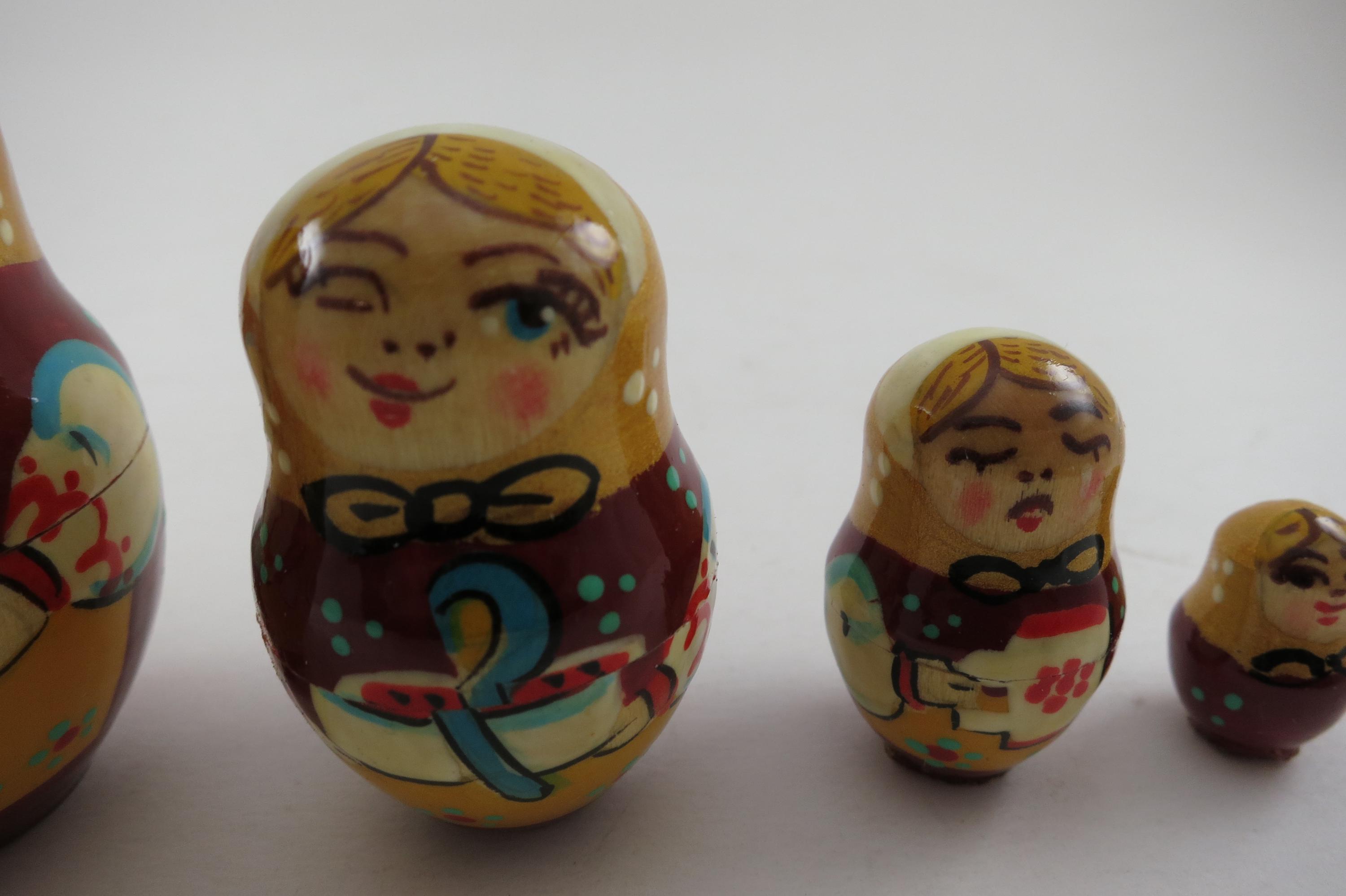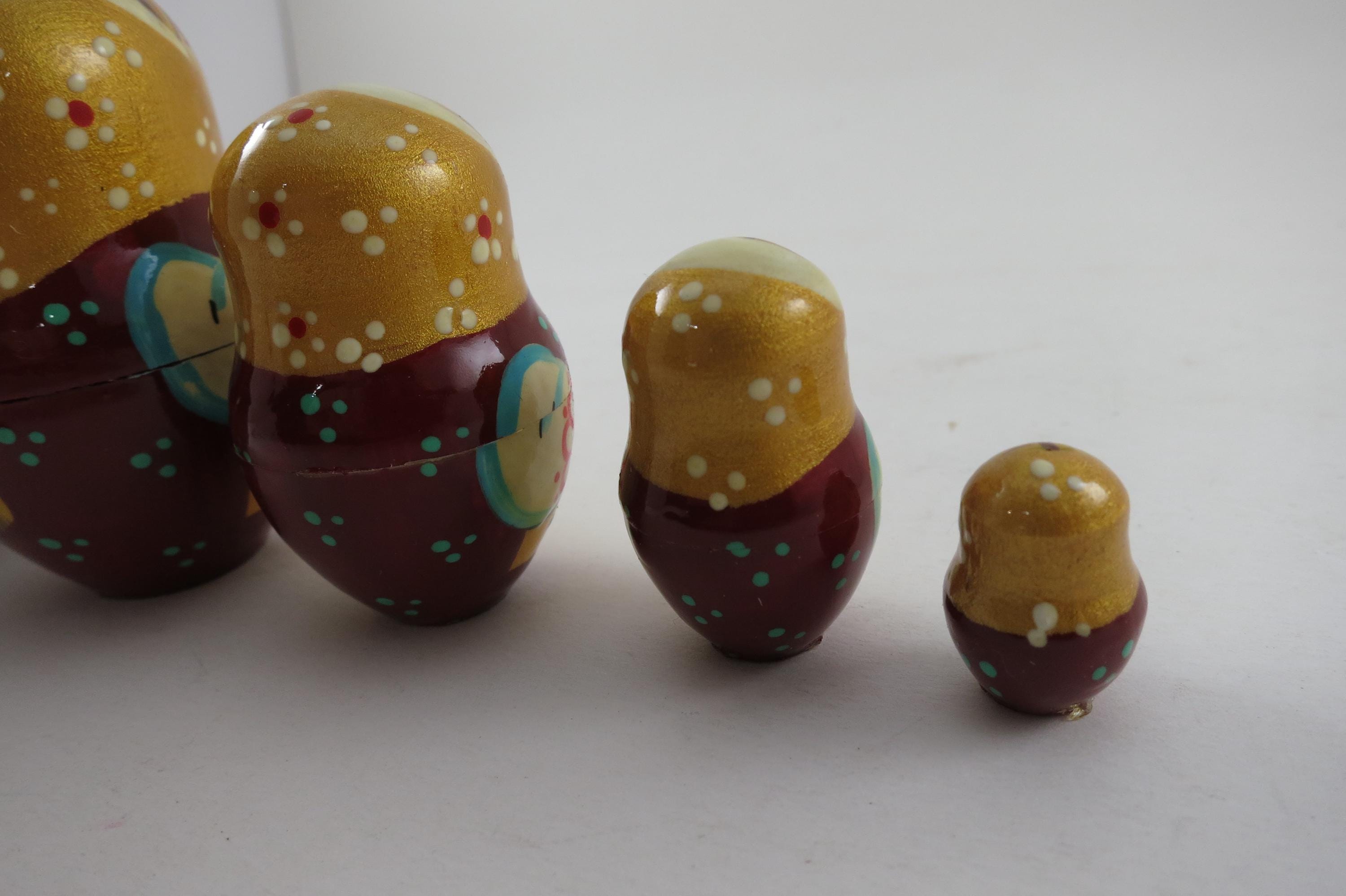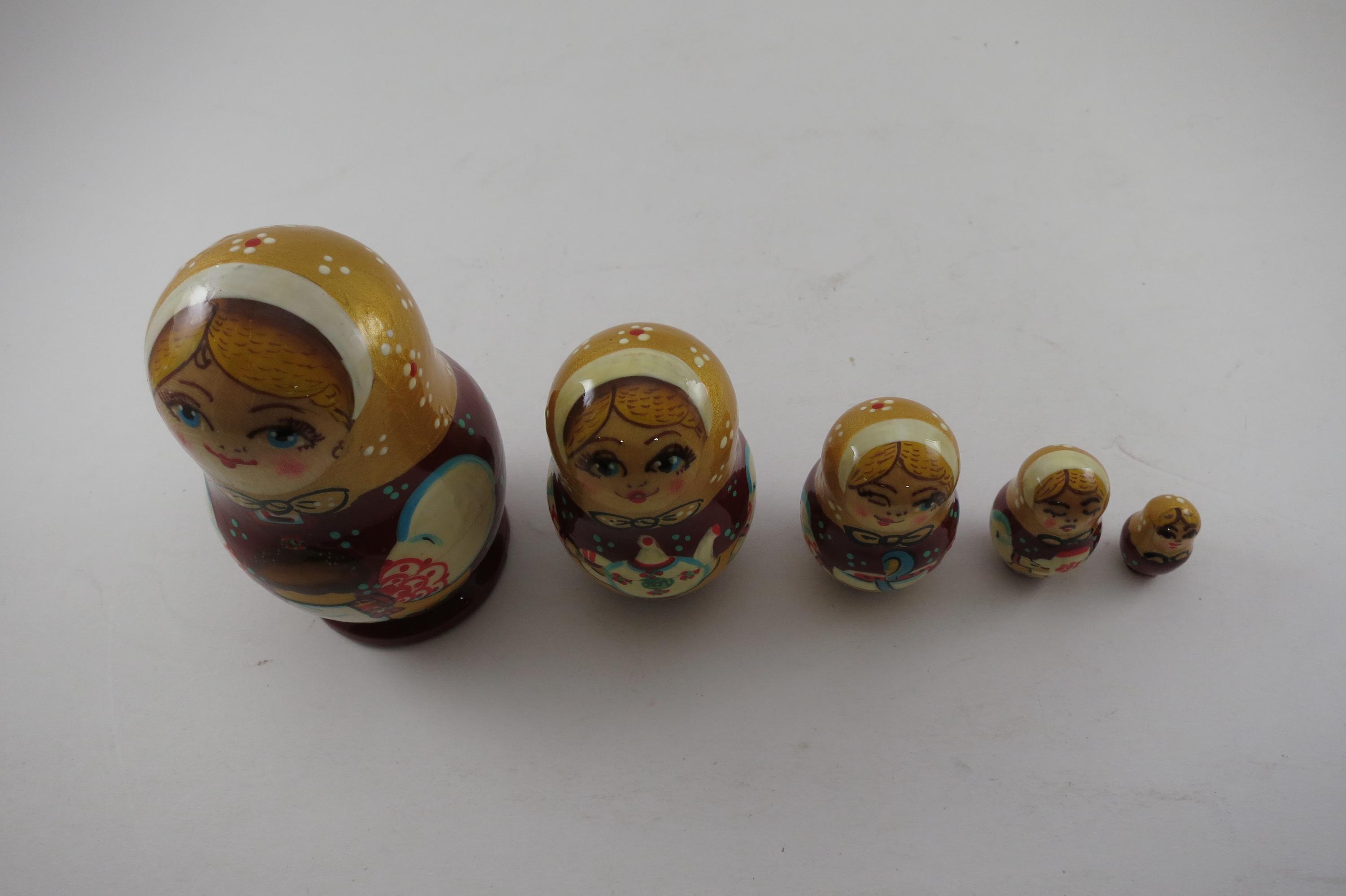 Five Piece Russian Nesting Doll Set Hand Painted Excellent Condition. Largest is 3 1/2 Inches Tall, smallest is only 1/4 inches tall. Excellent Original Condition. Neat Gift or addition to any collection.