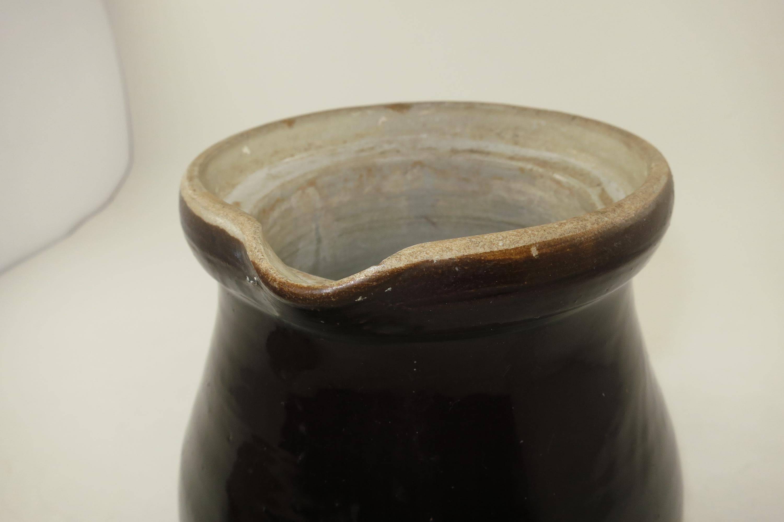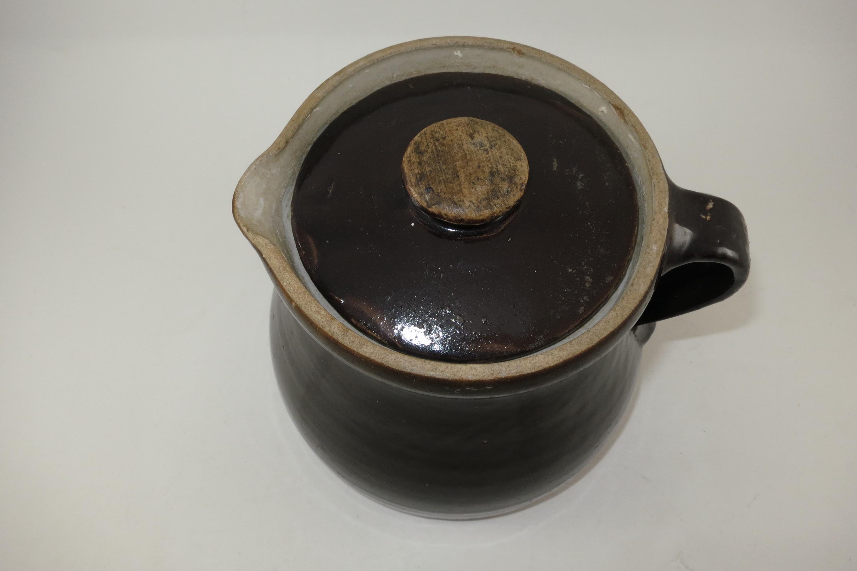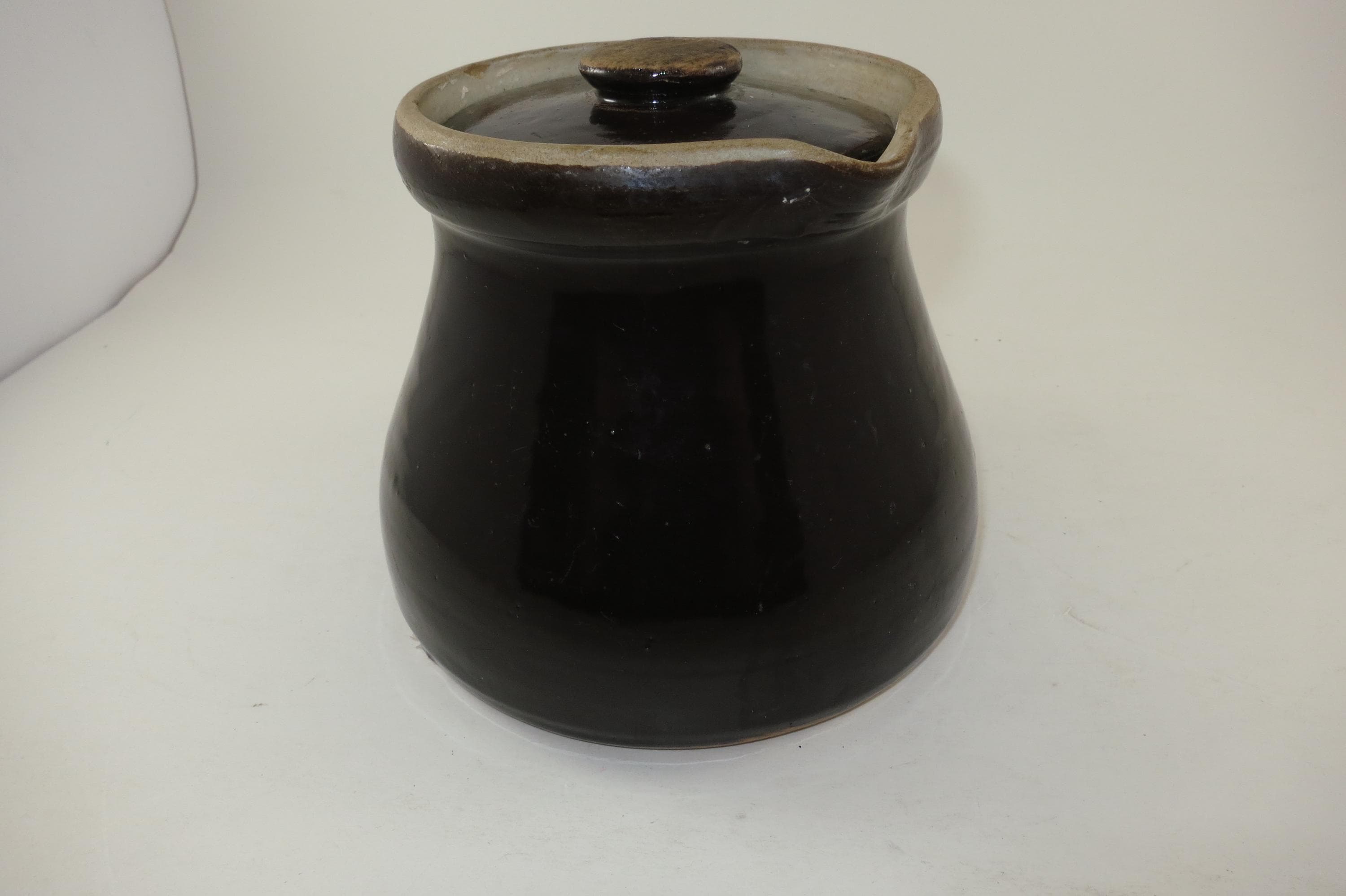 Likely 1800's Stoneware Brown Pitcher with Original Lid.