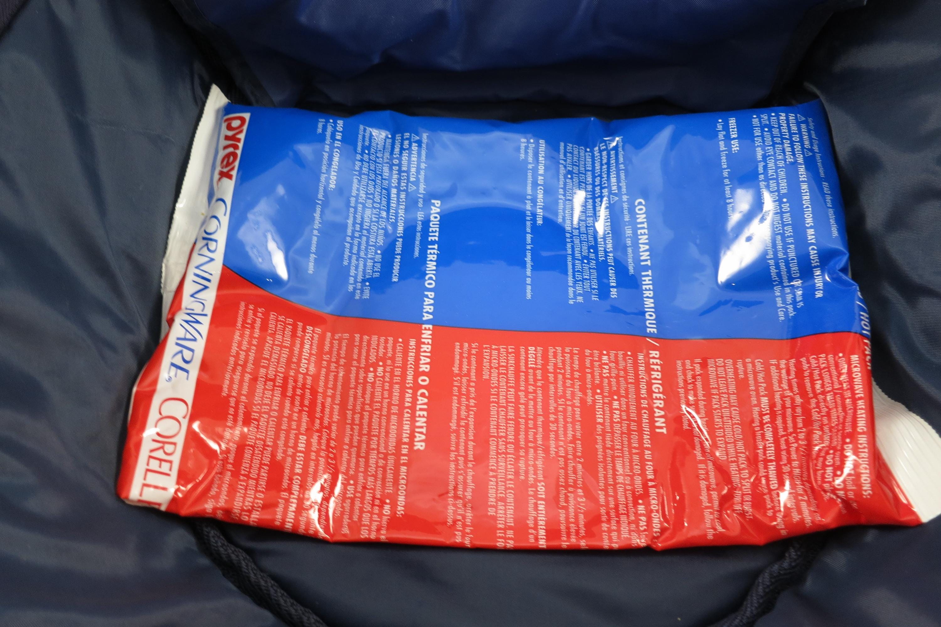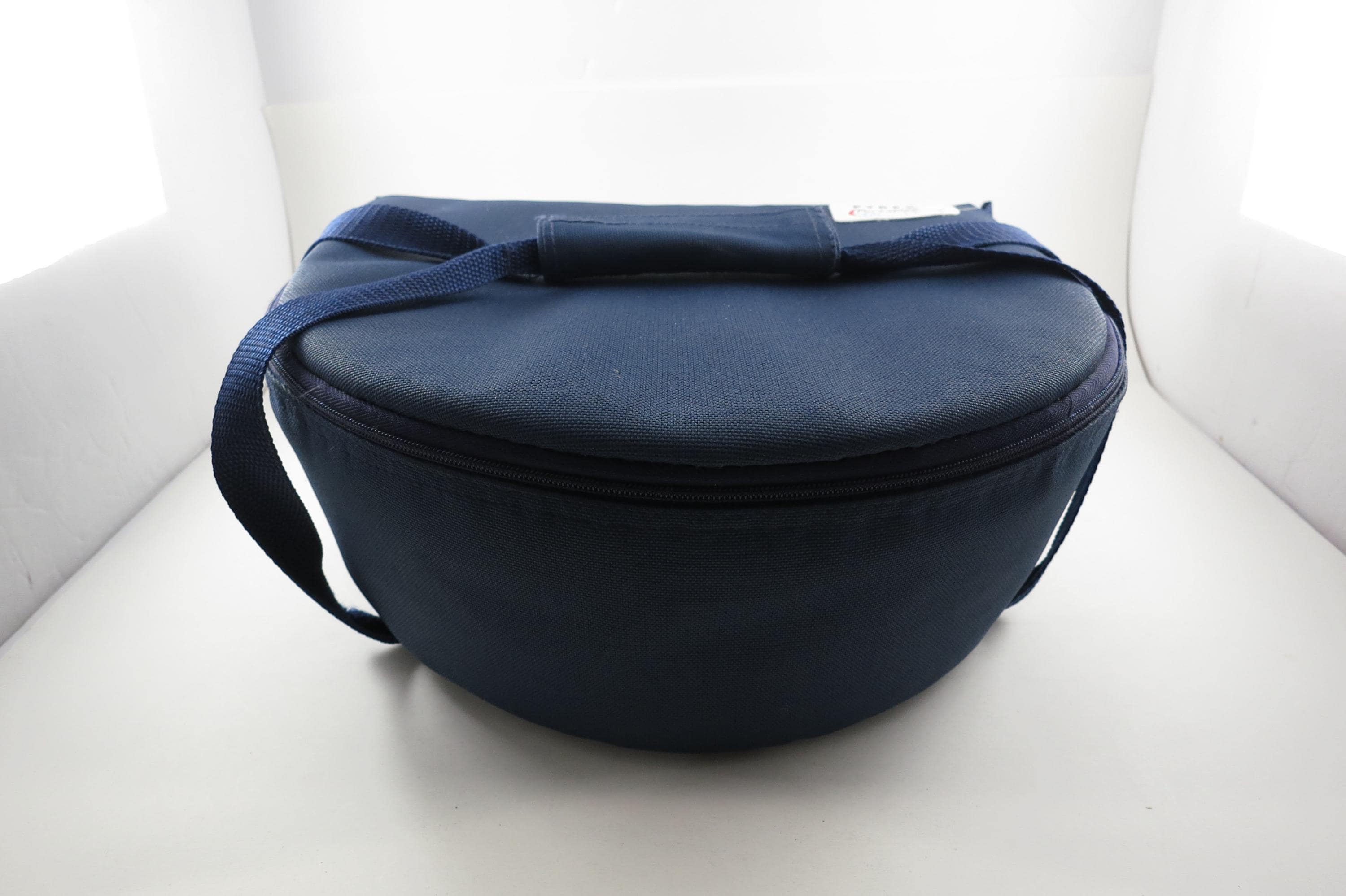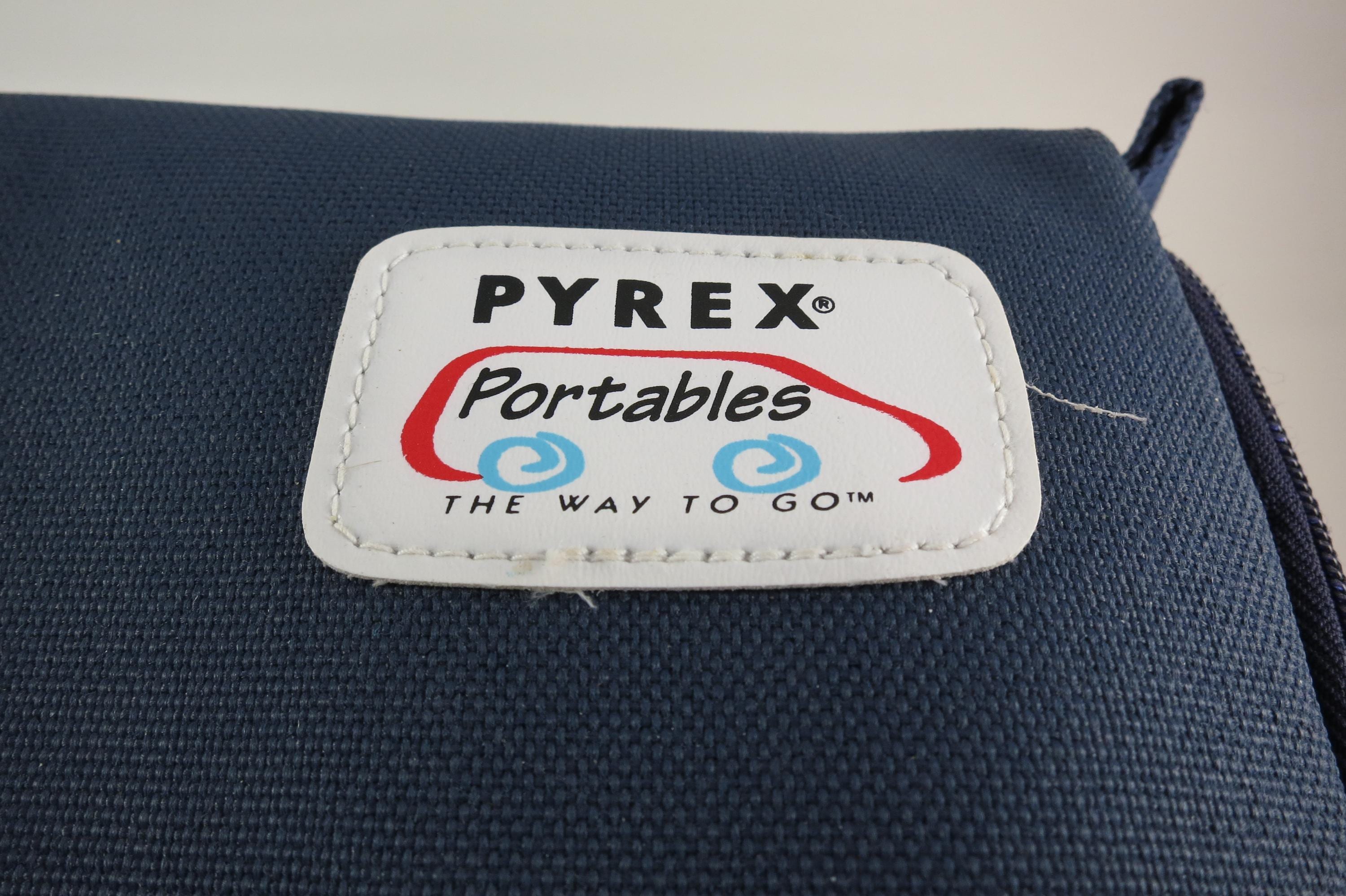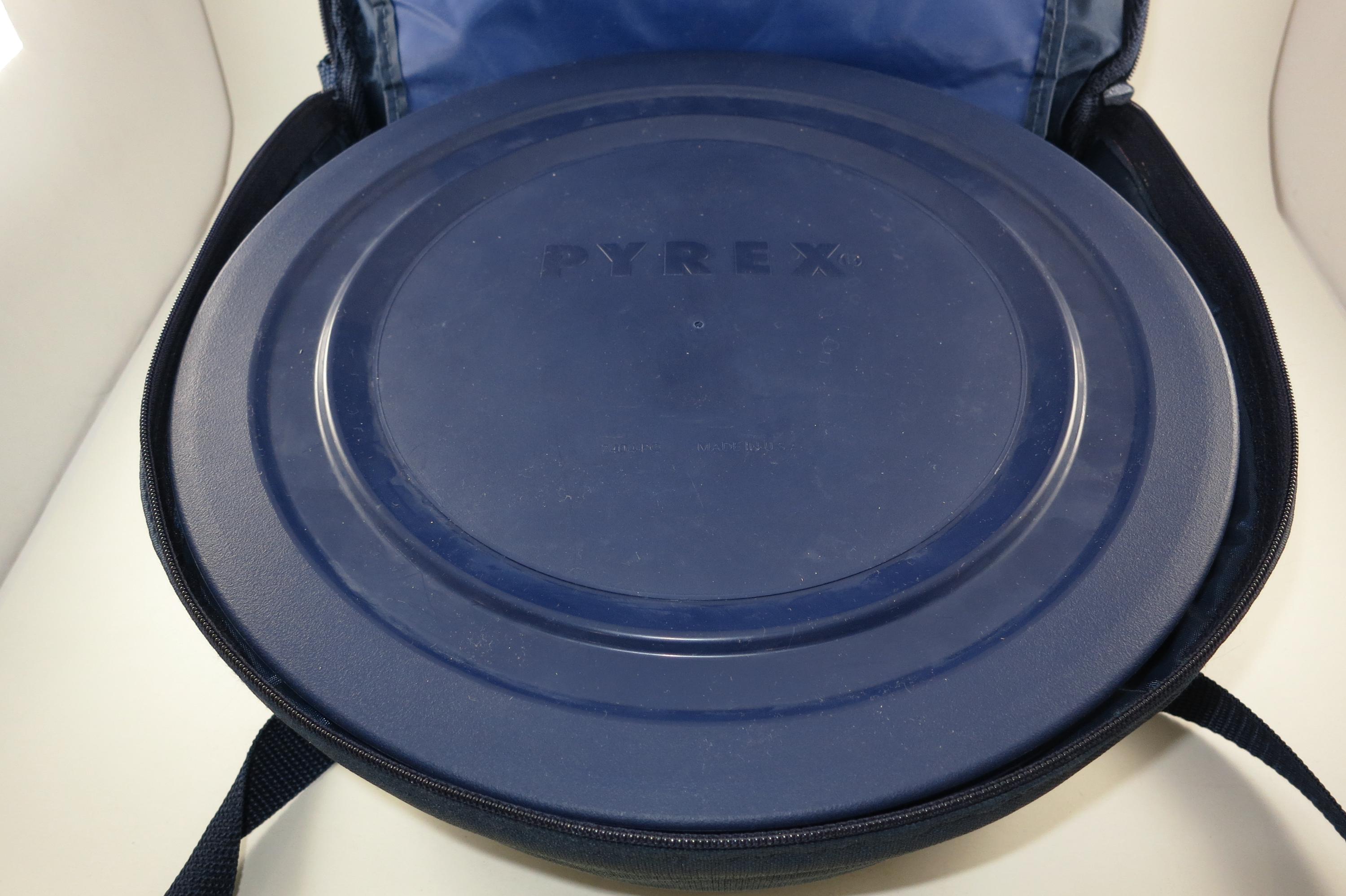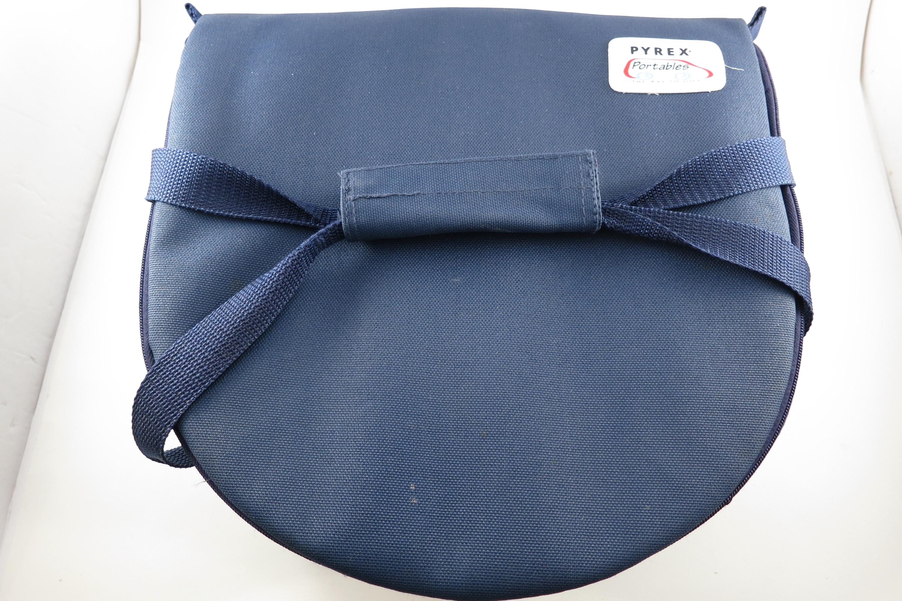 Vintage Pyrex Portables 4.5 Quart Round Bowl with Lid Dark Blue Case Hot/Cold Packs.