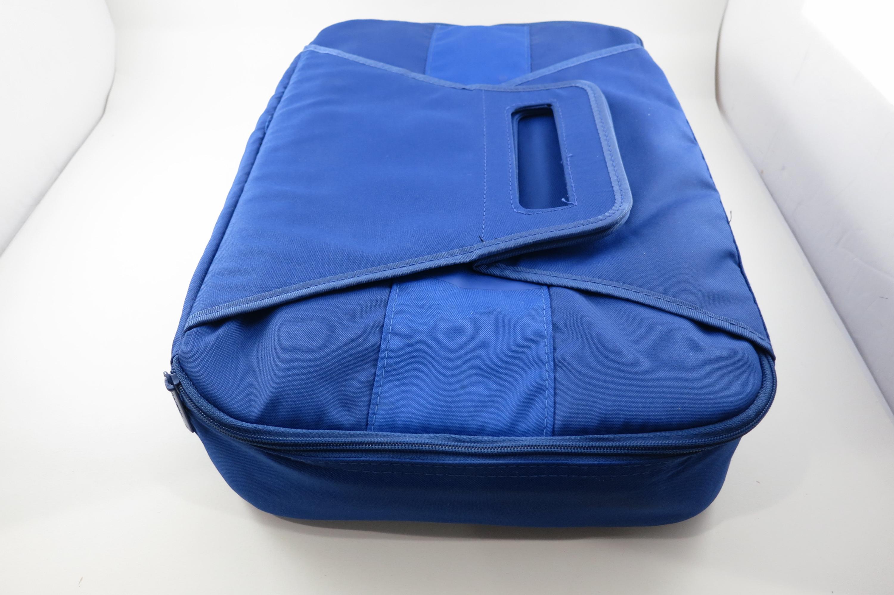 Very nice, casserole with red lid are in excellent condition, 3 quart/2.8 Liter. Blue carrying bag has a velcro handle. Ready for that next trip!