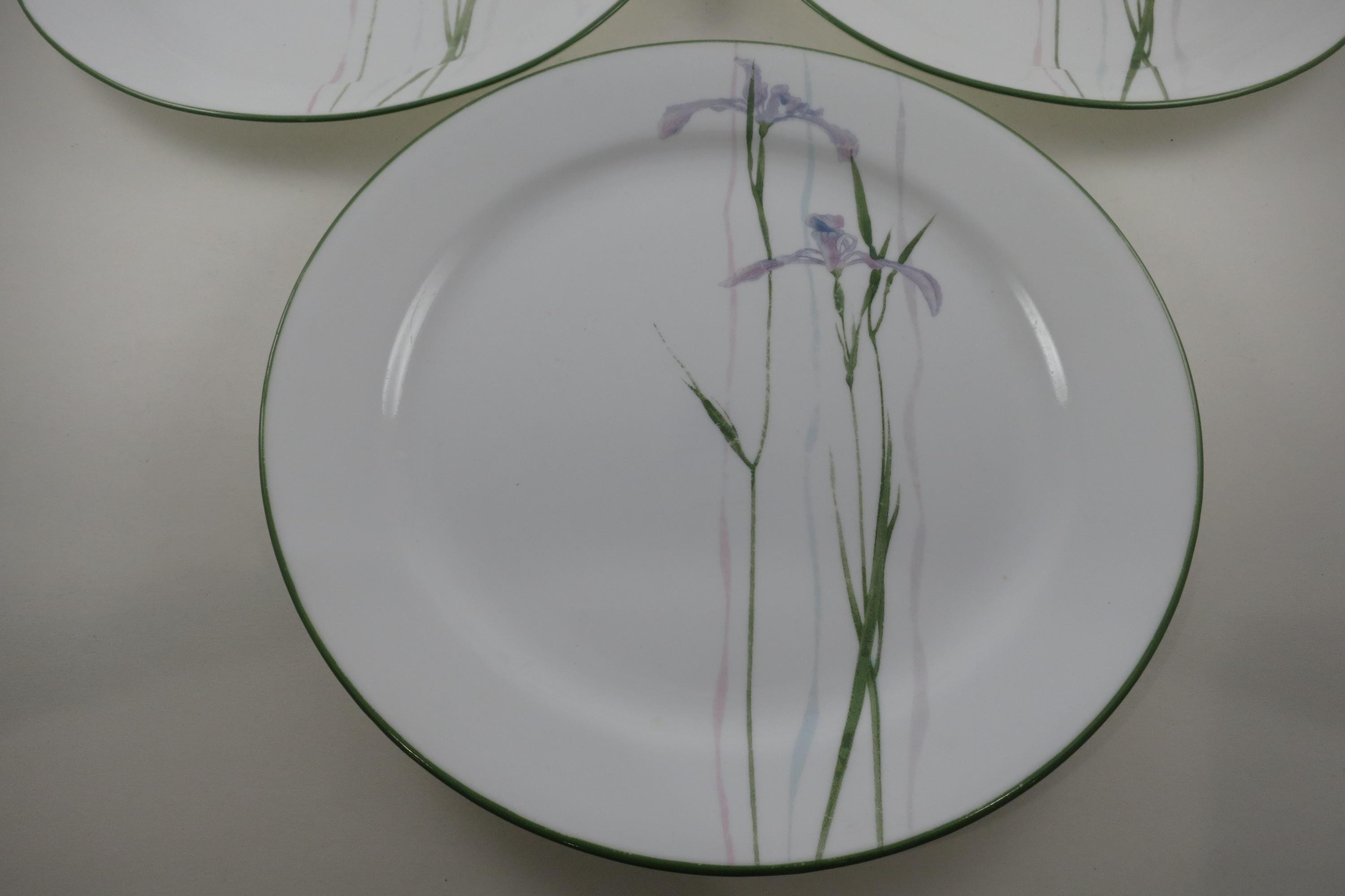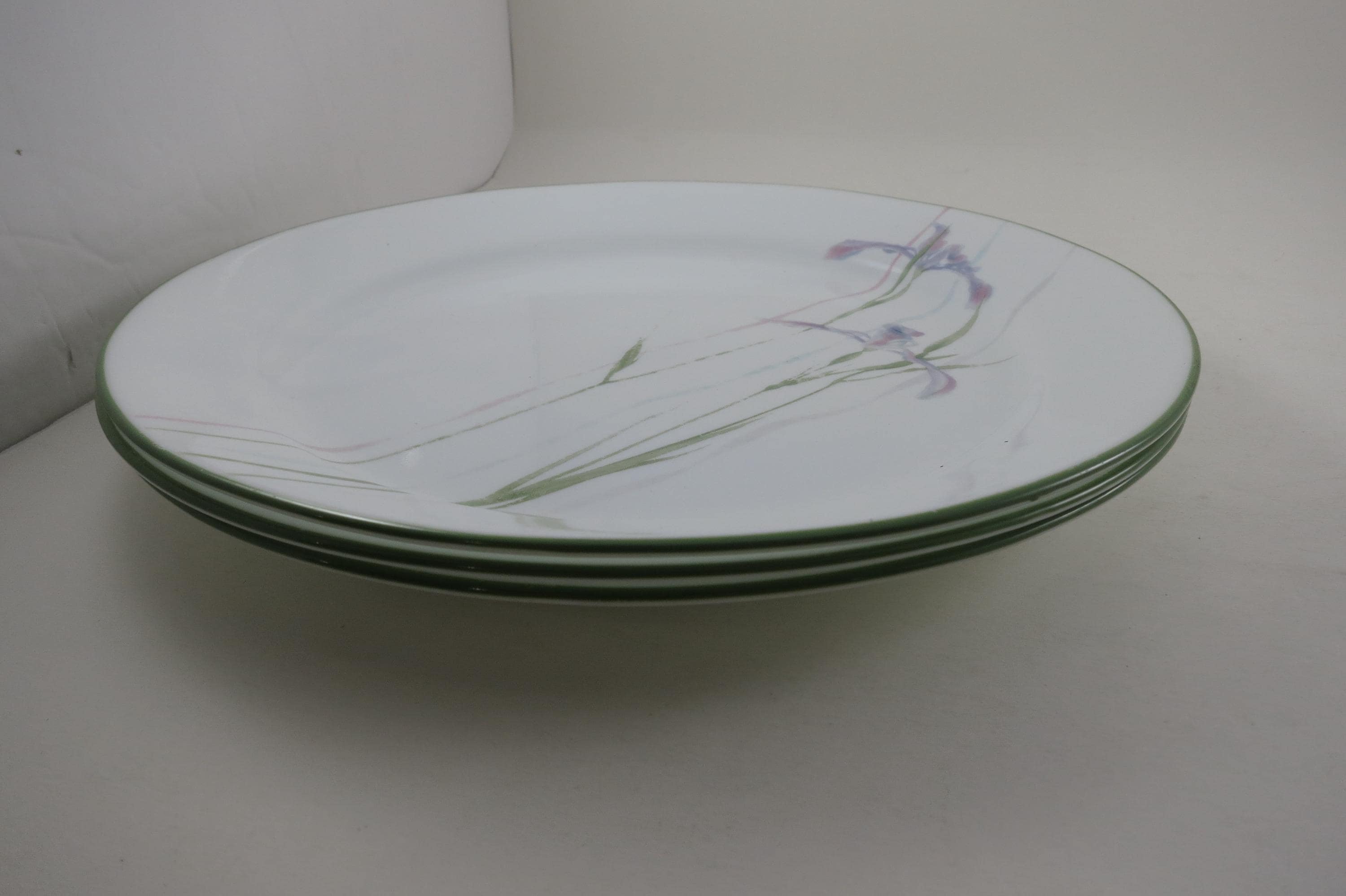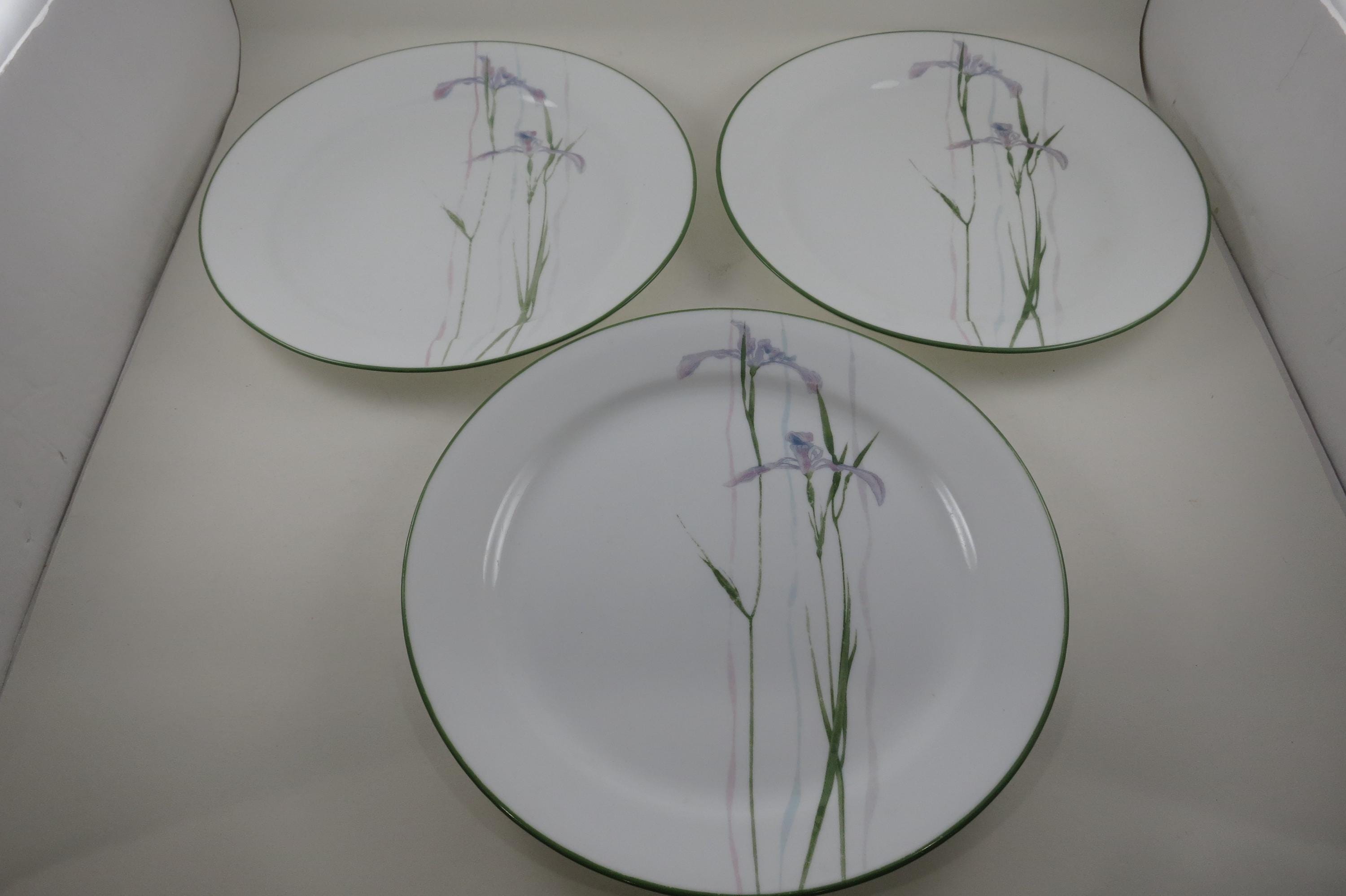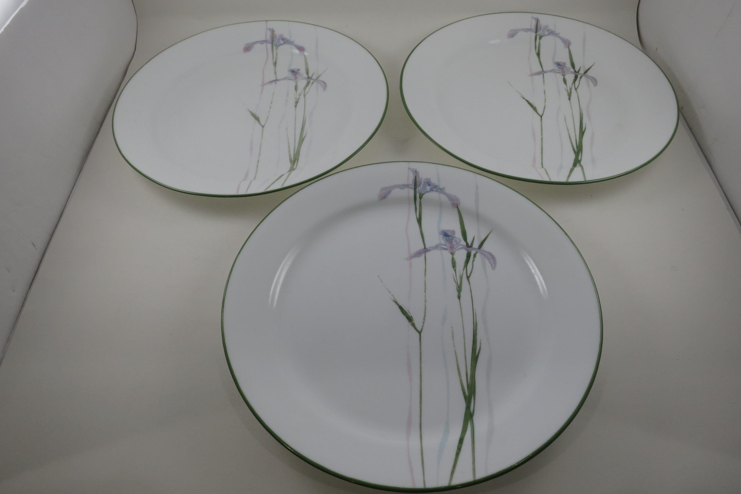 Set of Three Vintage Corelle by Corning Shadow Iris Pattern 10 1/4 Inch Dinner Plates.