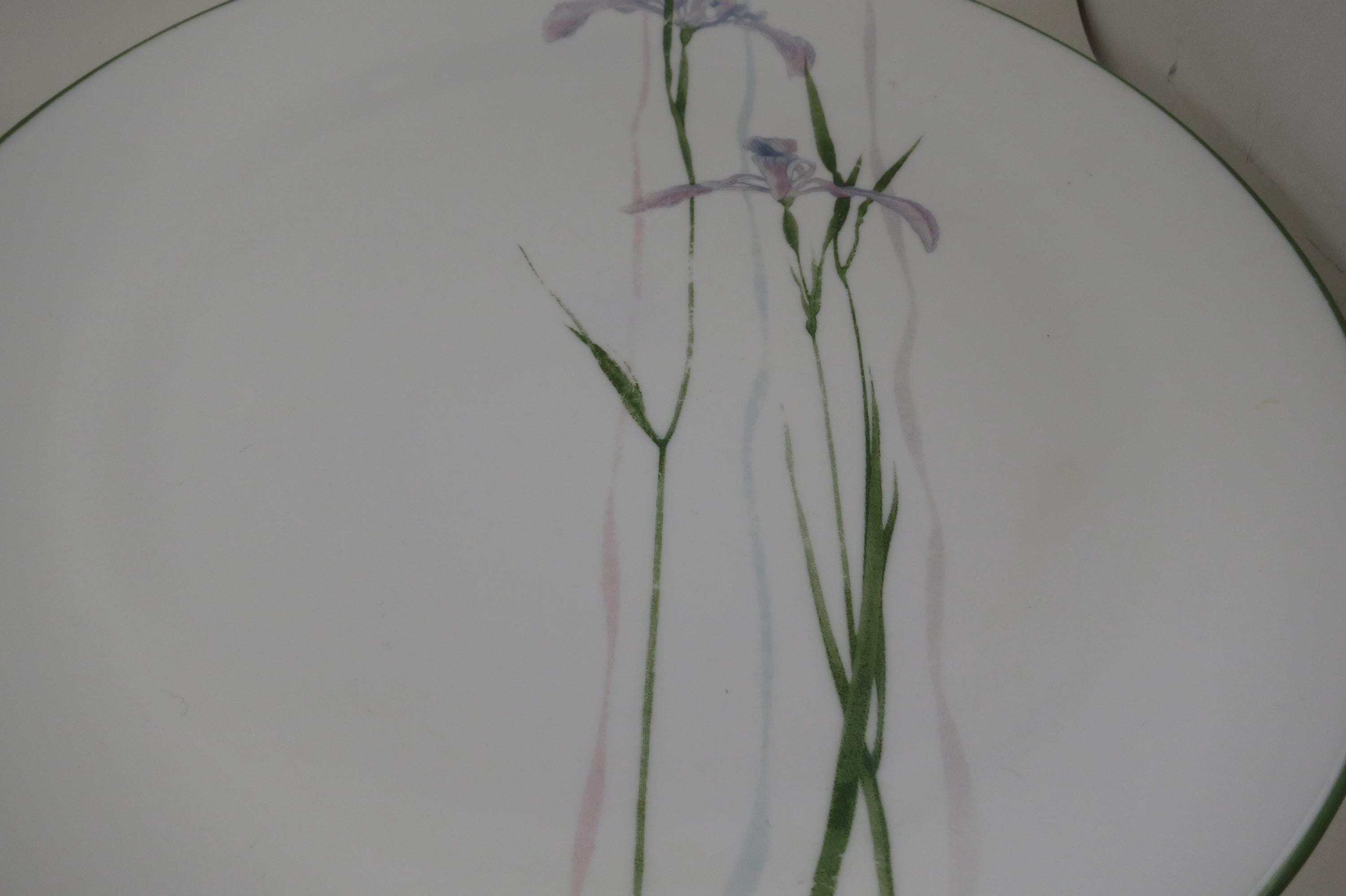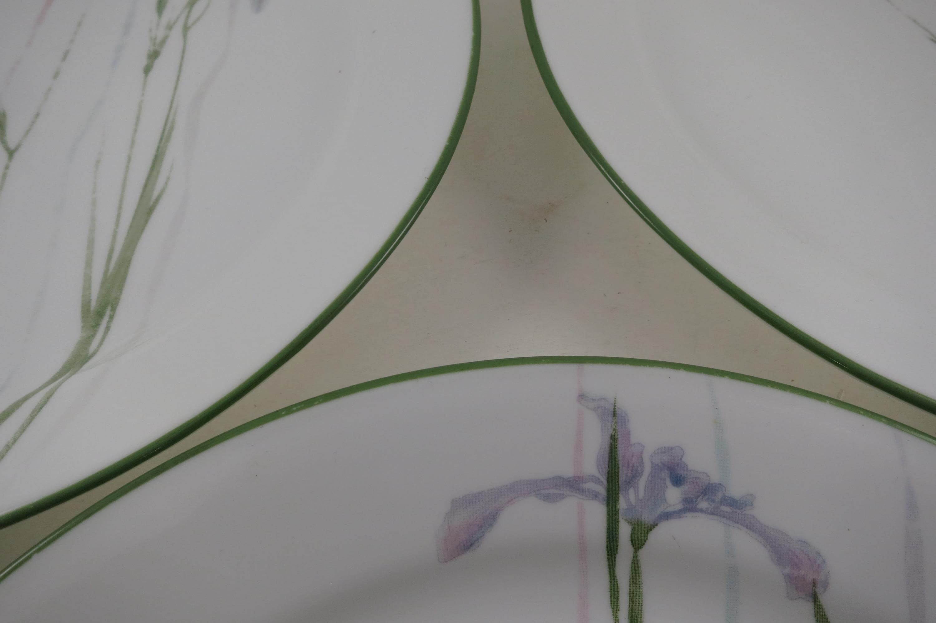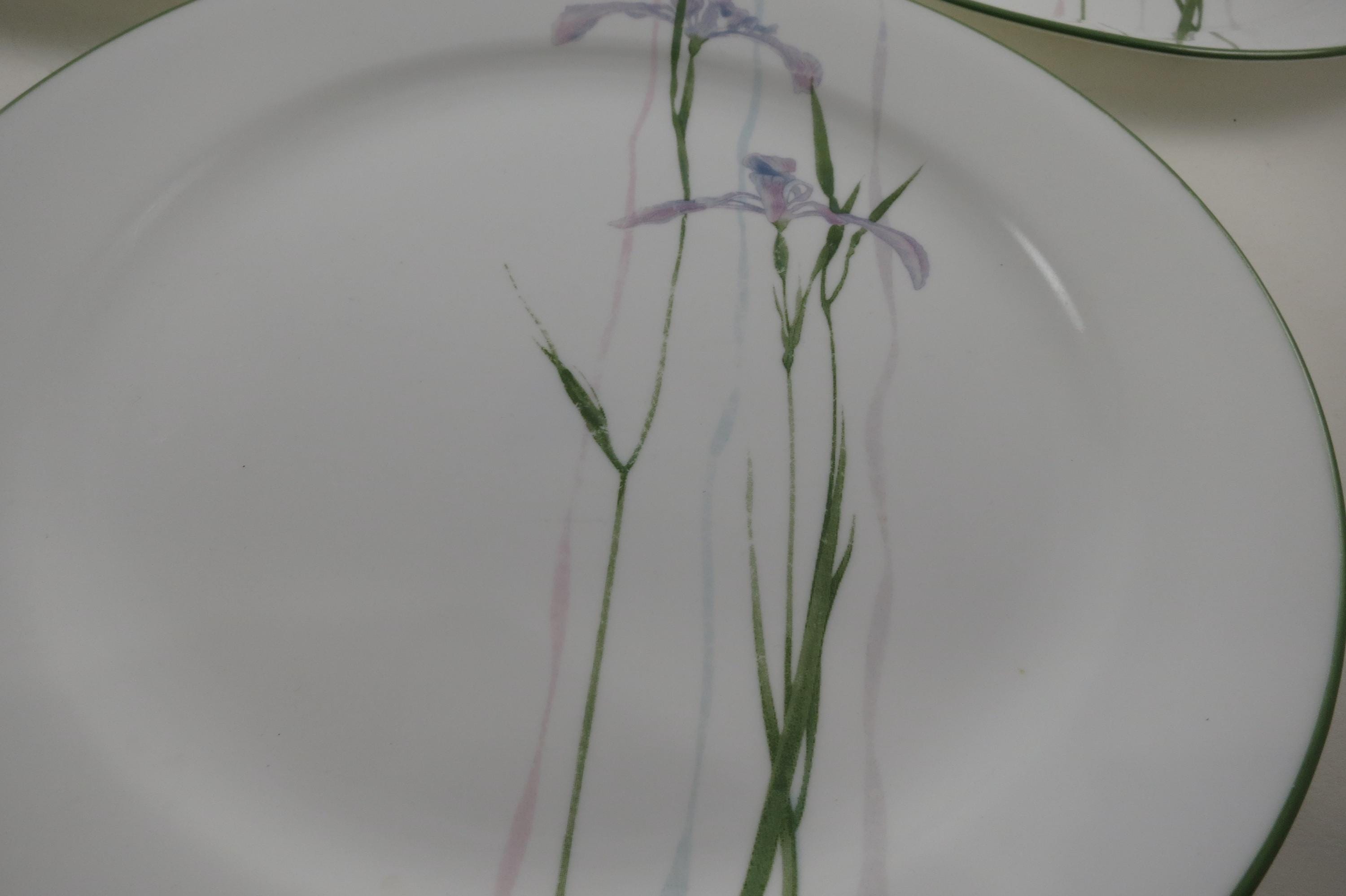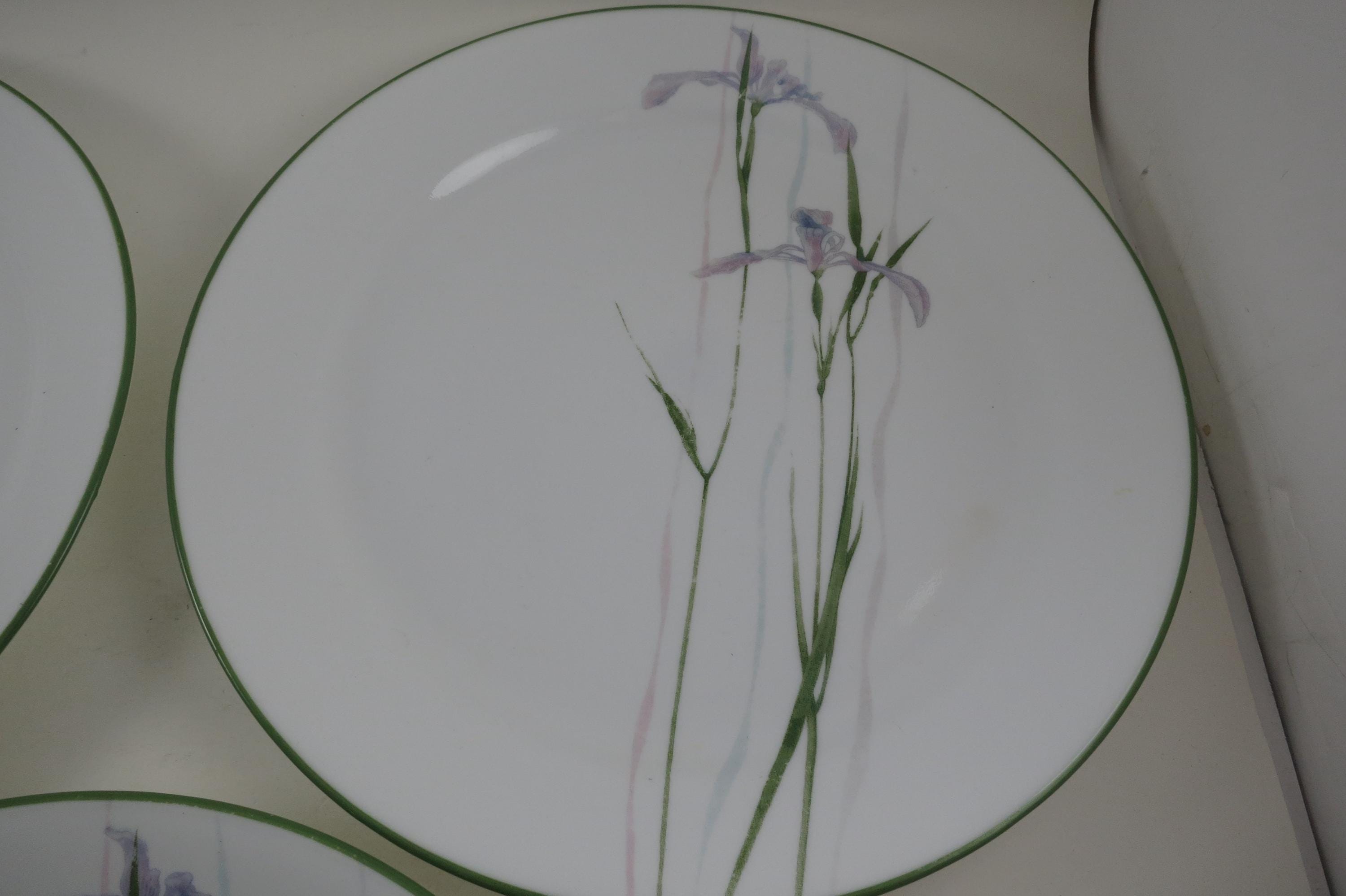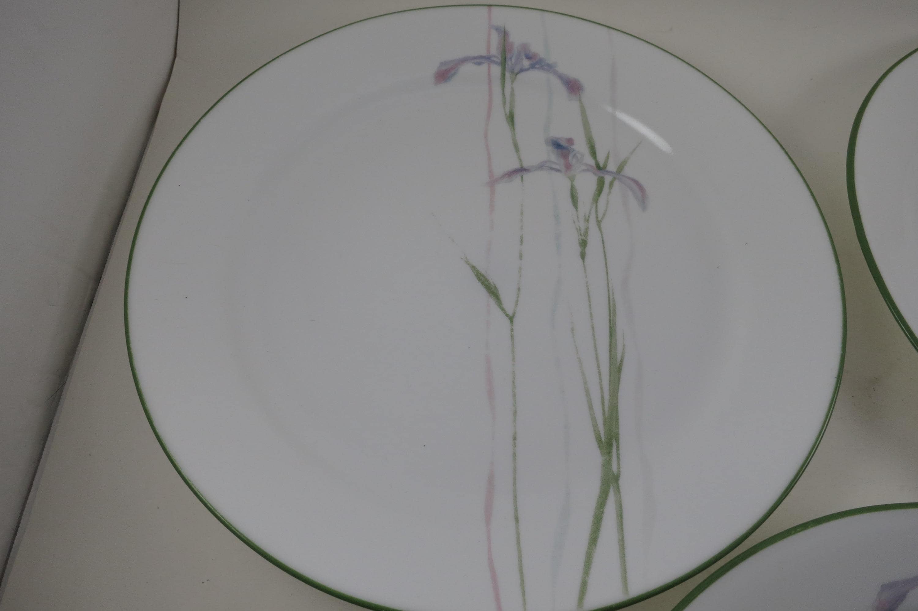 Set of Three Vintage Corelle by Corning Shadow Iris Pattern 10 1/4 Inch Dinner Plates.