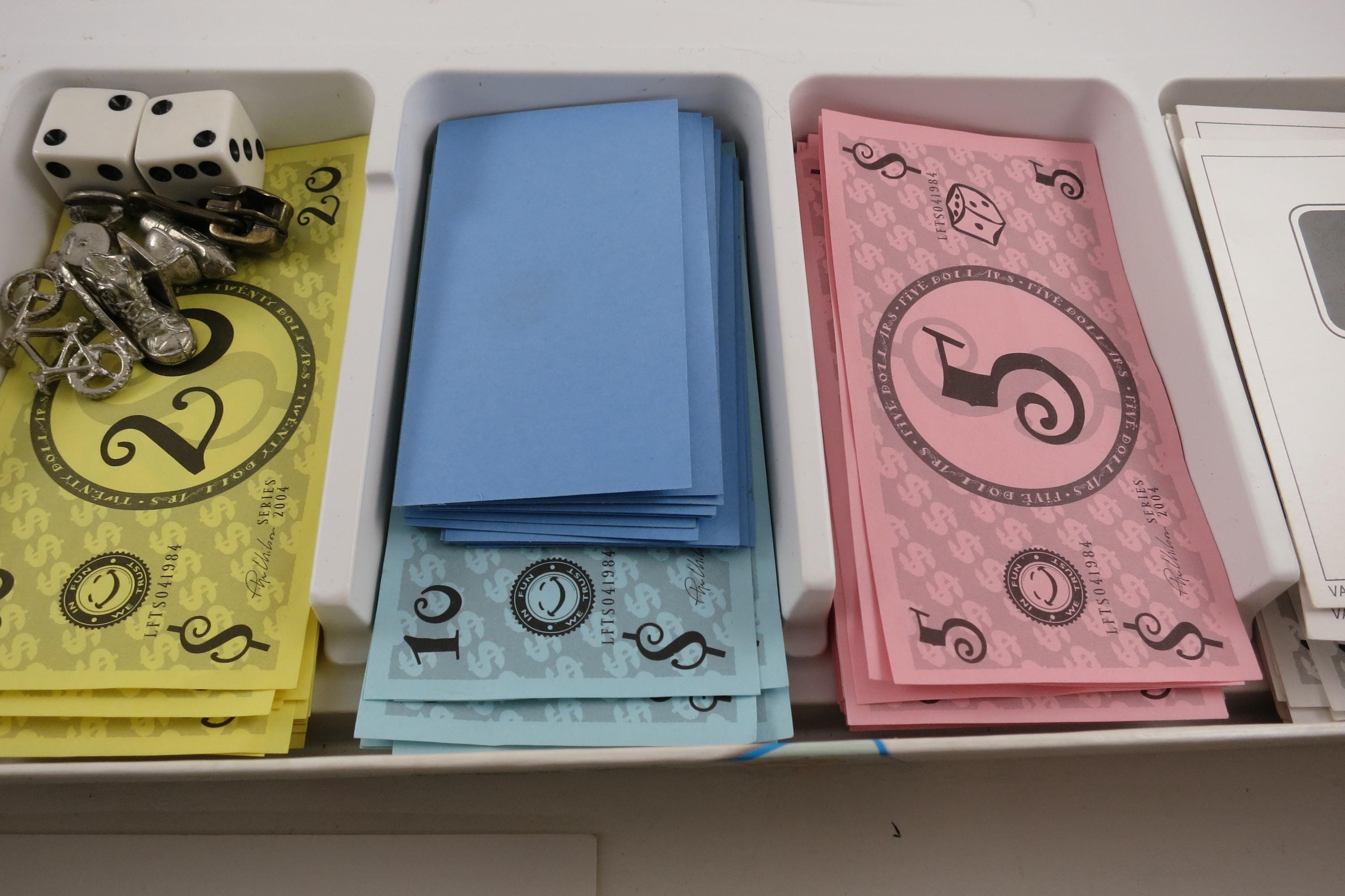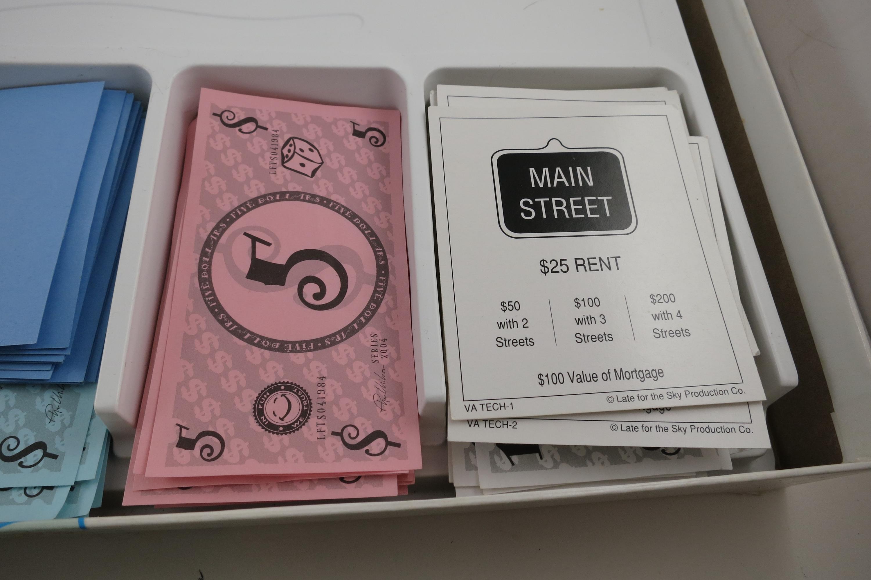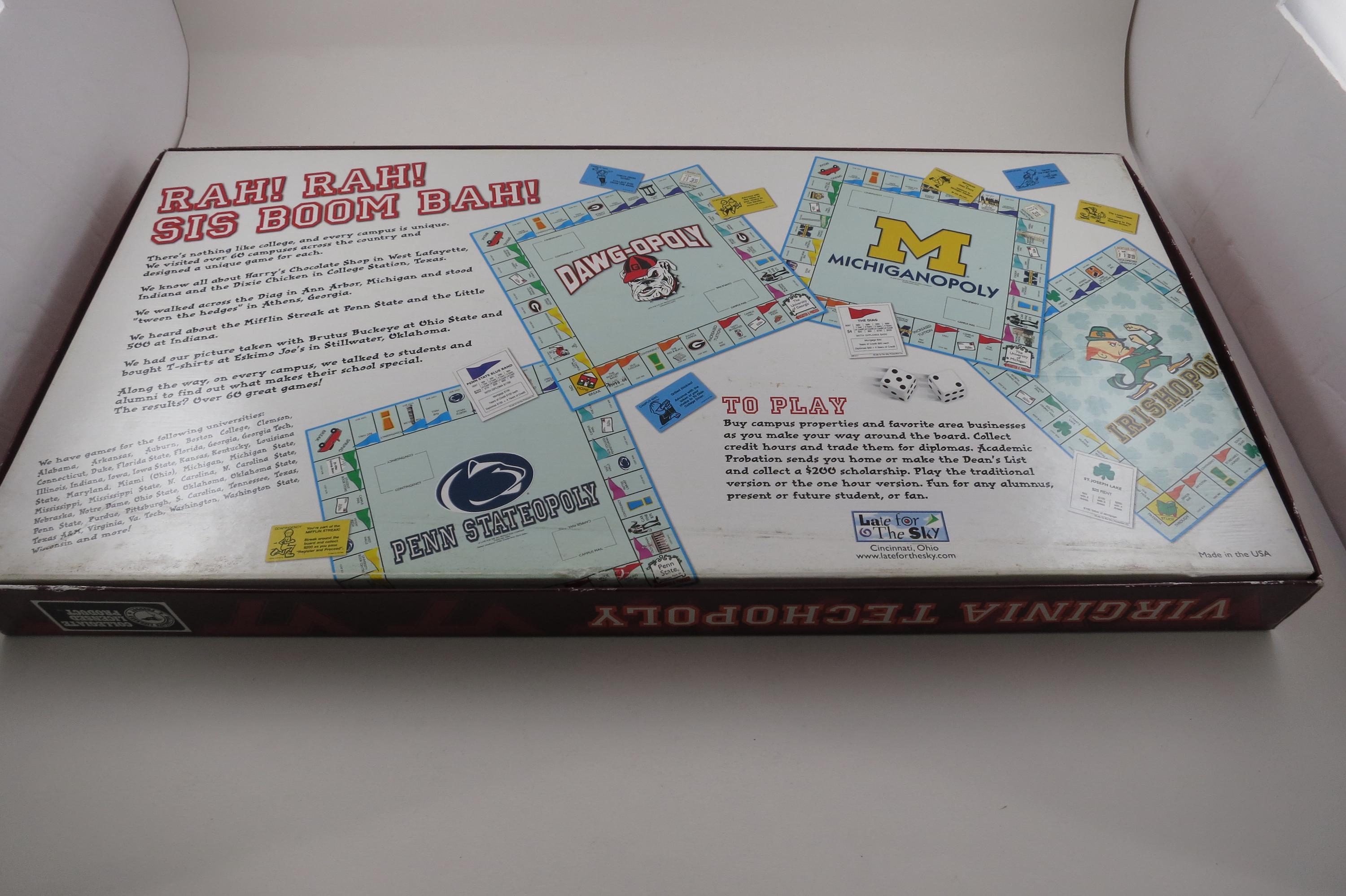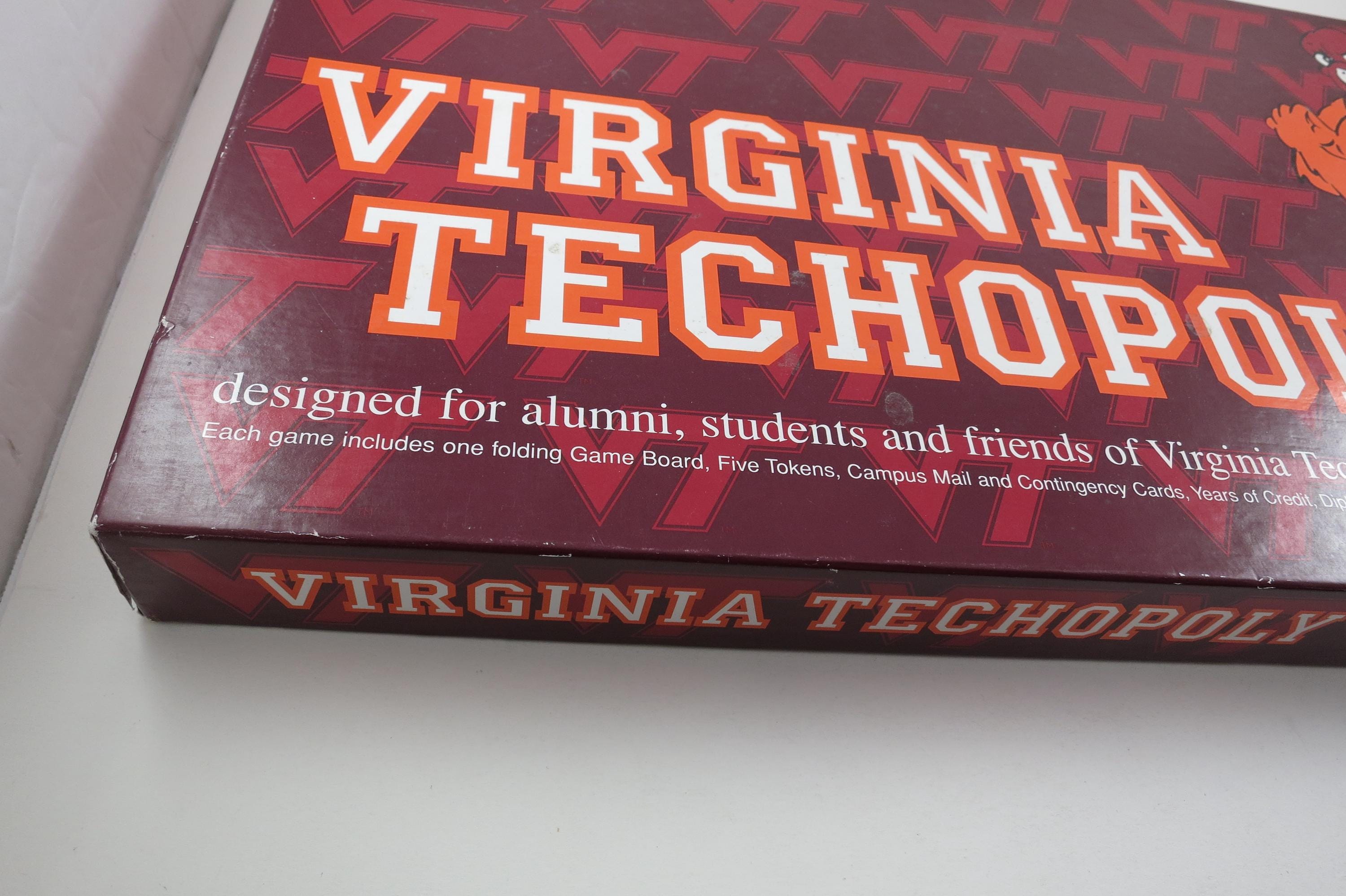 2002 Board Game Virginia Techopoly Late for the Sky Productions VT Hokies Themed Monopoly. Perfect for Hokie Fans!! Box shows wear and has taped corners. Complete less one utility card.