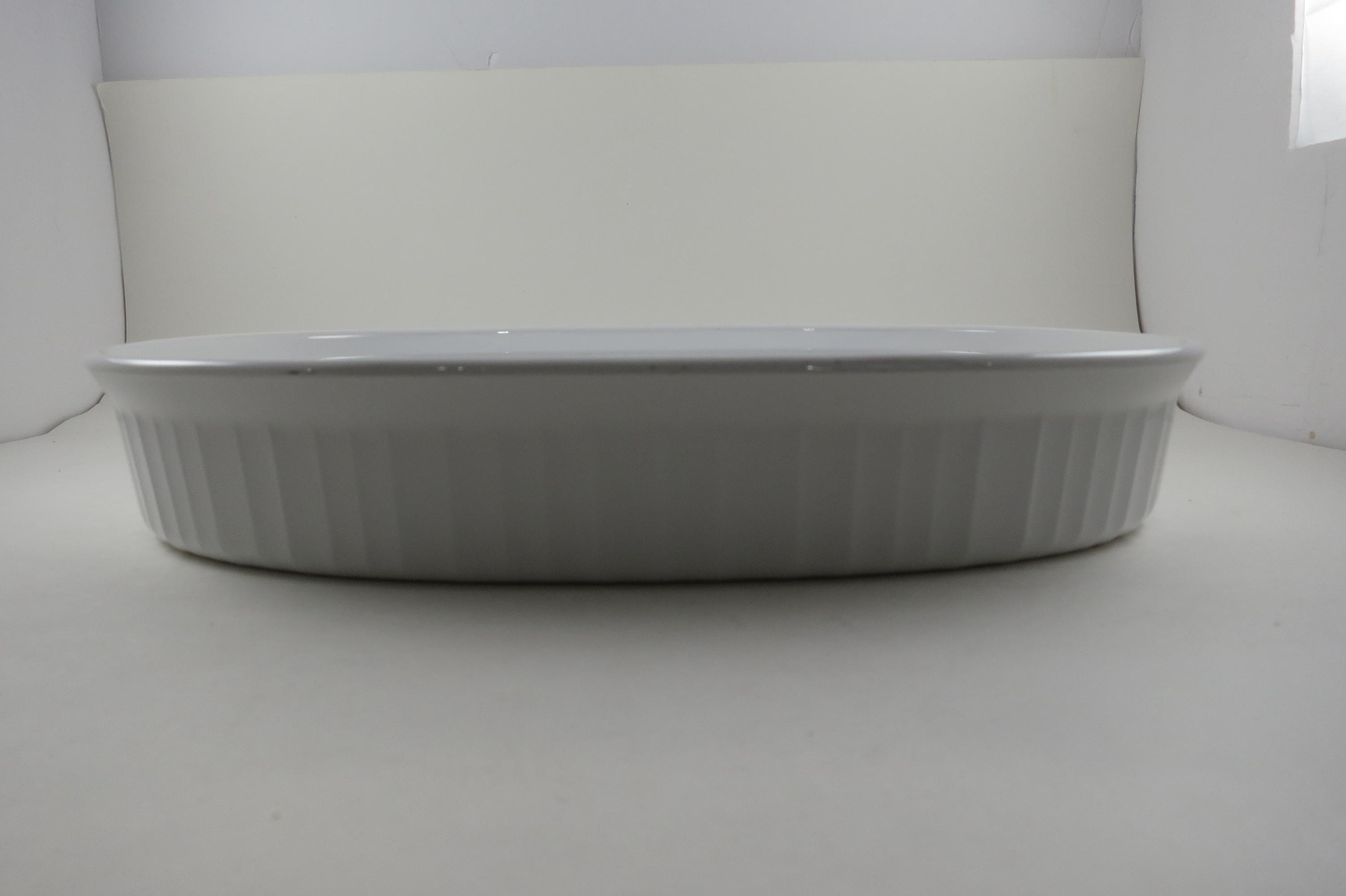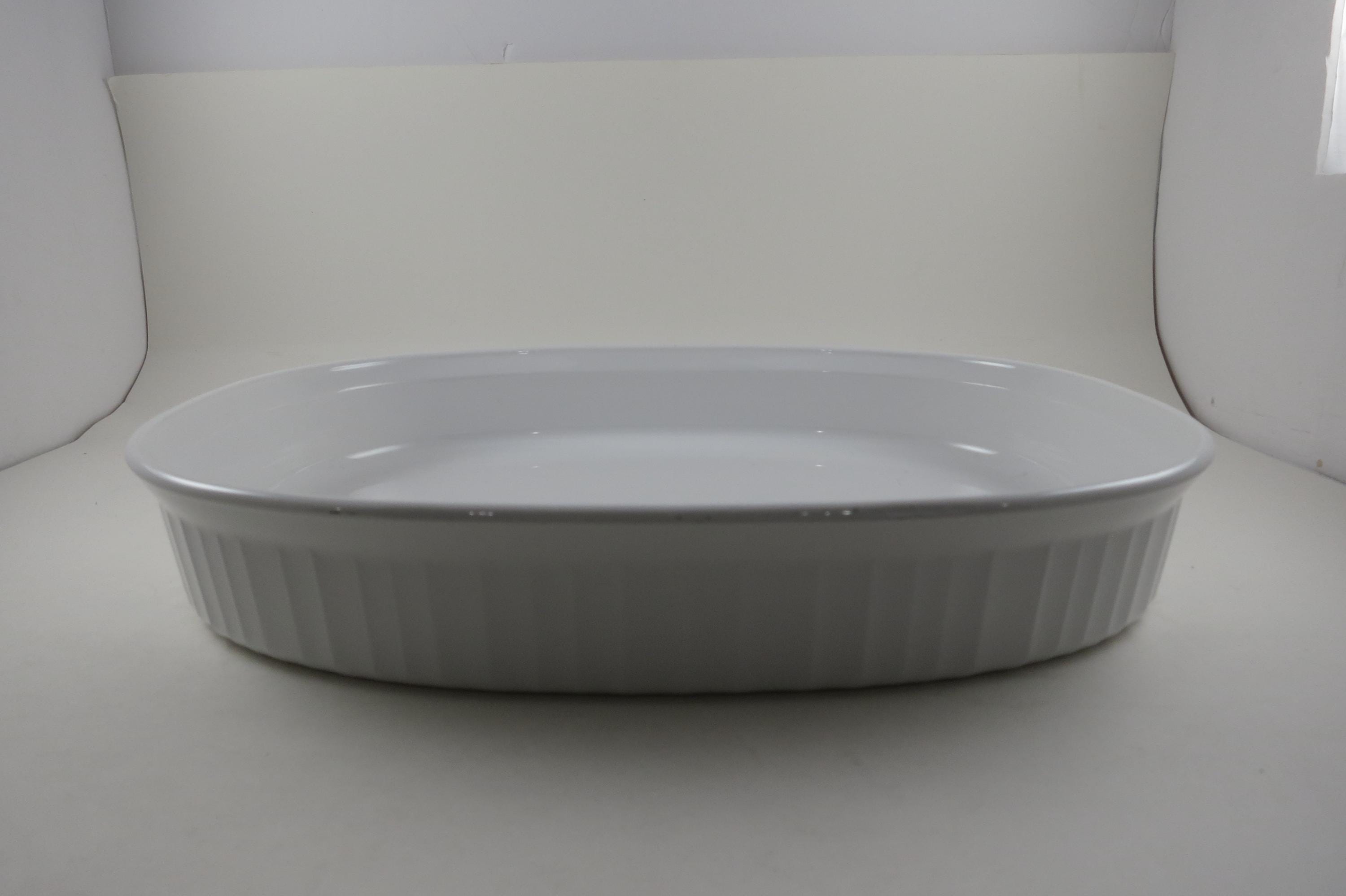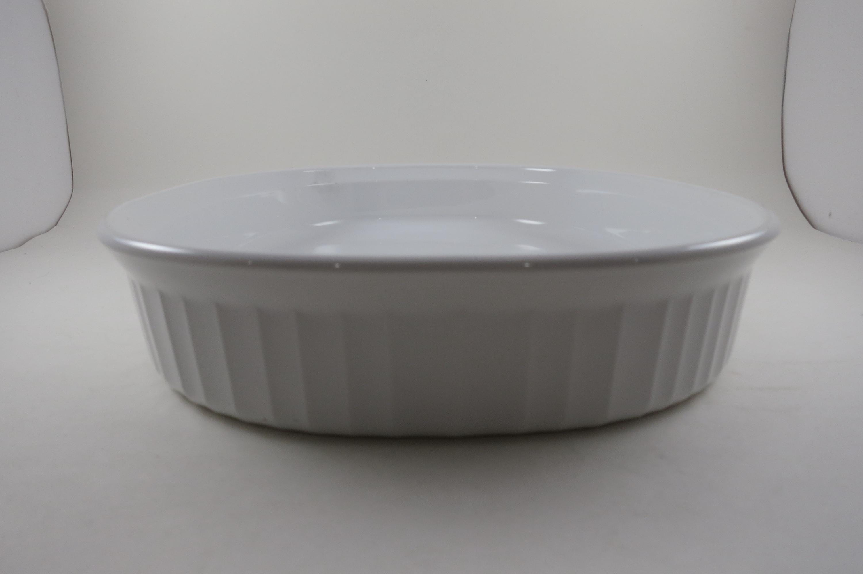 Corelle F-4-B White Oval Casserole Dish: 2.5 Liter French White. No damages, shows light normal use wear, ready to keep using!