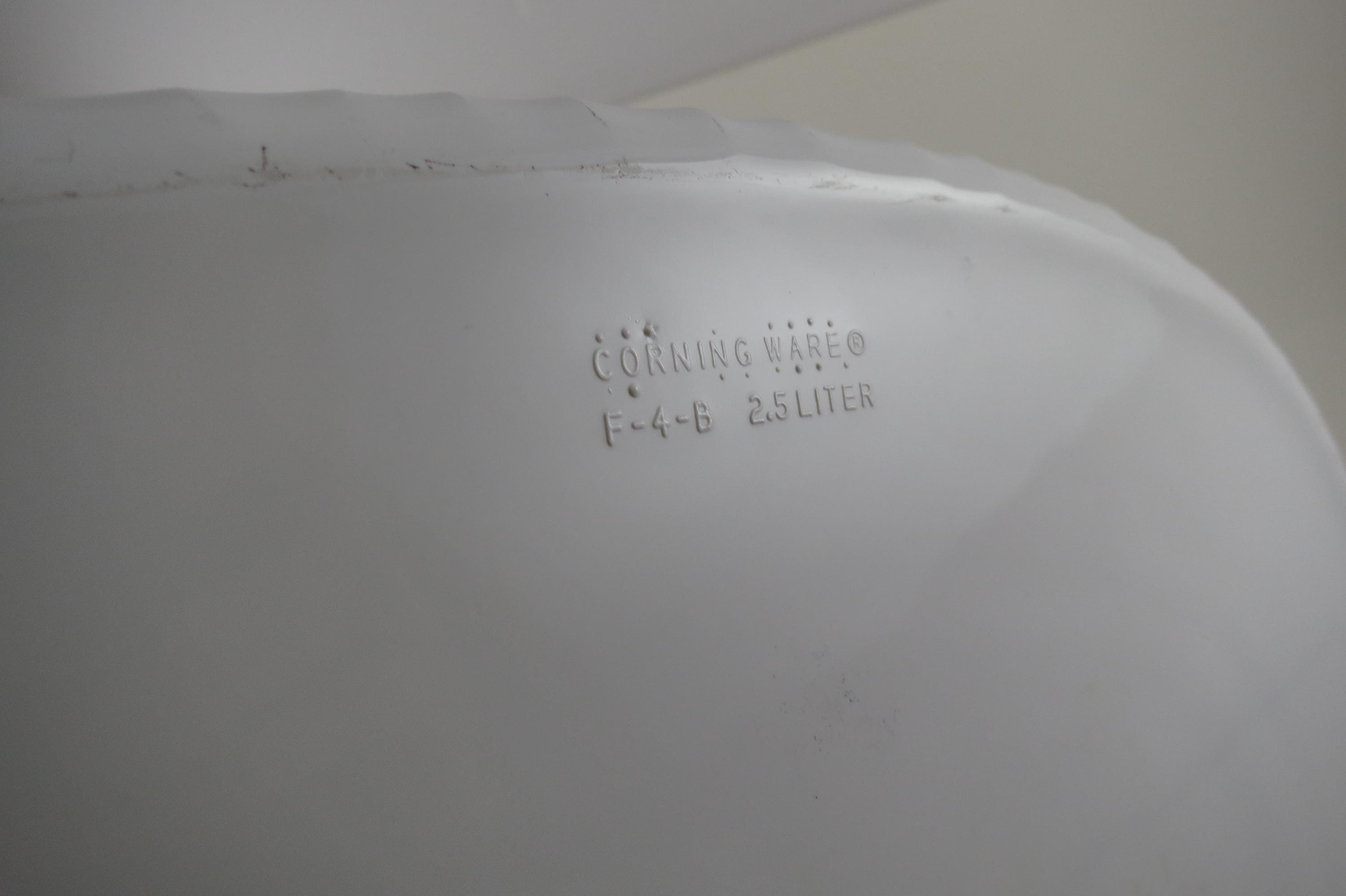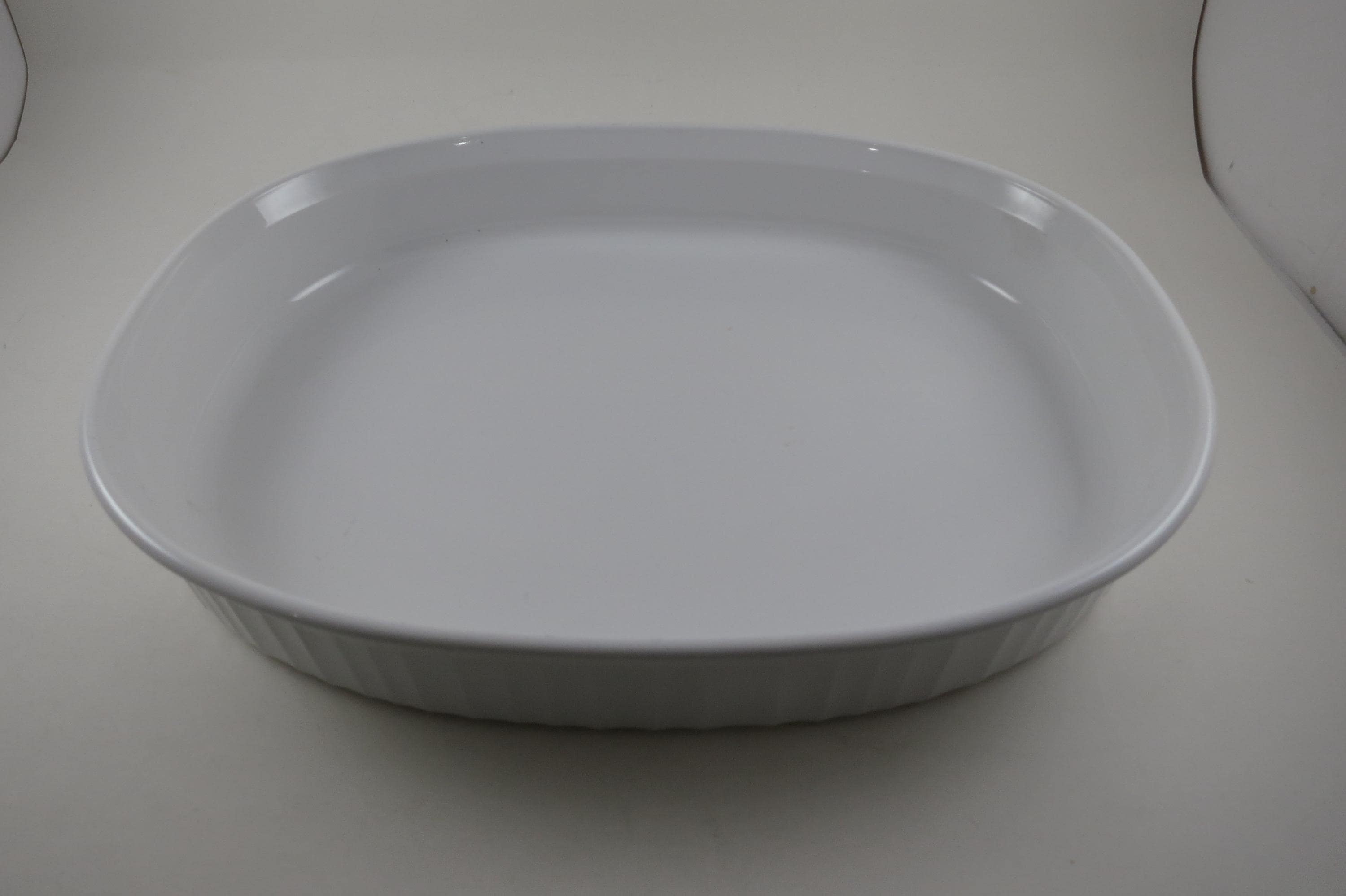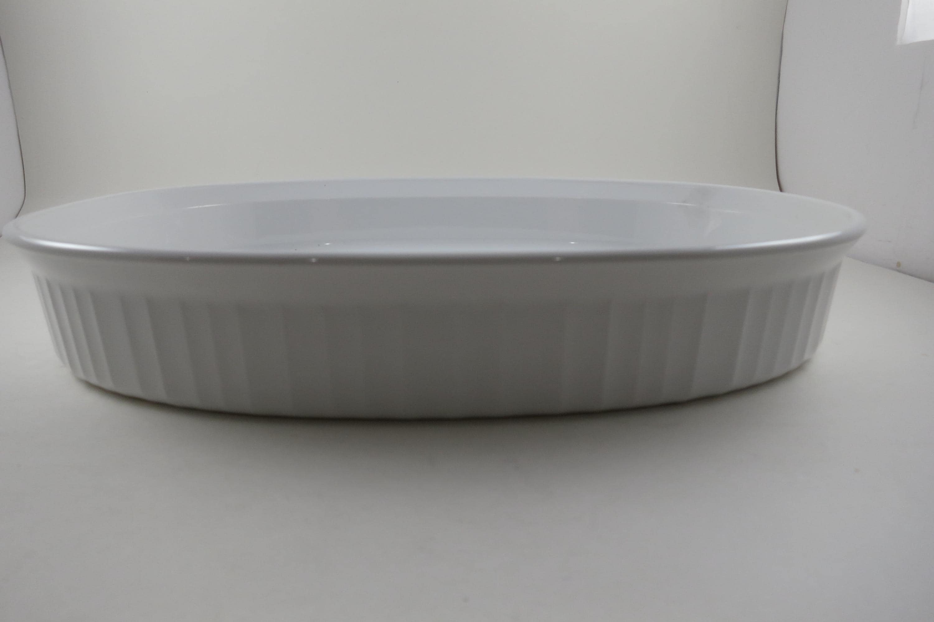 Corelle F-4-B White Oval Casserole Dish: 2.5 Liter French White. No damages, shows light normal use wear, ready to keep using!