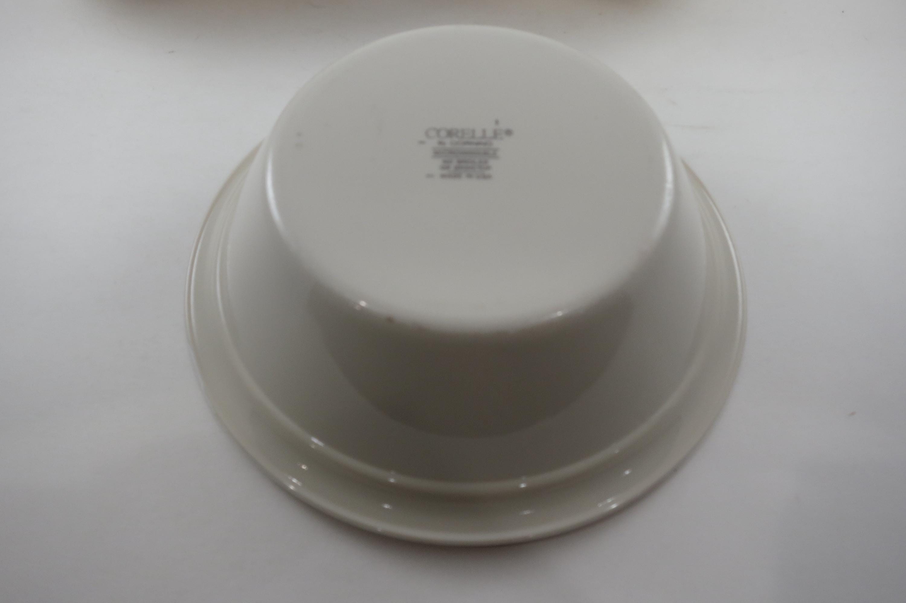 Vintage Corelle Abundance Beige Fruit Bowls Set of 3. All four are in very good condition with some edge wear.