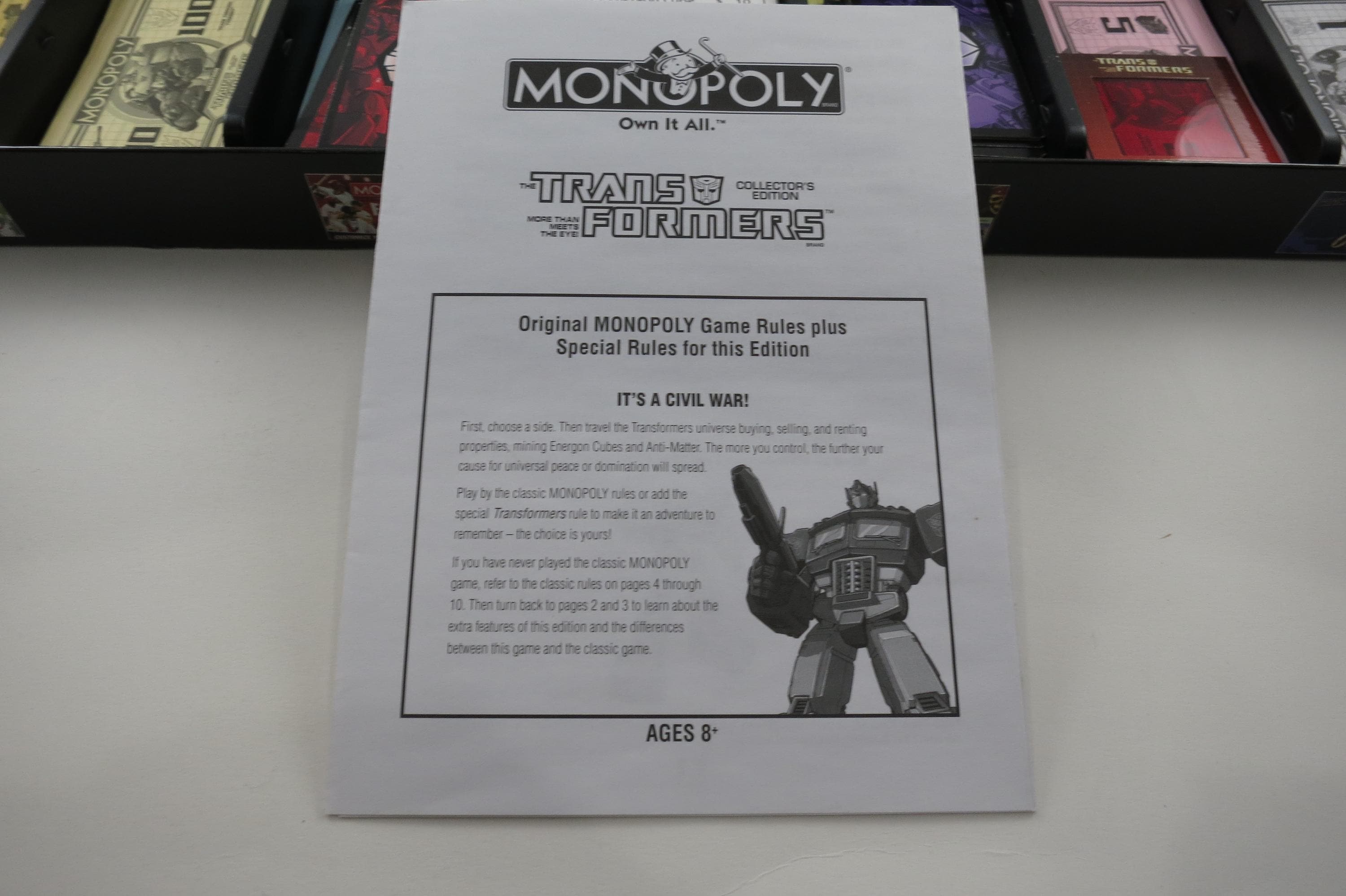 Vintage 2006 Transformers Monopoly Game Limited Collectors Edition 100% Complete. Great Monopoly Version with custom everything!!