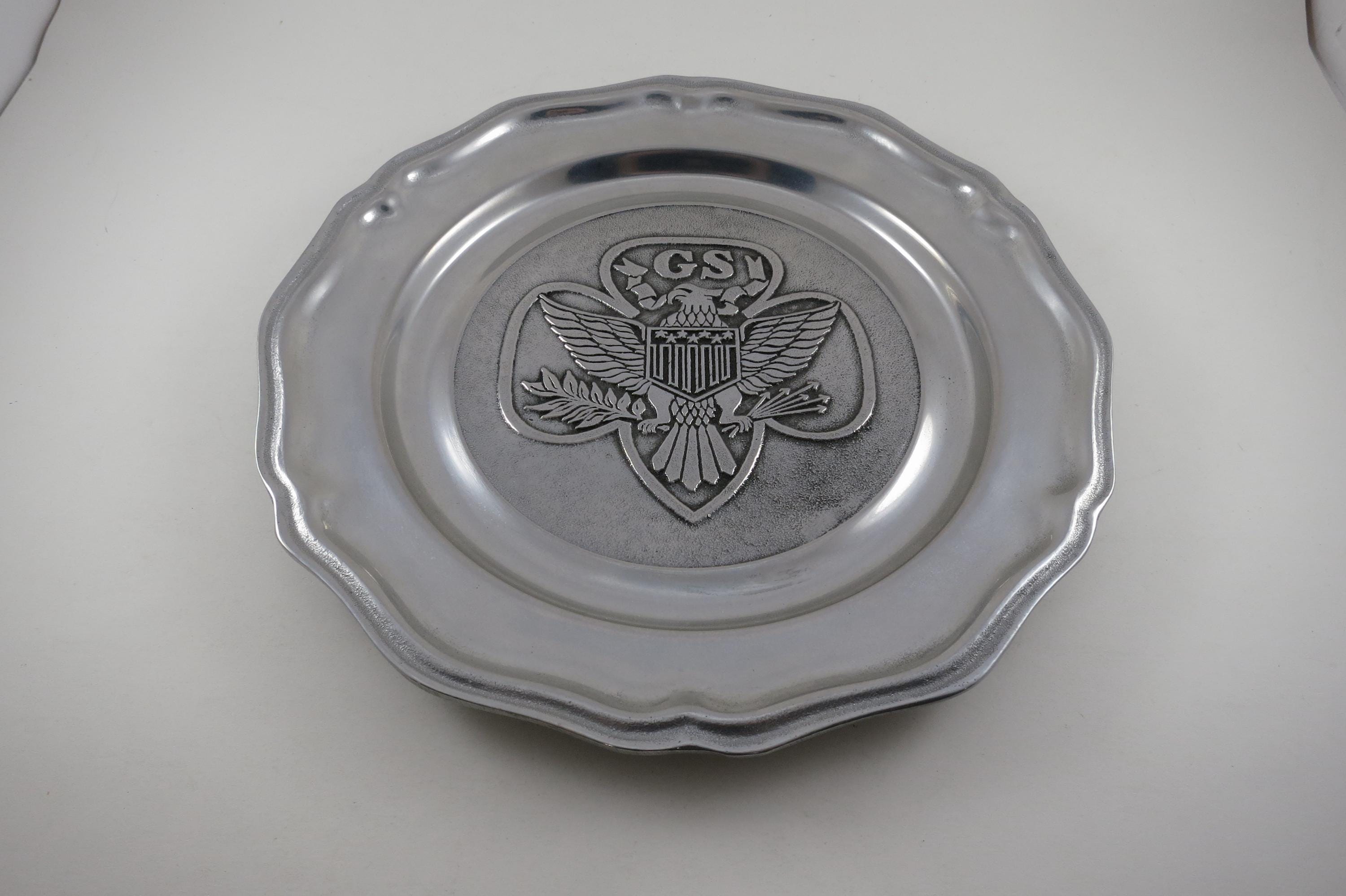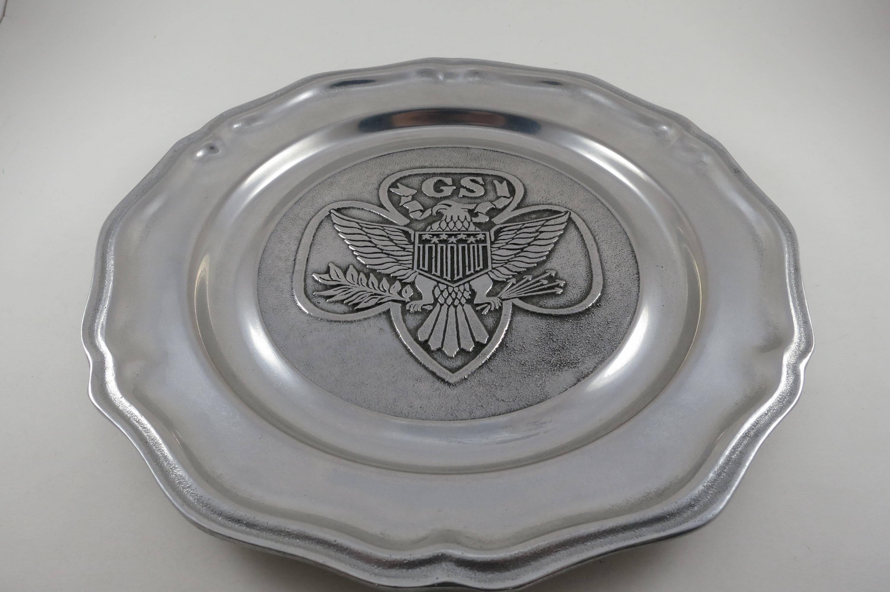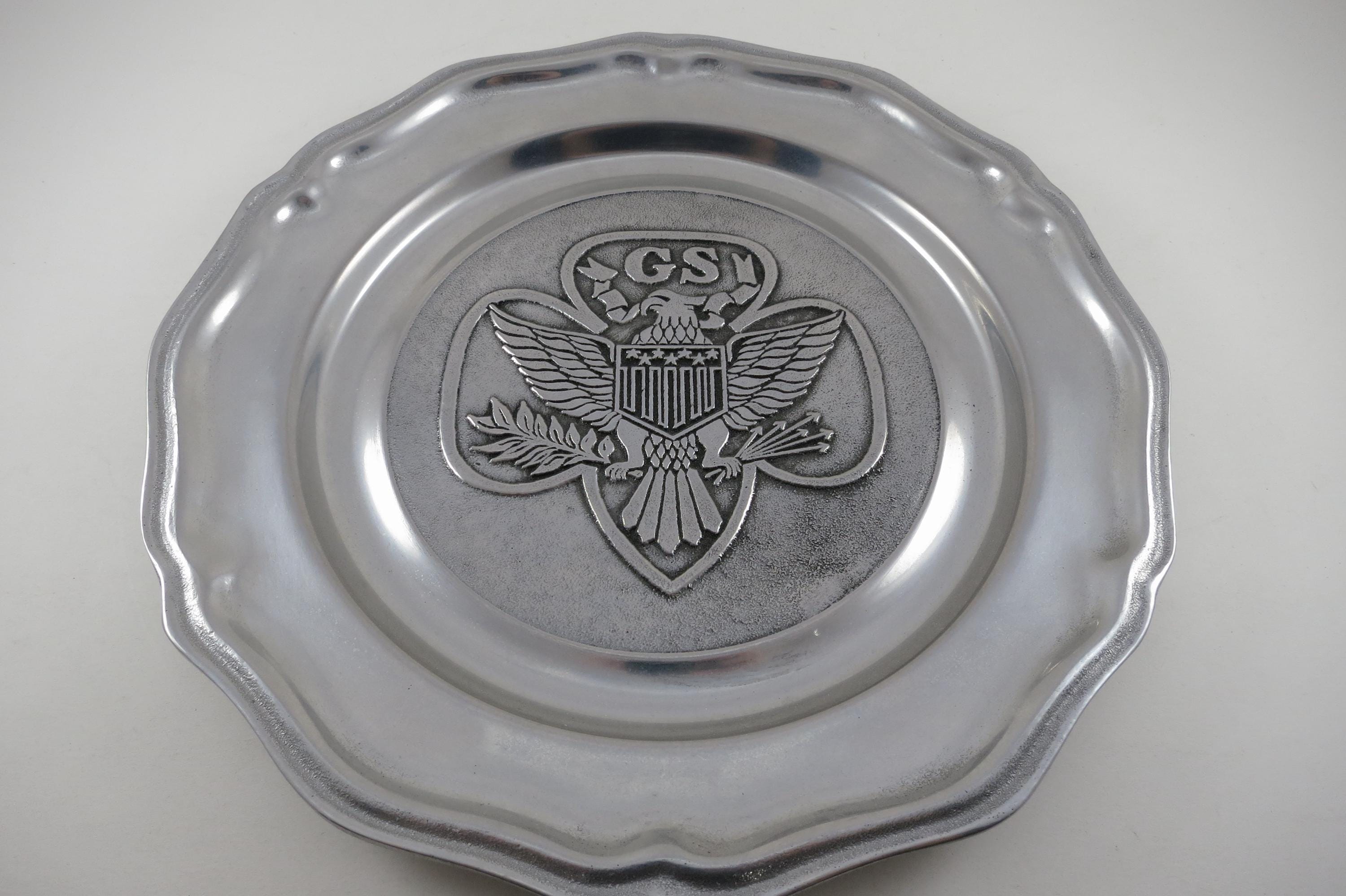 Vintage Wilton Mount Joy PA 10 Inch Pewter Girl Scouts Eagle Decorative Plate