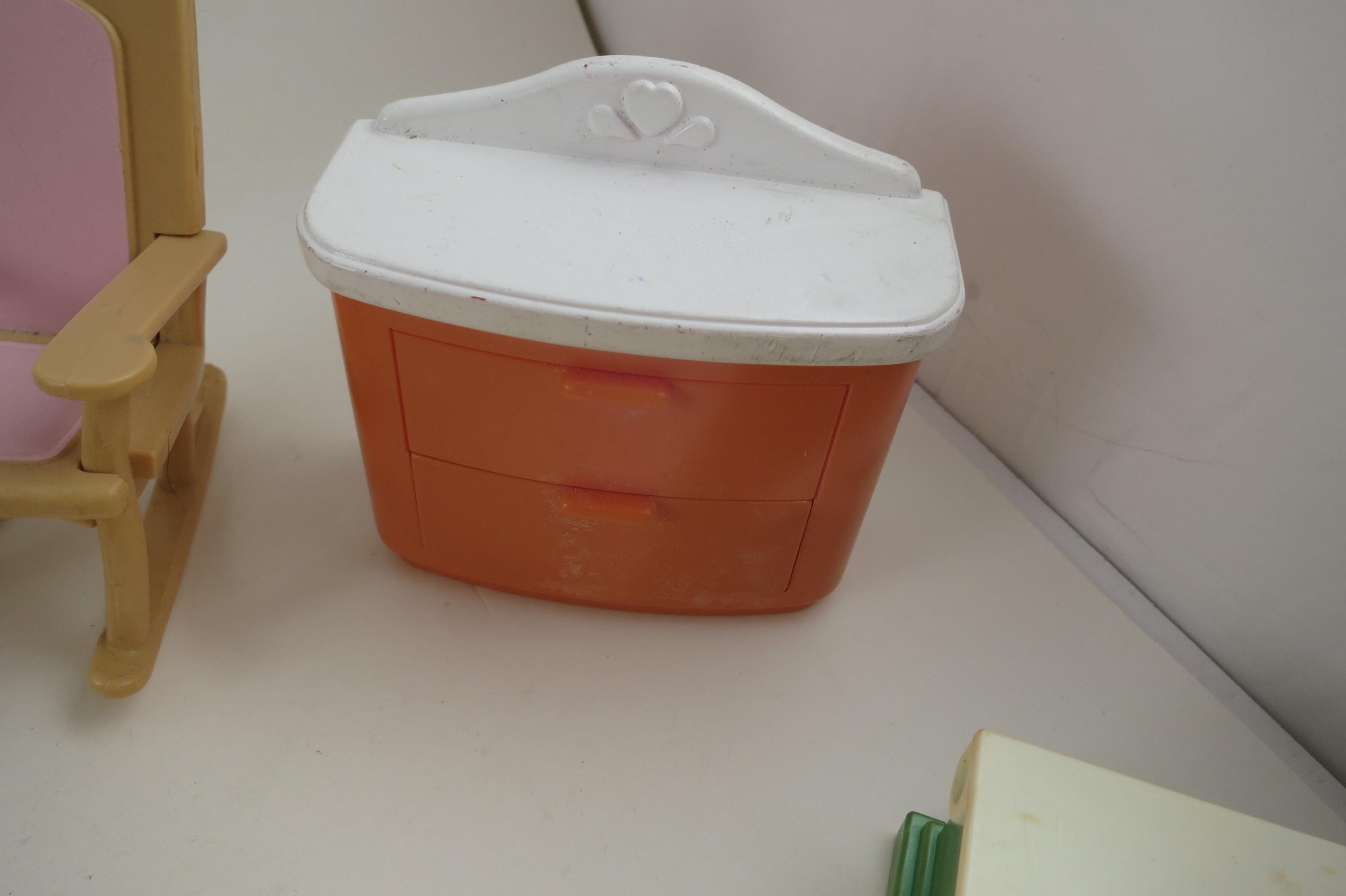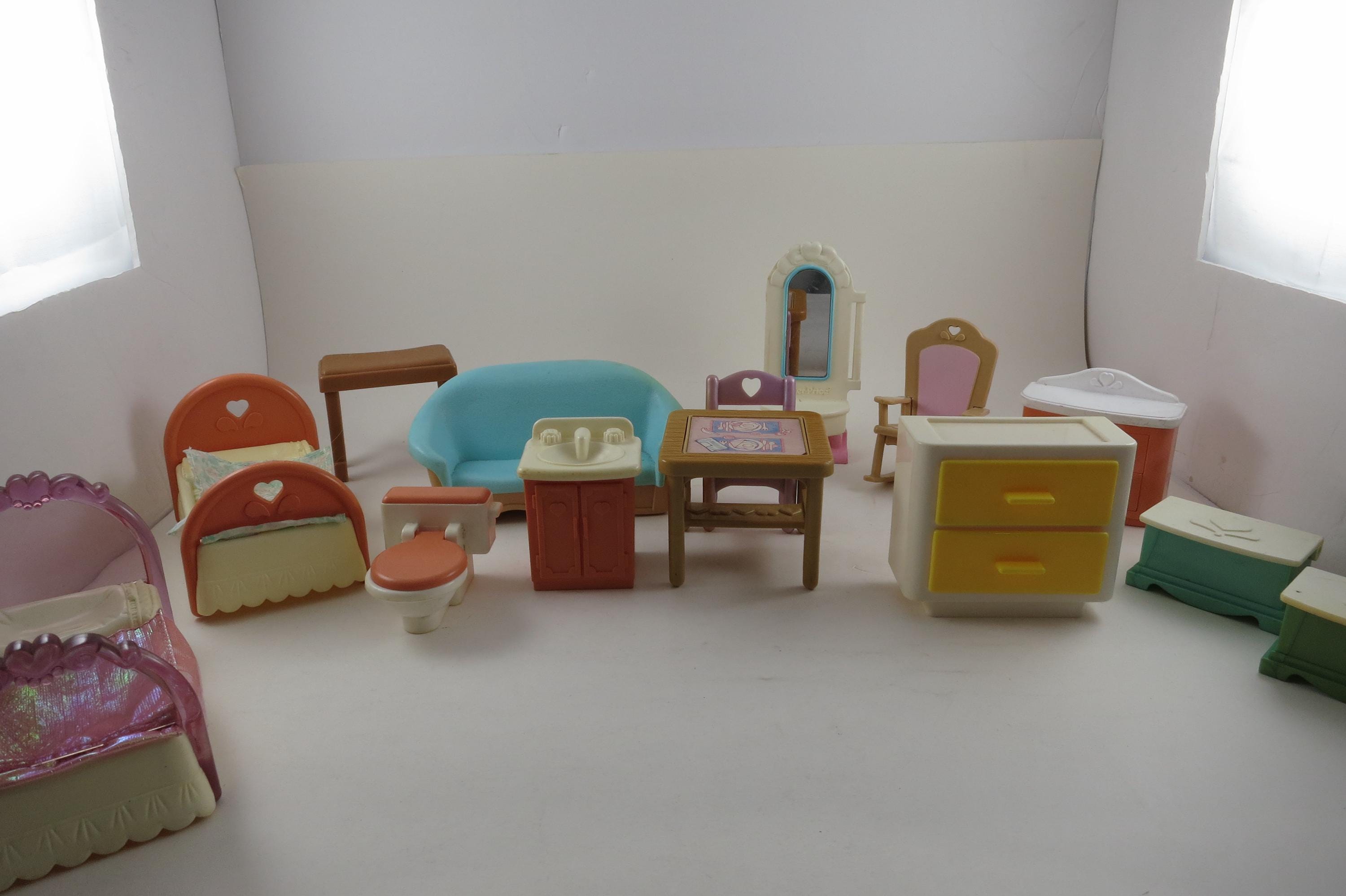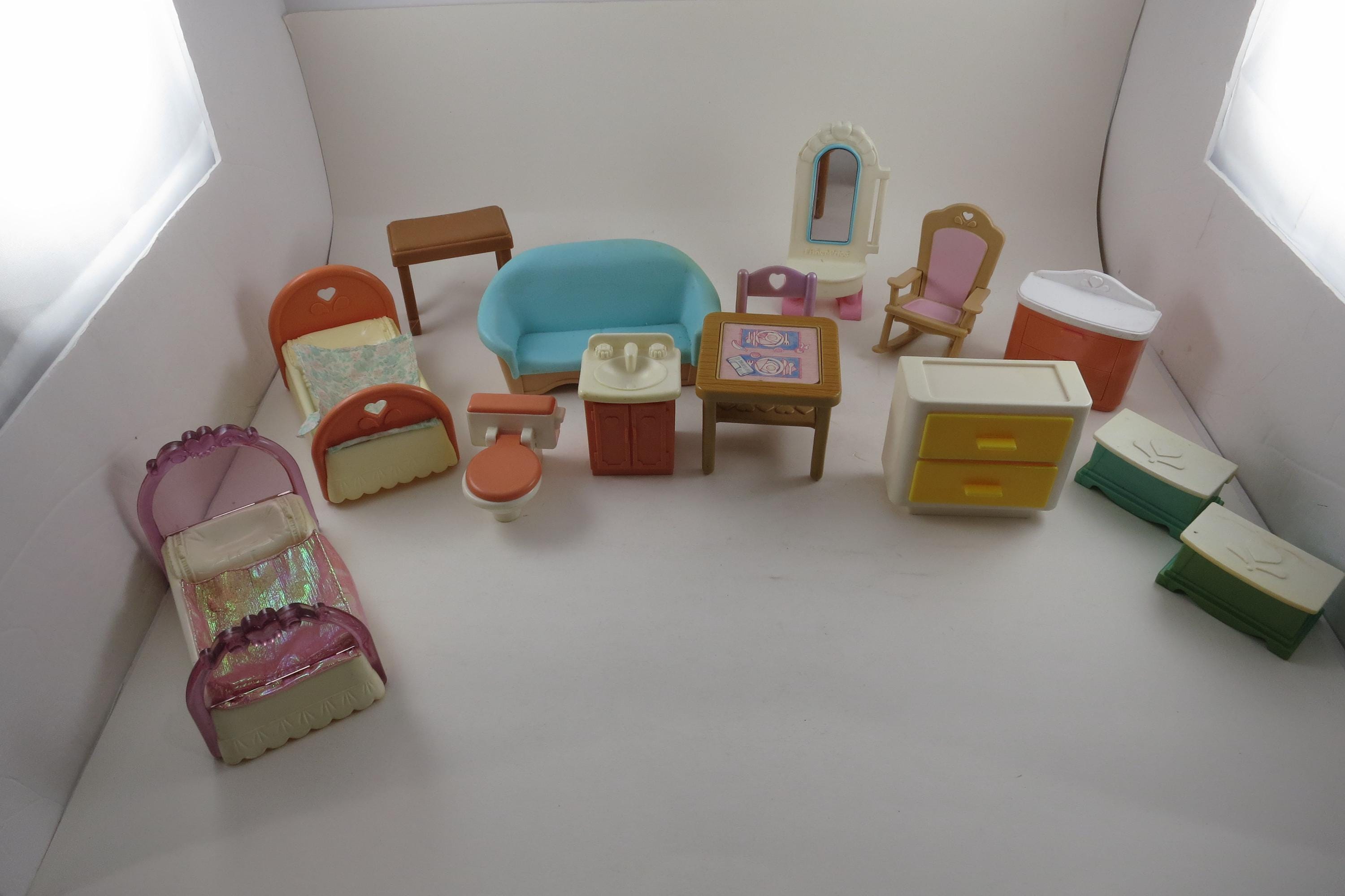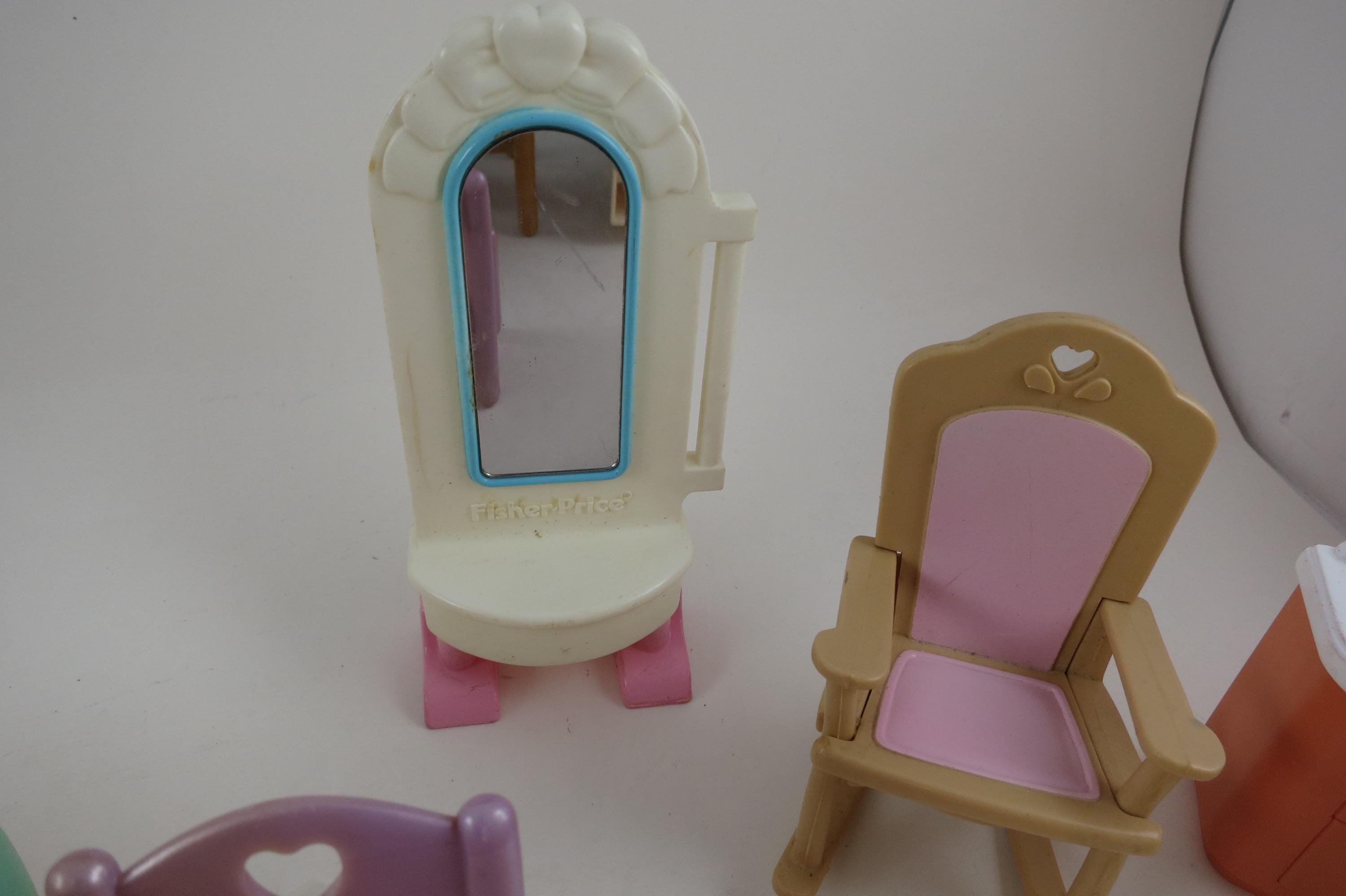 Vintage 90's Doll House Furniture Lot of 14 Pieces Fisher Price. Includes the following