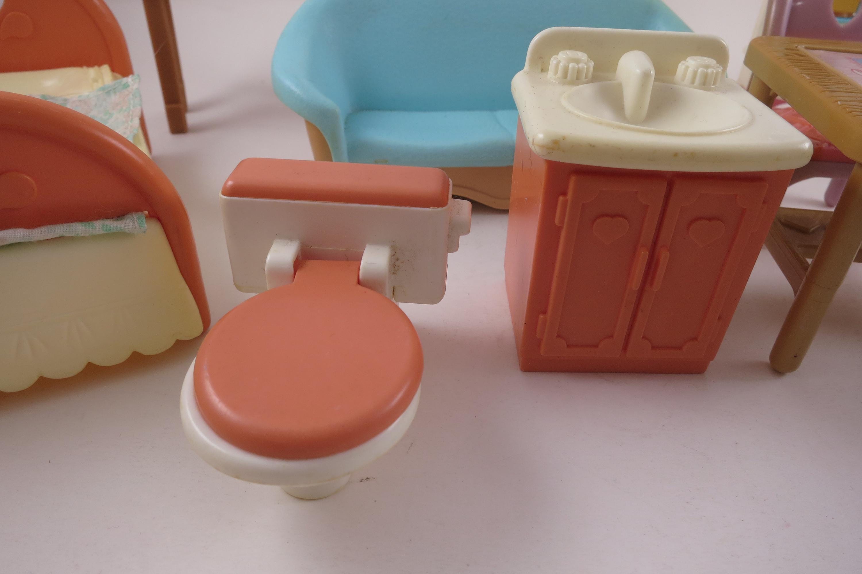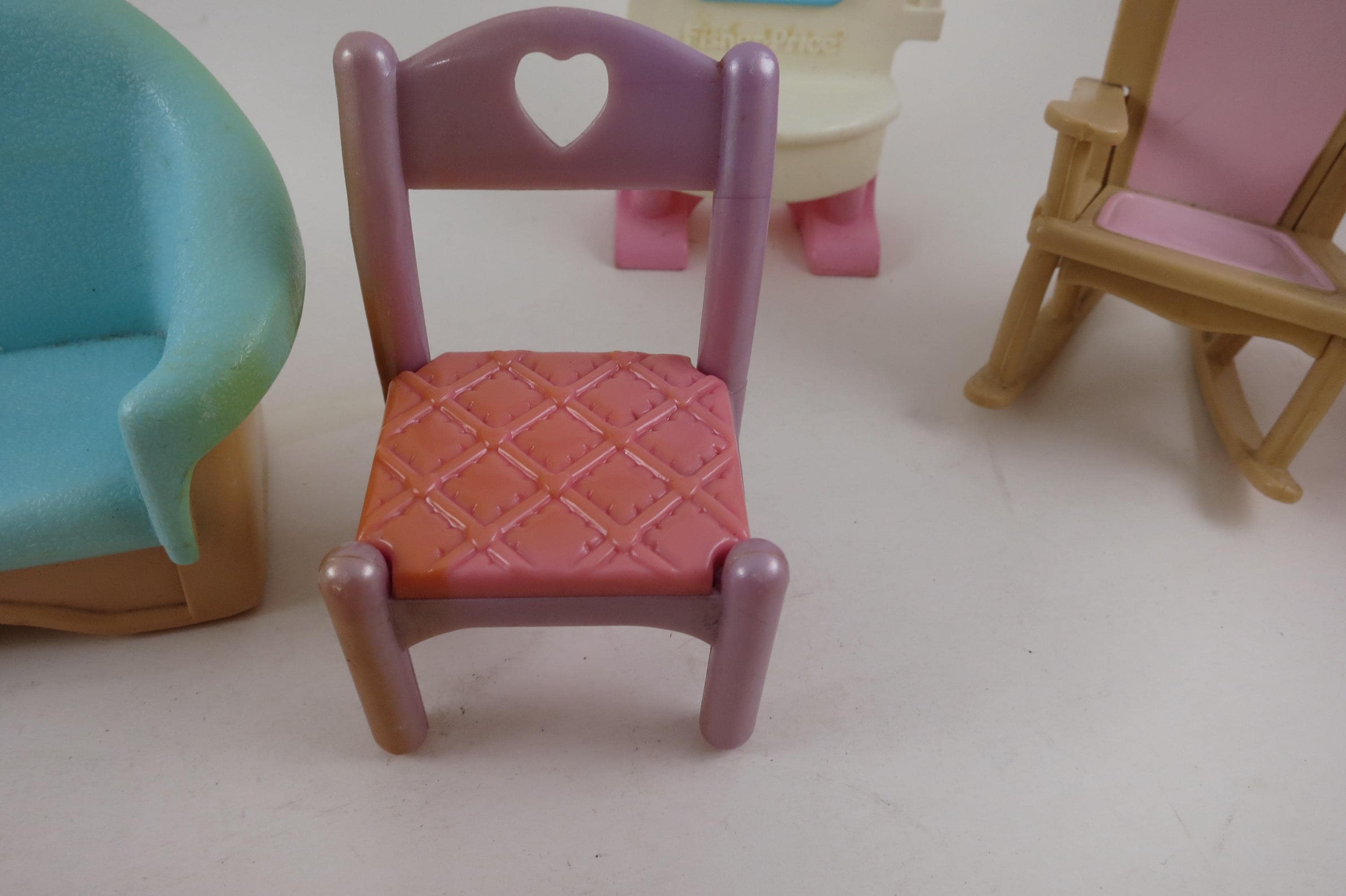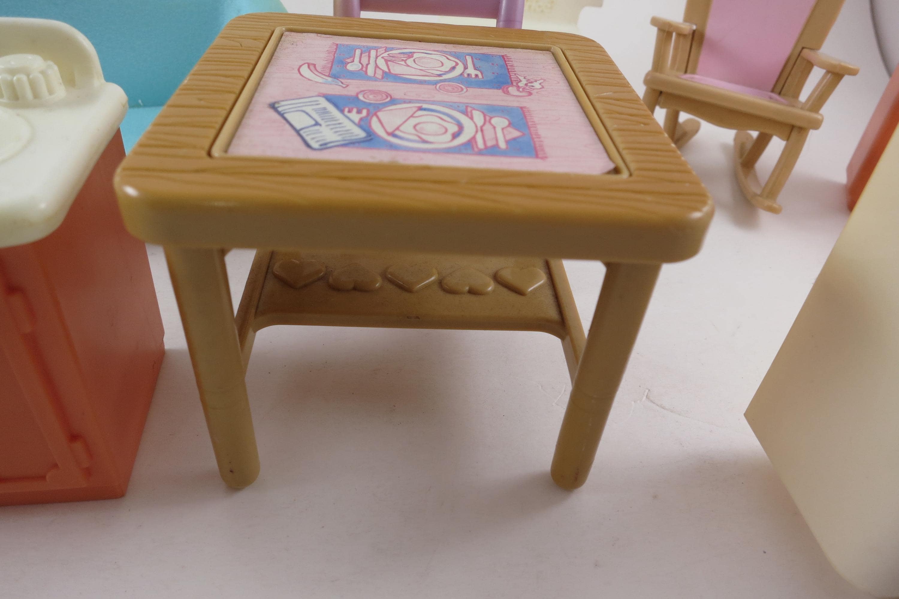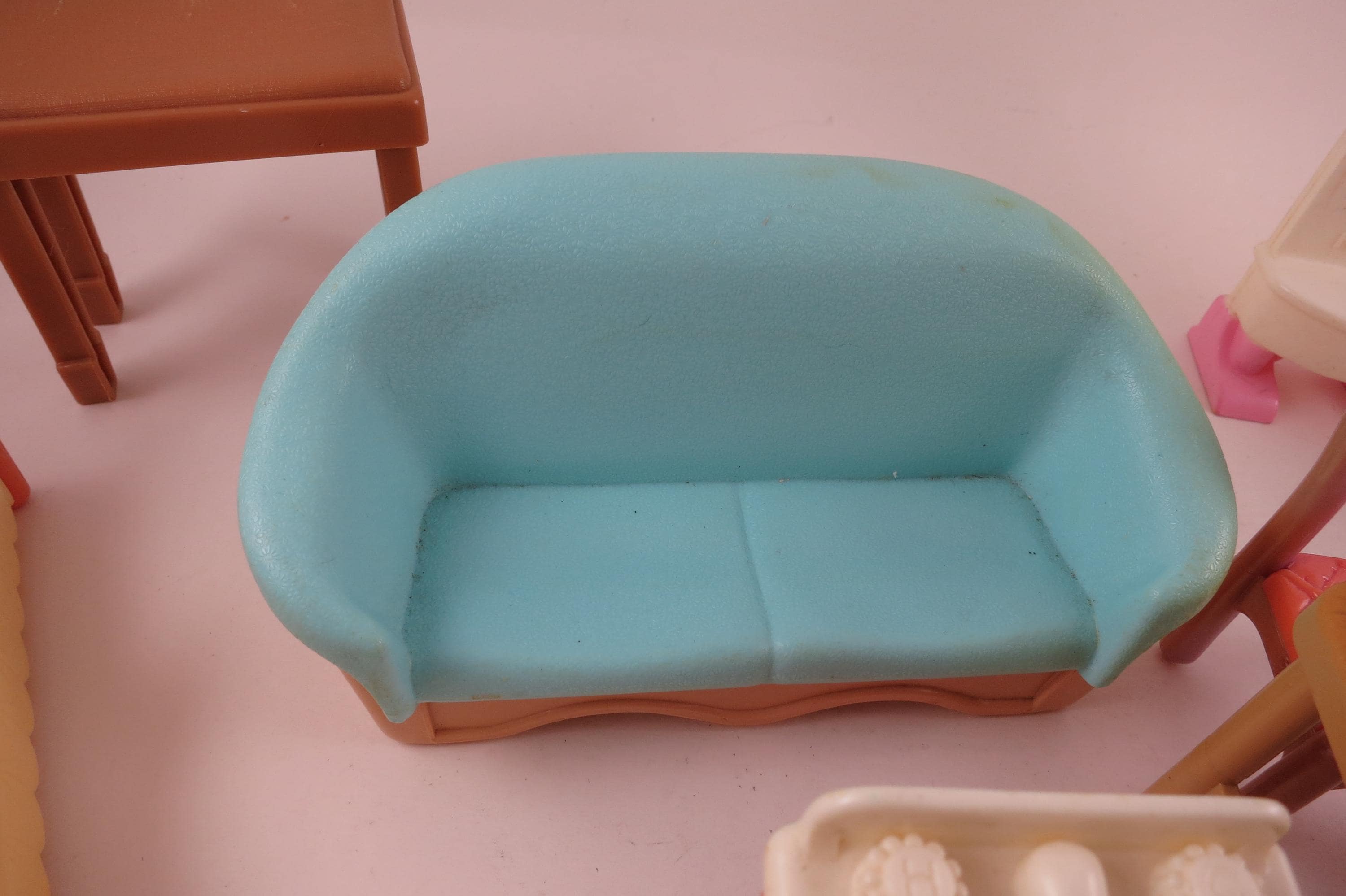 Vintage 90's Doll House Furniture Lot of 14 Pieces Fisher Price. Includes the following