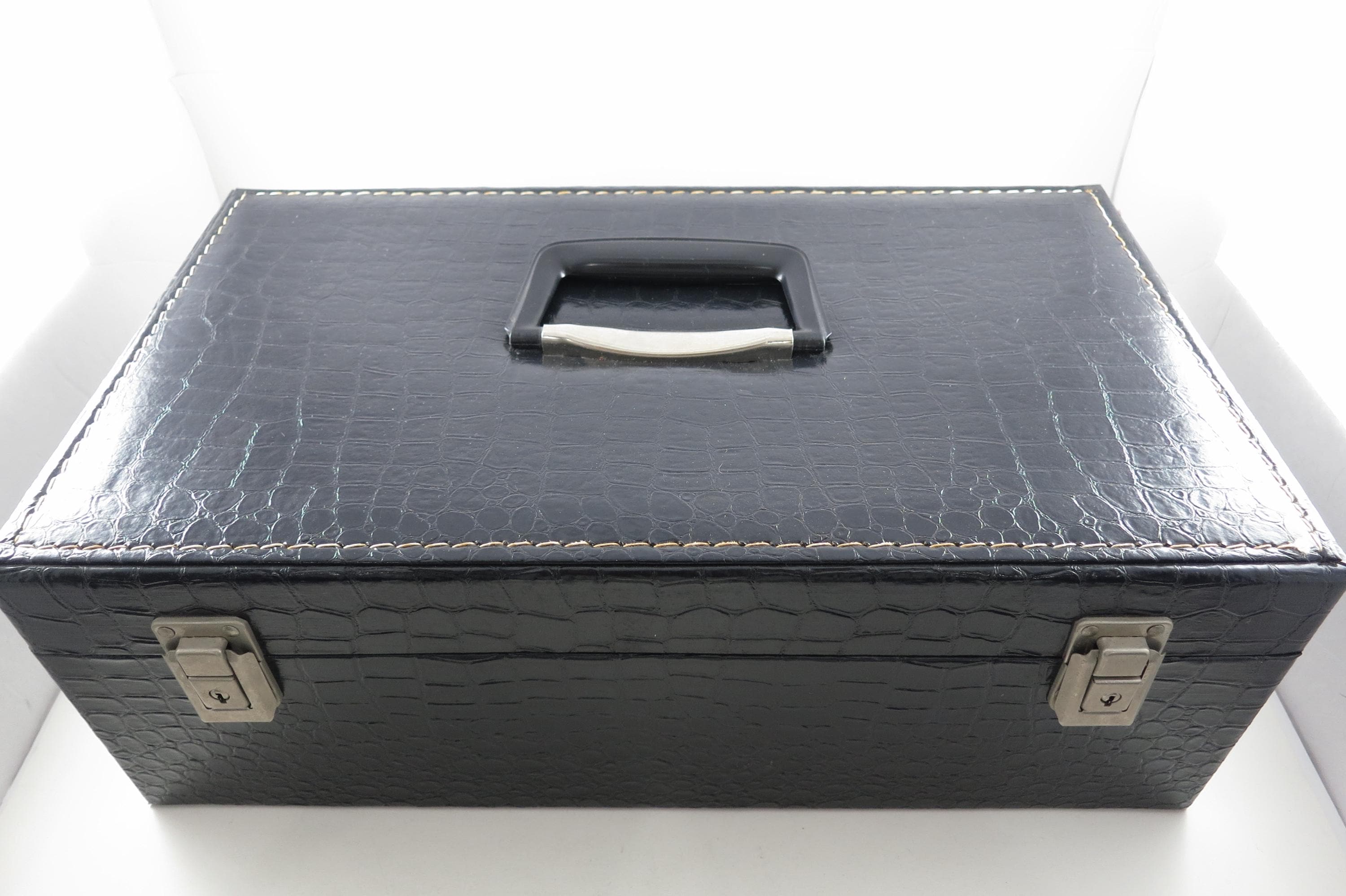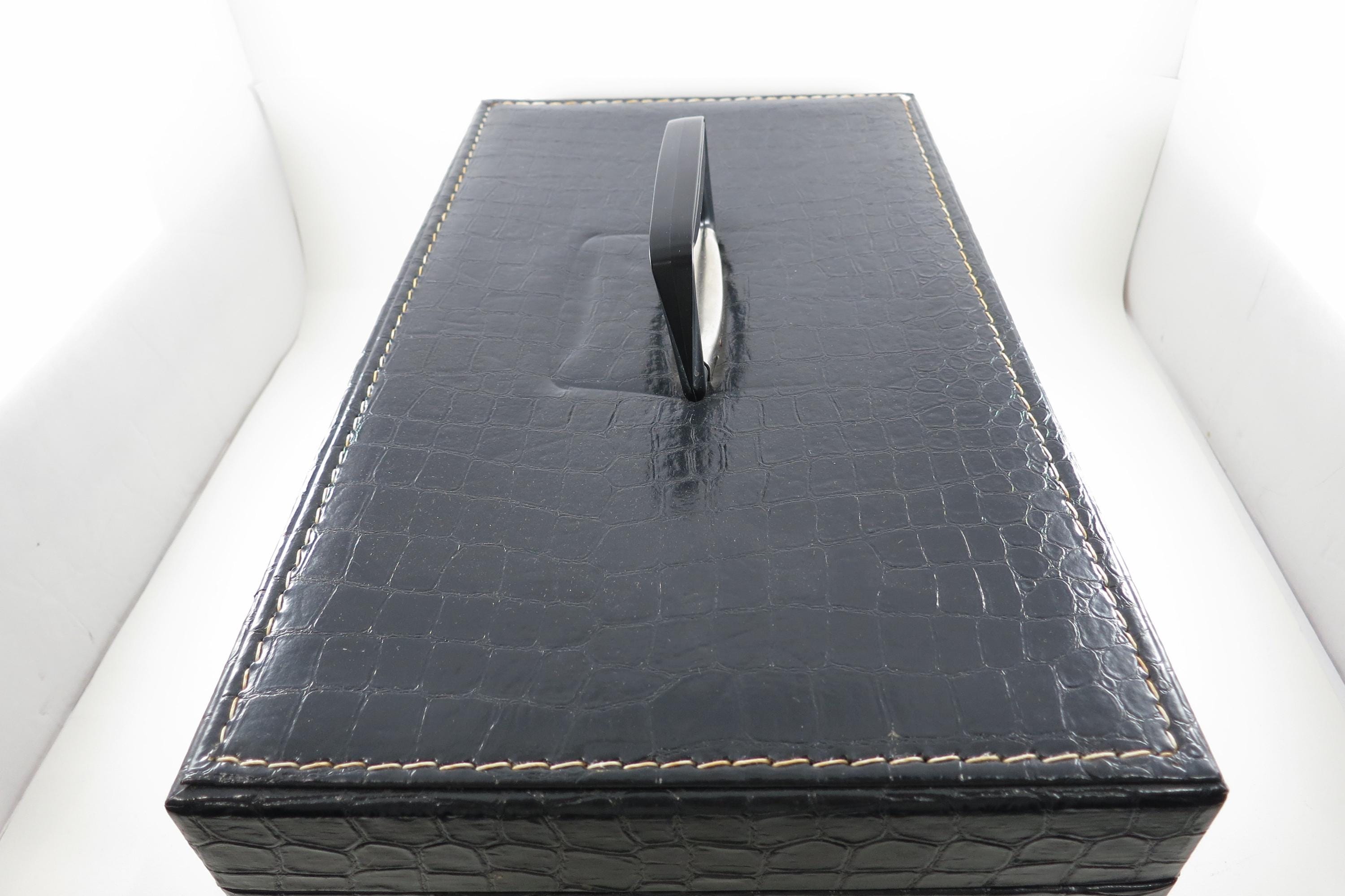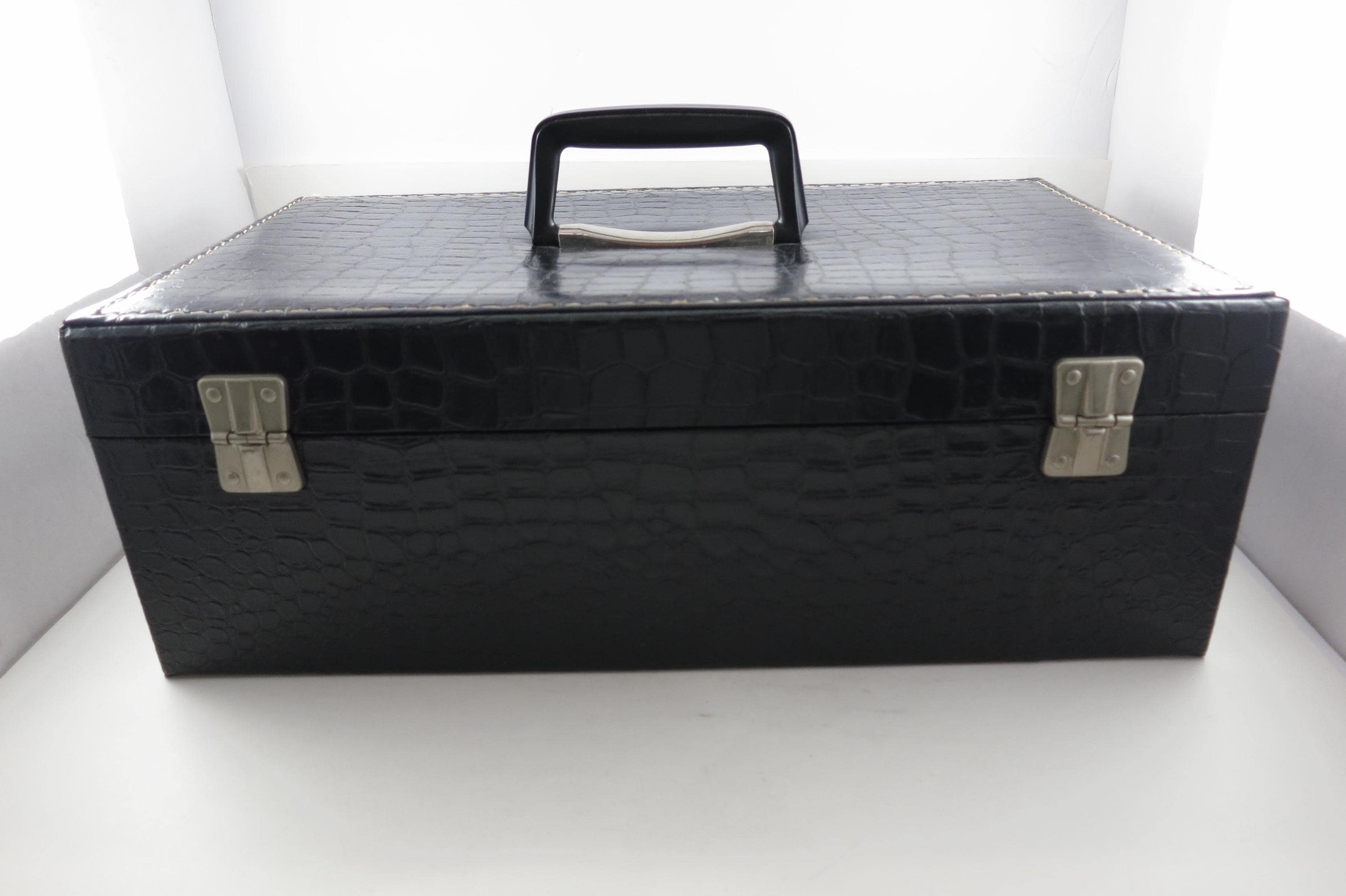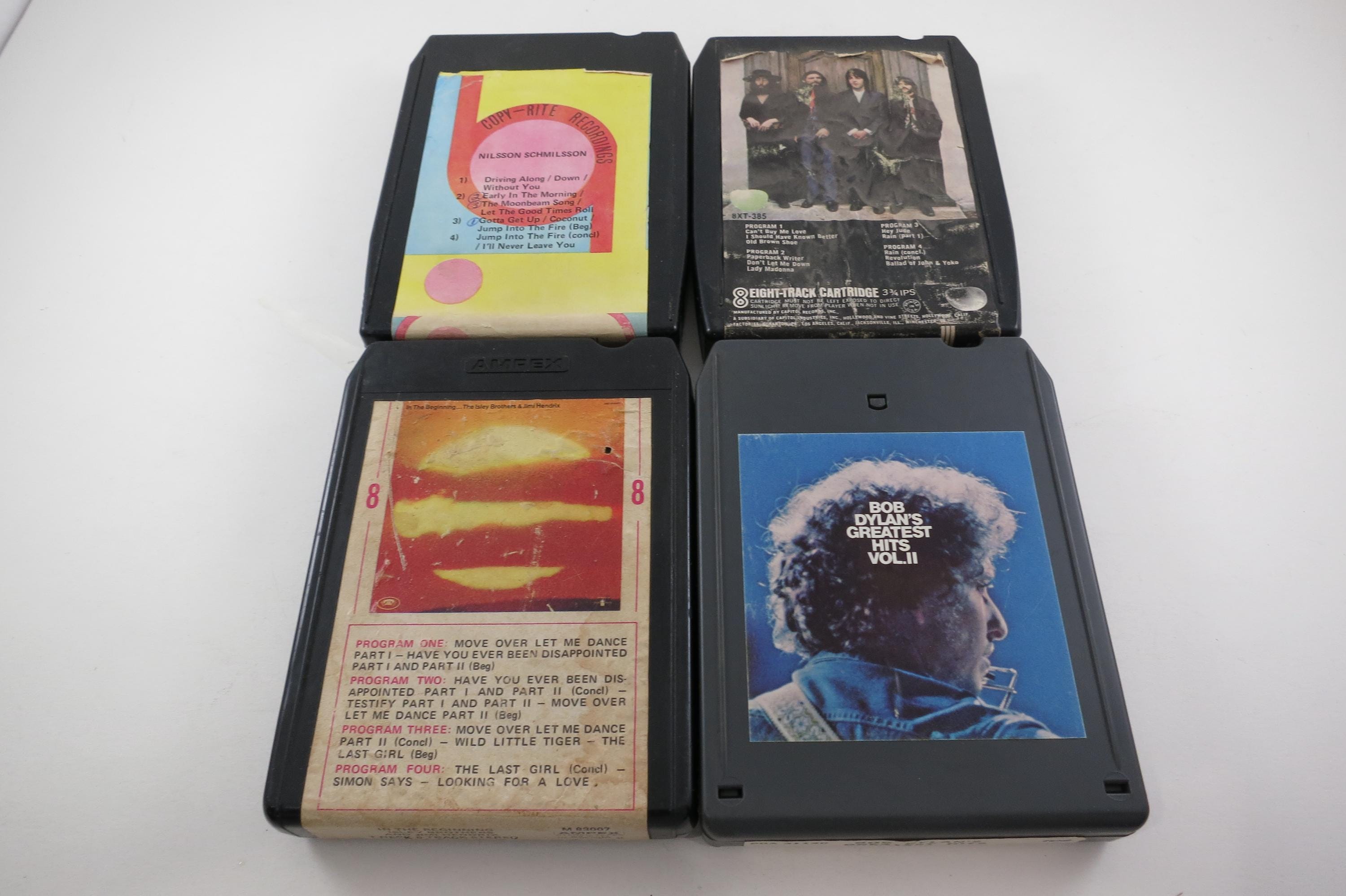 Vintage 1970's Black Faux Leather 8 Track Case with 36 Rock 8 Track Tapes Joel Crosby Beatles Cream Dylan More.