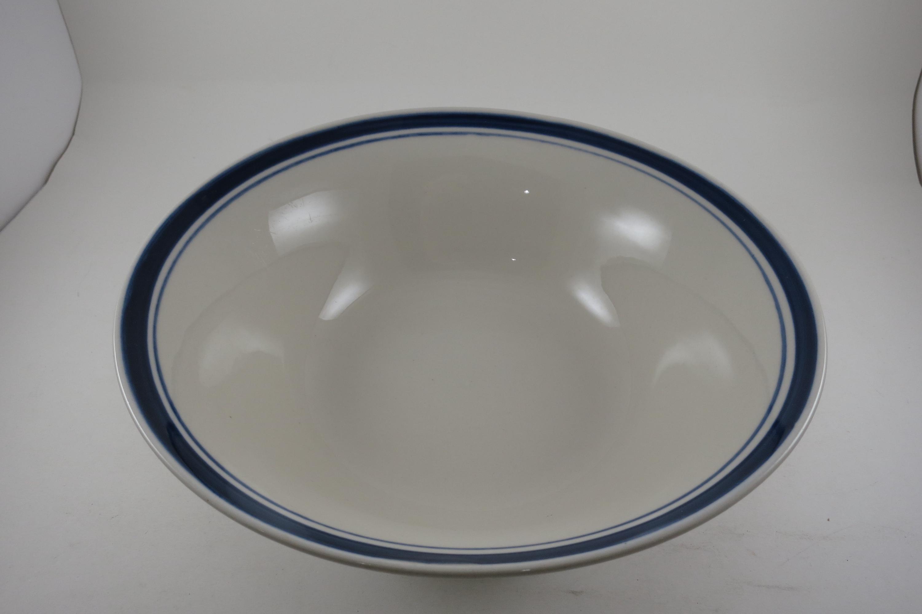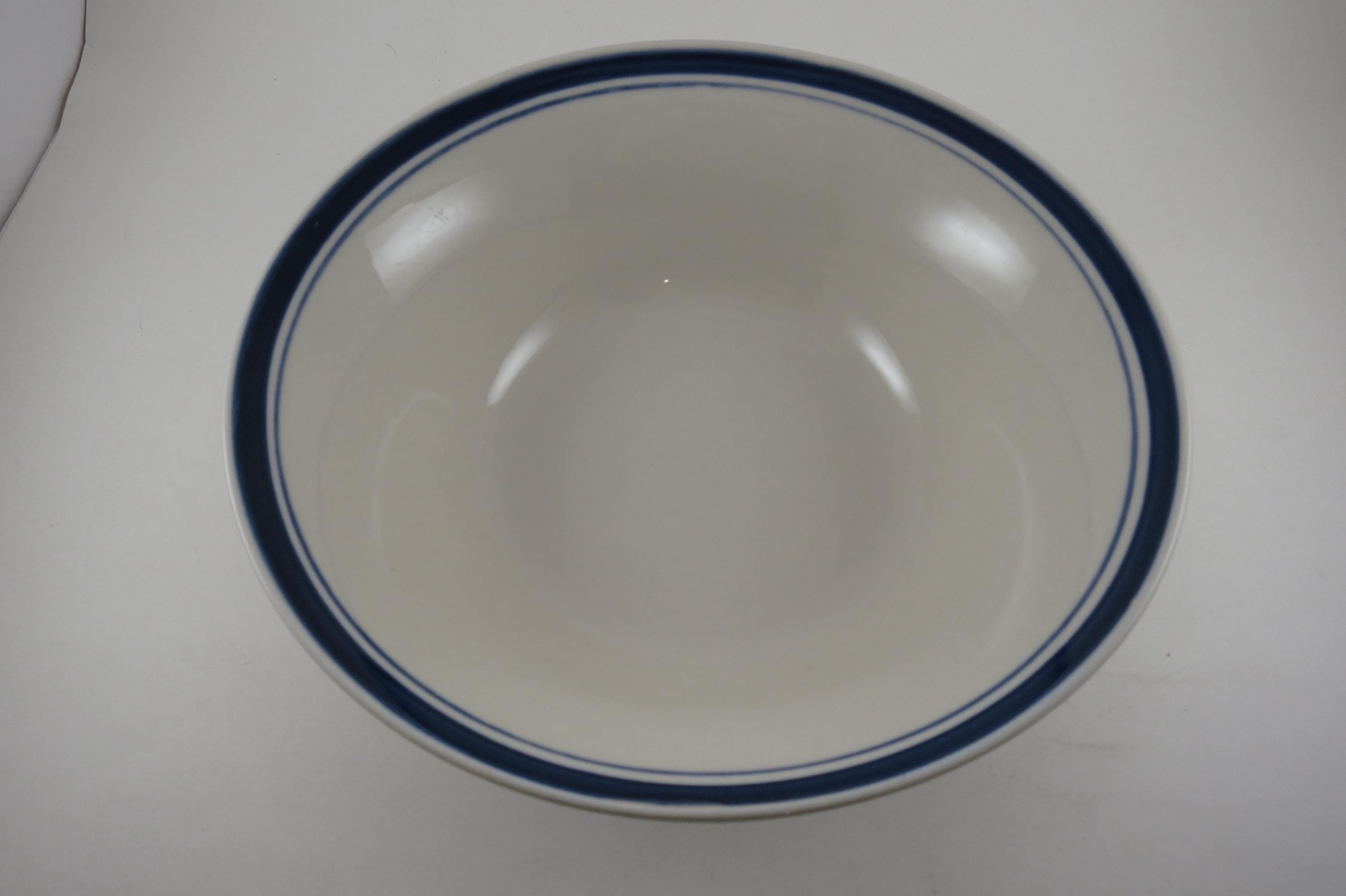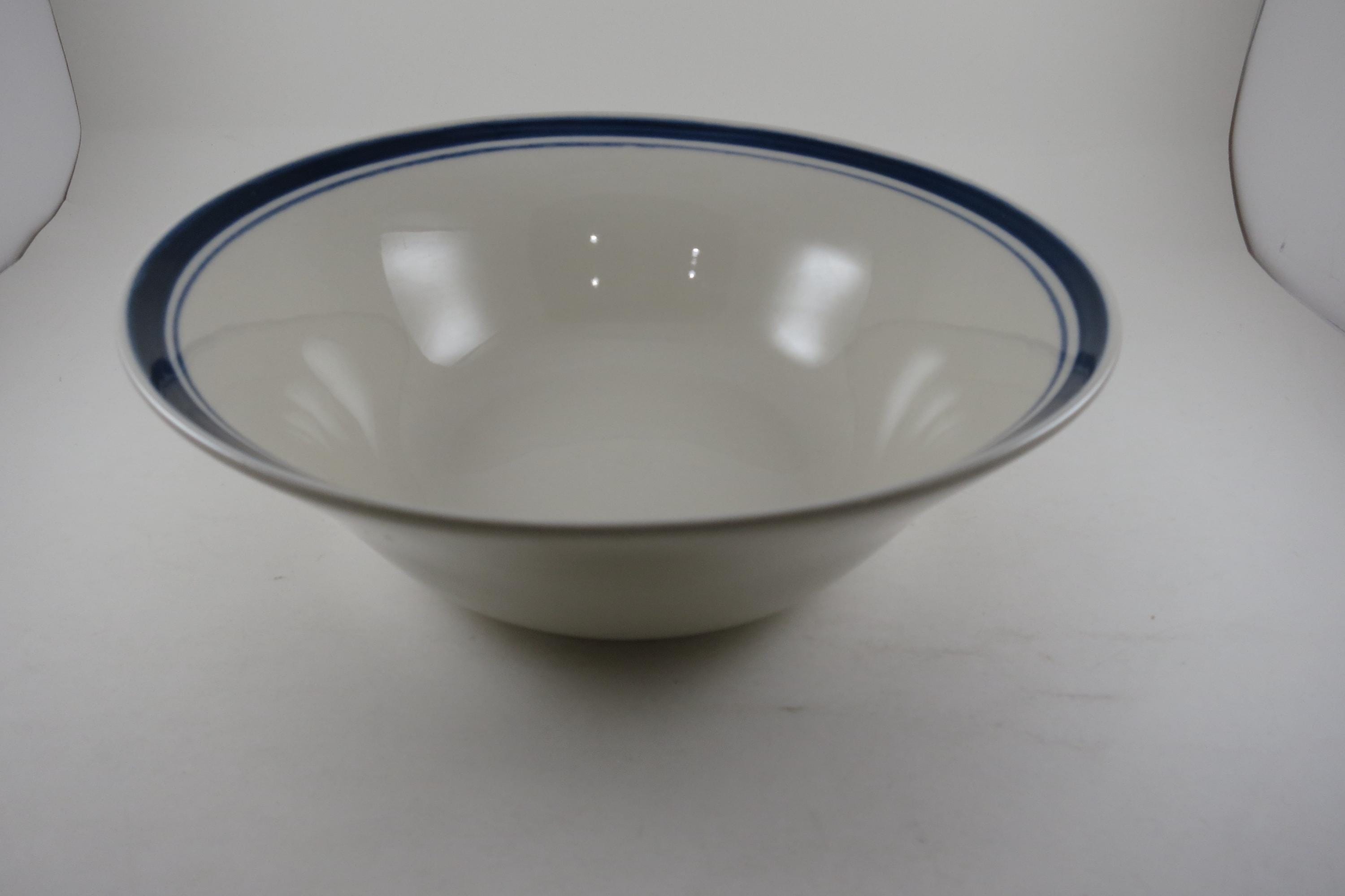 Vintage 9 Inch Diamond Stoneware Serving Bowl Blue Rim.