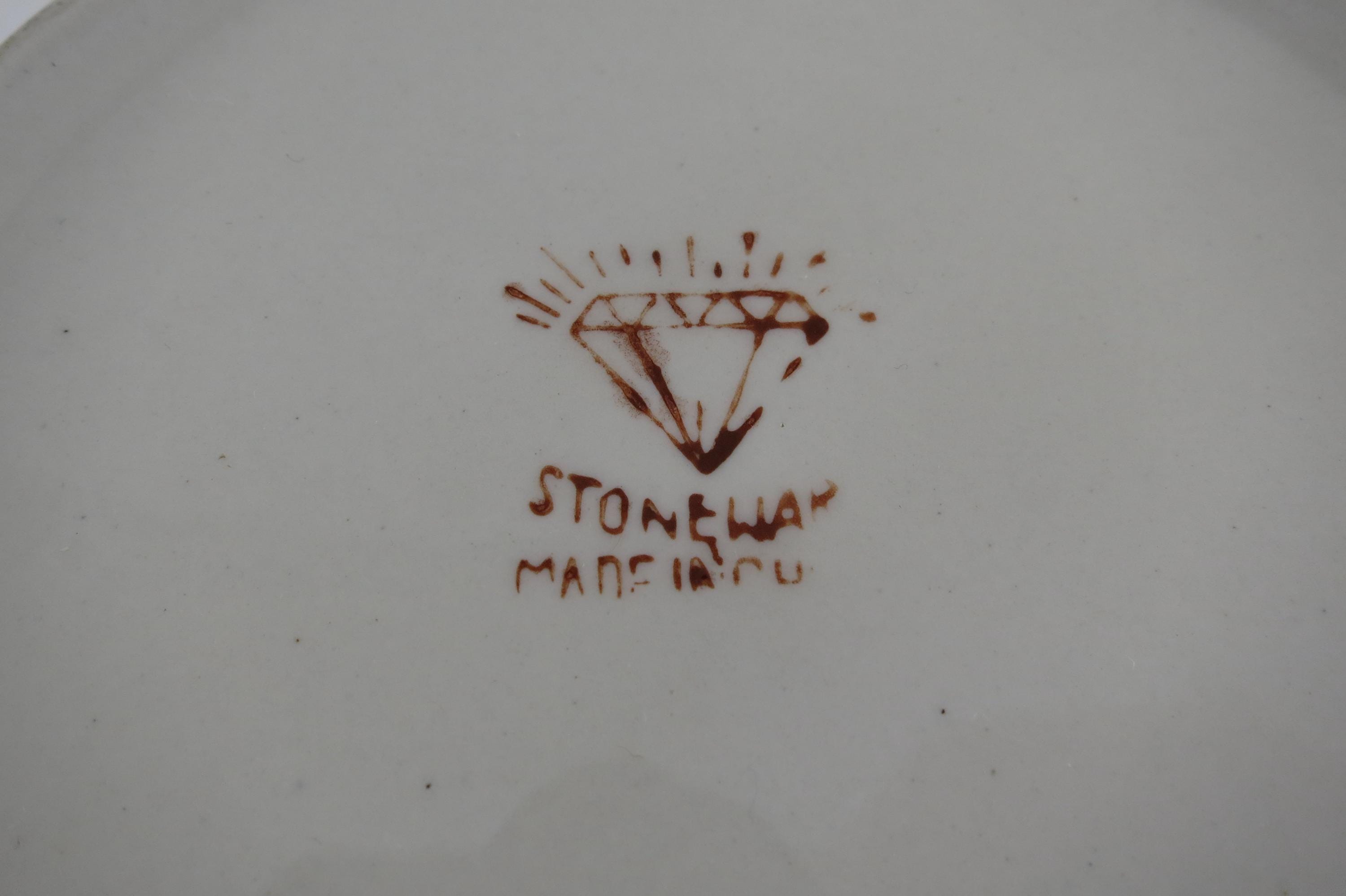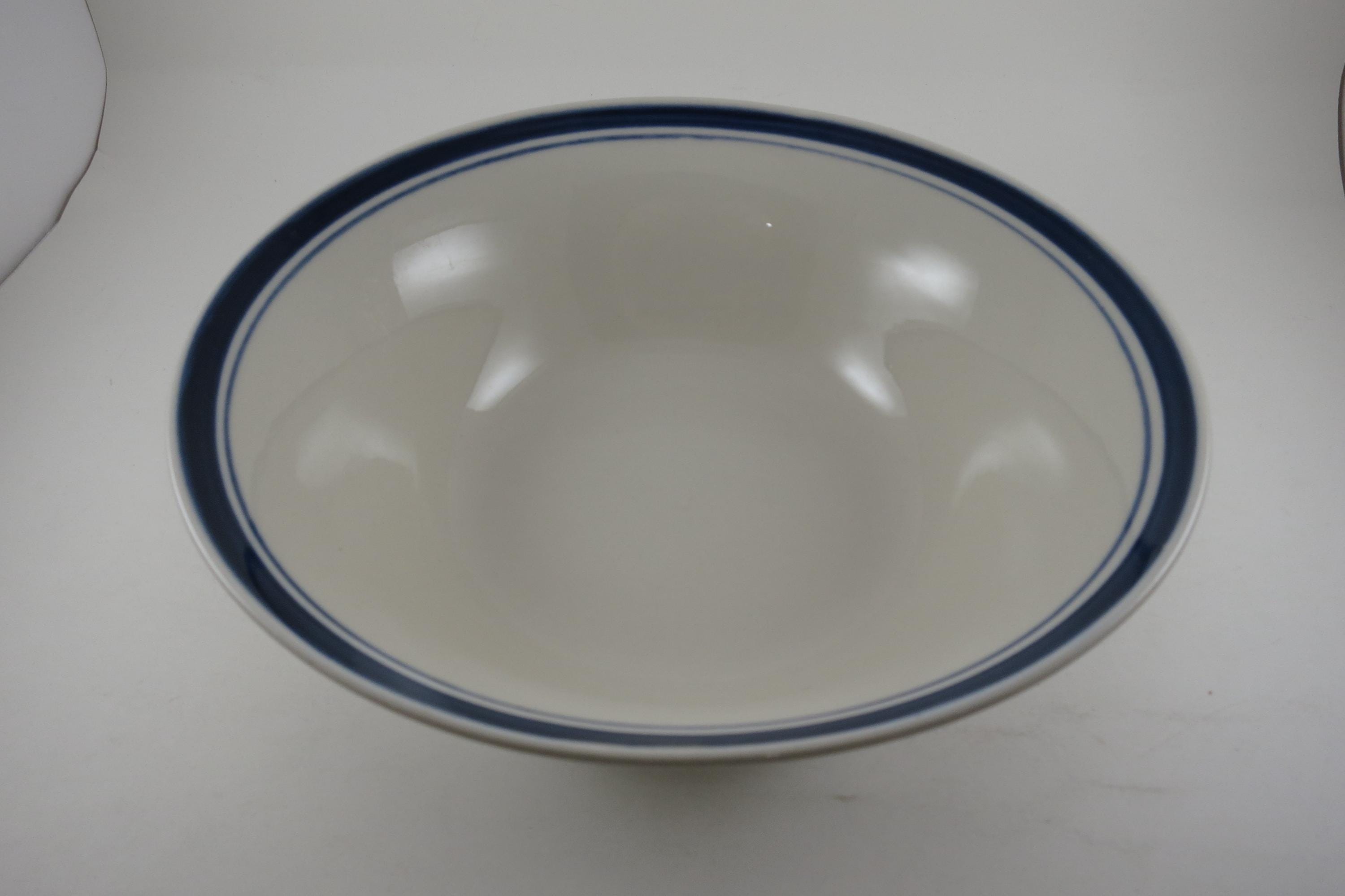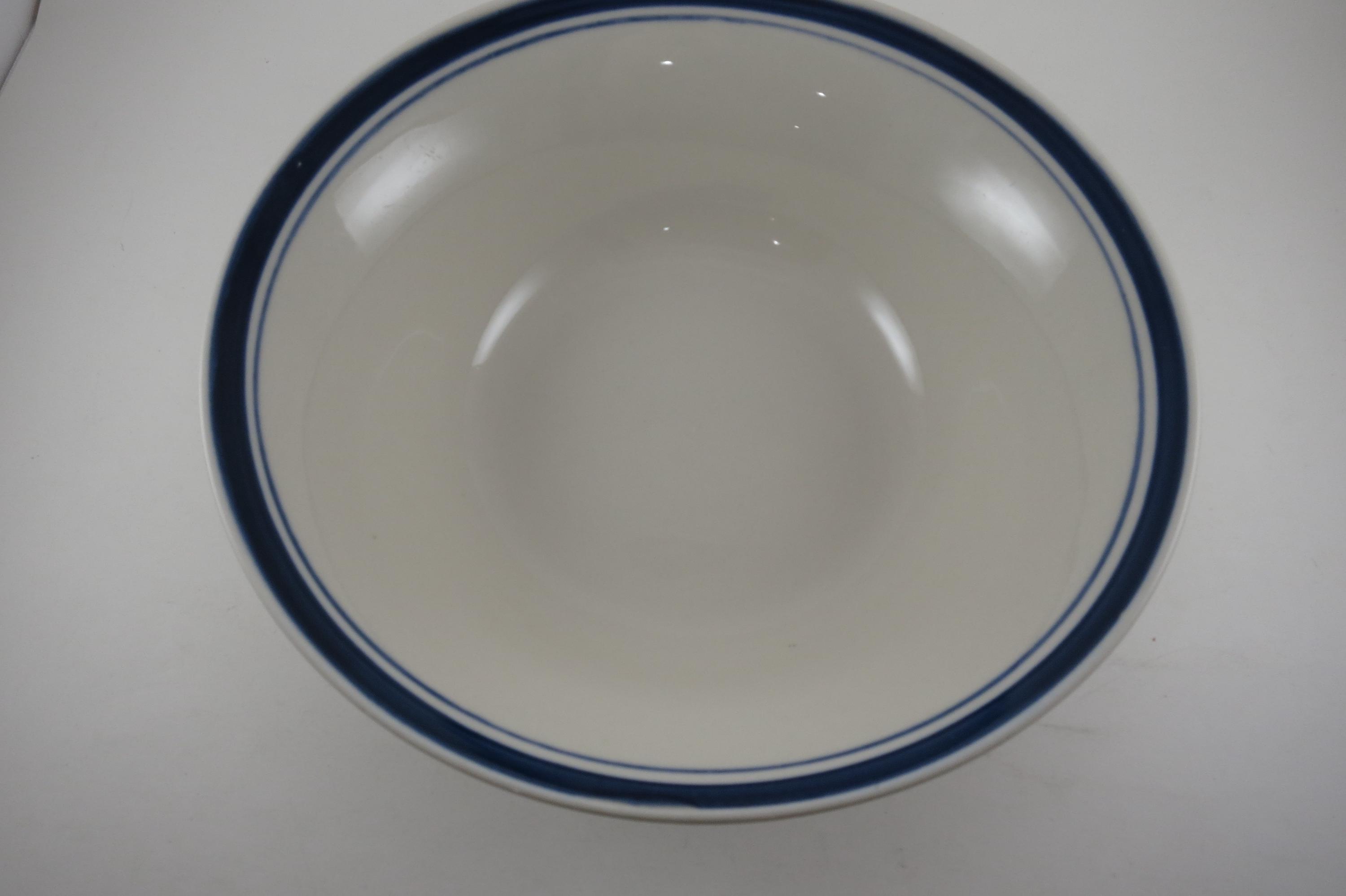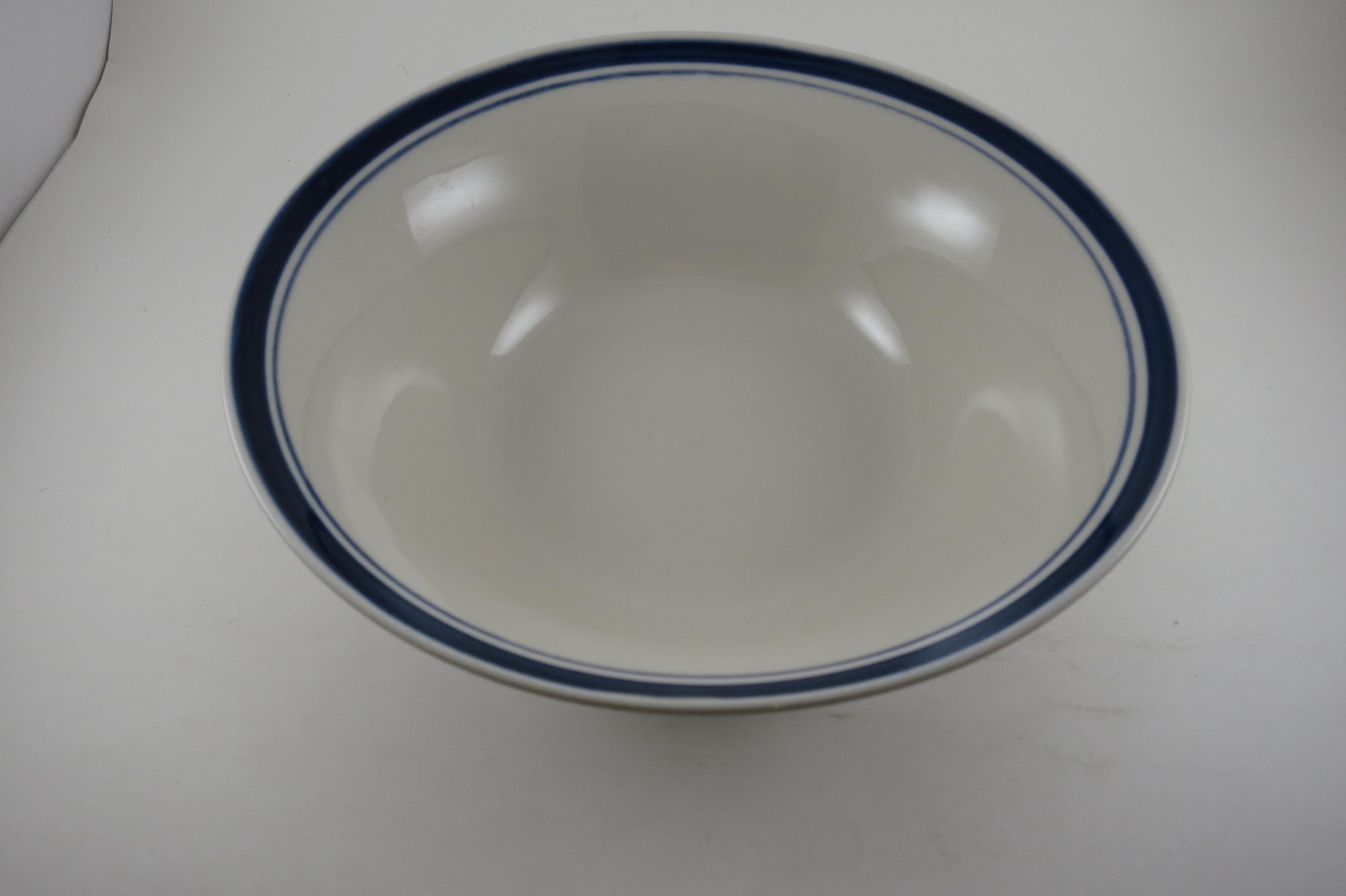 Vintage 9 Inch Diamond Stoneware Serving Bowl Blue Rim.
