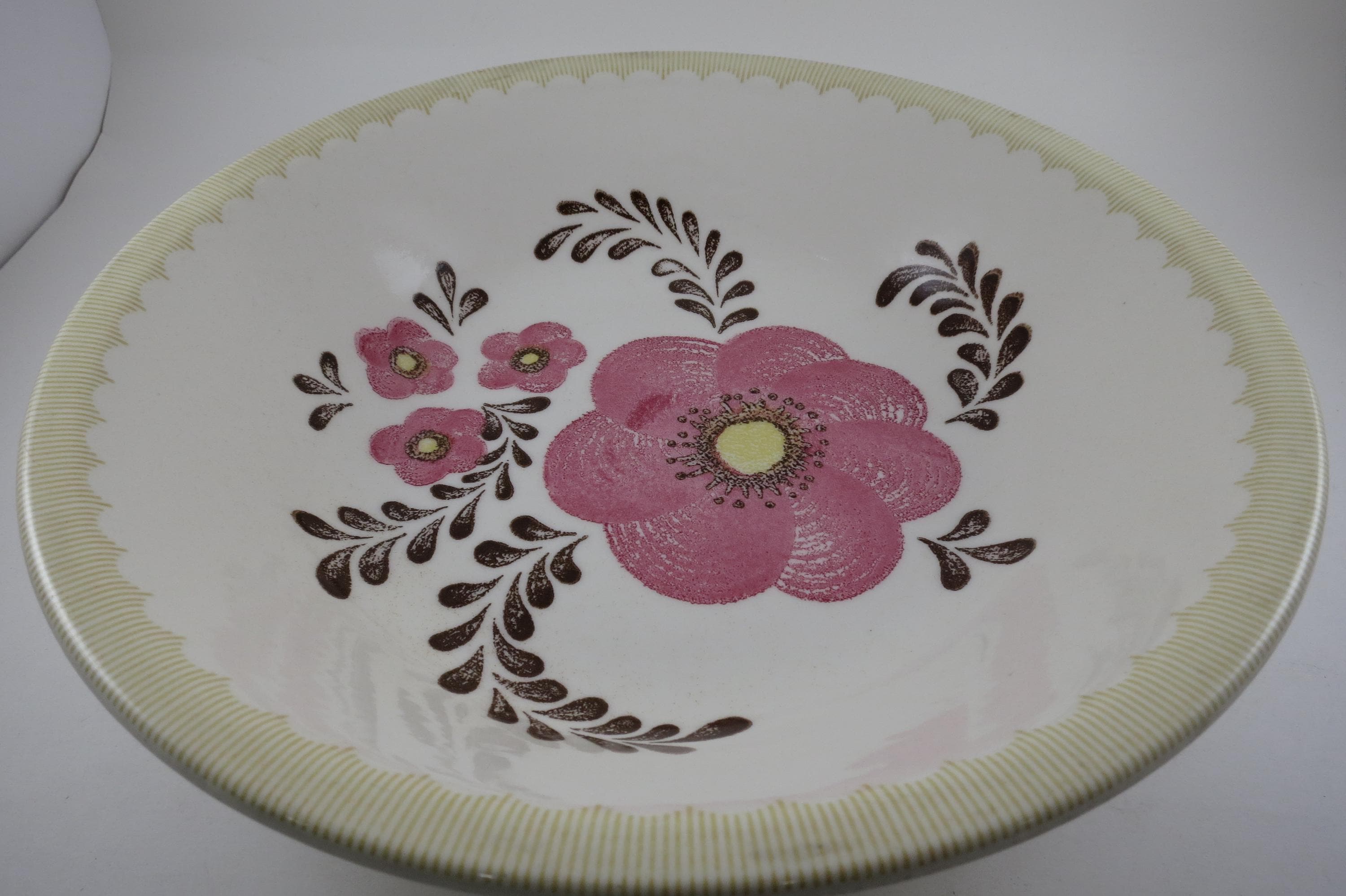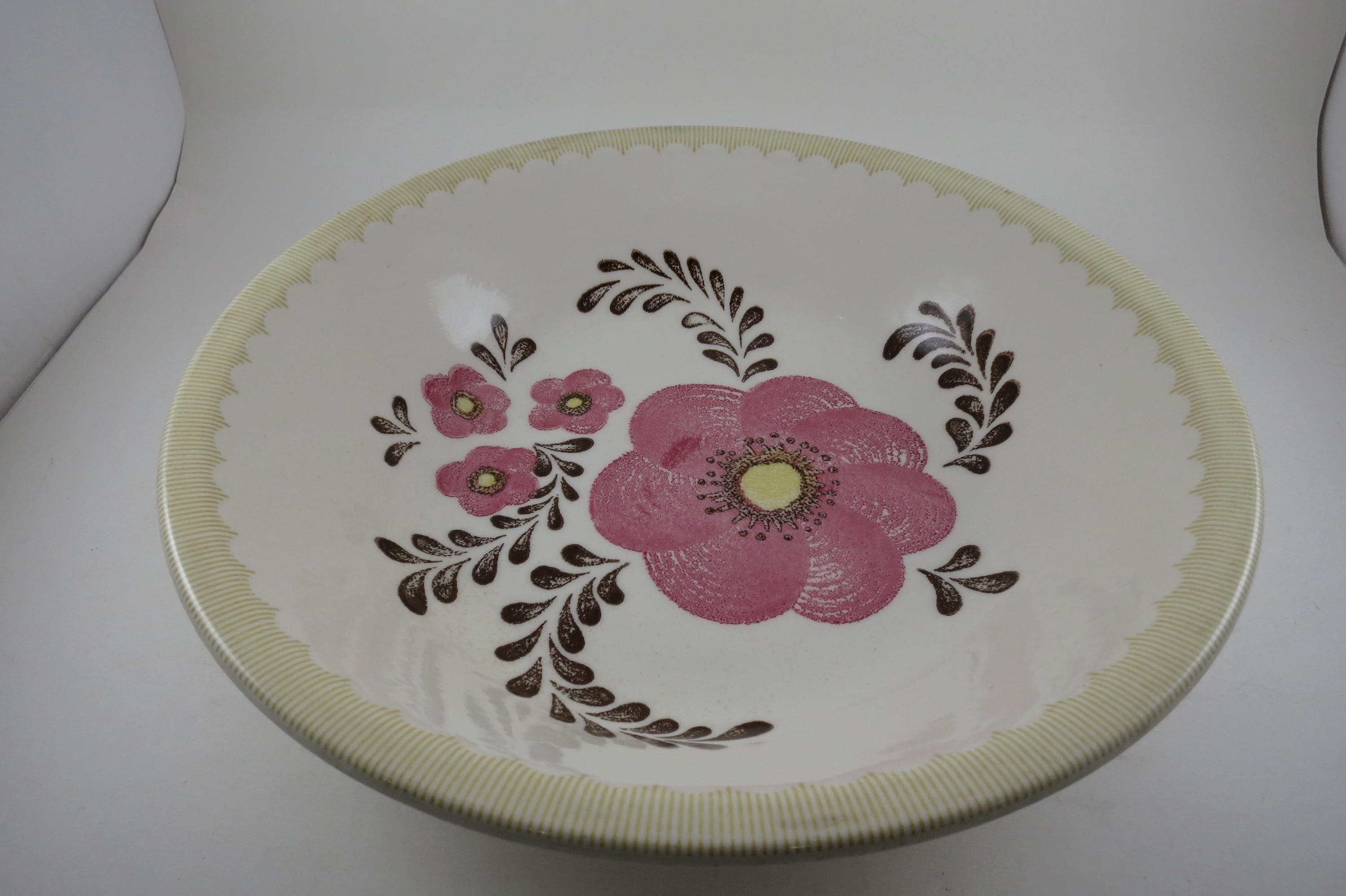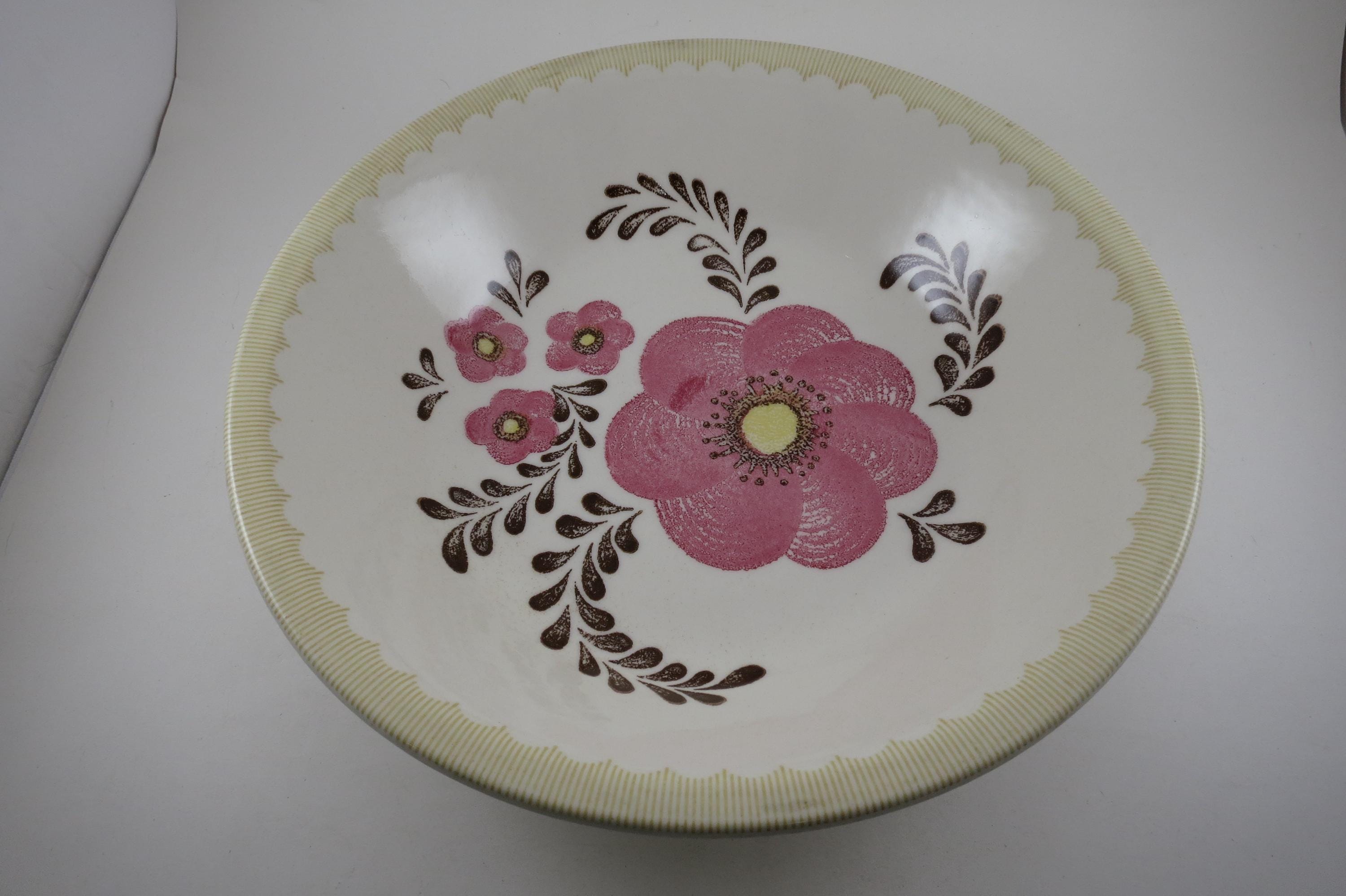 Vintage 11 3/4 Inch Royal Jeannette Pasta Salad Serving Bowl Pink Floral.