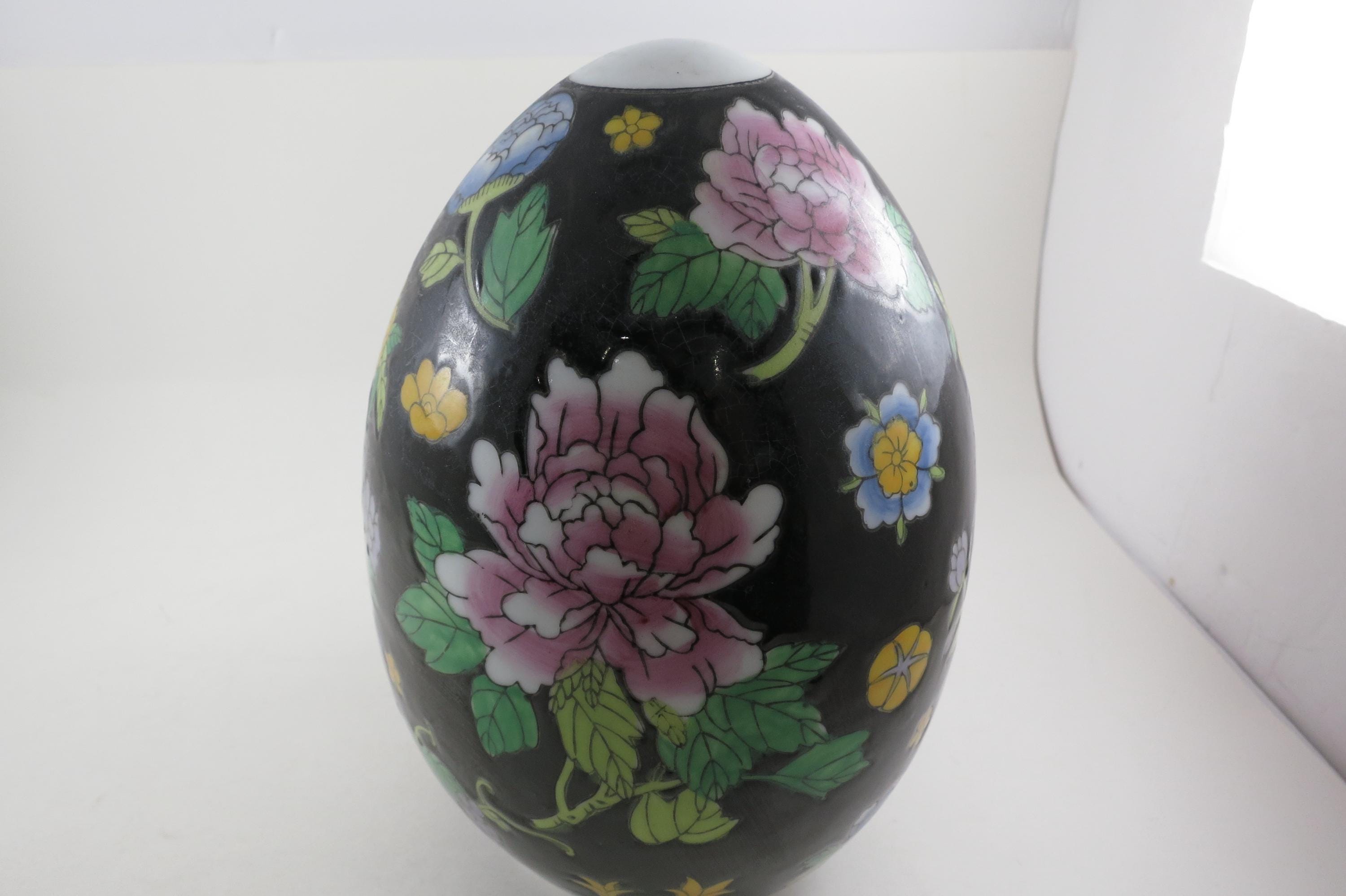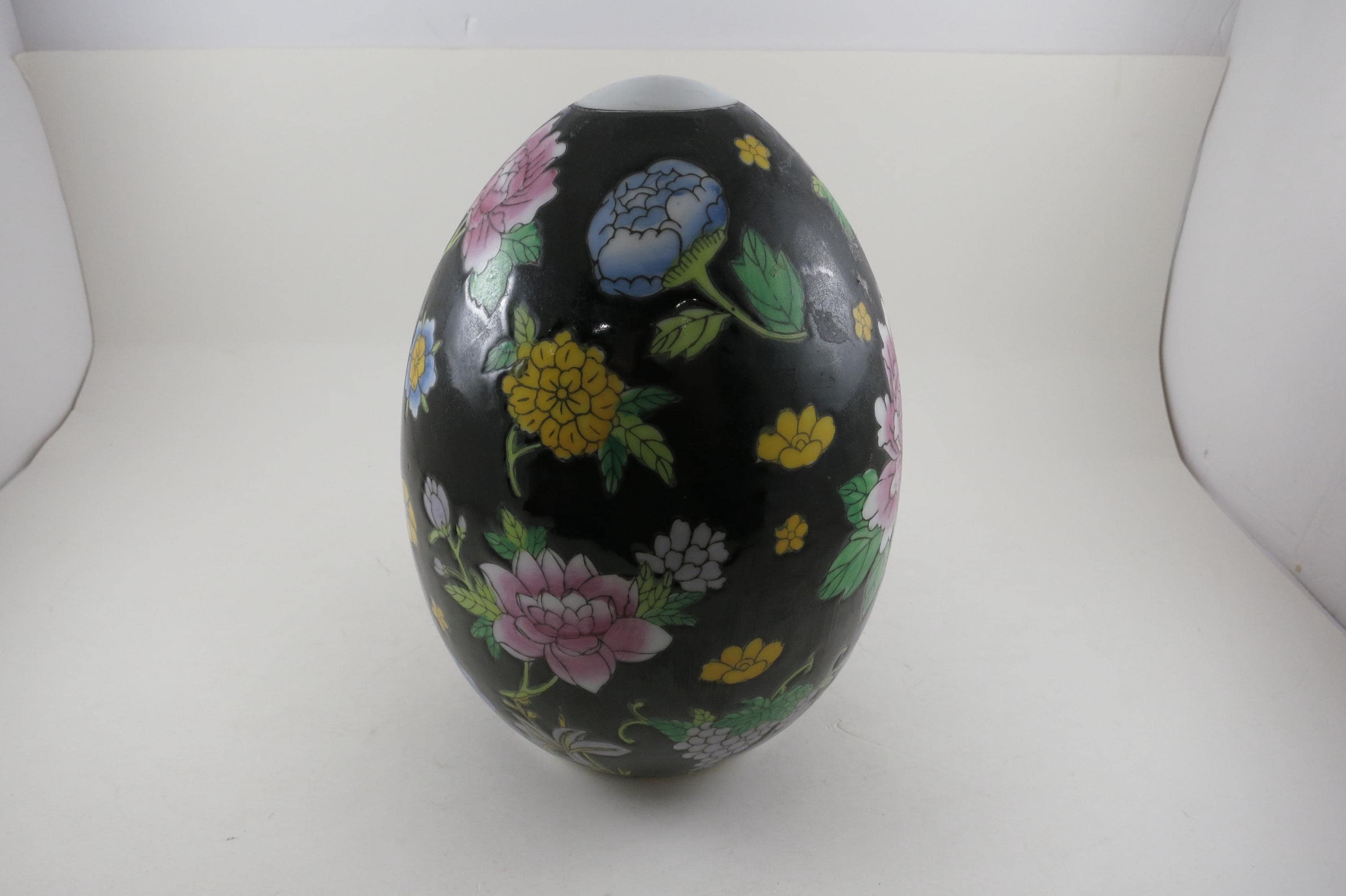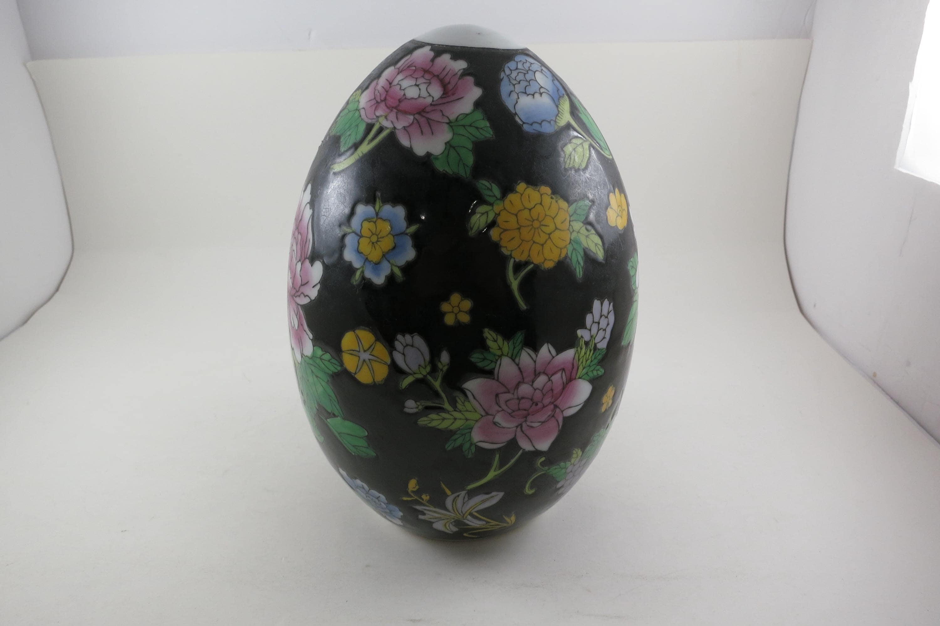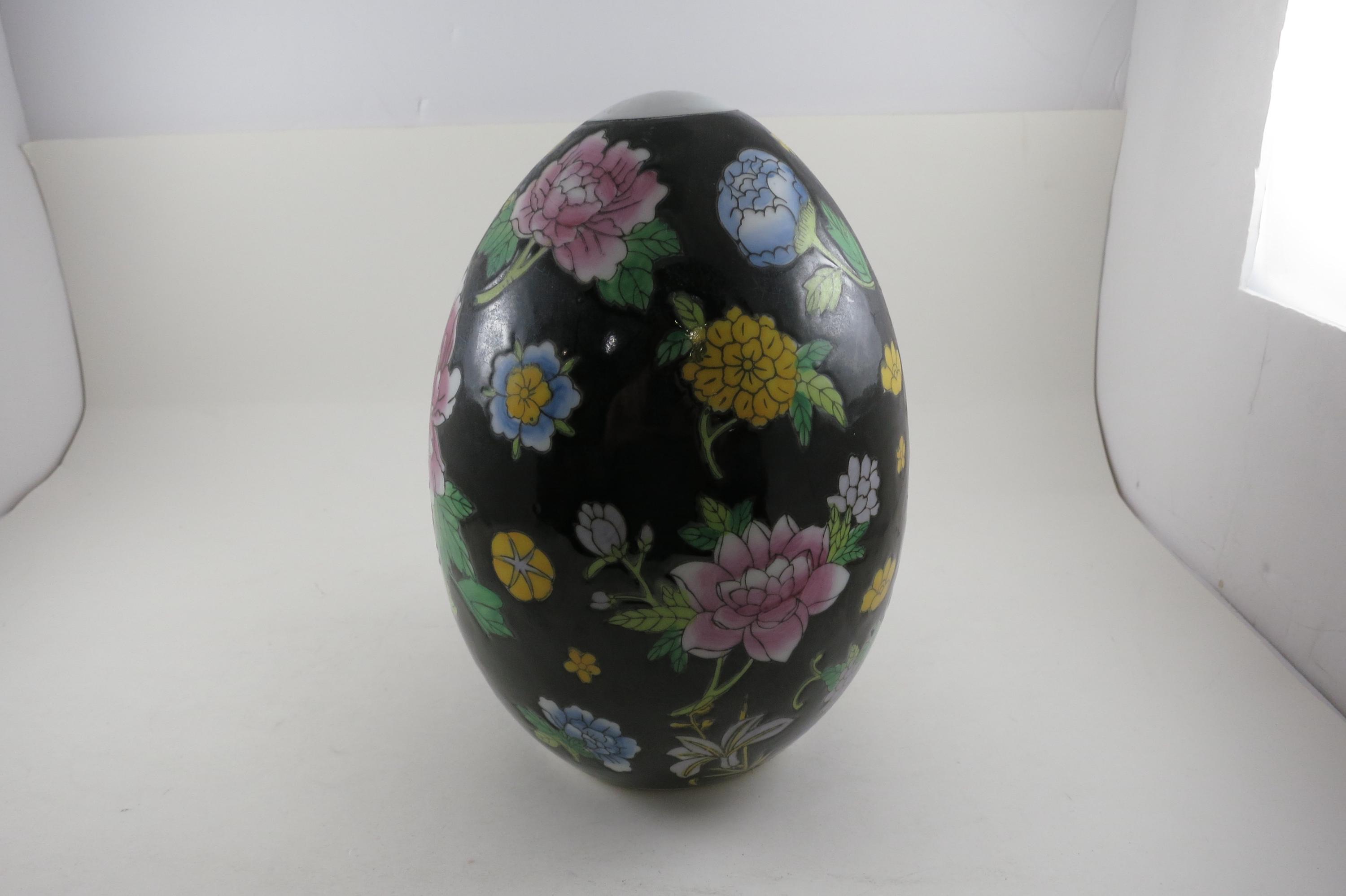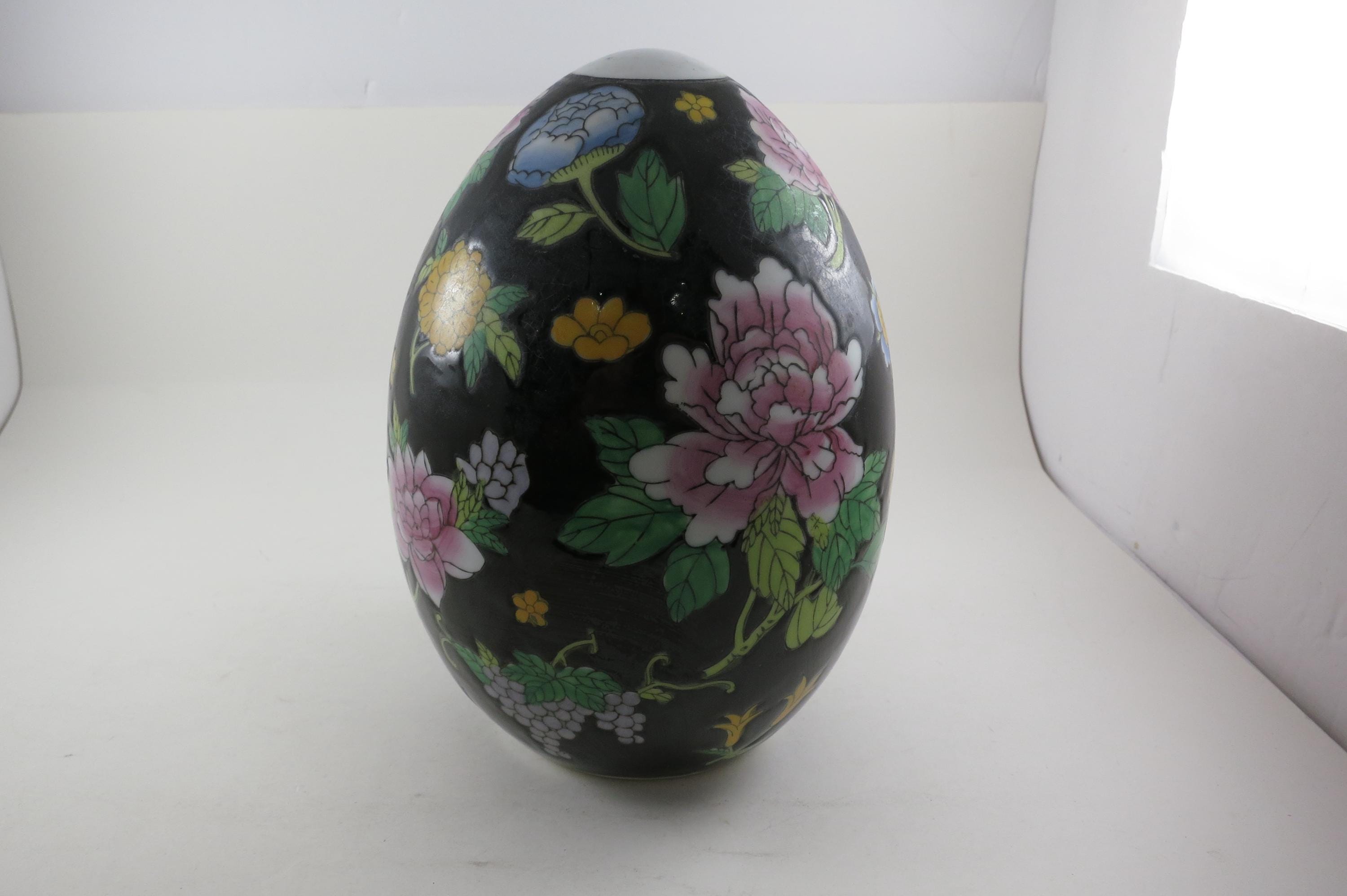 Vintage Black Pink Blue Yellow 8 Inch Asian Design Egg.