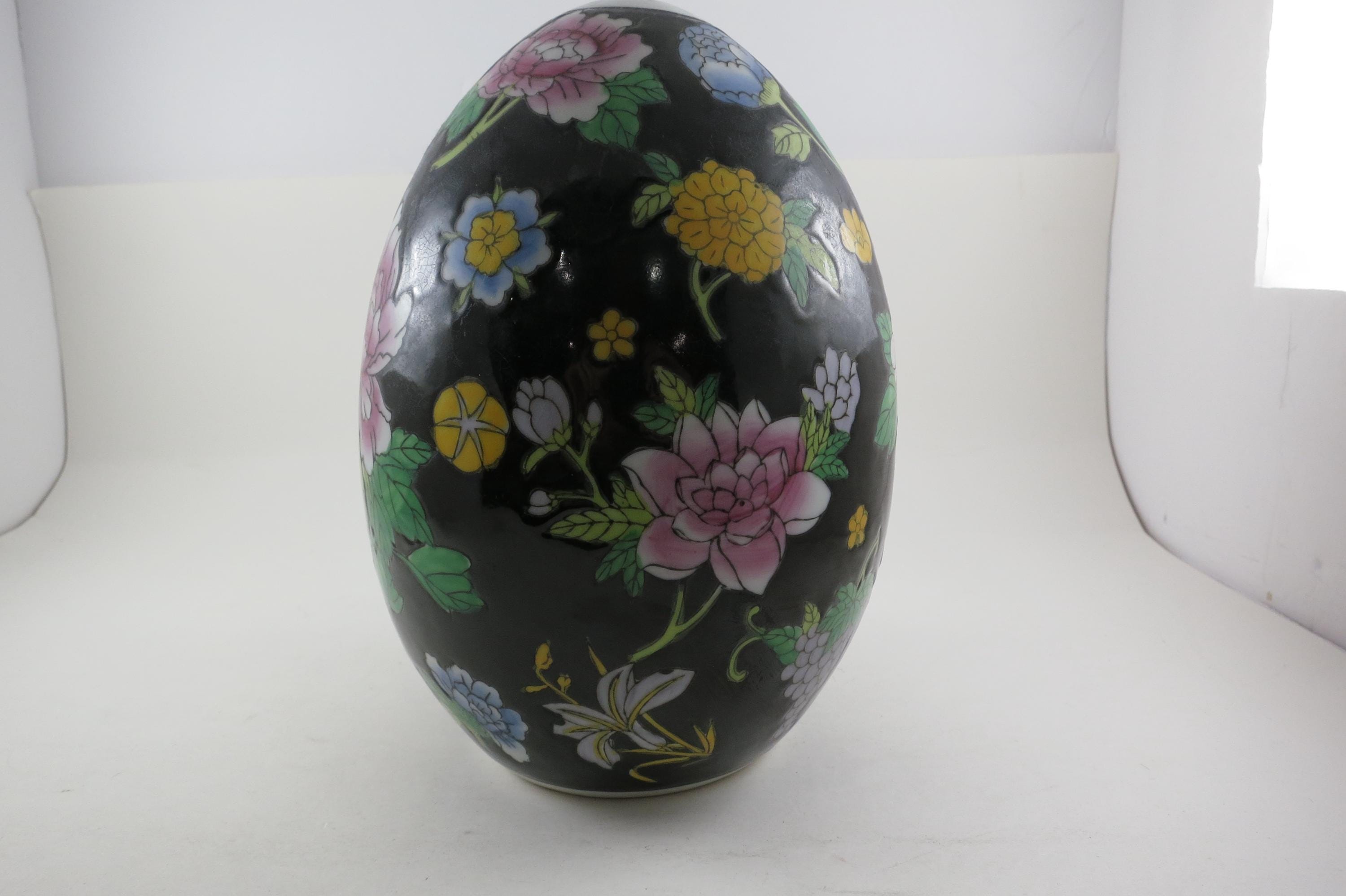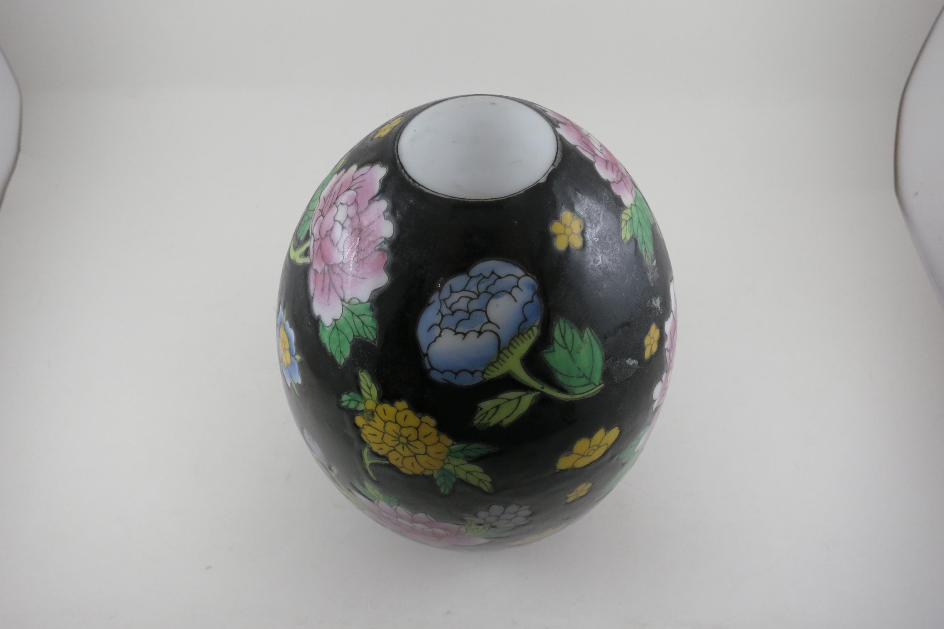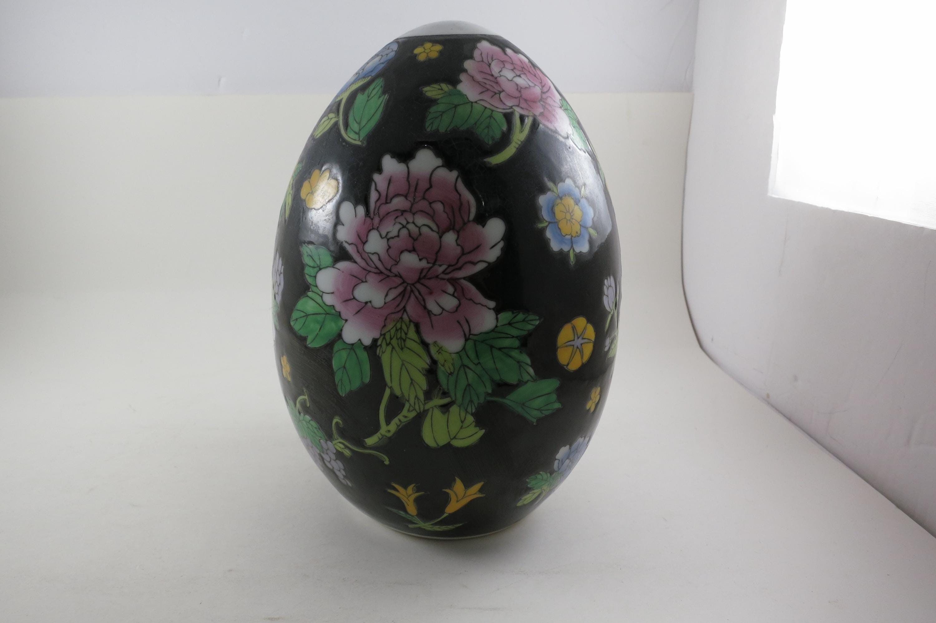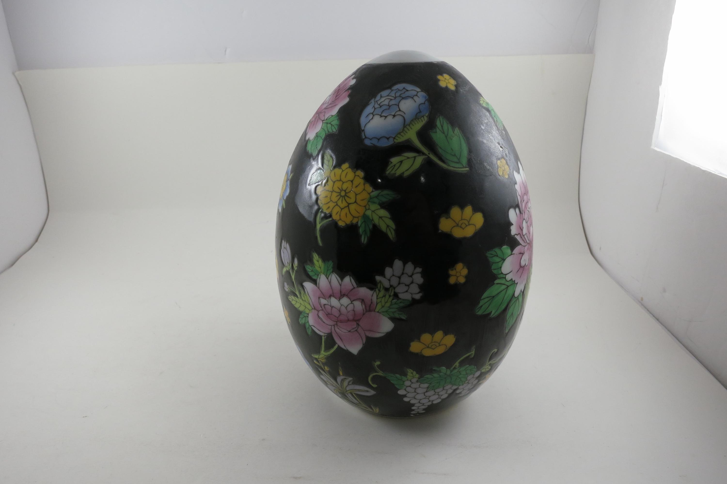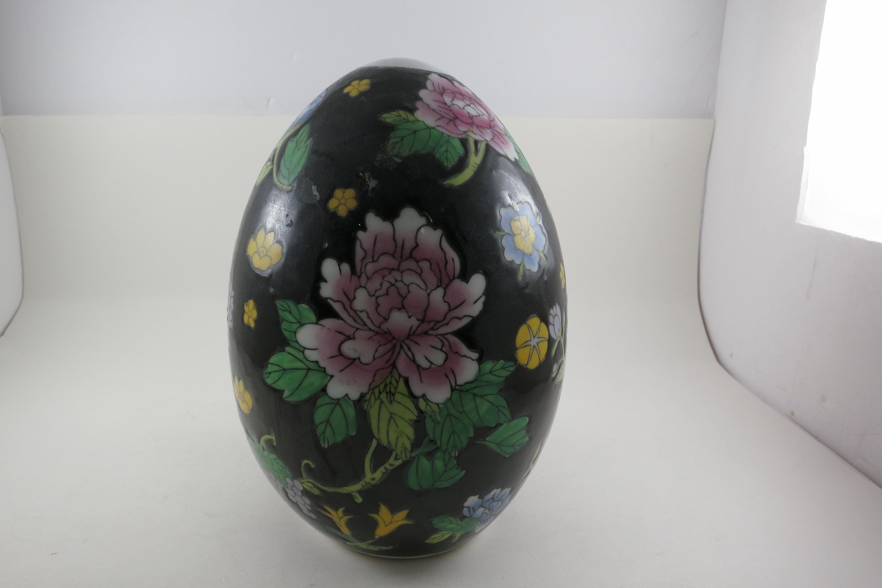 Vintage Black Pink Blue Yellow 8 Inch Asian Design Egg.