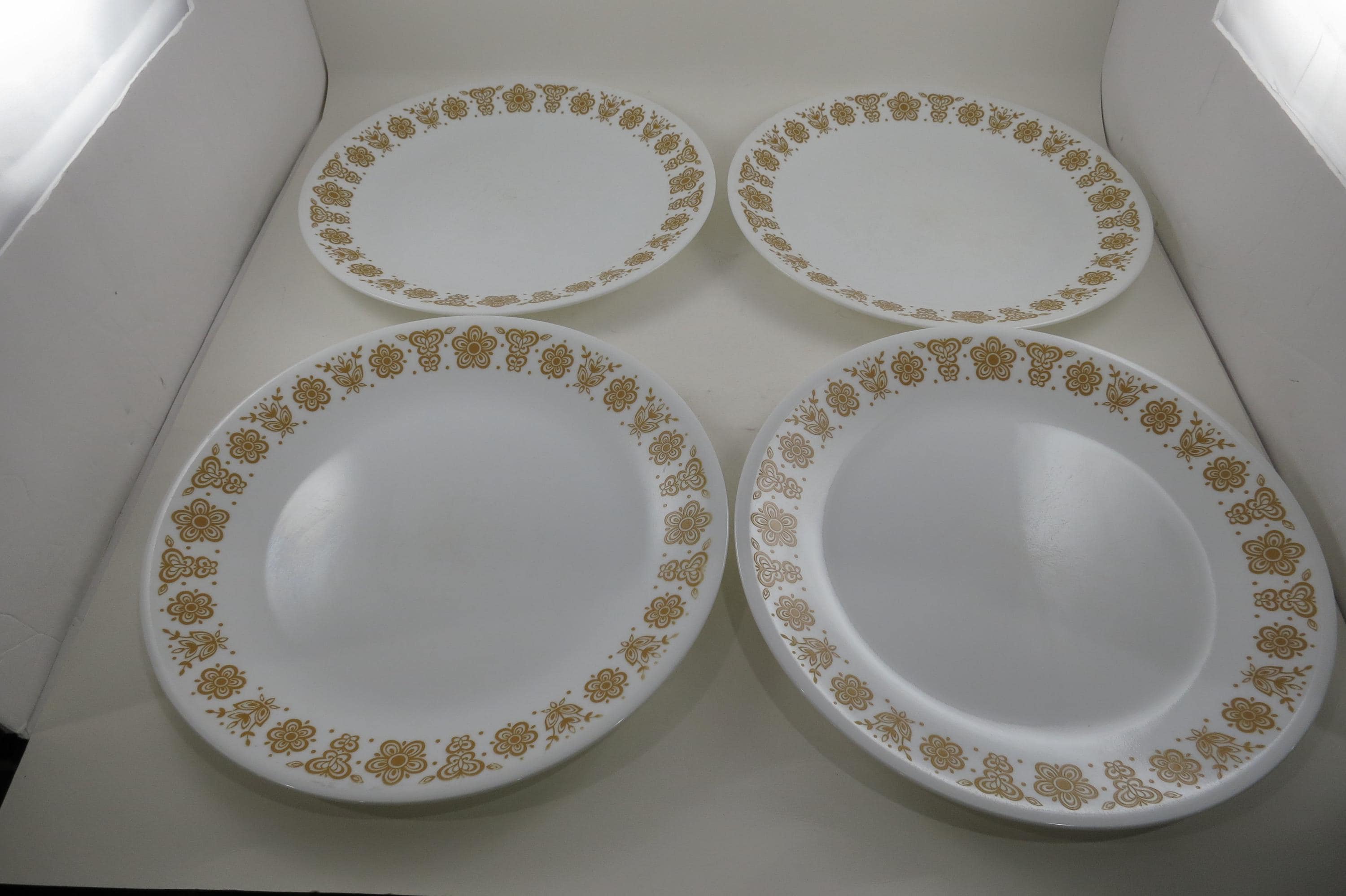 Vintage Corelle Butterfly Gold 10 1/4 Inch Dinner Plates-Set of 4.