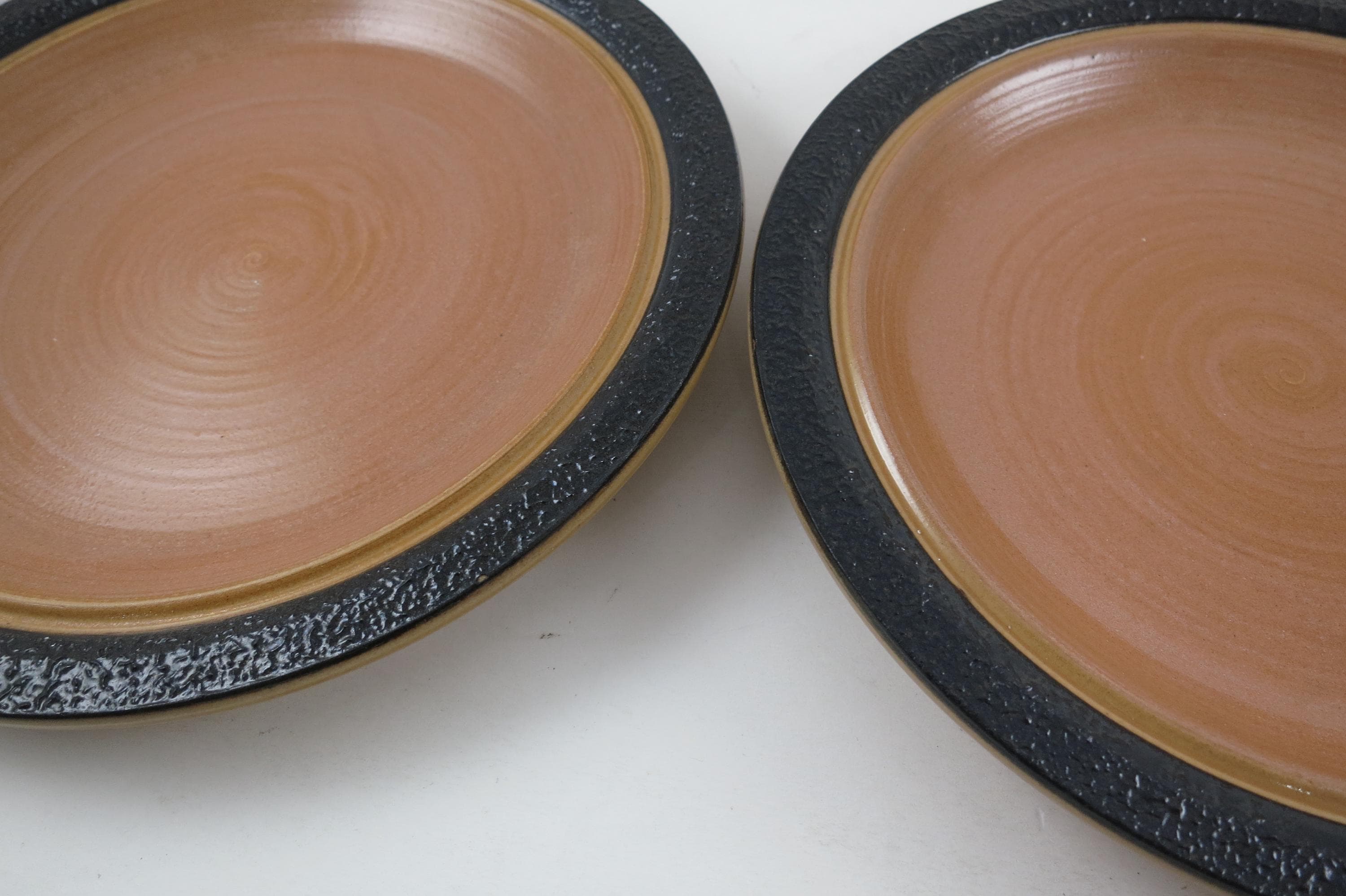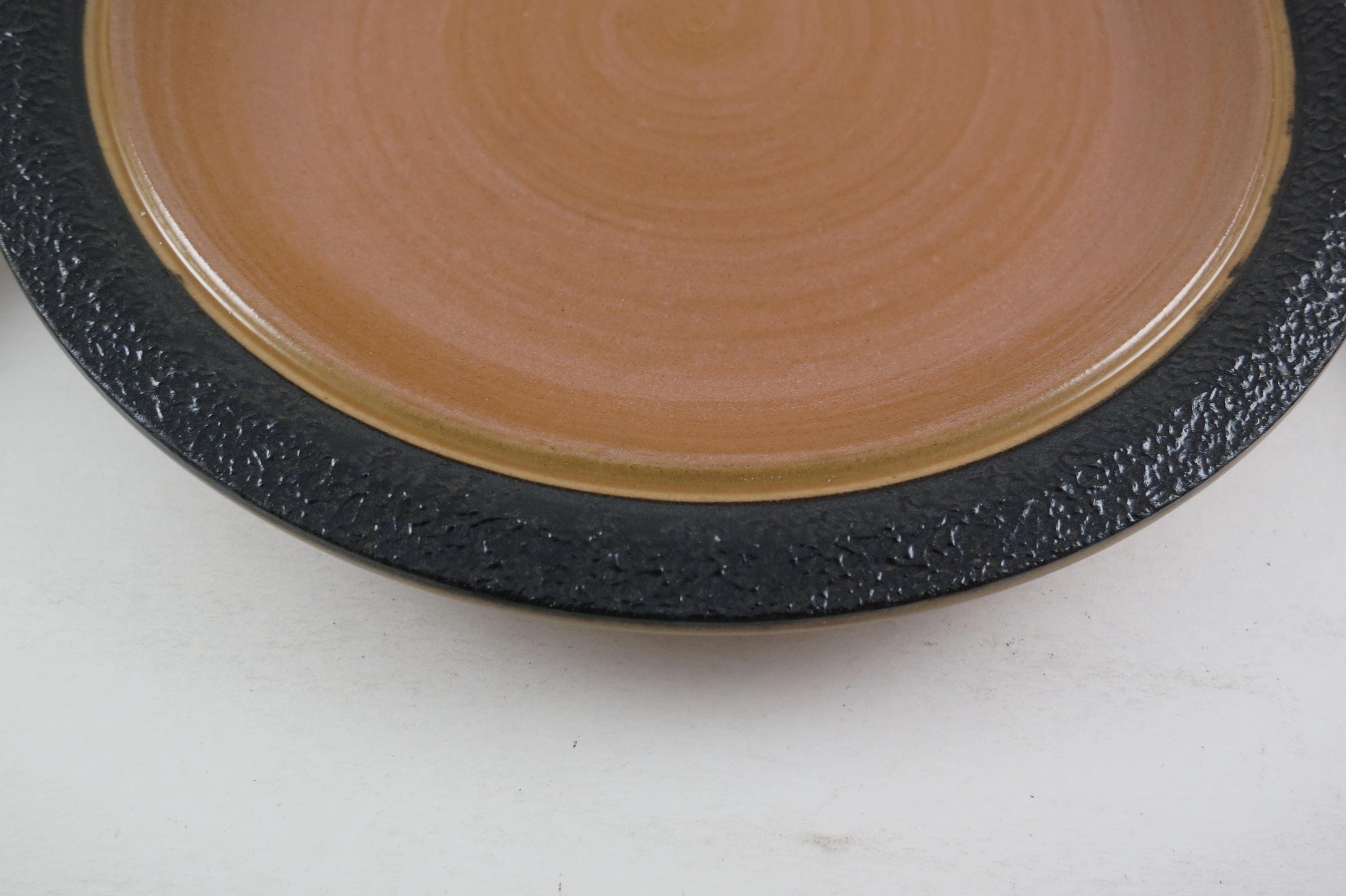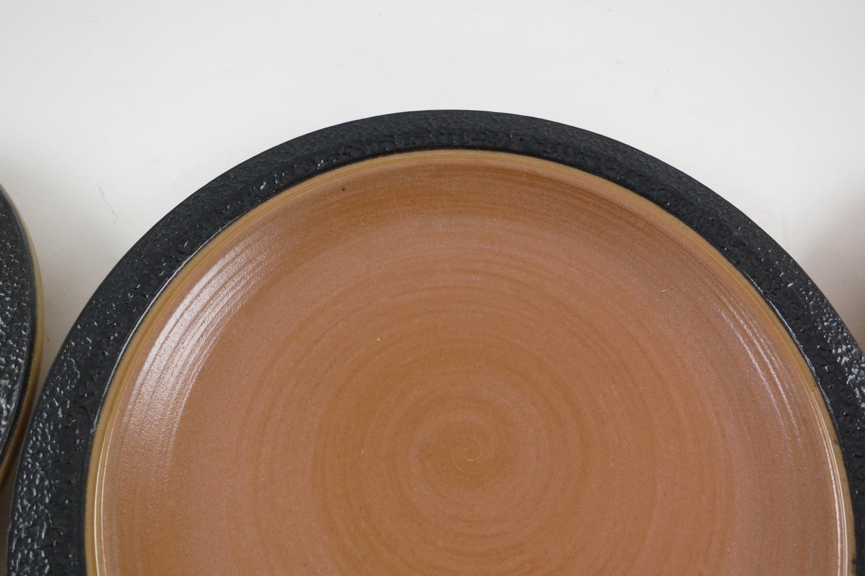 Vintage Kasuga by Showa Stoneware Black & Brown 7 1/8 Inch Salad Plates-Set of 3.