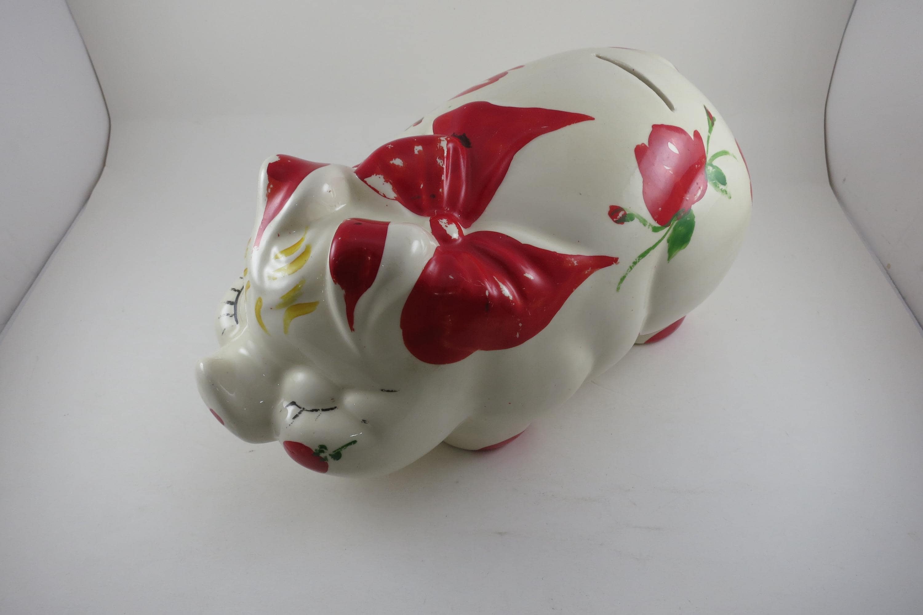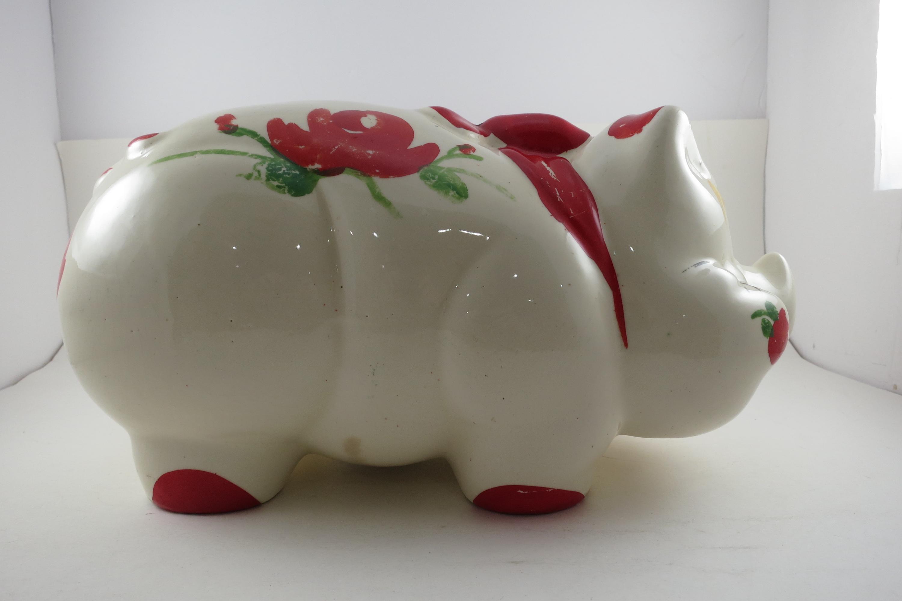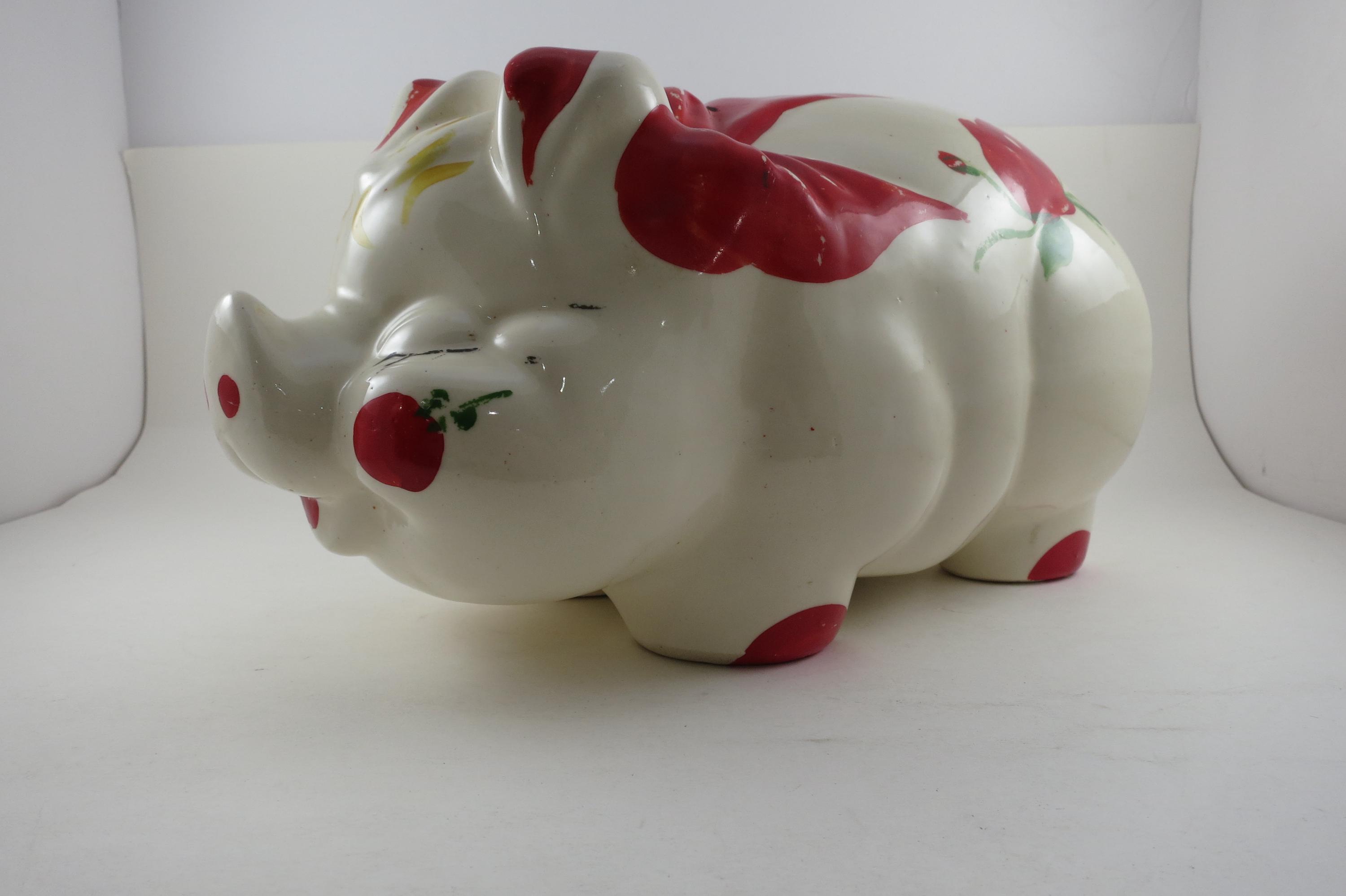 Vintage Shawnee Pottery Large Pig Piggy Bank 12 Inches Long.