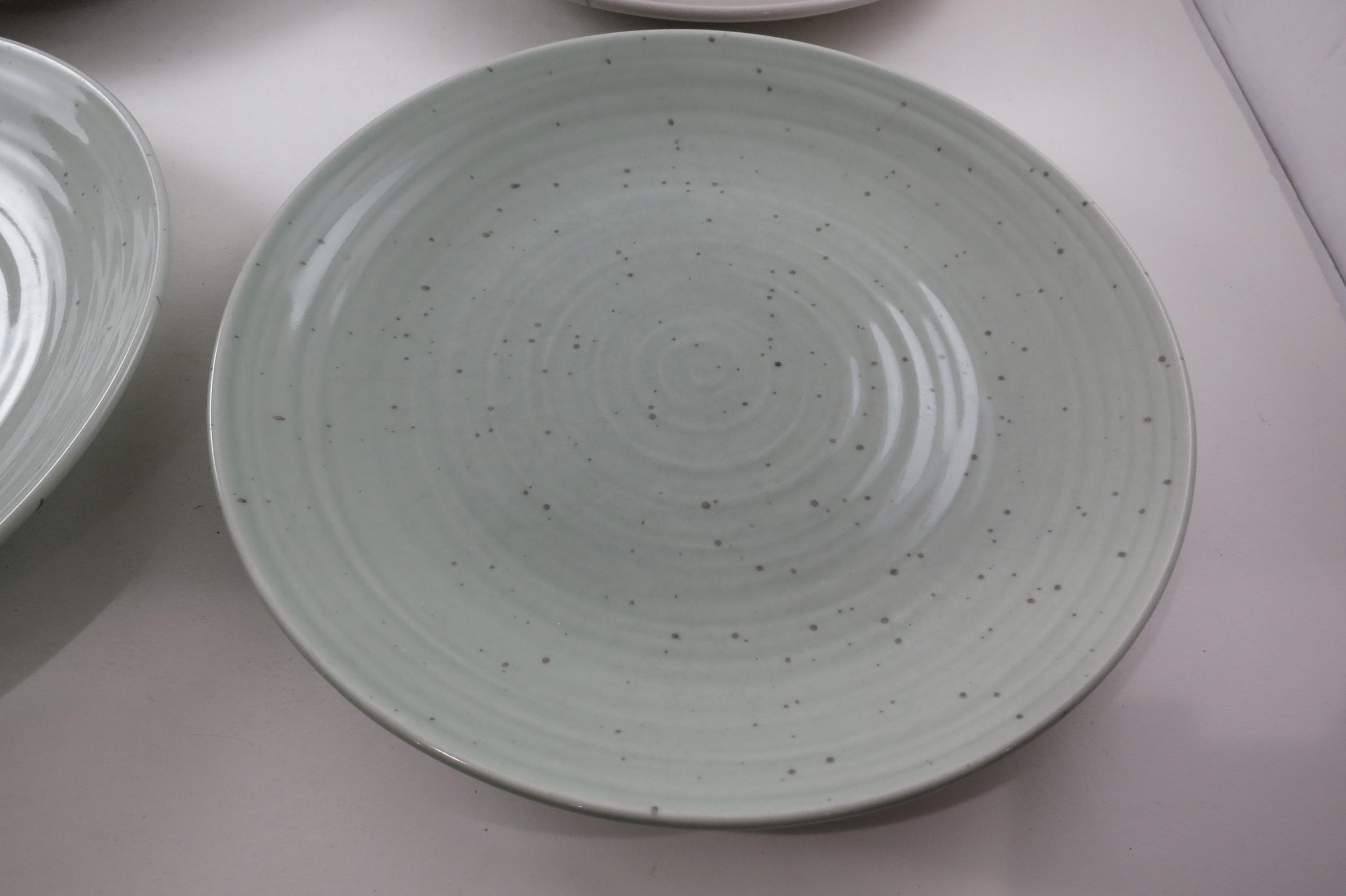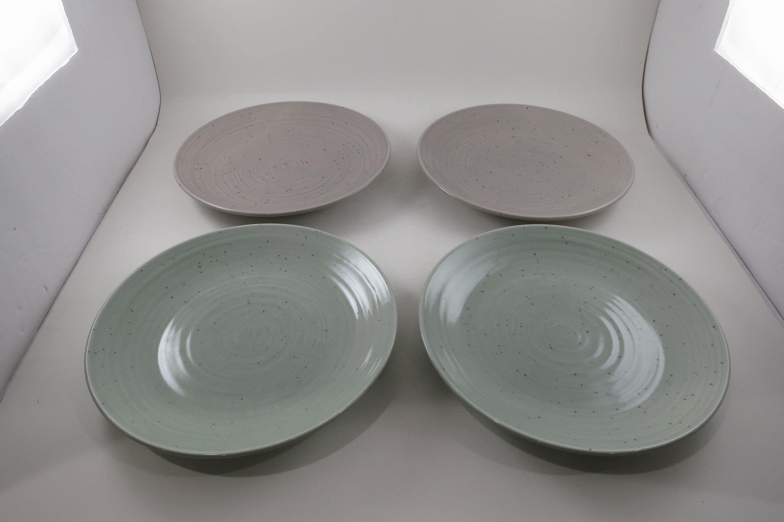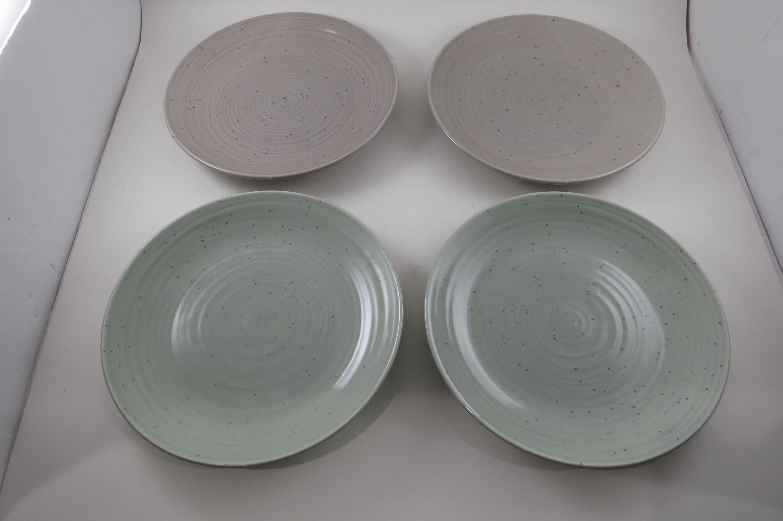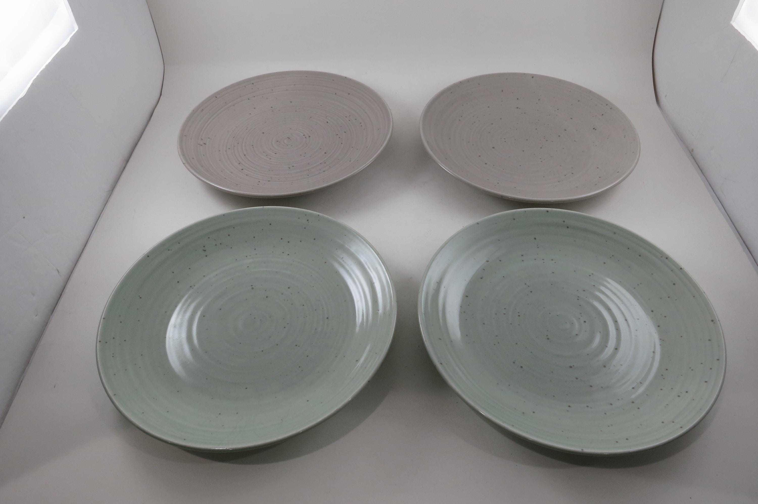 All four are in excellent condition with no chips, cracks or damages. Each measures 8 1/4 Inches in Diameter. Two Gray and Two Green
