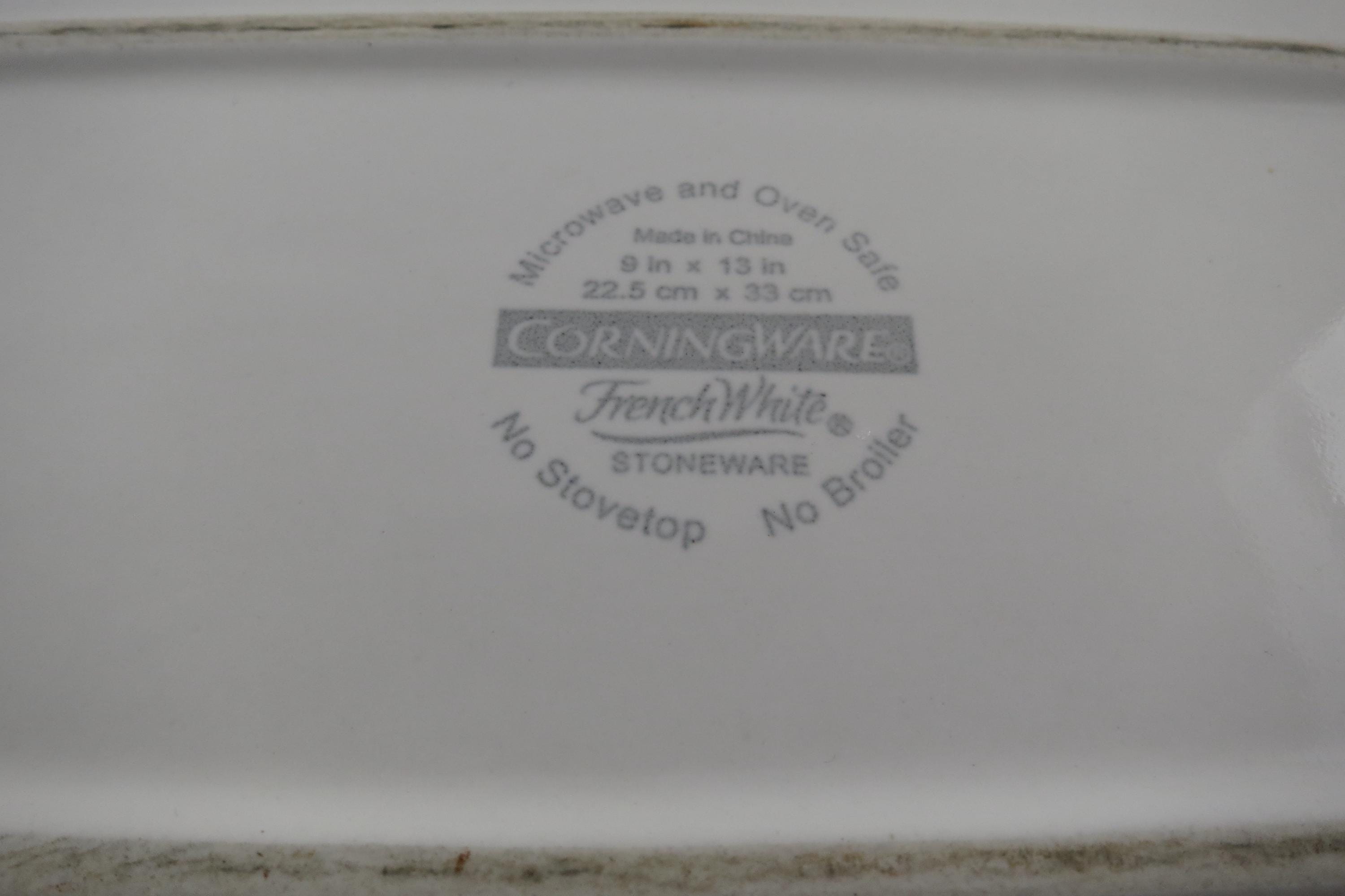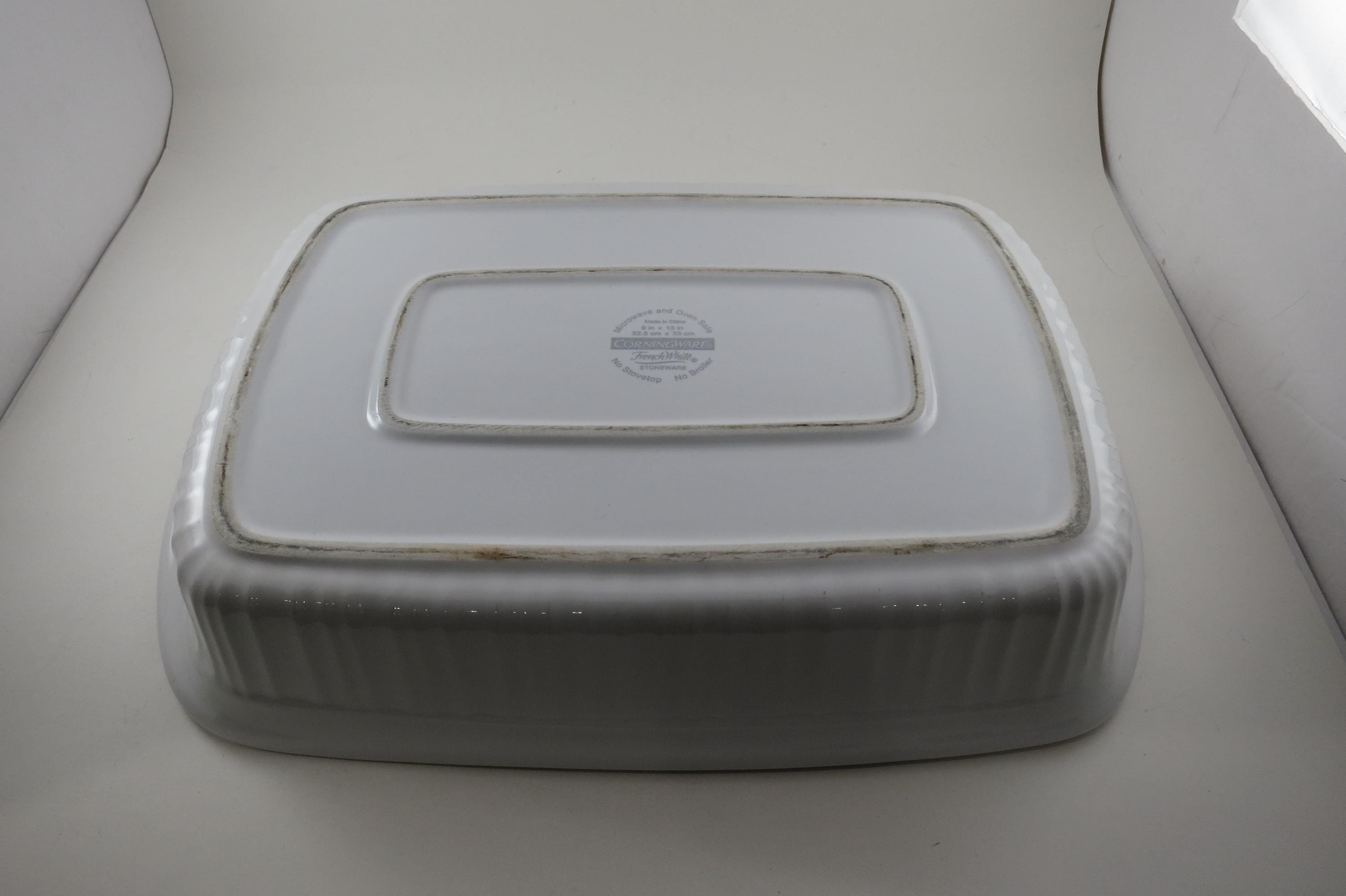 Corning Ware 9x13 Inch Baking Dish in French White. No damages, shows light normal use wear, ready to keep using!