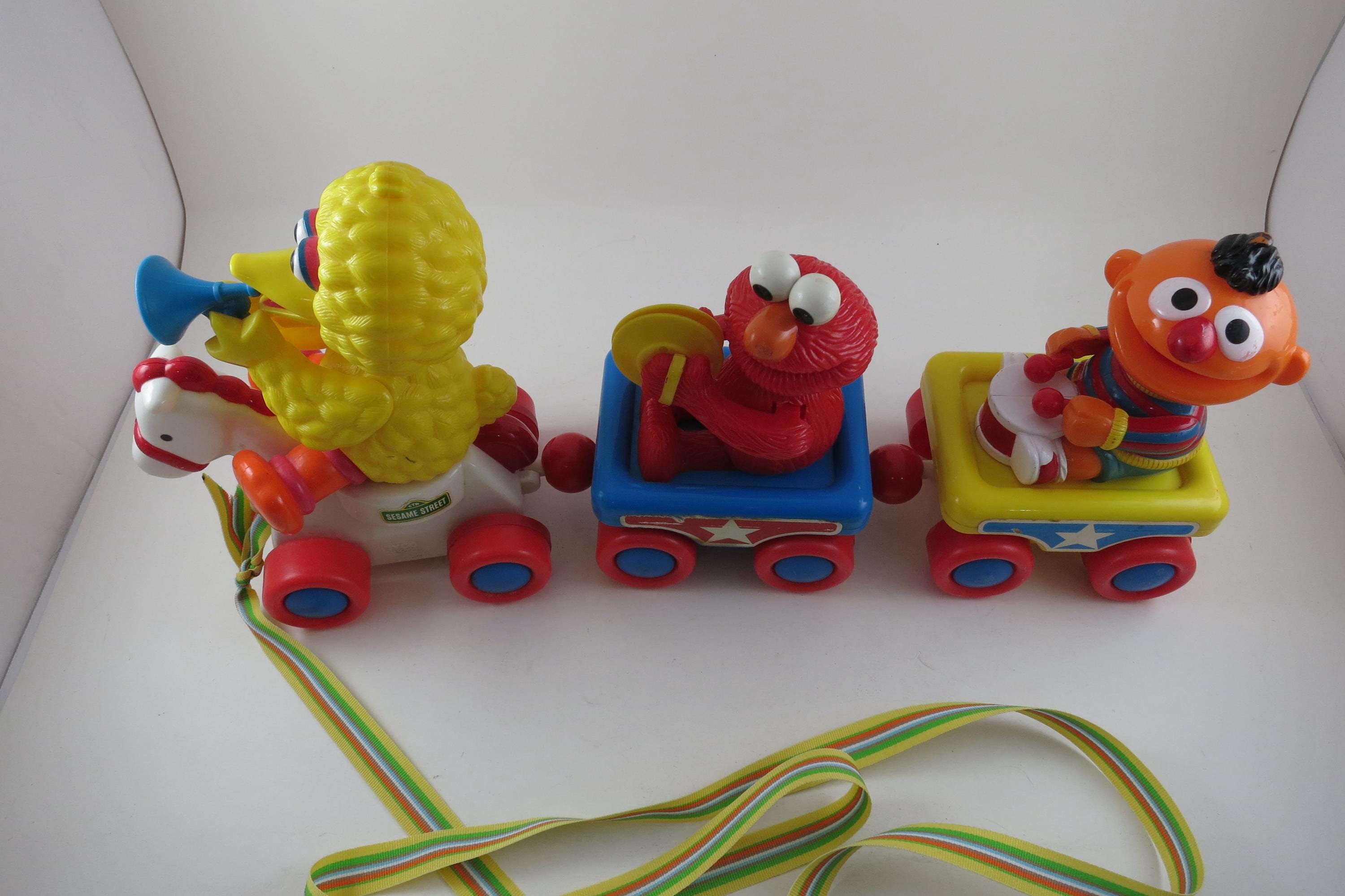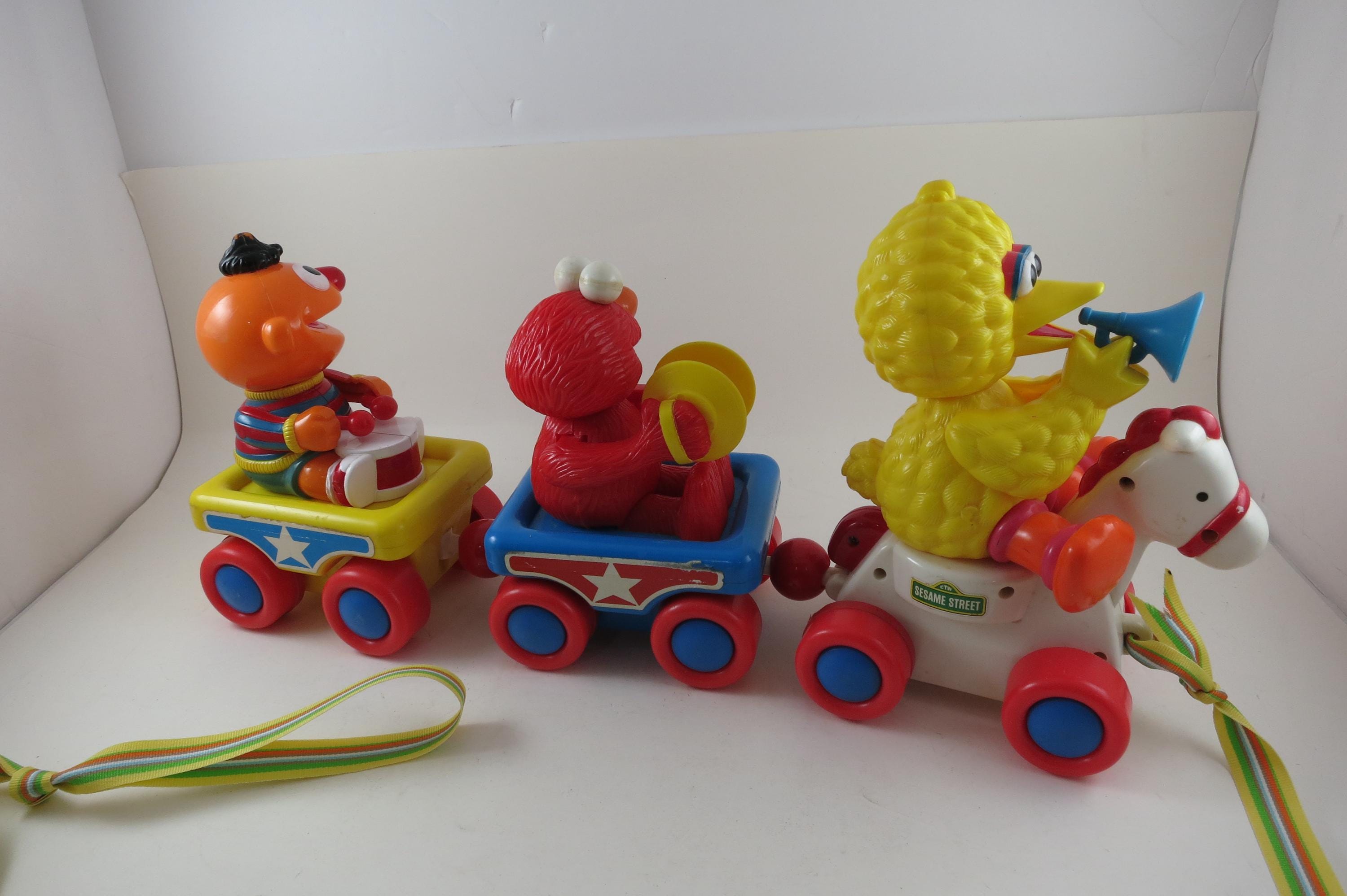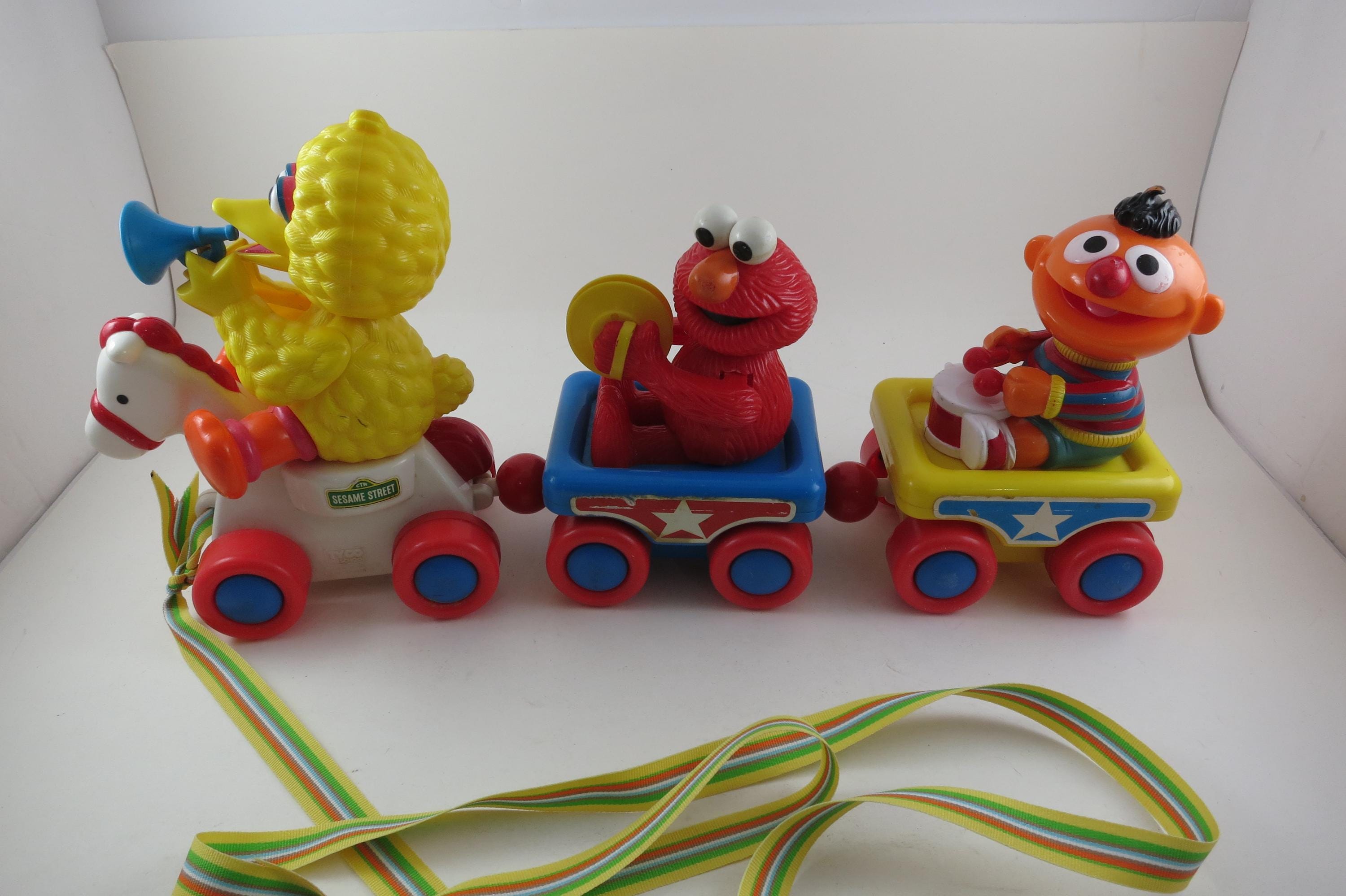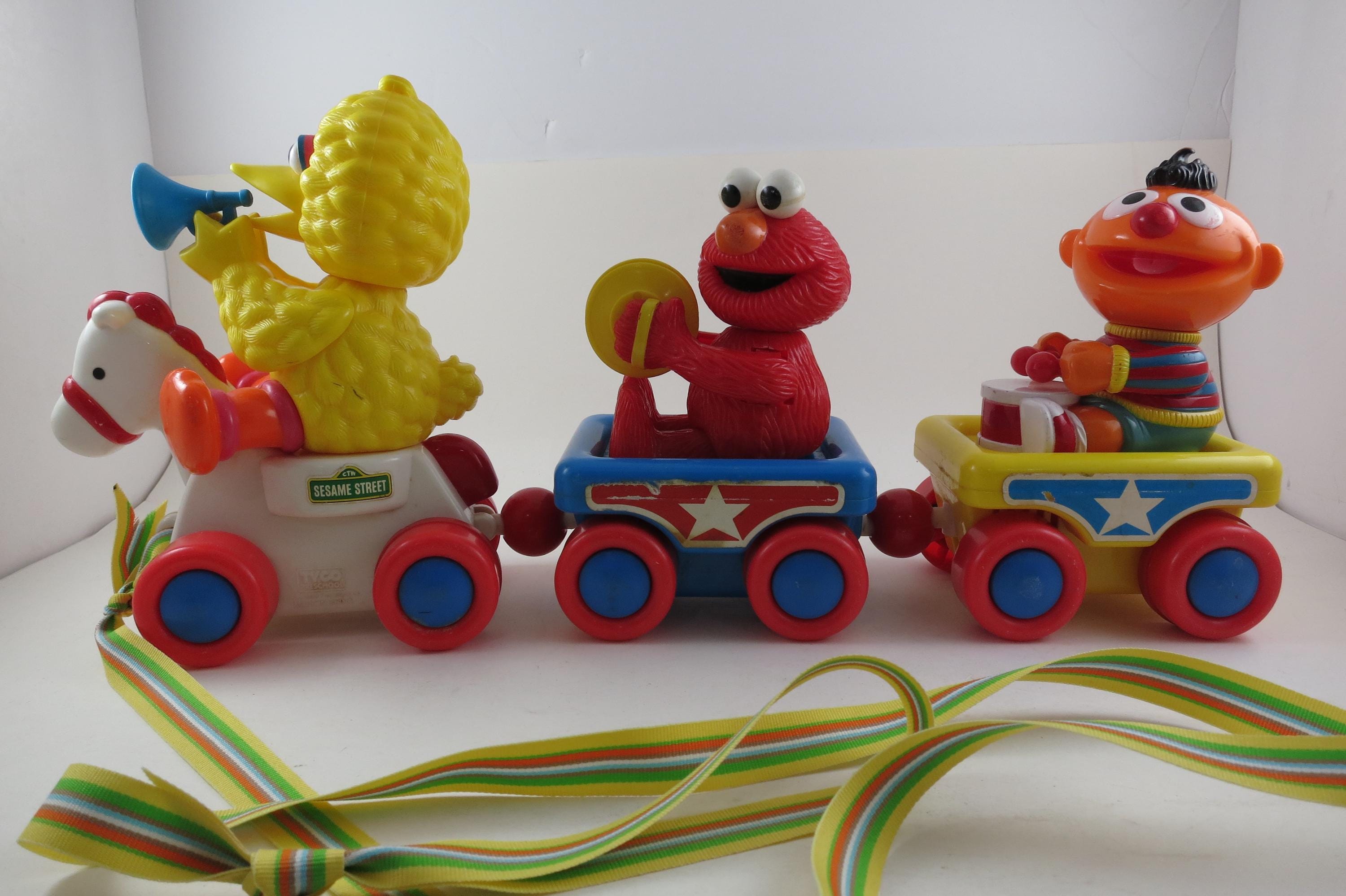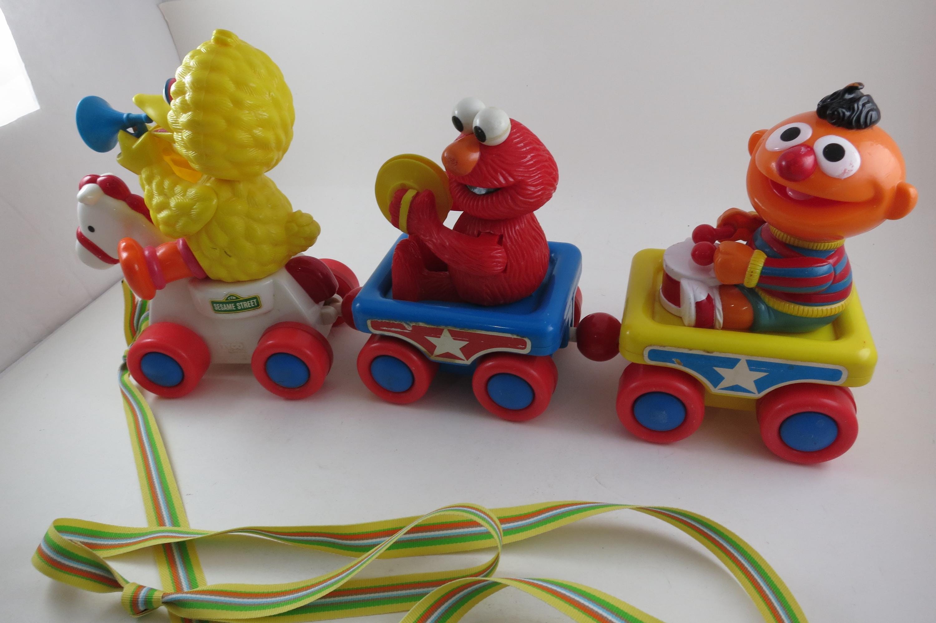 Vintage 1990's Sesame Street Band Parade Tyco Pull Train 16" Toy Big Bird Elmo Ernie.