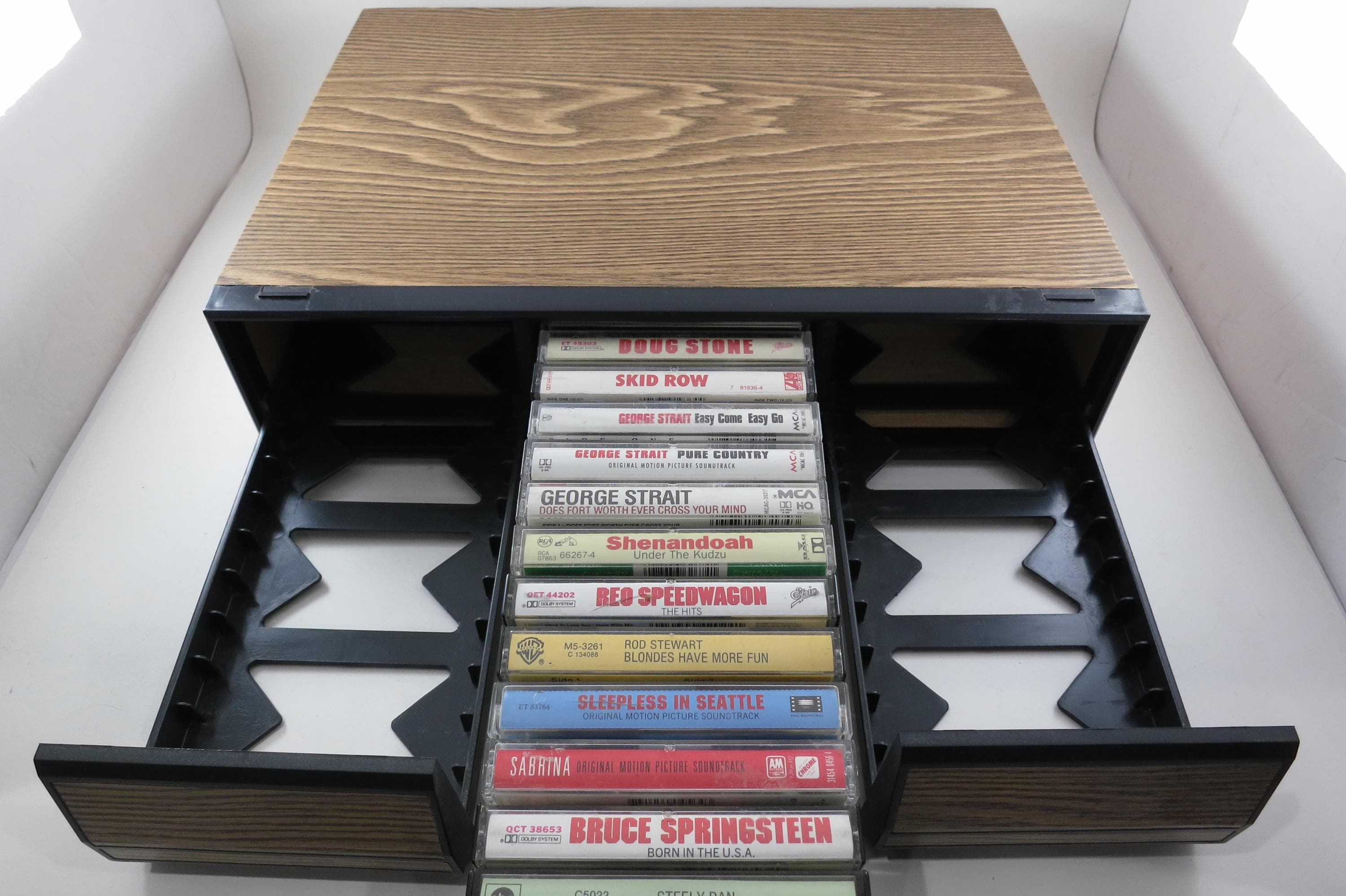 Vintage 1980s Faux Wood Cassette Tape Holder: Music Mate Storage for 42
