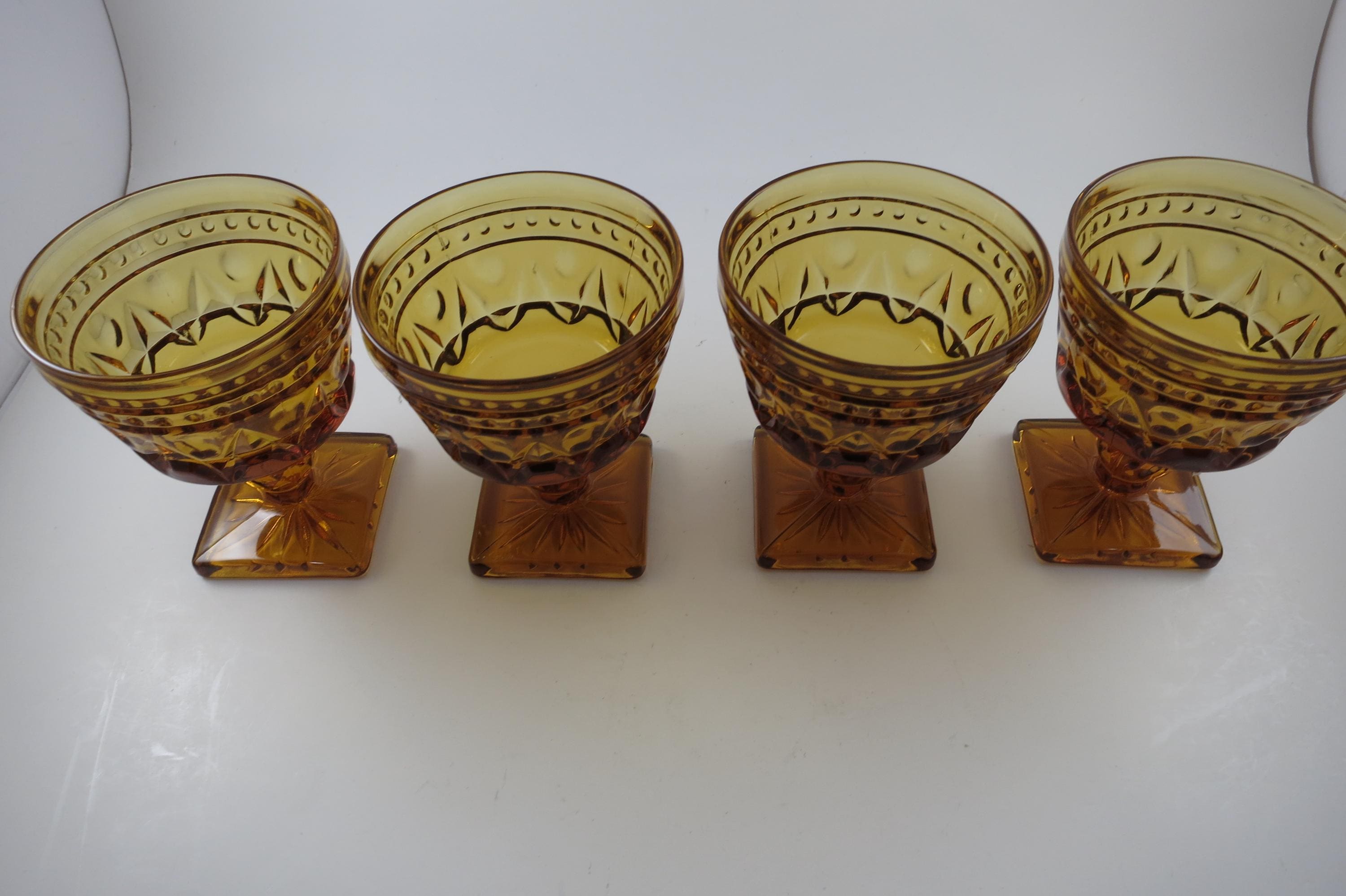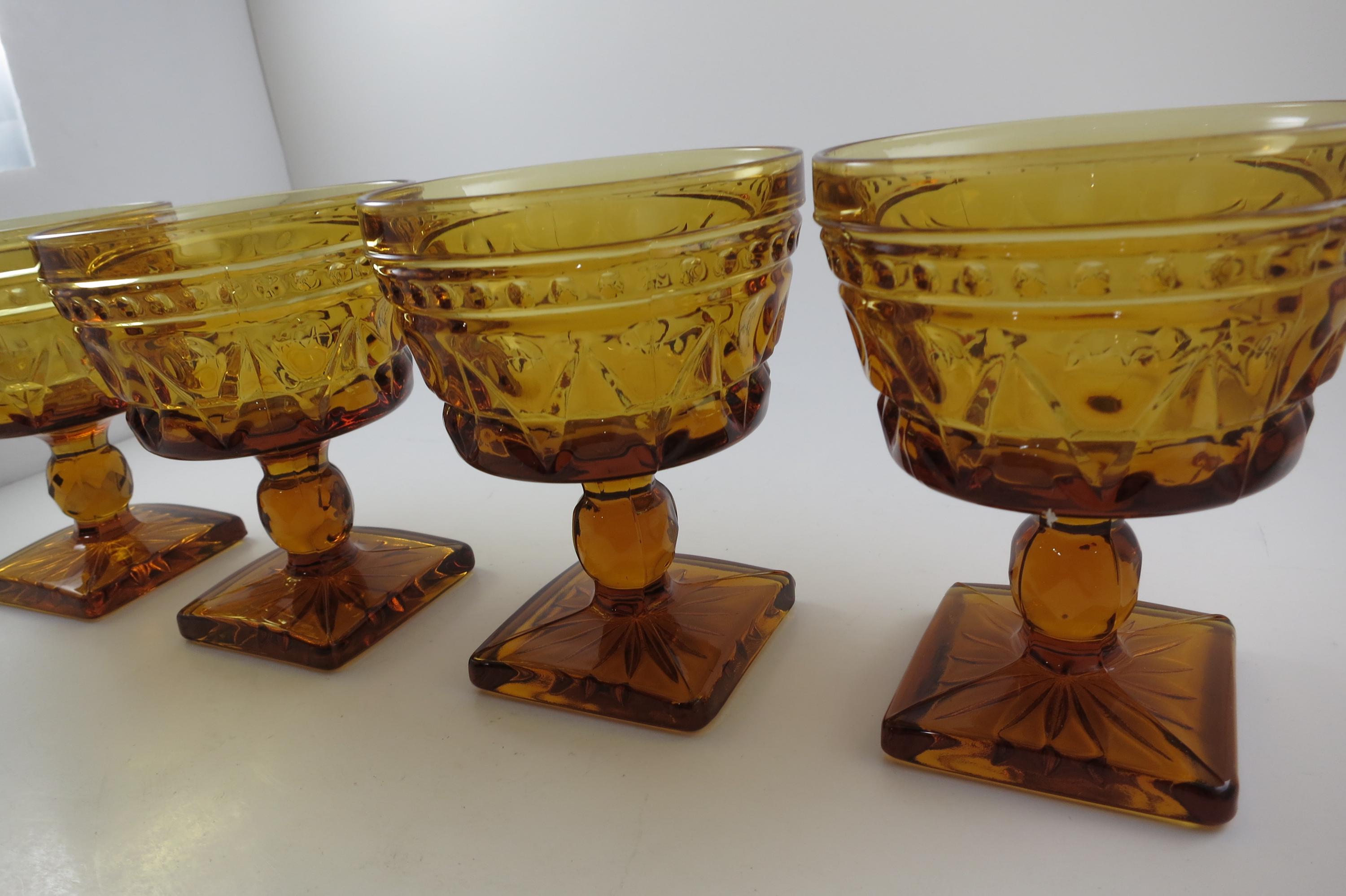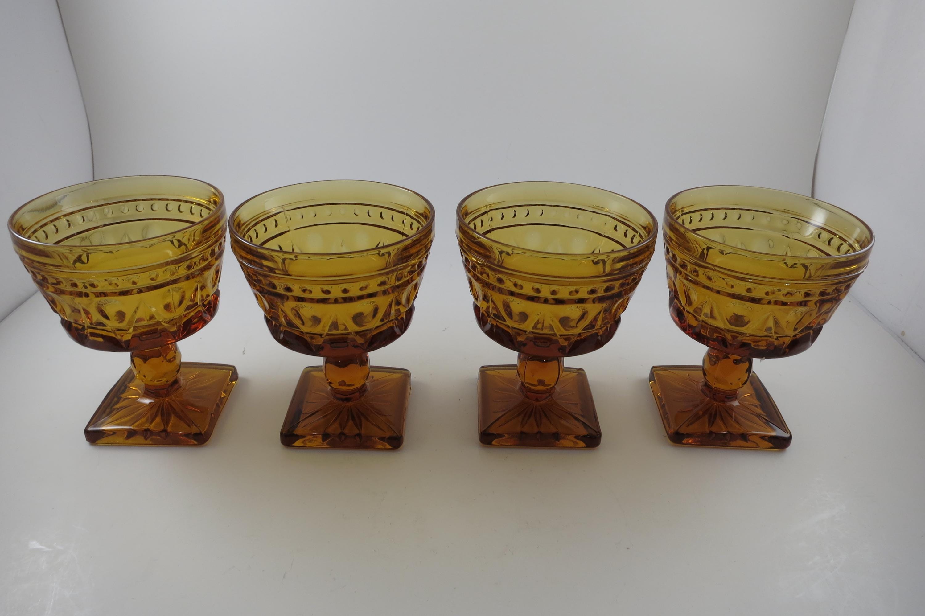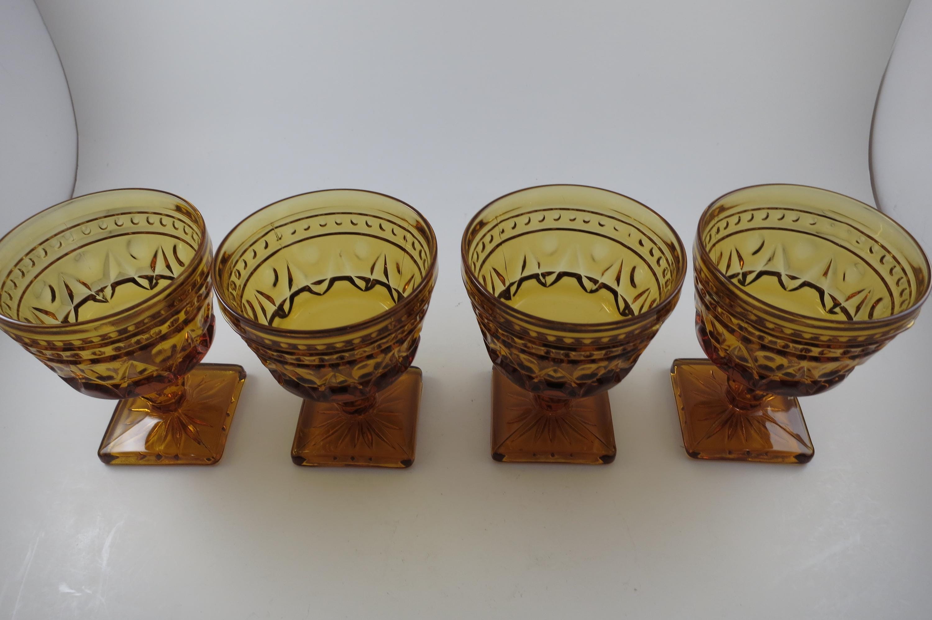 Set of 4 Vintage Indiana Glass Colony Park Lane Amber Sherbet Glasses