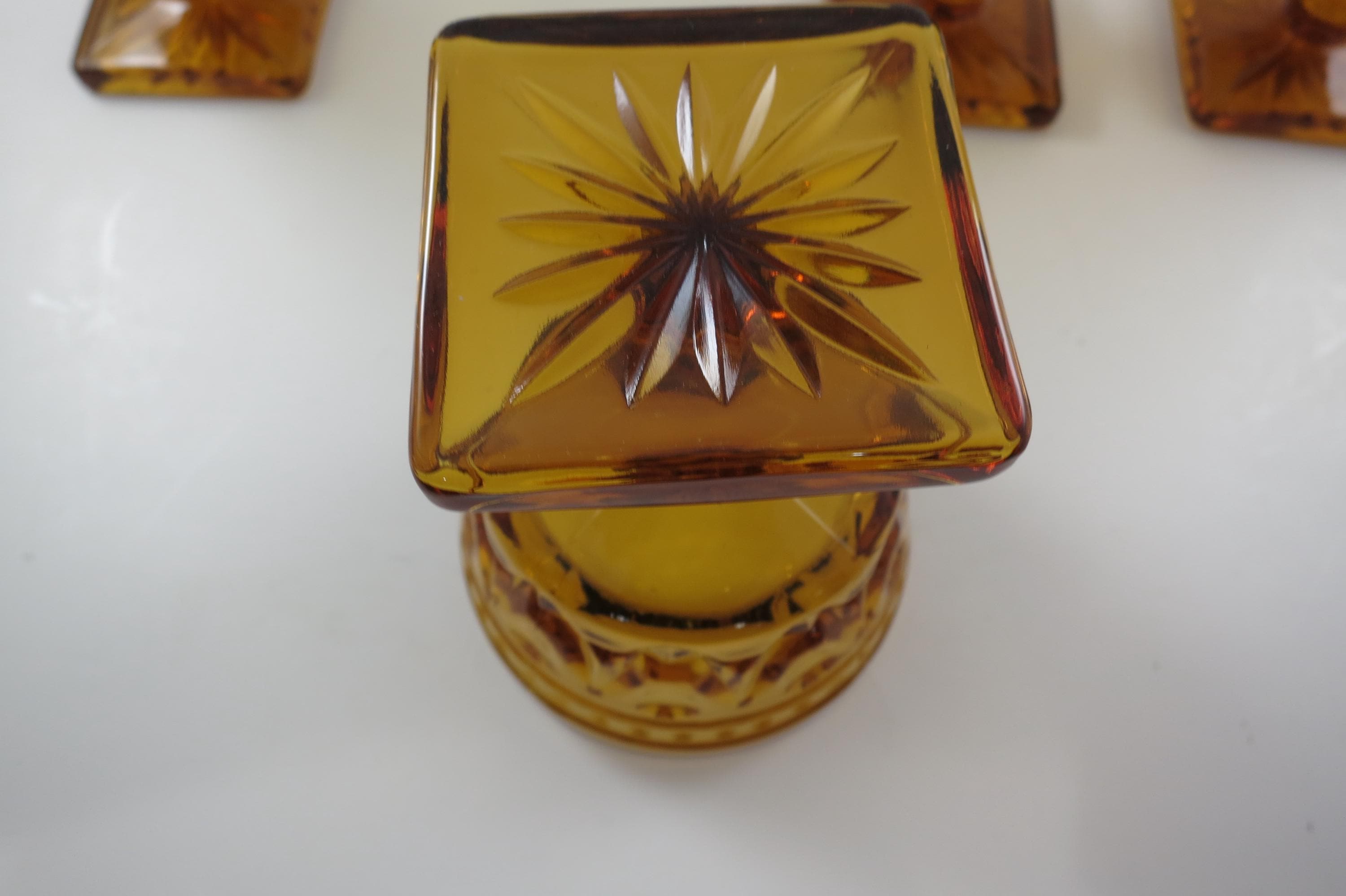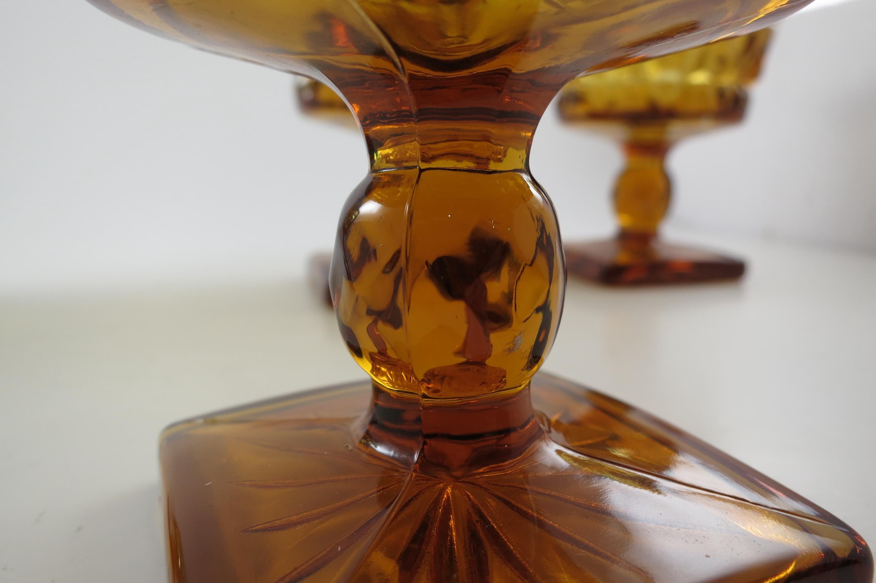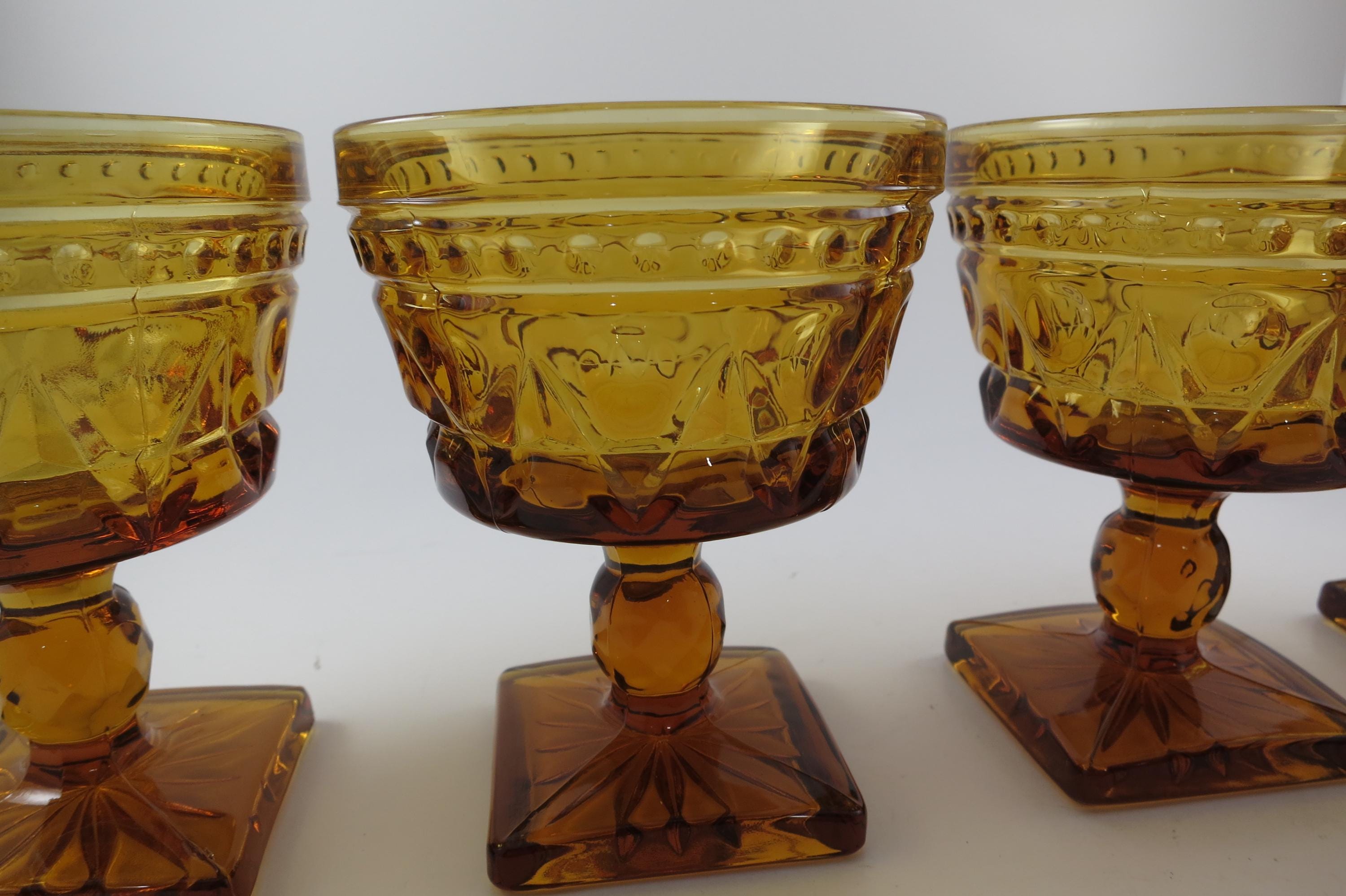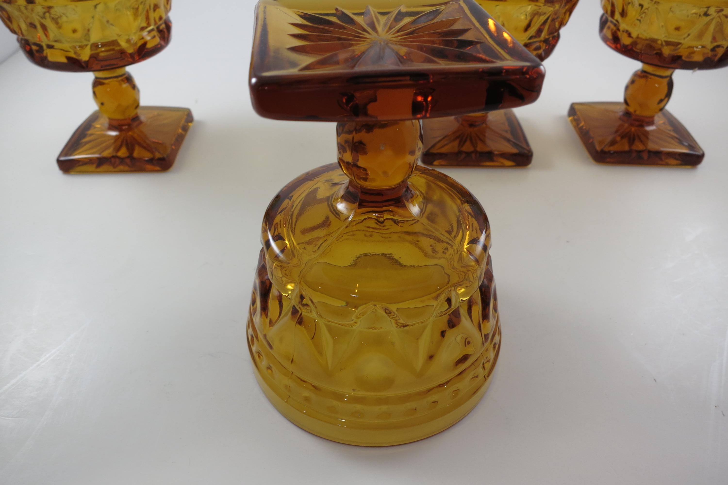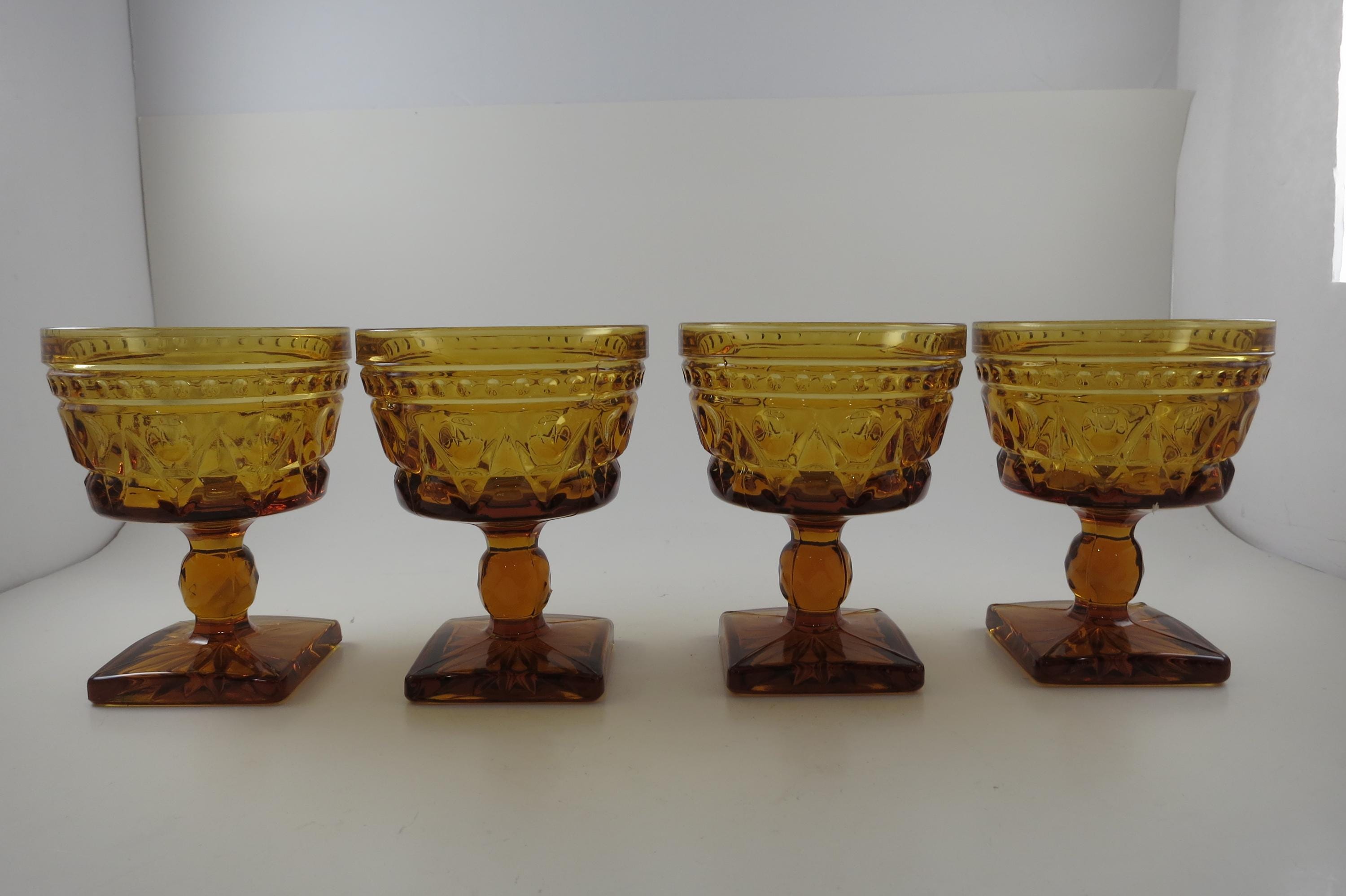 Set of 4 Vintage Indiana Glass Colony Park Lane Amber Sherbet Glasses