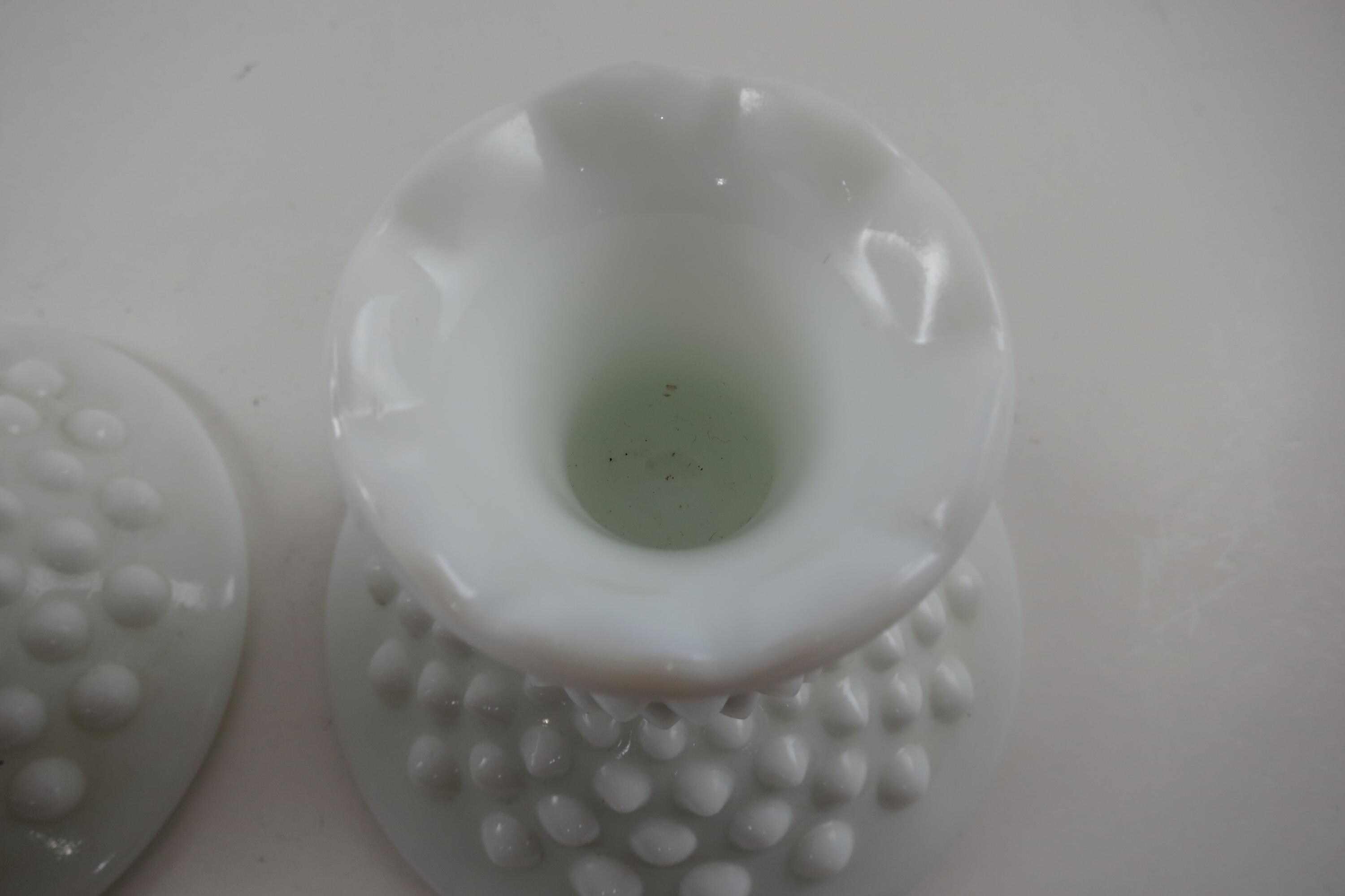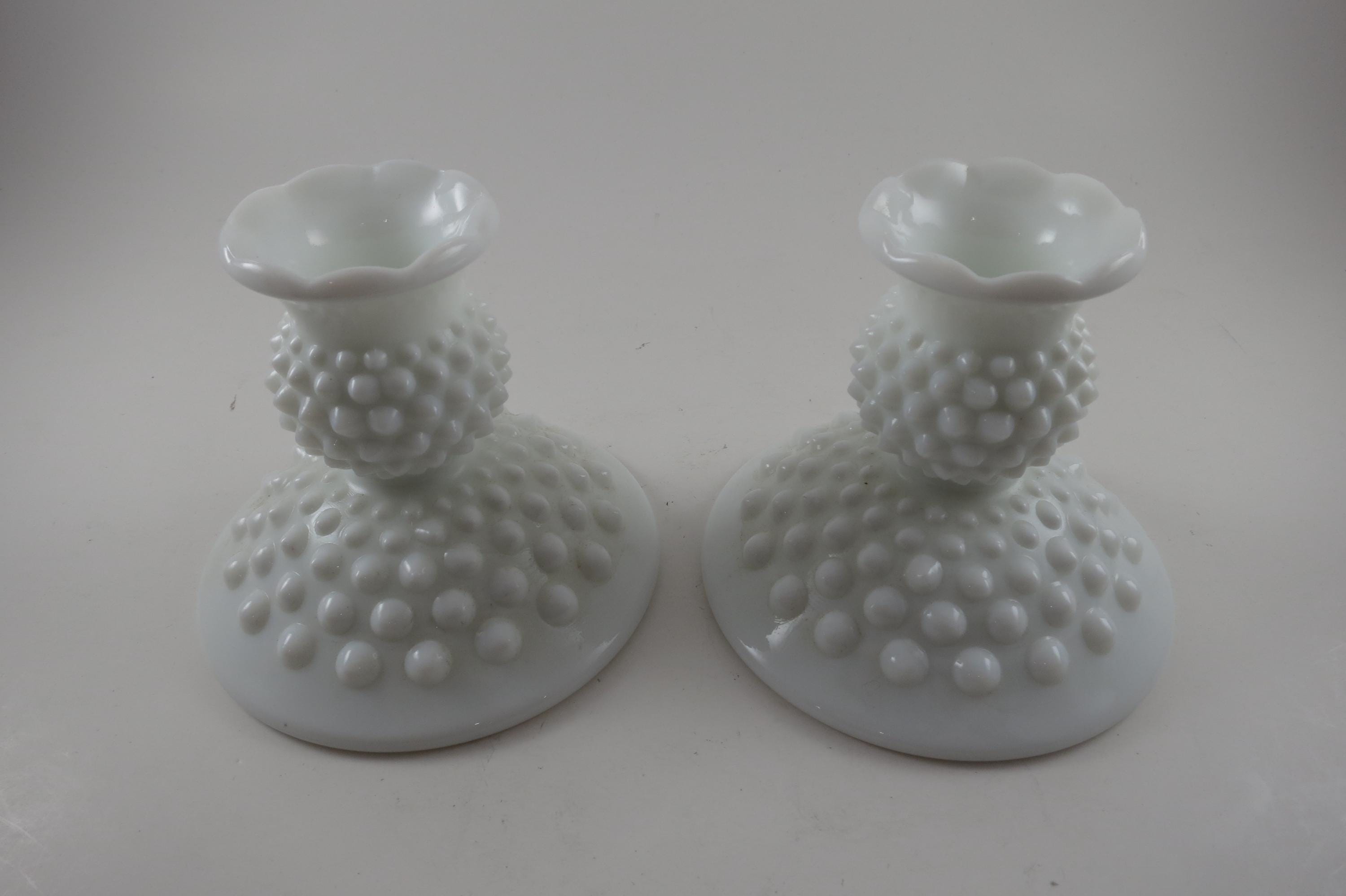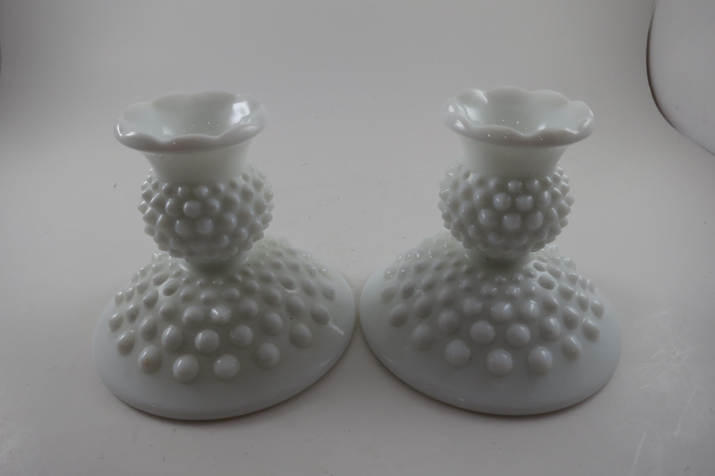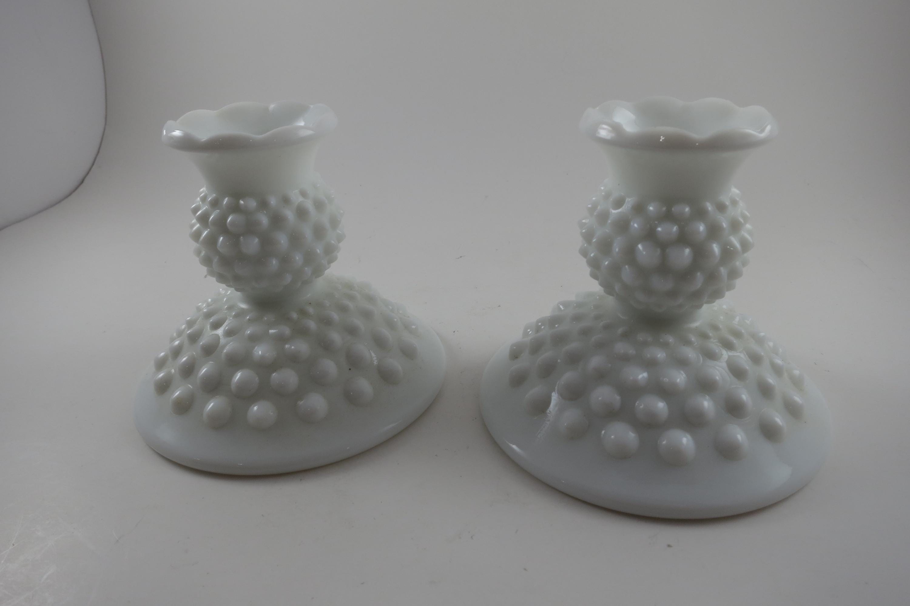 Vintage Milk Glass Hobnail Candle Holders.