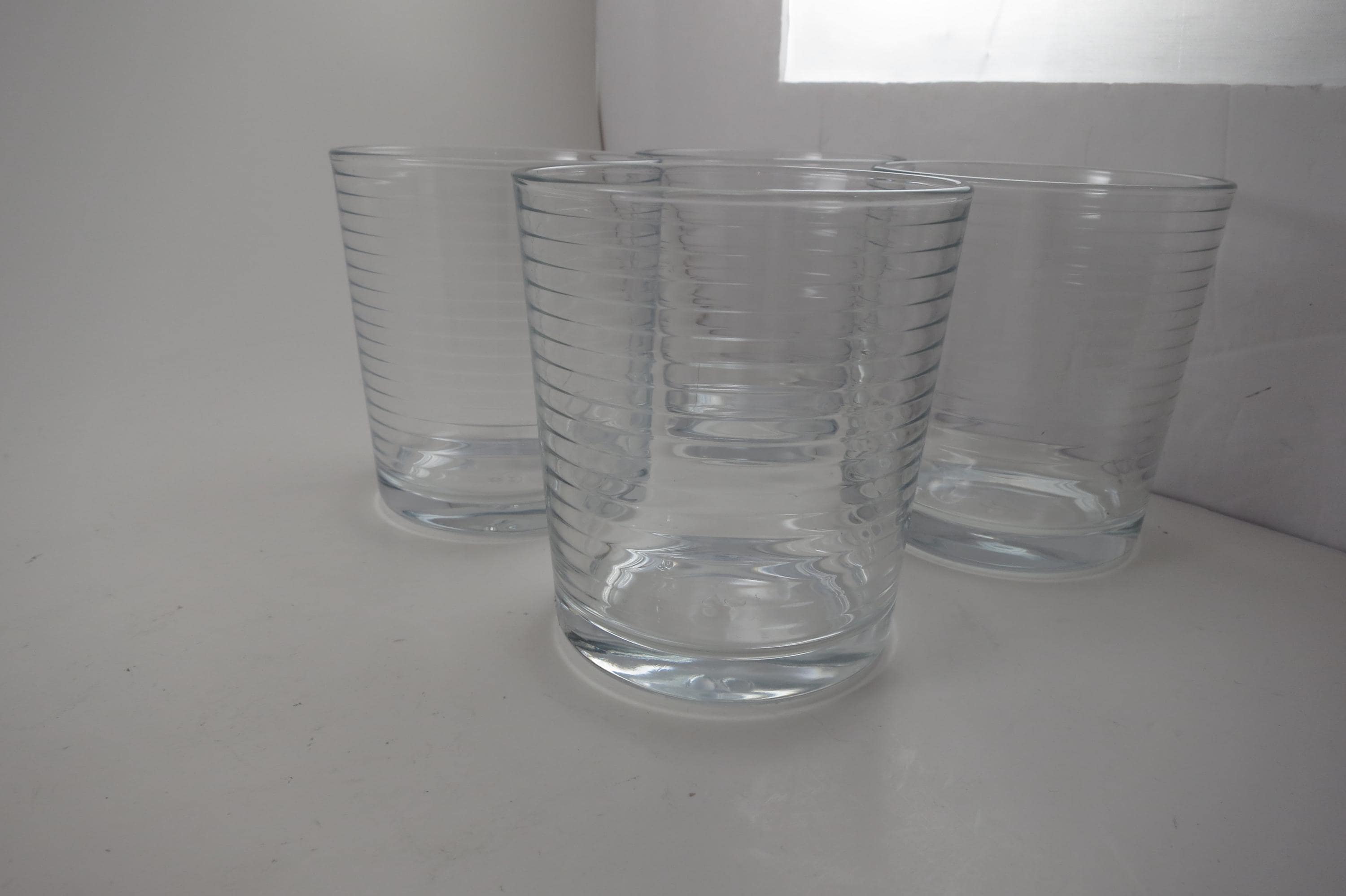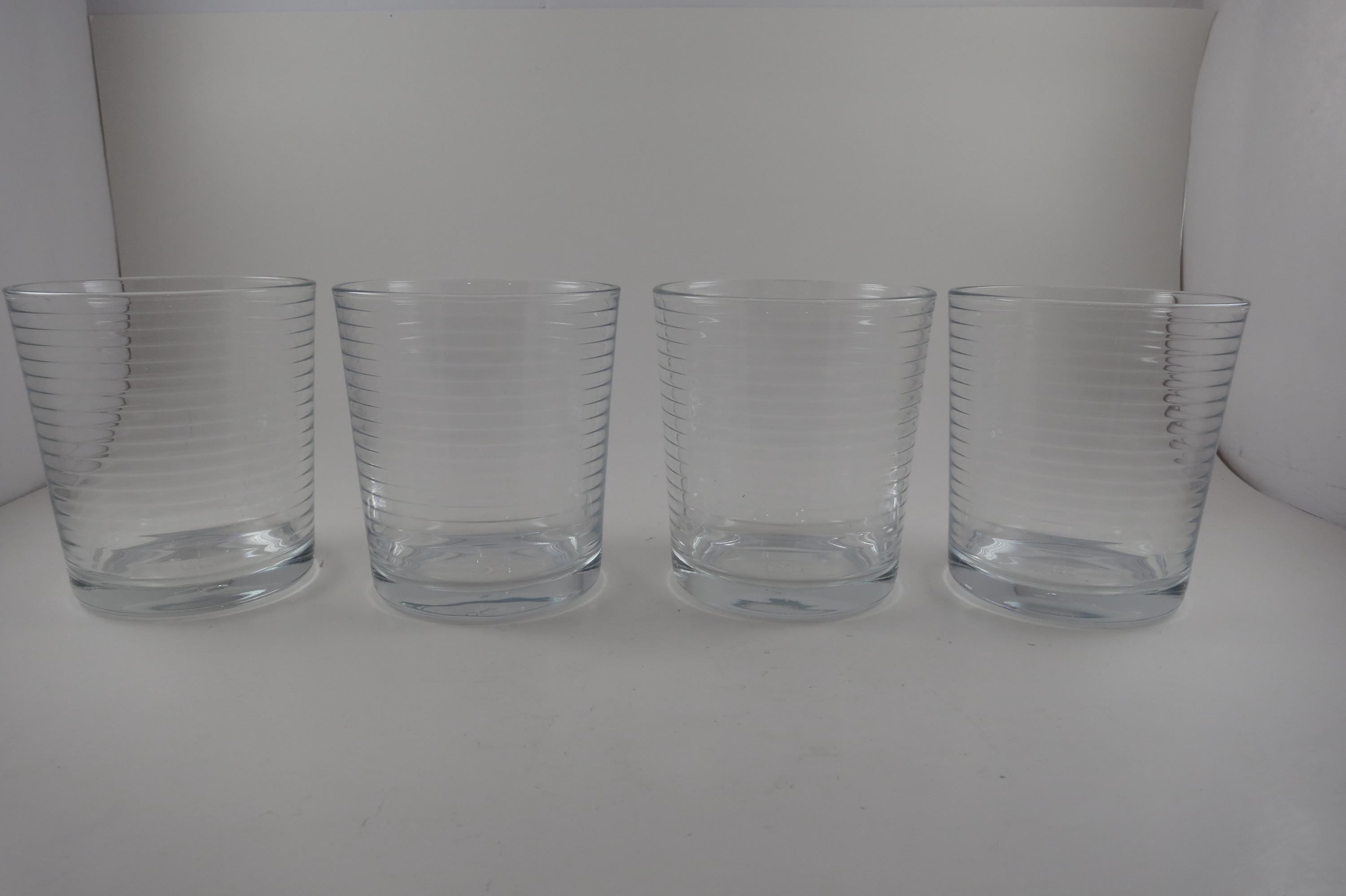 Set of Four Doro by Pasabache 4 Inch Double Old Fashioned Glasses Horizontal Lines