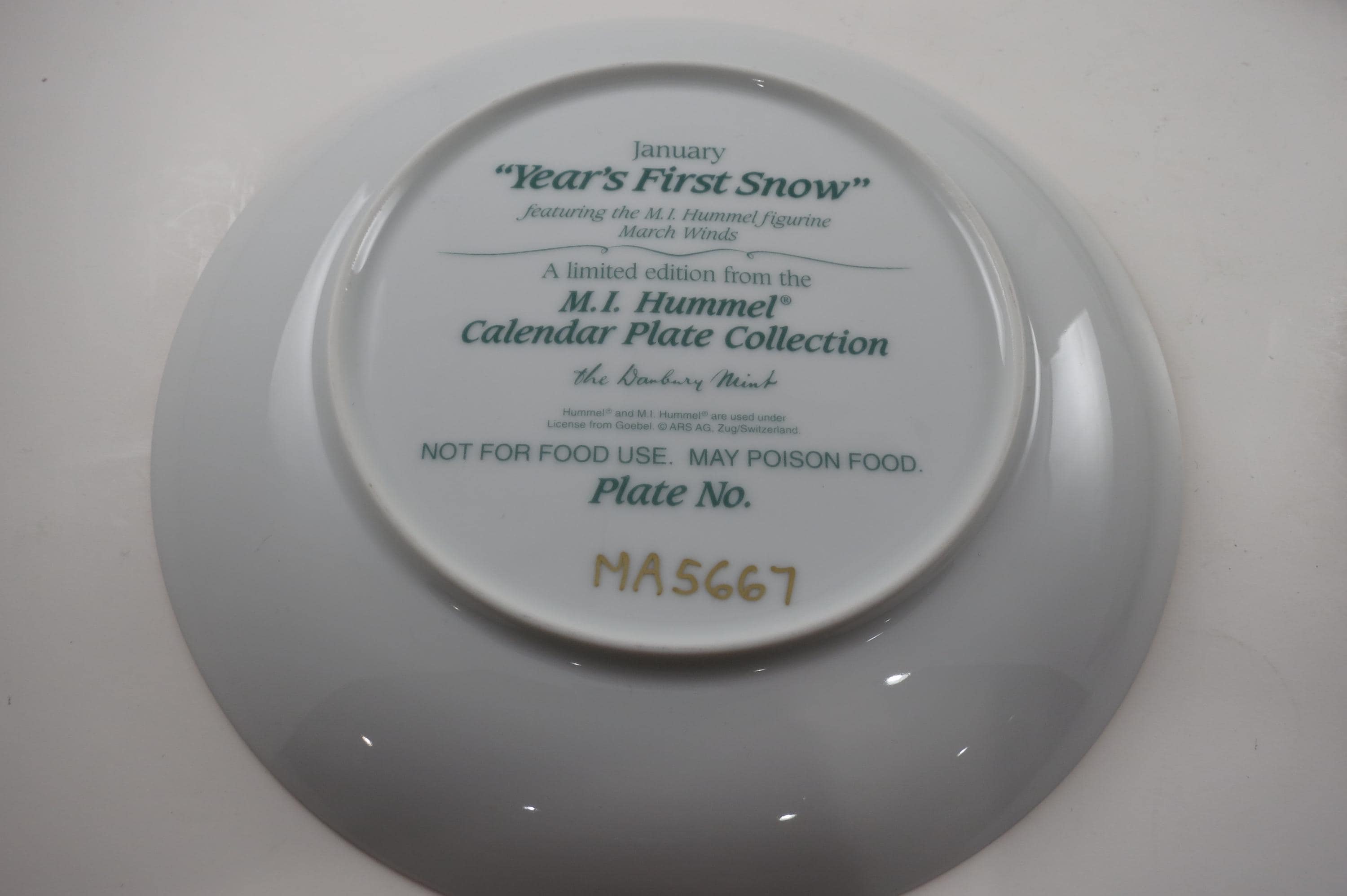 These five plates are all from the Calendar Plate Collection and all have matching serial numbers, which is MA5667. All five plates are perfect with no damages of any kind and are from the Danbury Mint. All are 8 inches in diameter. Includes the following
