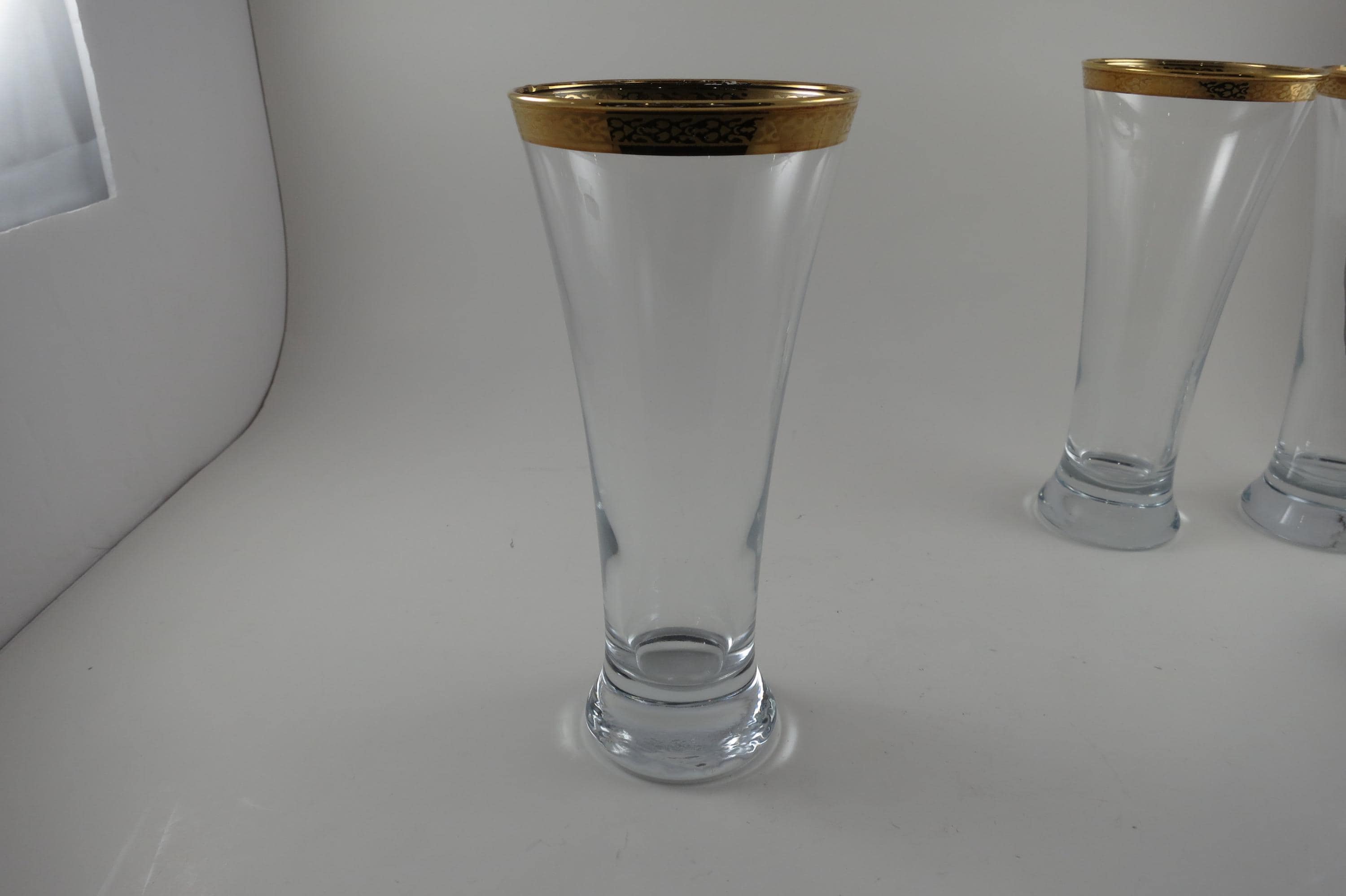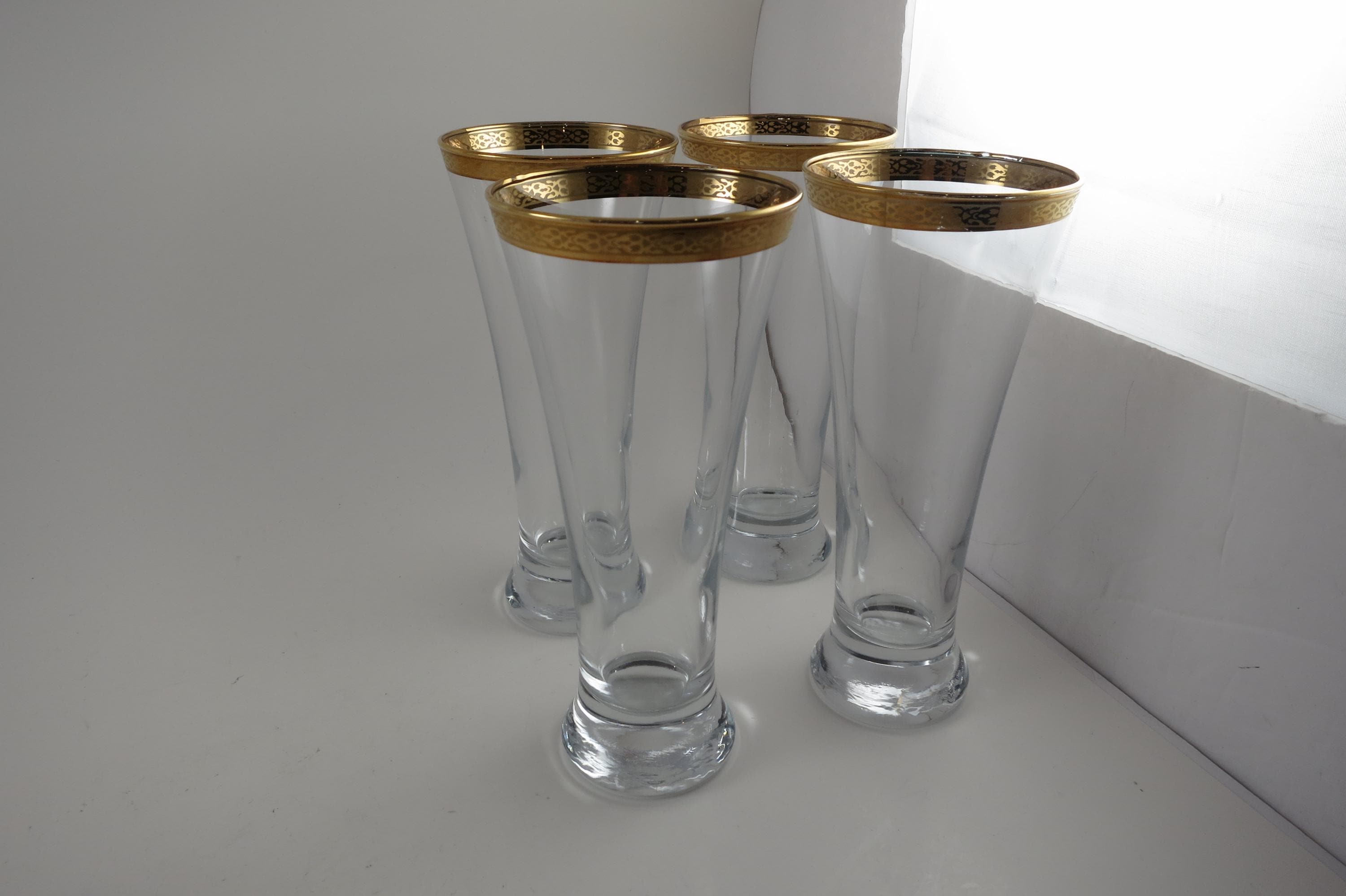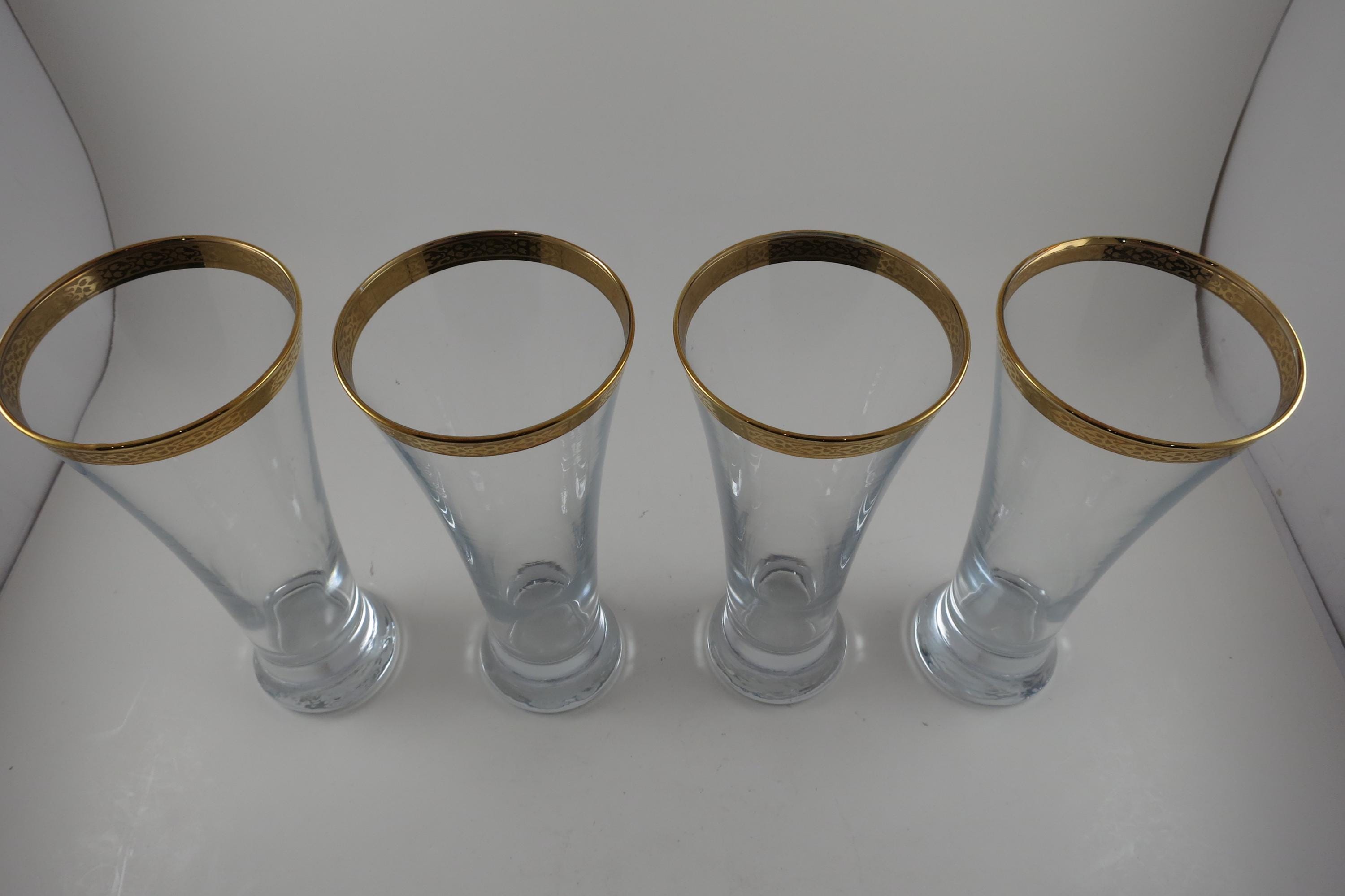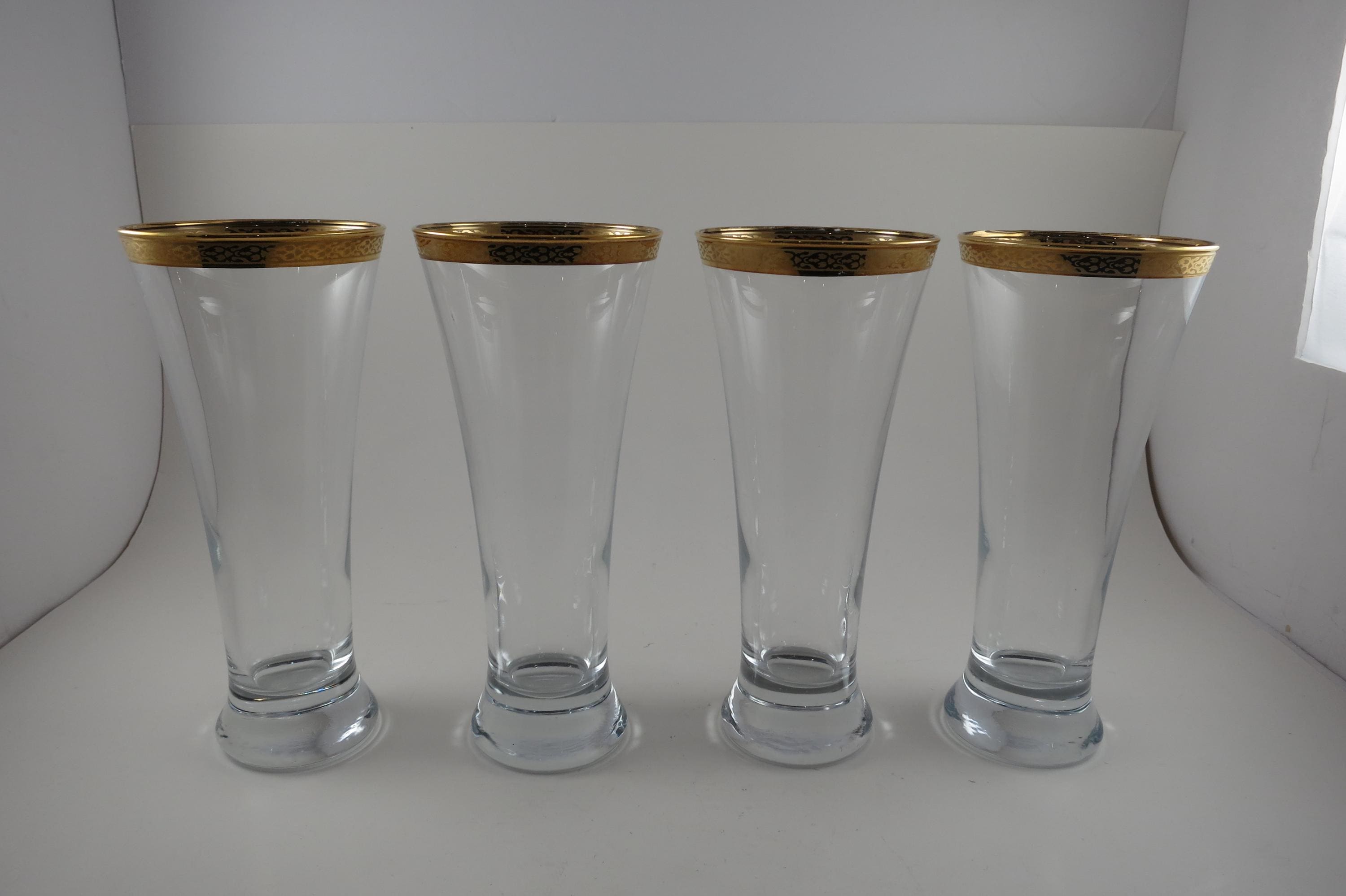 Vintage Tiffin Franciscan Gold Rimmed 7 Inch Pilsner Glasses - Set of 4.