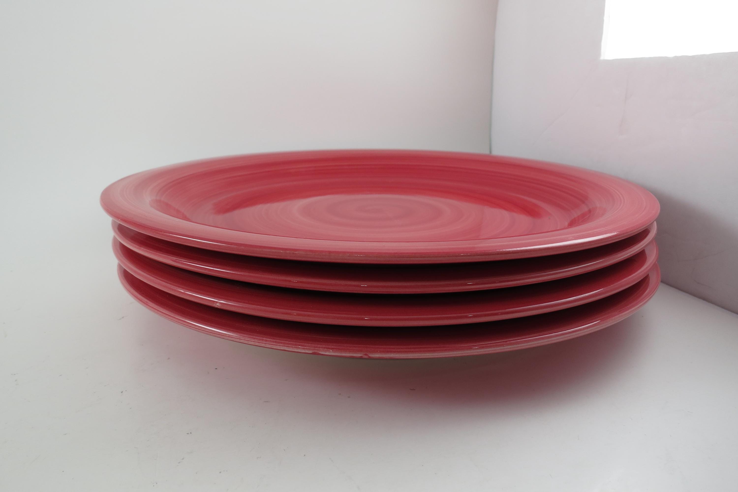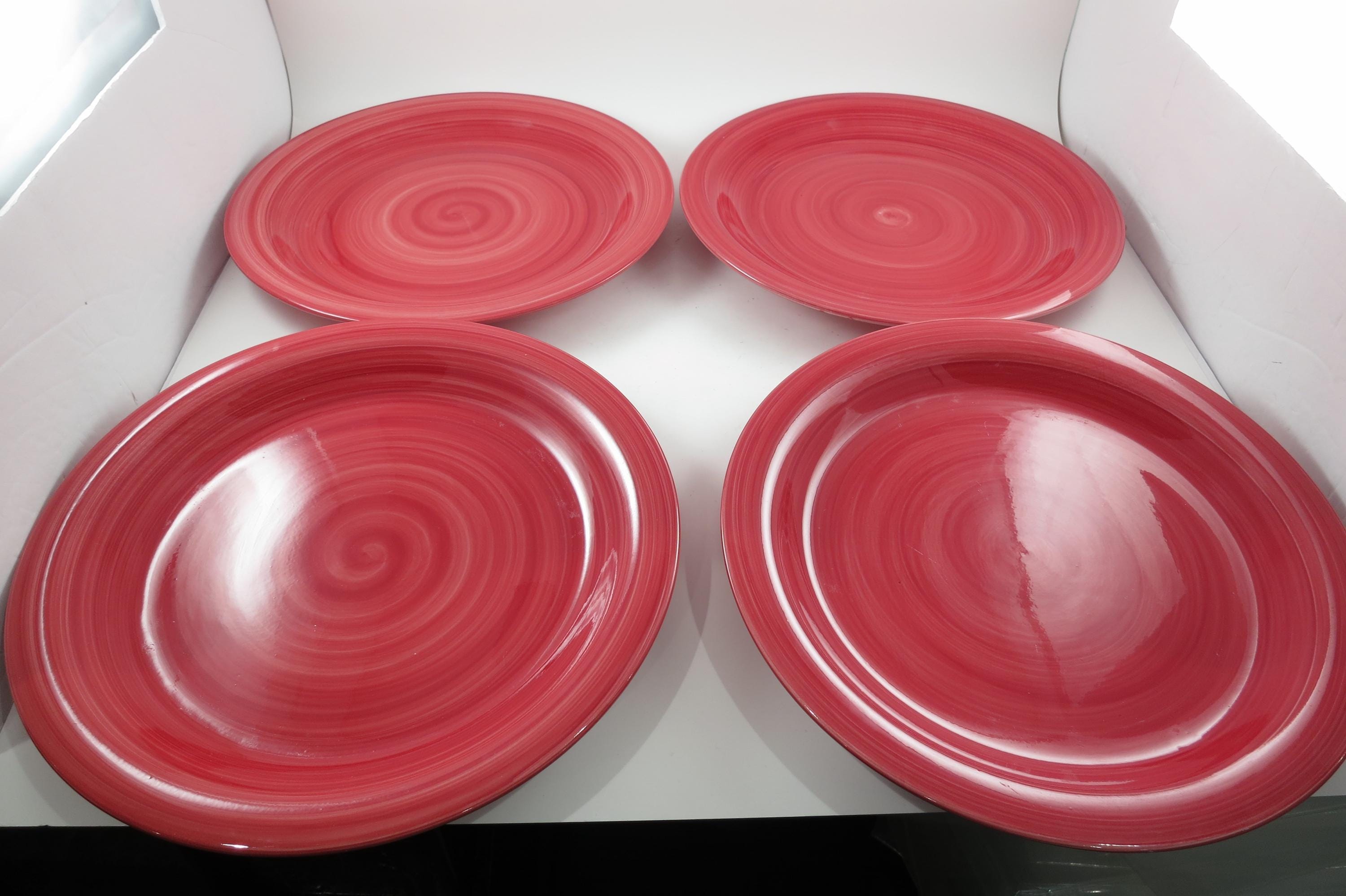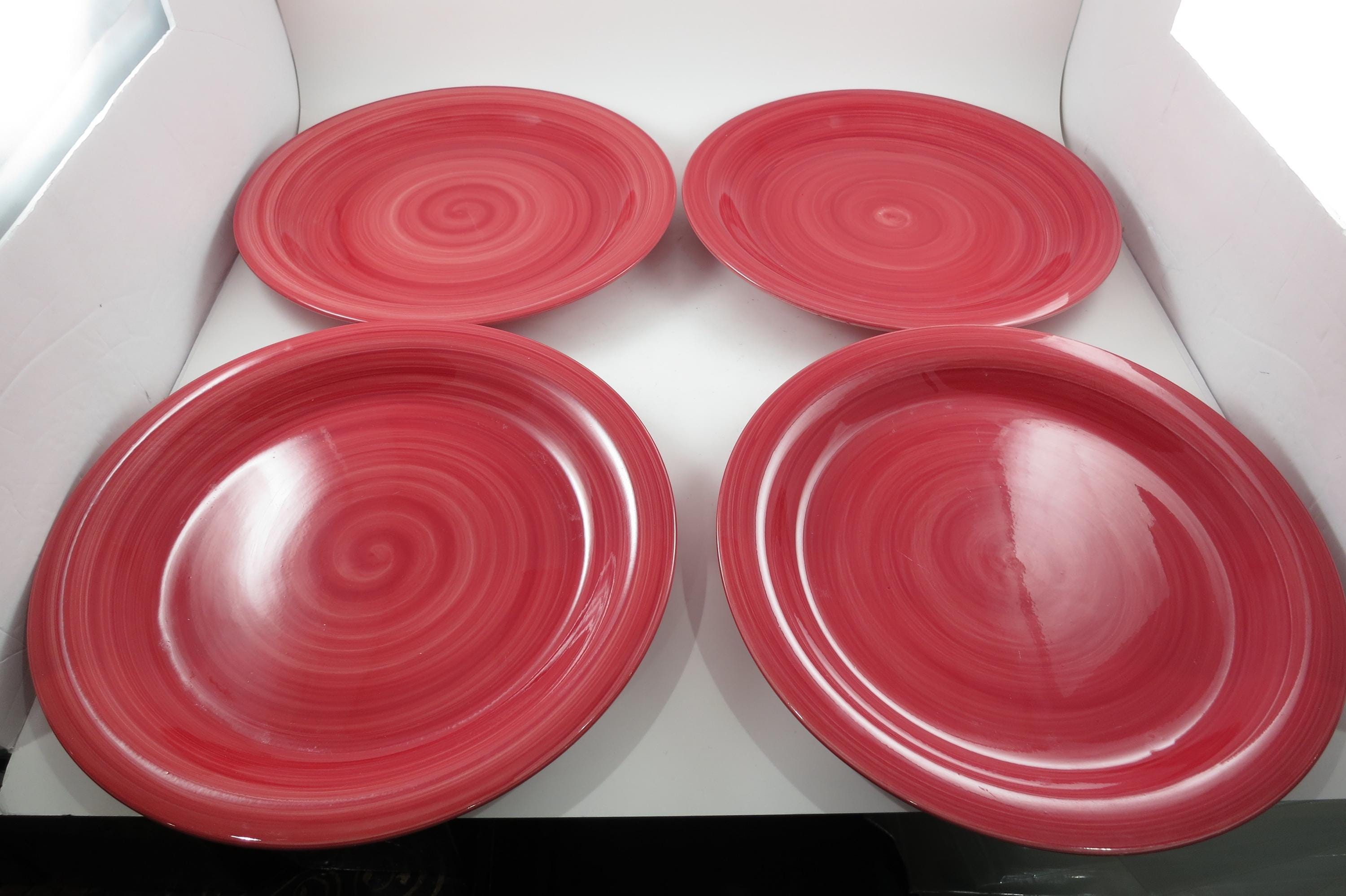 Red Swirl Smart Living Stoneware 10 3/4 Inch Dinner Plates-Set of 4