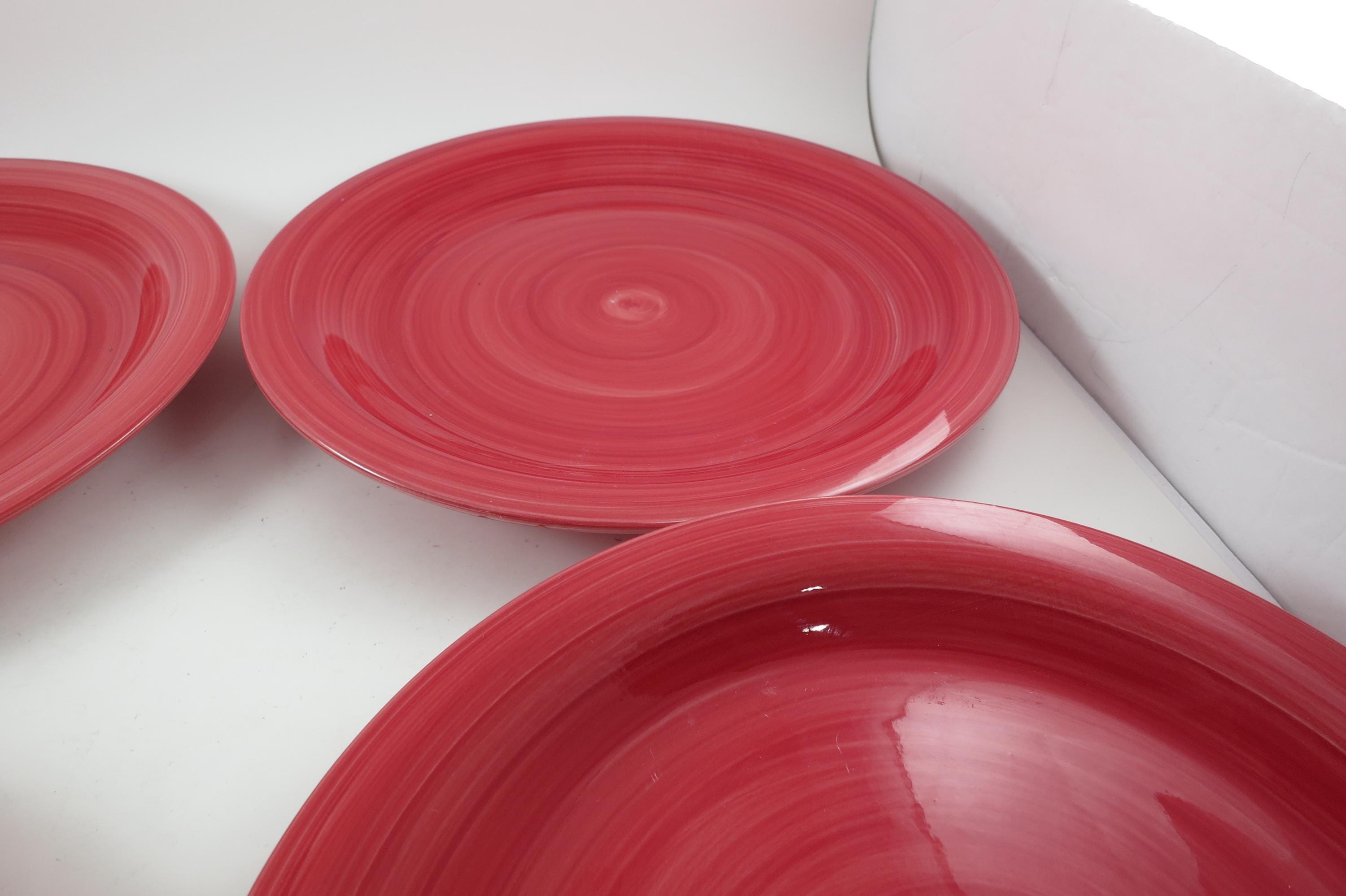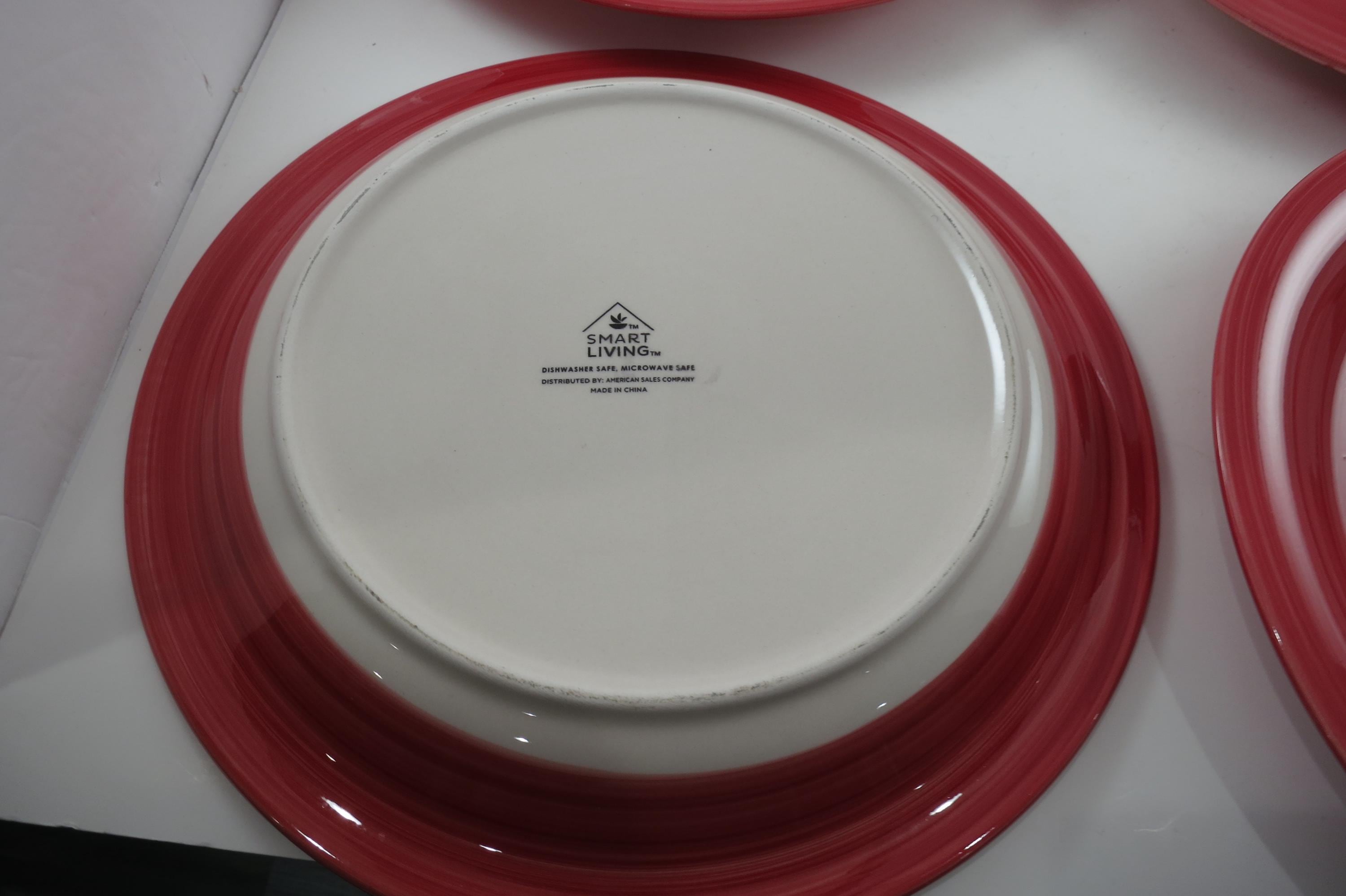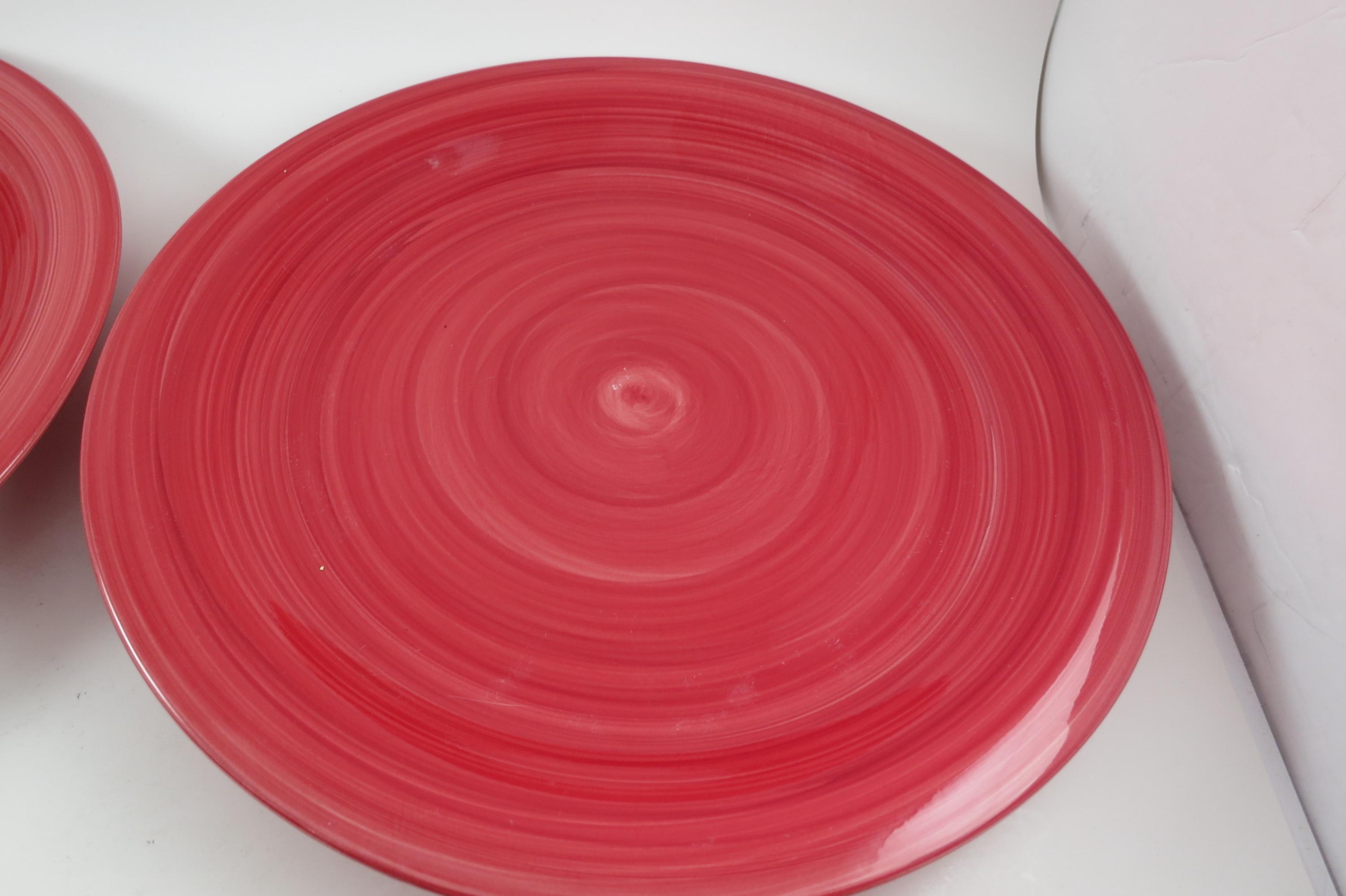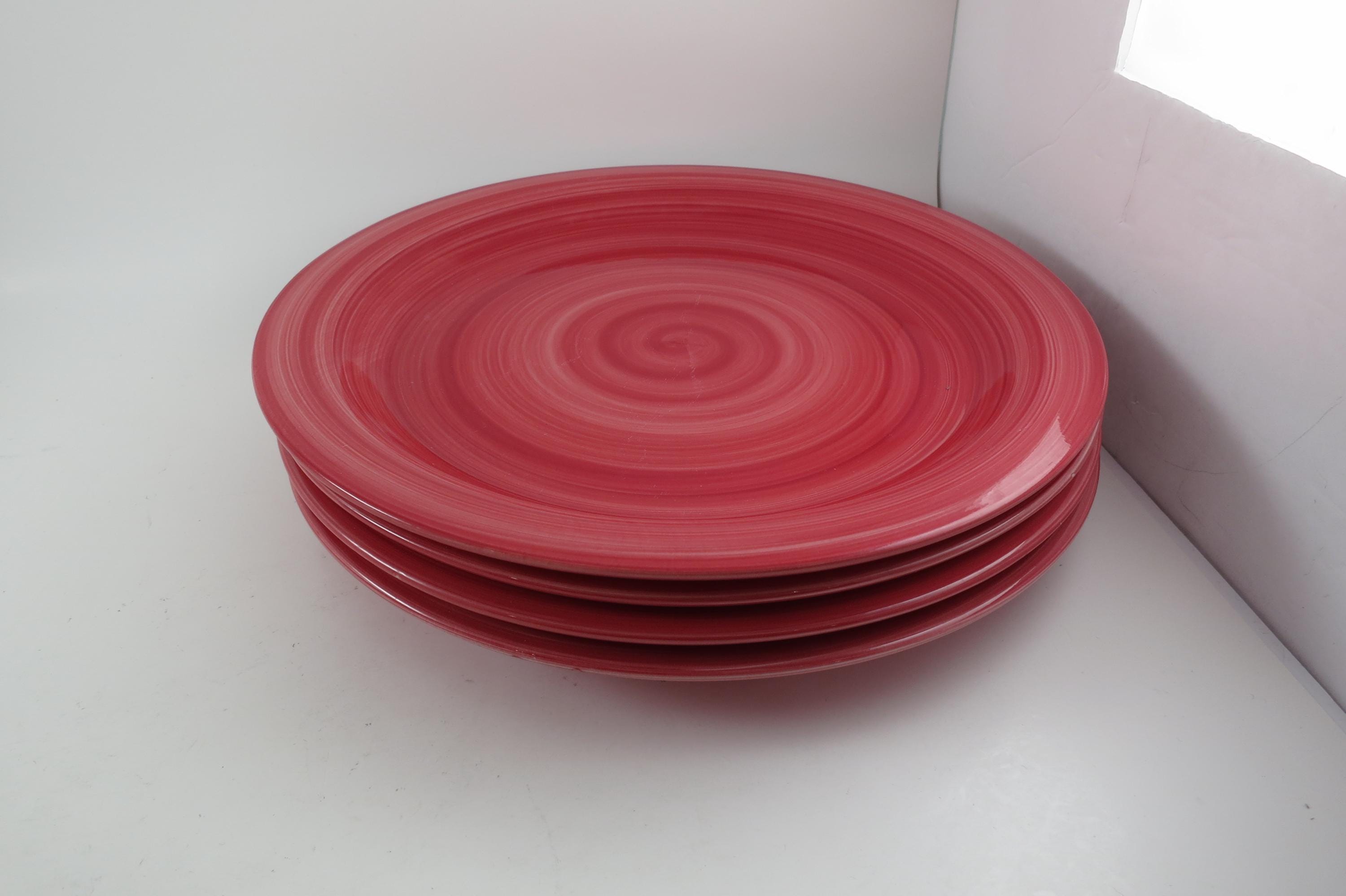 Red Swirl Smart Living Stoneware 10 3/4 Inch Dinner Plates-Set of 4