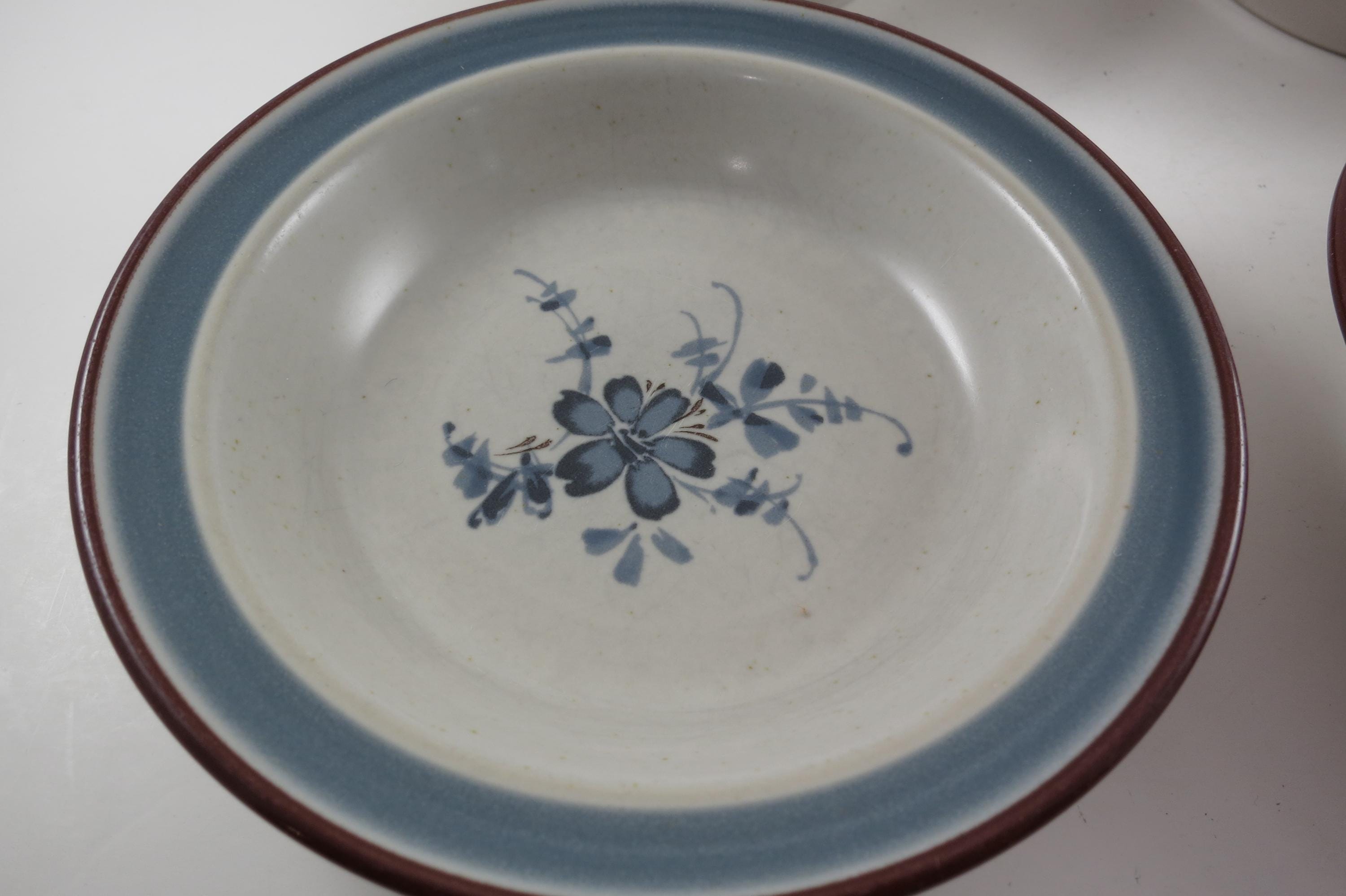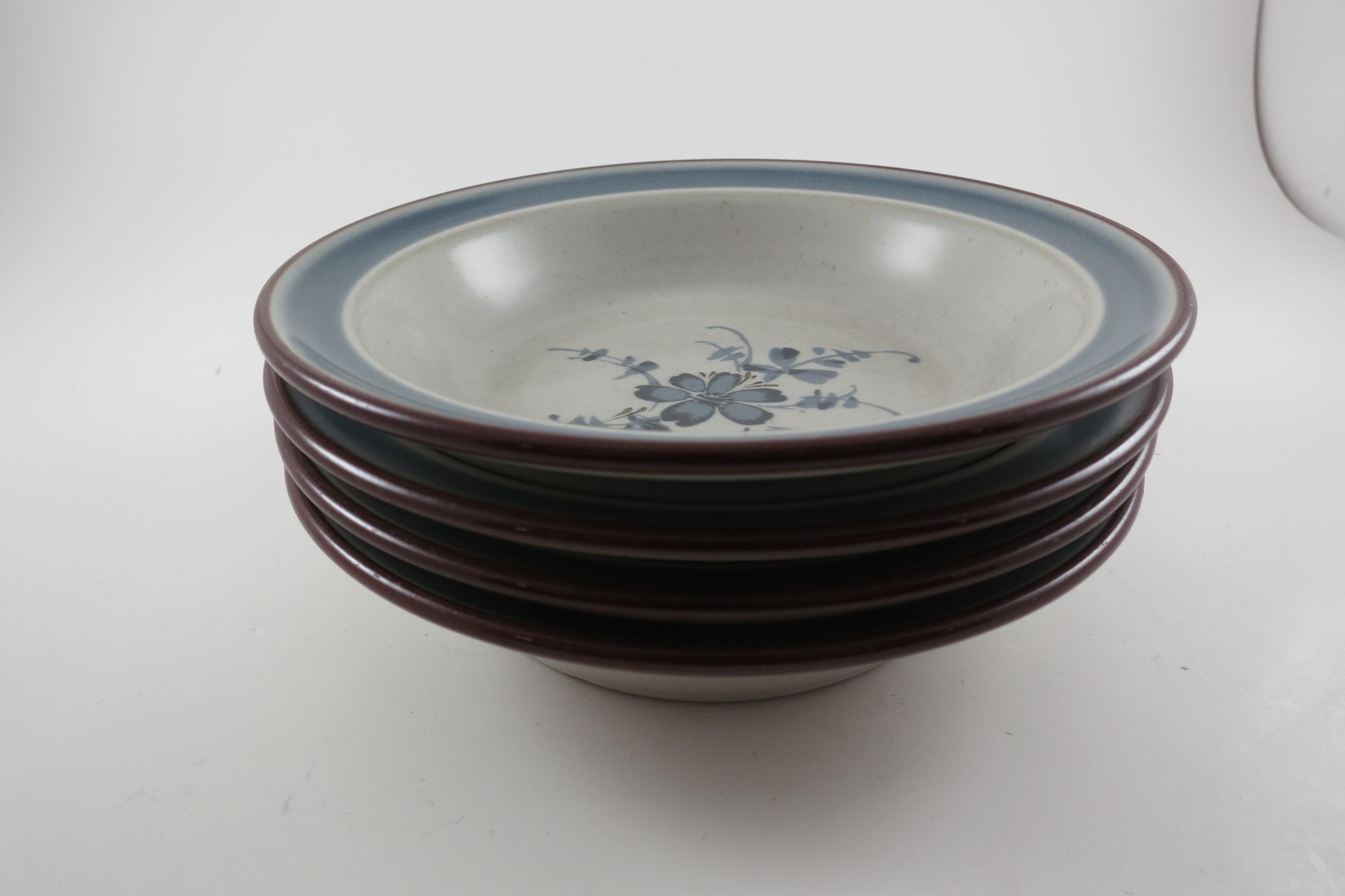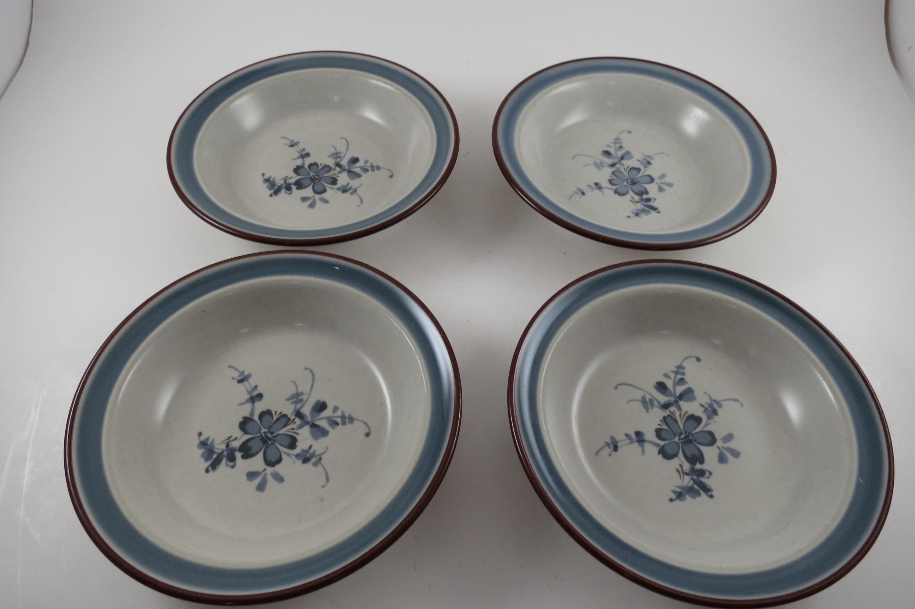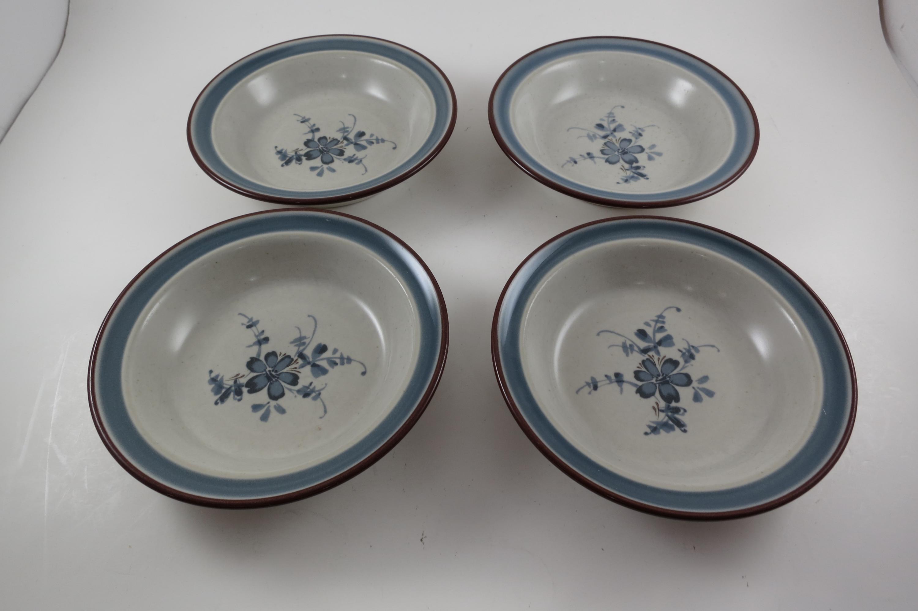 Set of 4 Noritake Stoneware Pleasure Pattern 5 1/2 Inch Fruit Bowls.