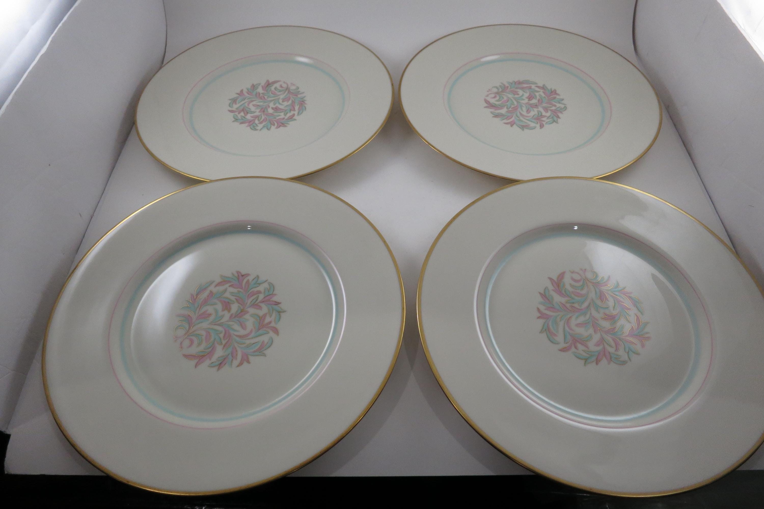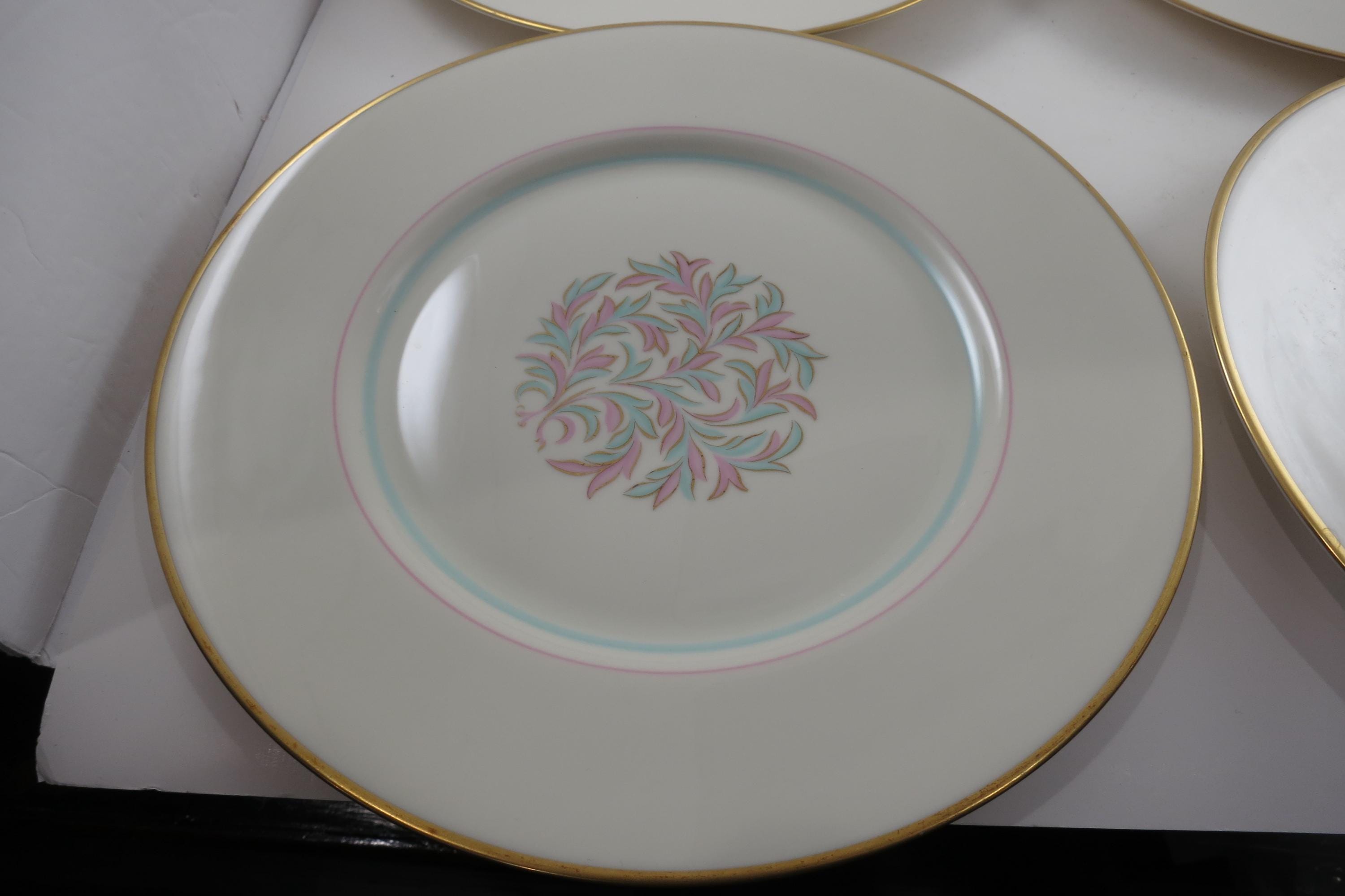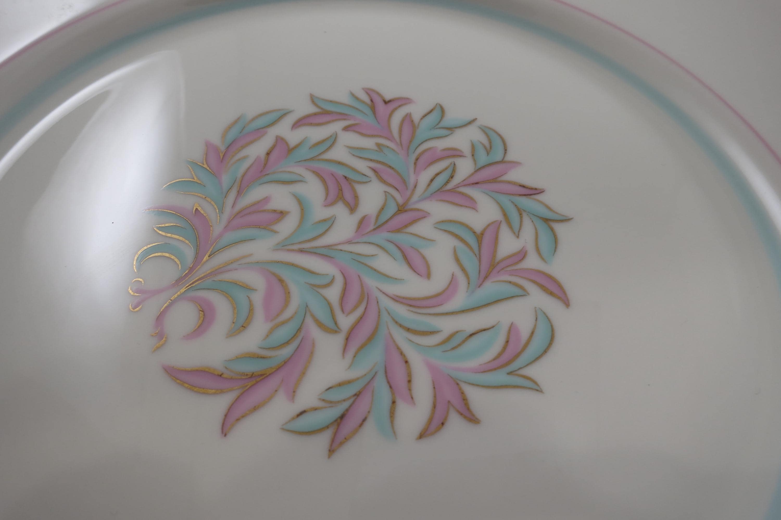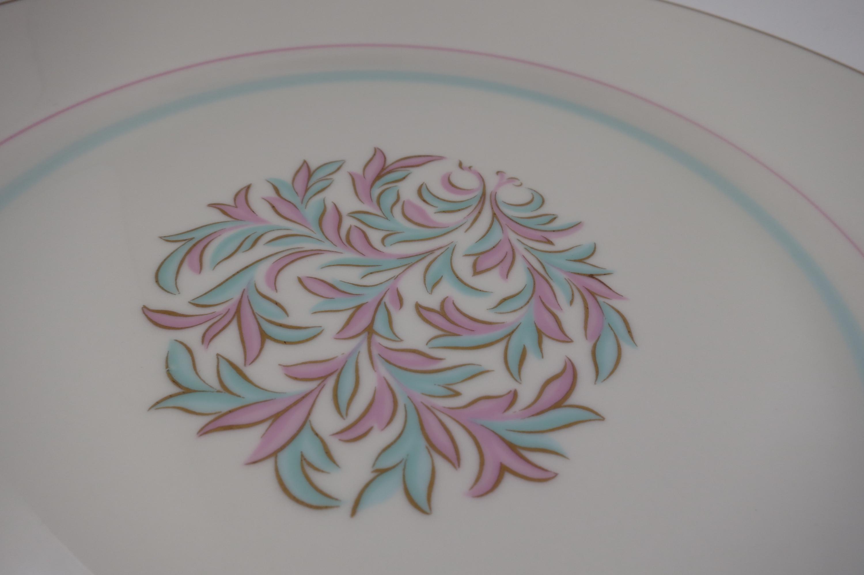 These are in excellent to like new condition. Very nice Turquoise & Pink Leaves Pattern. We have a large set we are listing so please check out our other items!