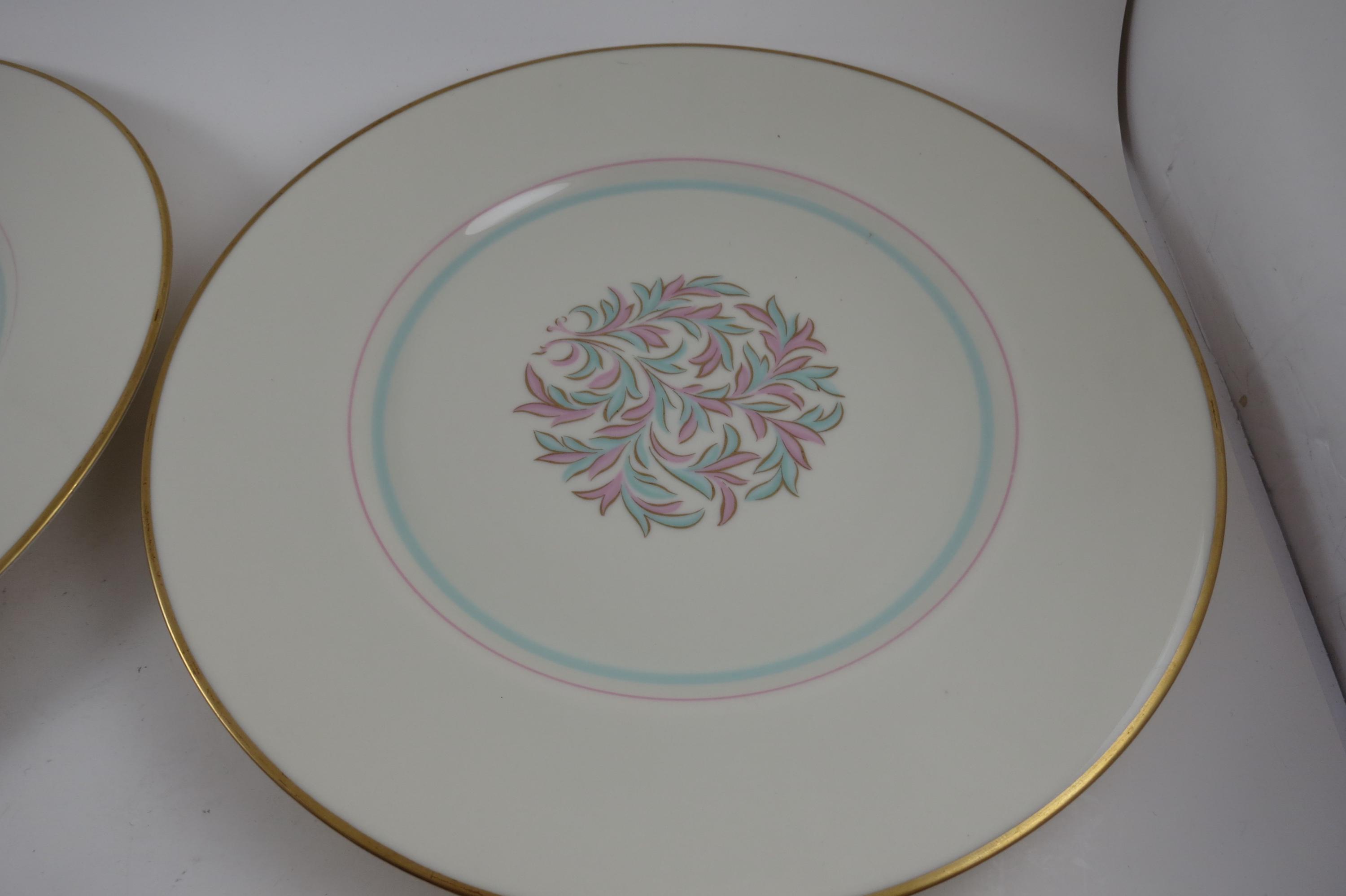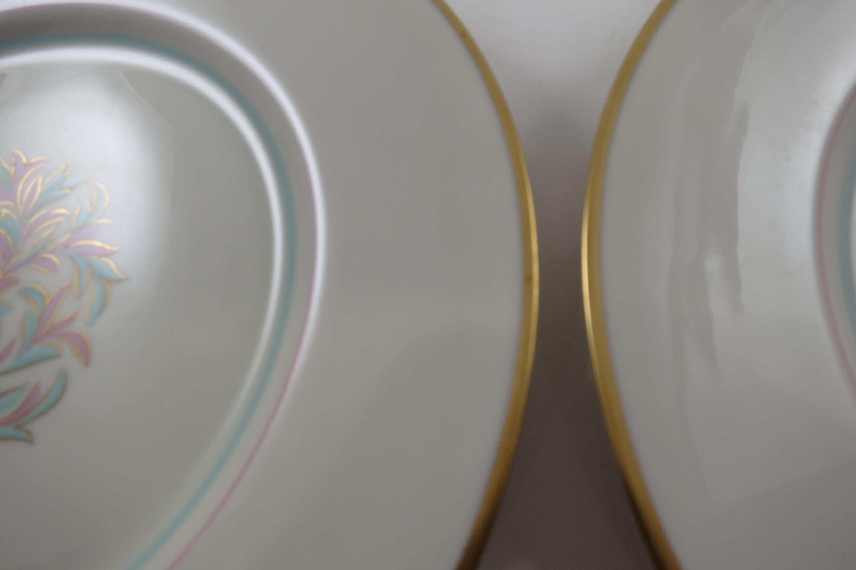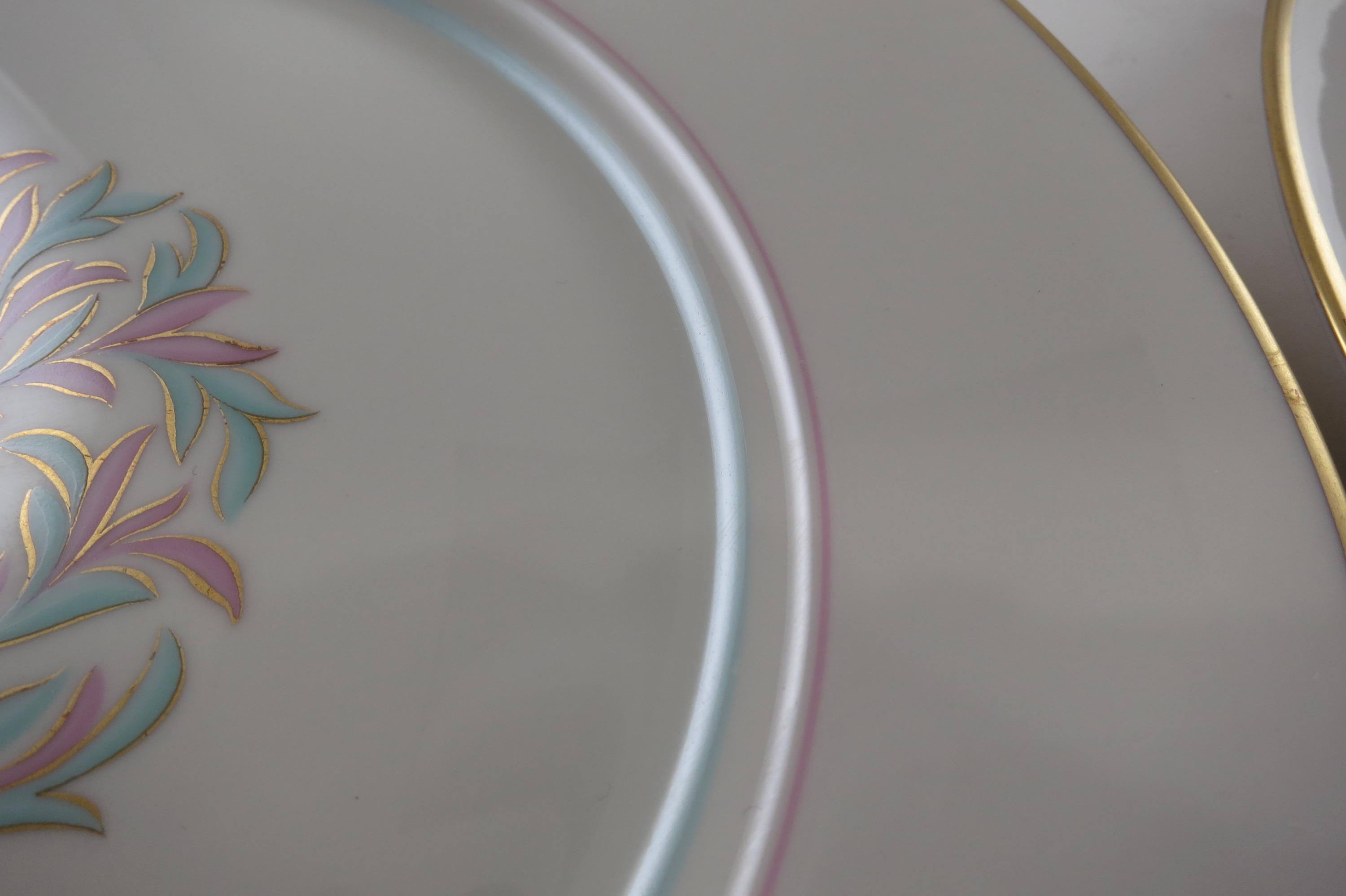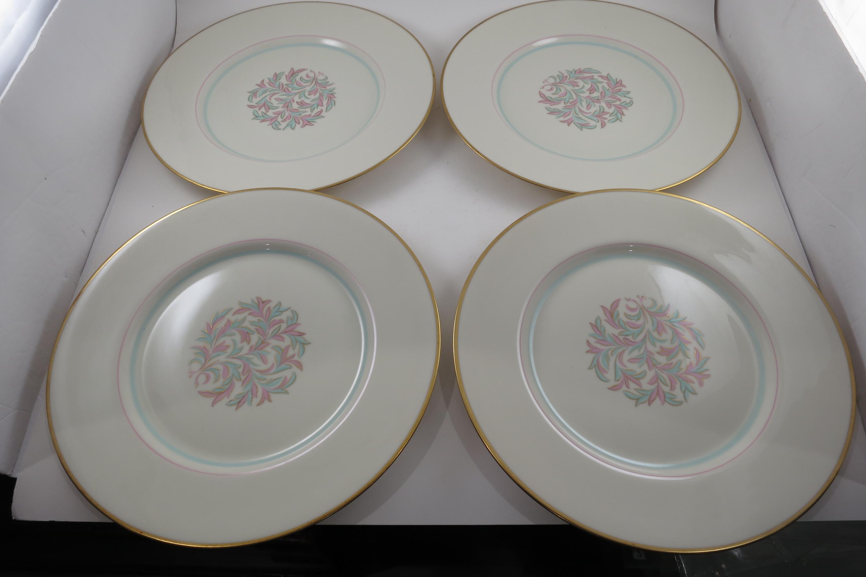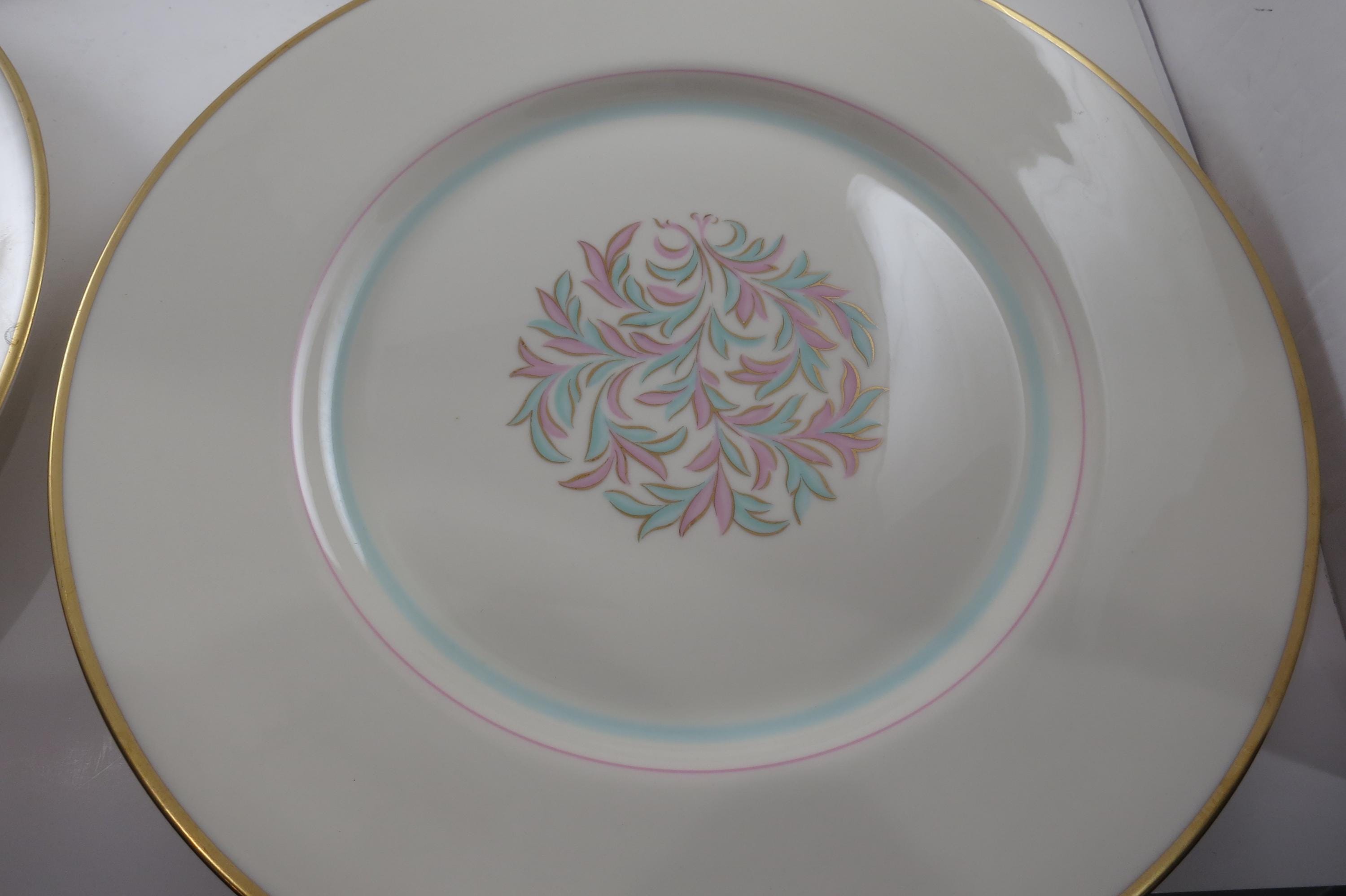 These are in excellent to like new condition. Very nice Turquoise & Pink Leaves Pattern. We have a large set we are listing so please check out our other items!