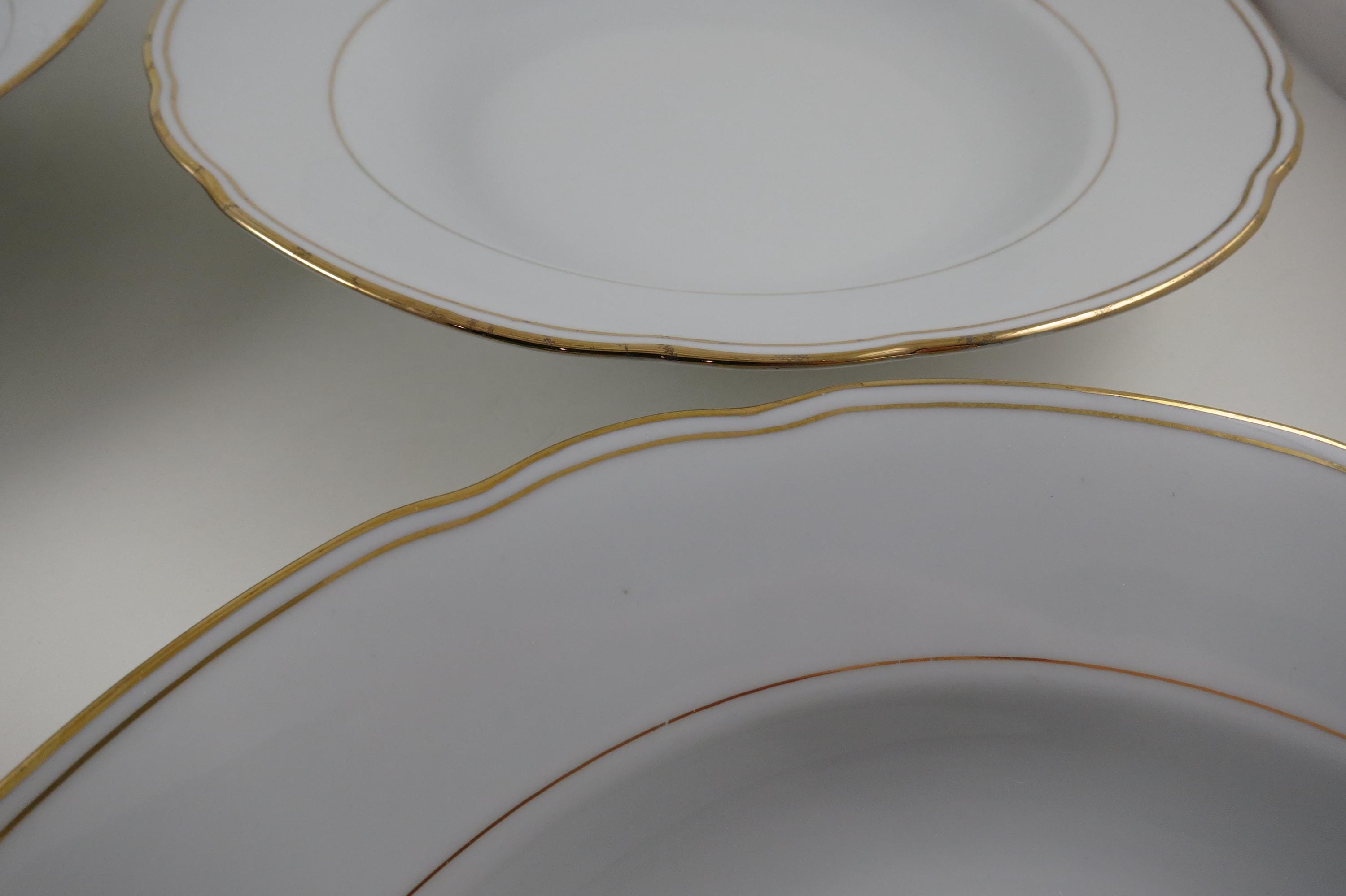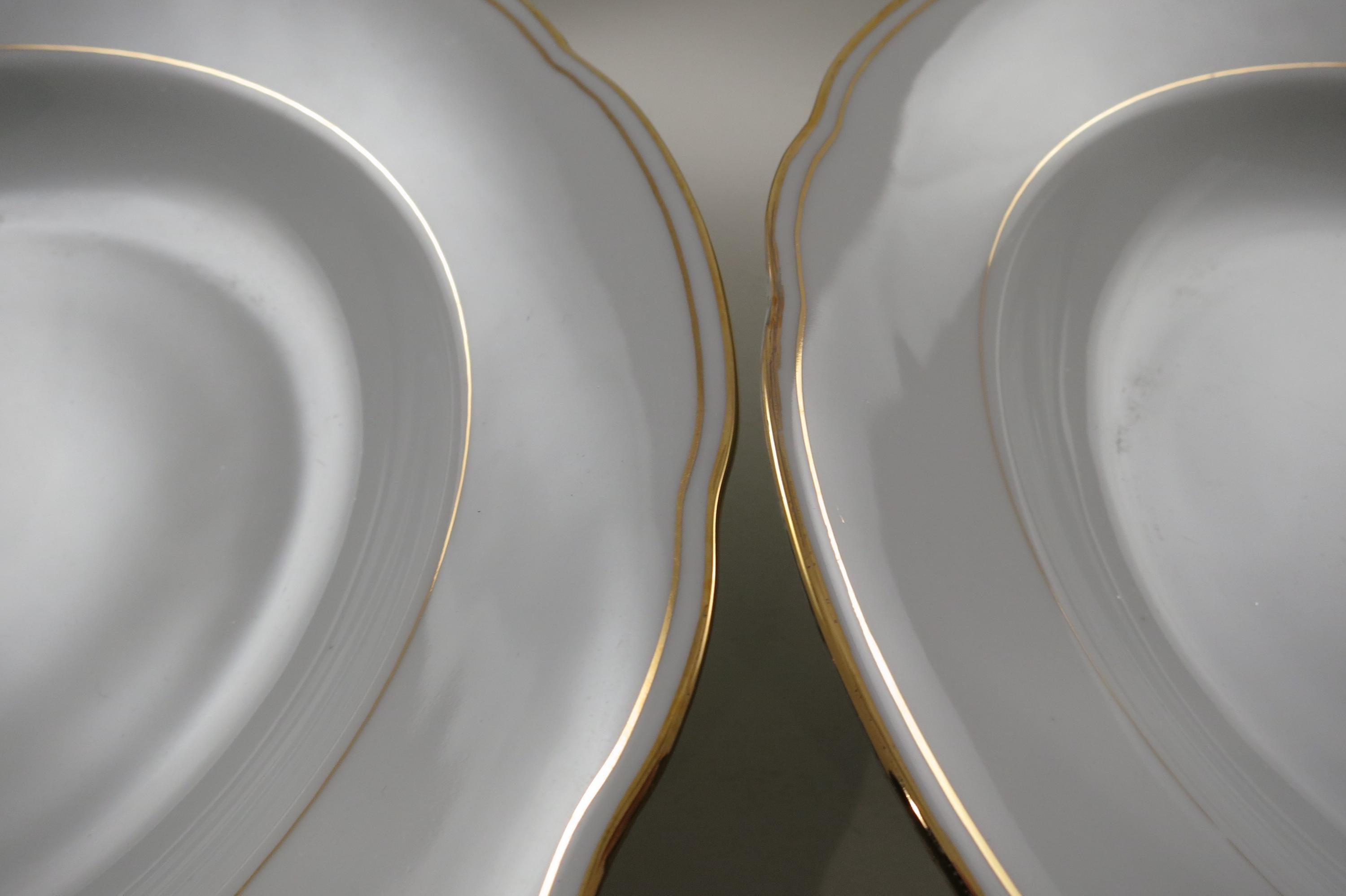 These are fabulous and in excellent condition with no chips, cracks or damages. Beautiful Scalloped pattern with gold rims. Each measures 9 3/8 Inches.