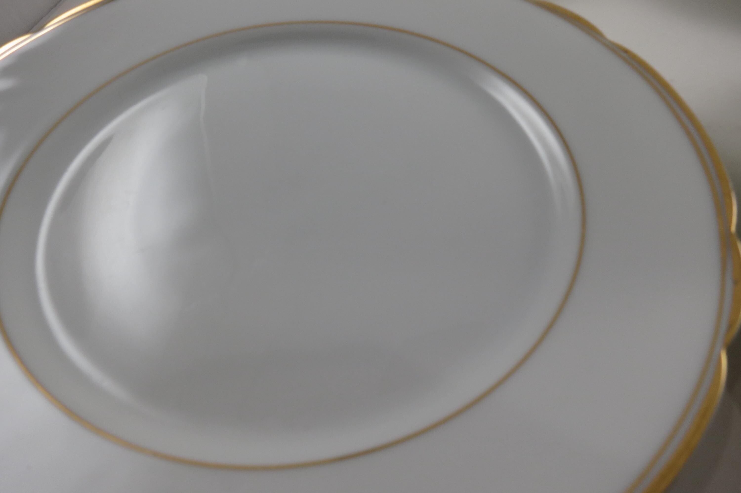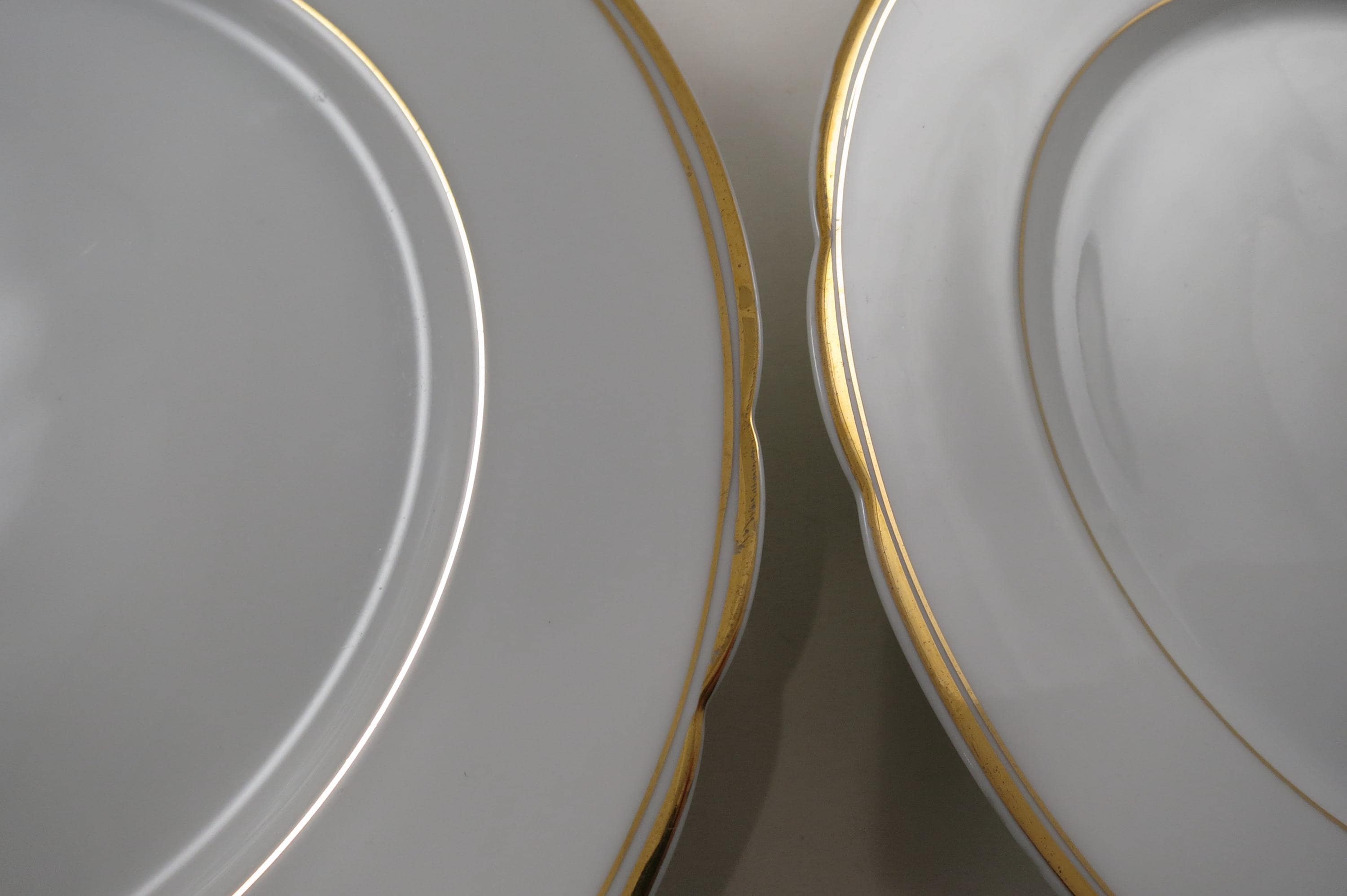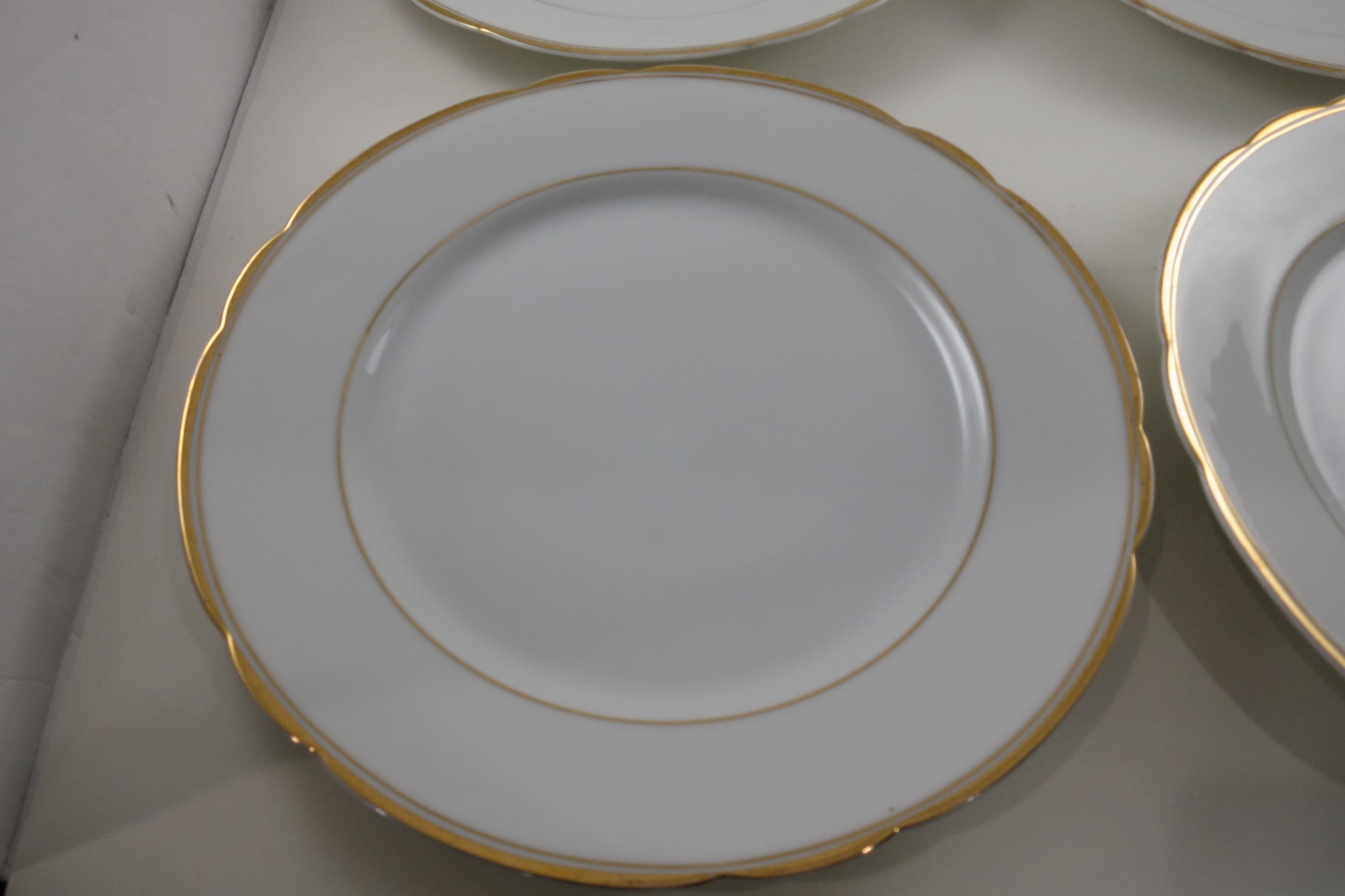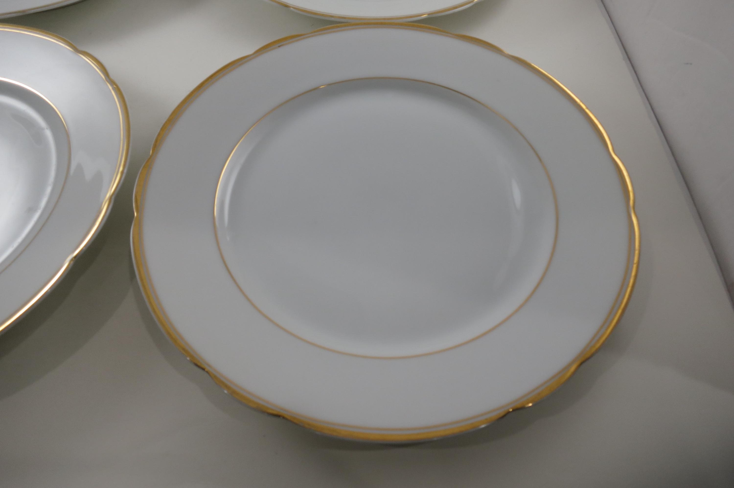 These are fabulous and in excellent condition with no chips, cracks or damages. Beautiful Scalloped pattern with gold rims. Each measures 9 1/2 Inches.