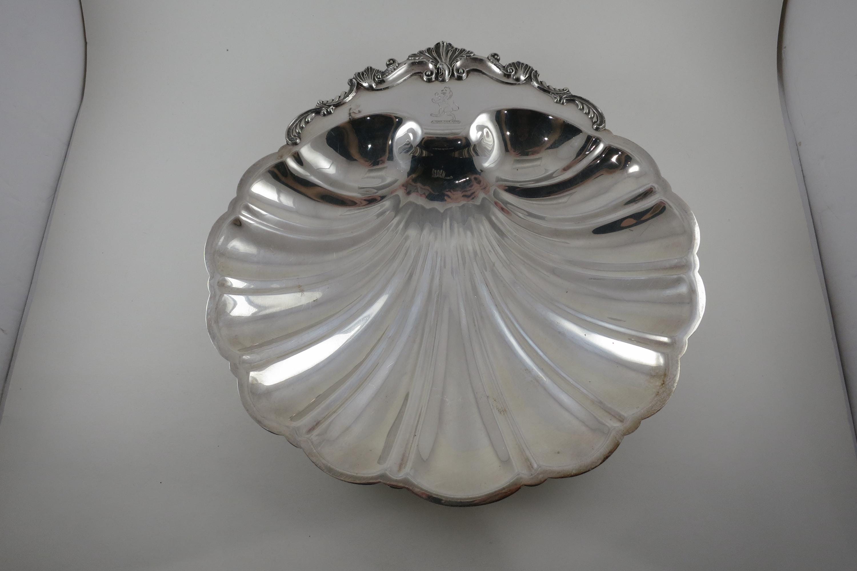 Vintage FB Rogers Silver On Copper 12" Clam shell Scalloped Bowl #1824.