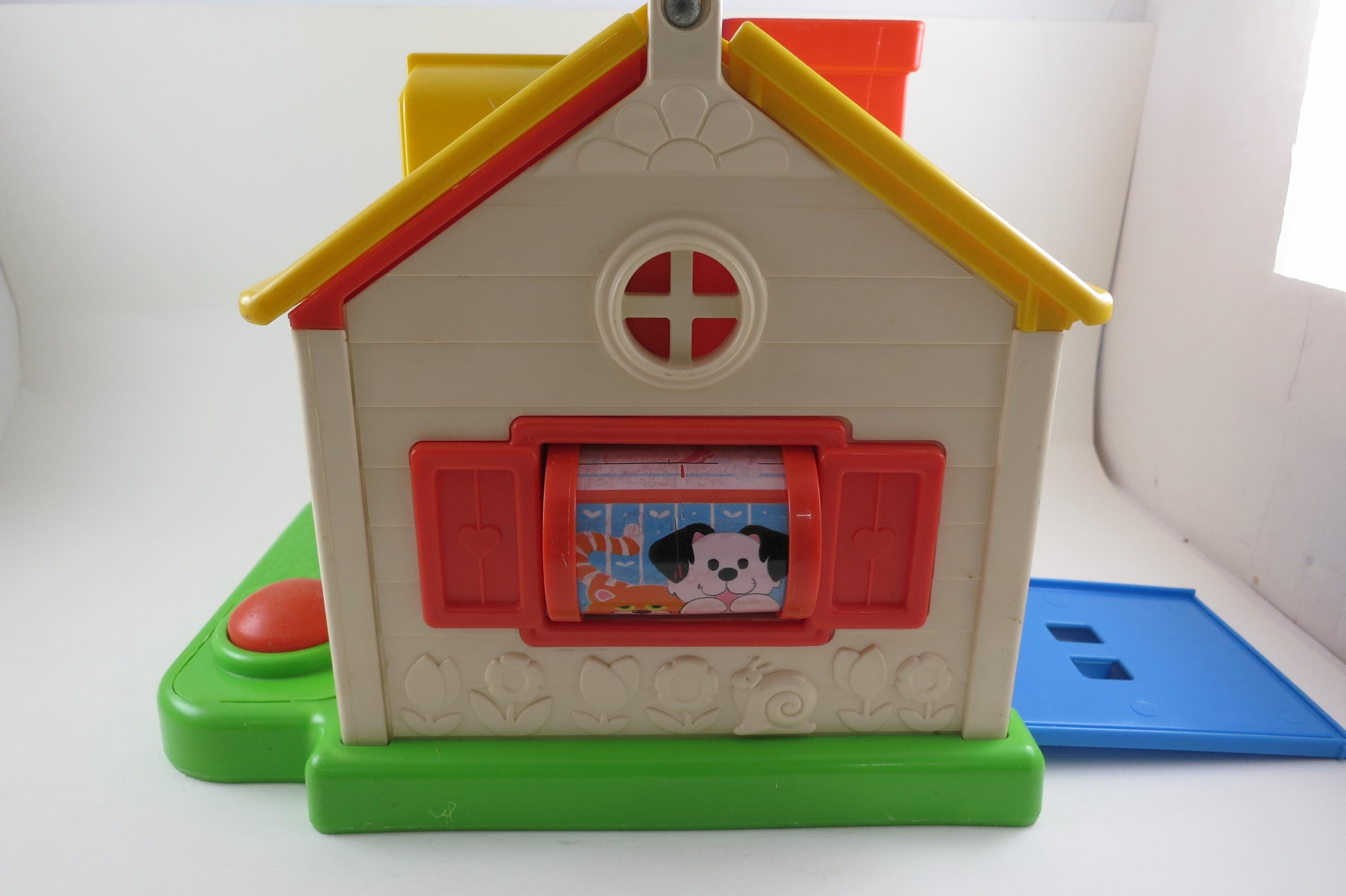 Vintage 1984 Fisher Price Toy House No 136 Discovery Cottage Excellent Condition Original Dog and Vehicle.