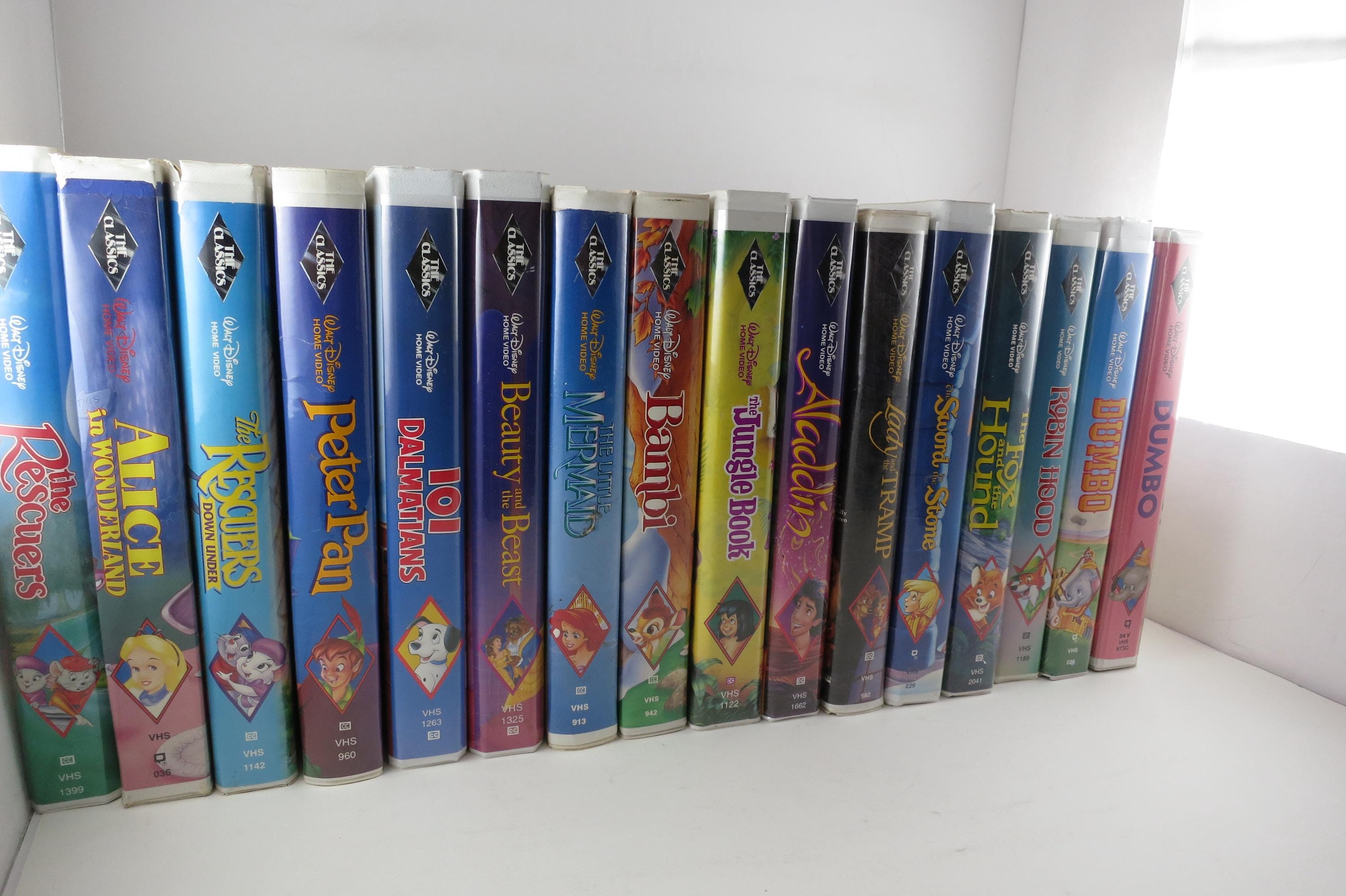 Vintage Walt Disney VHS Tapes Kids Clamshell Covers Black Diamond Edition Sleeping Beauty 101 Dalmatians Fox and Hound Aladdin Beast and More.