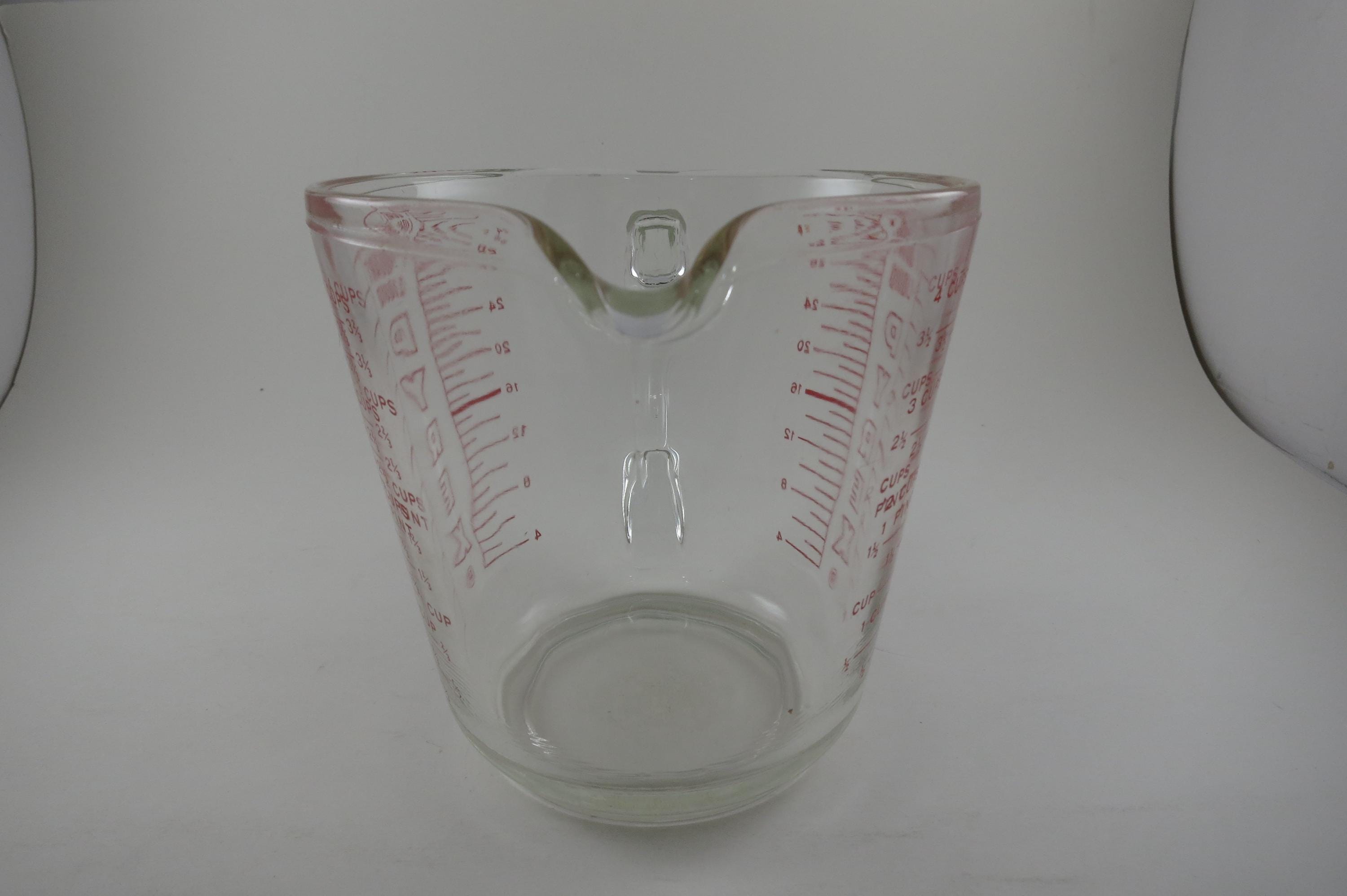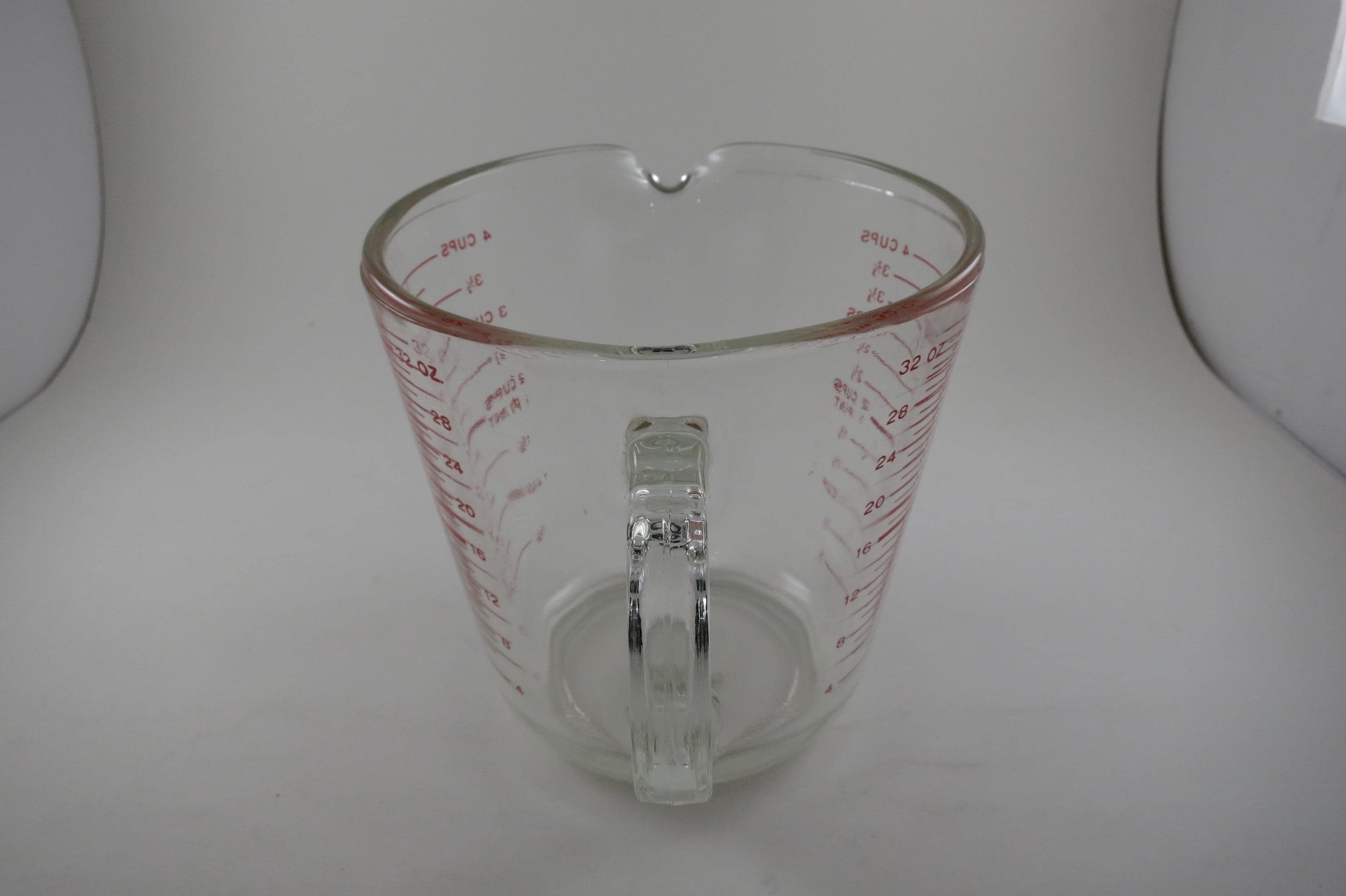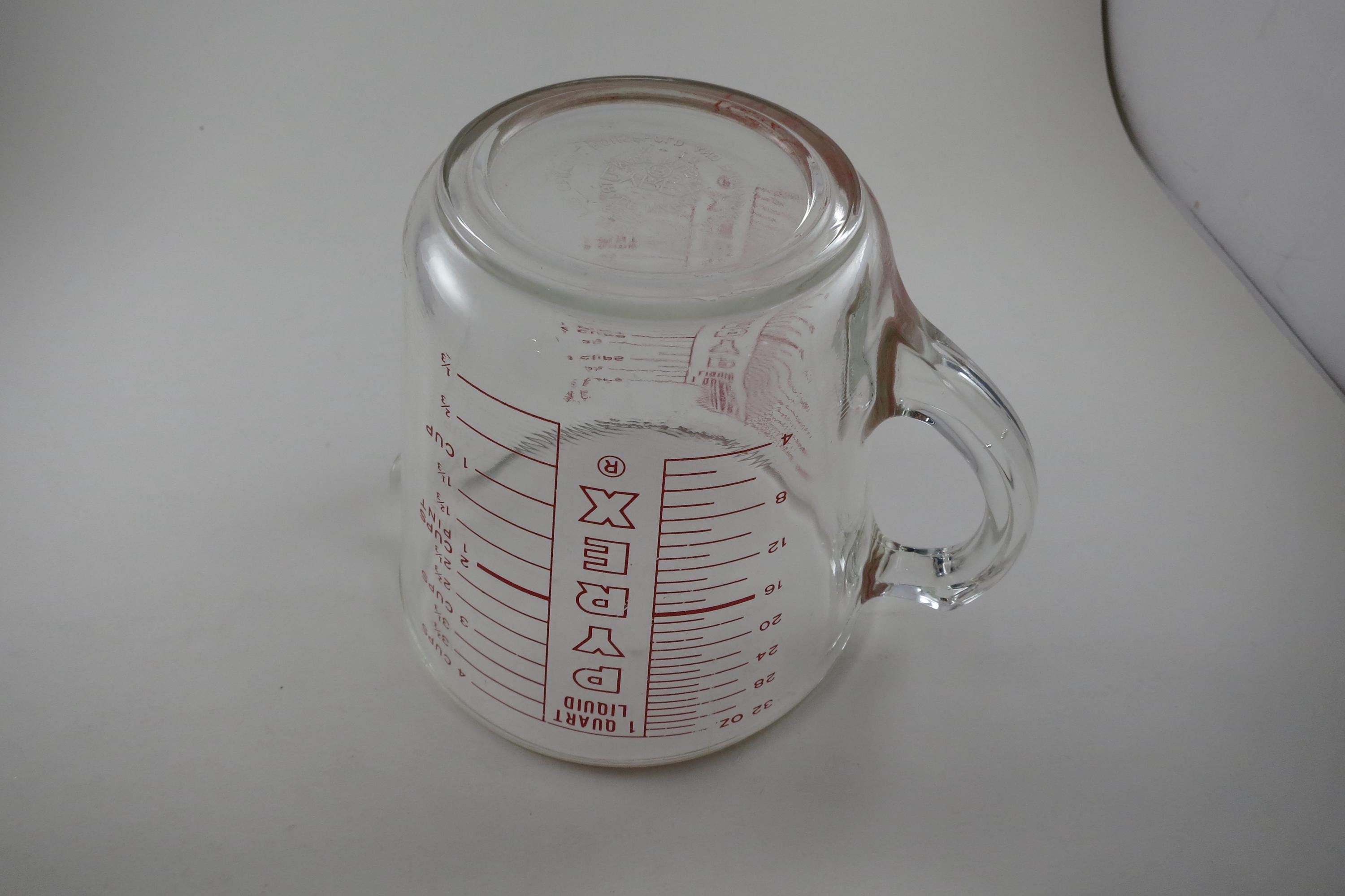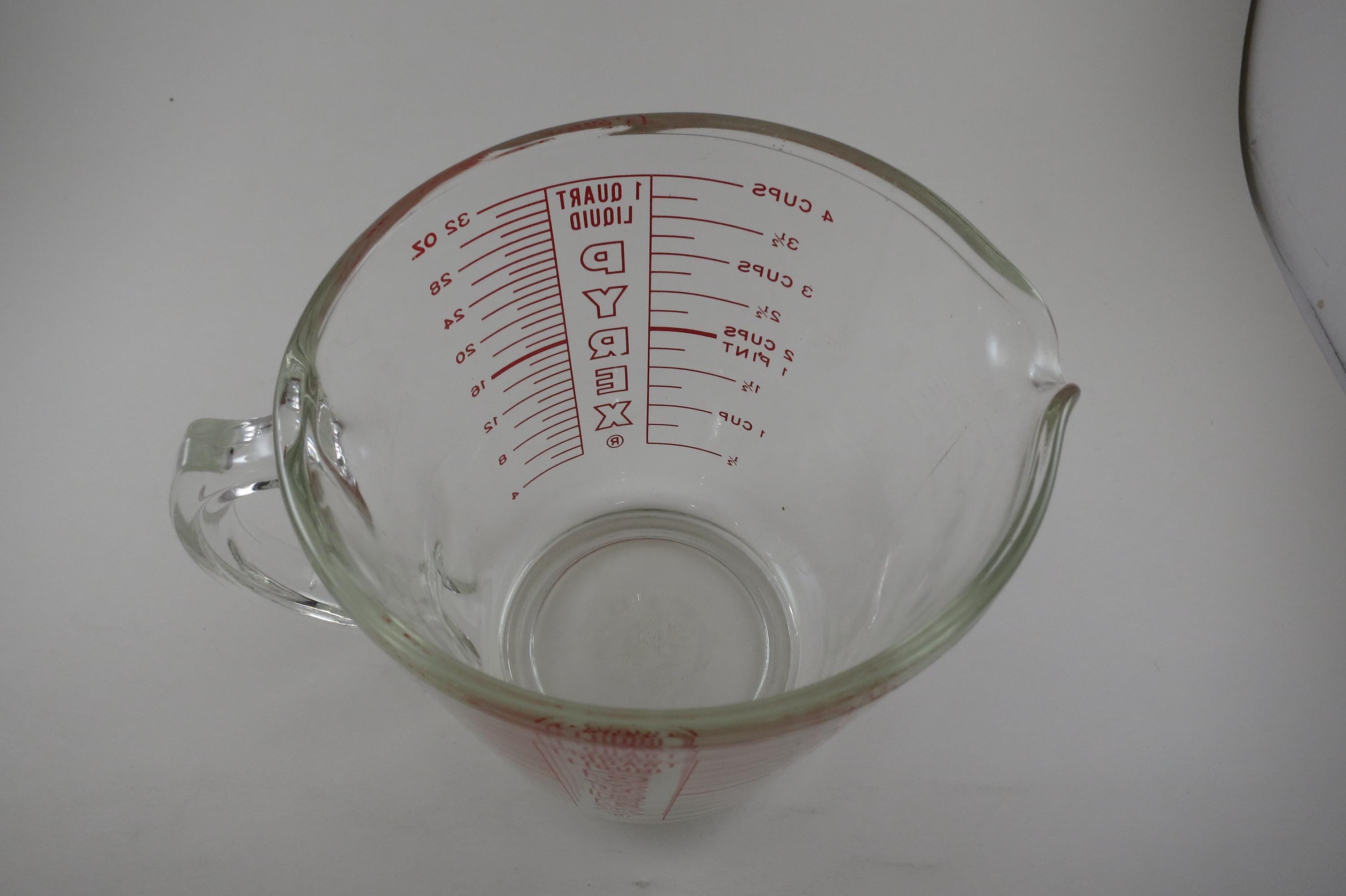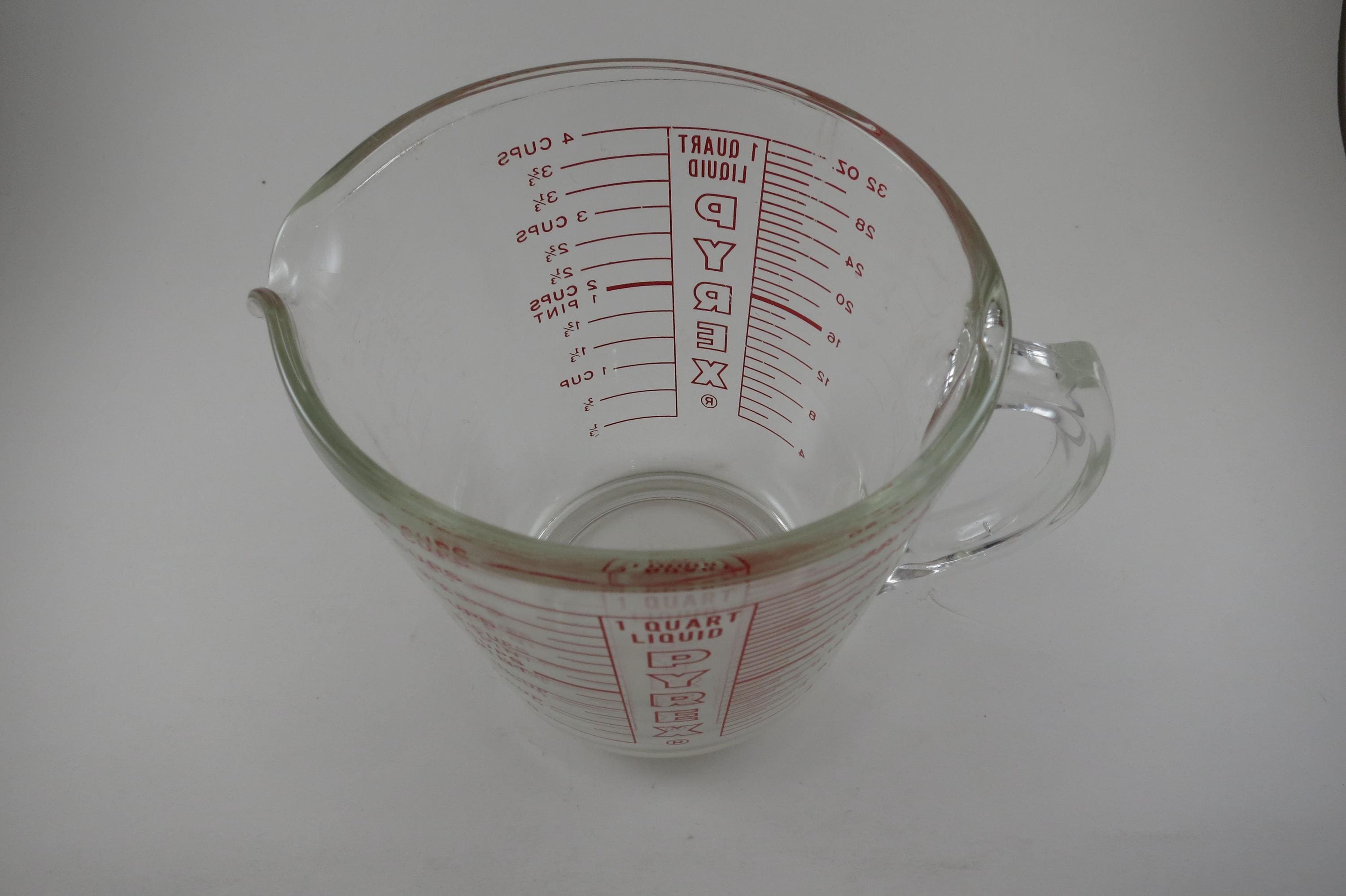 Vintage Pyrex Measuring Cup: 4 Cups 32 Ounce, Red Lettering. Excellent Condition. No chips, cracks or damages.