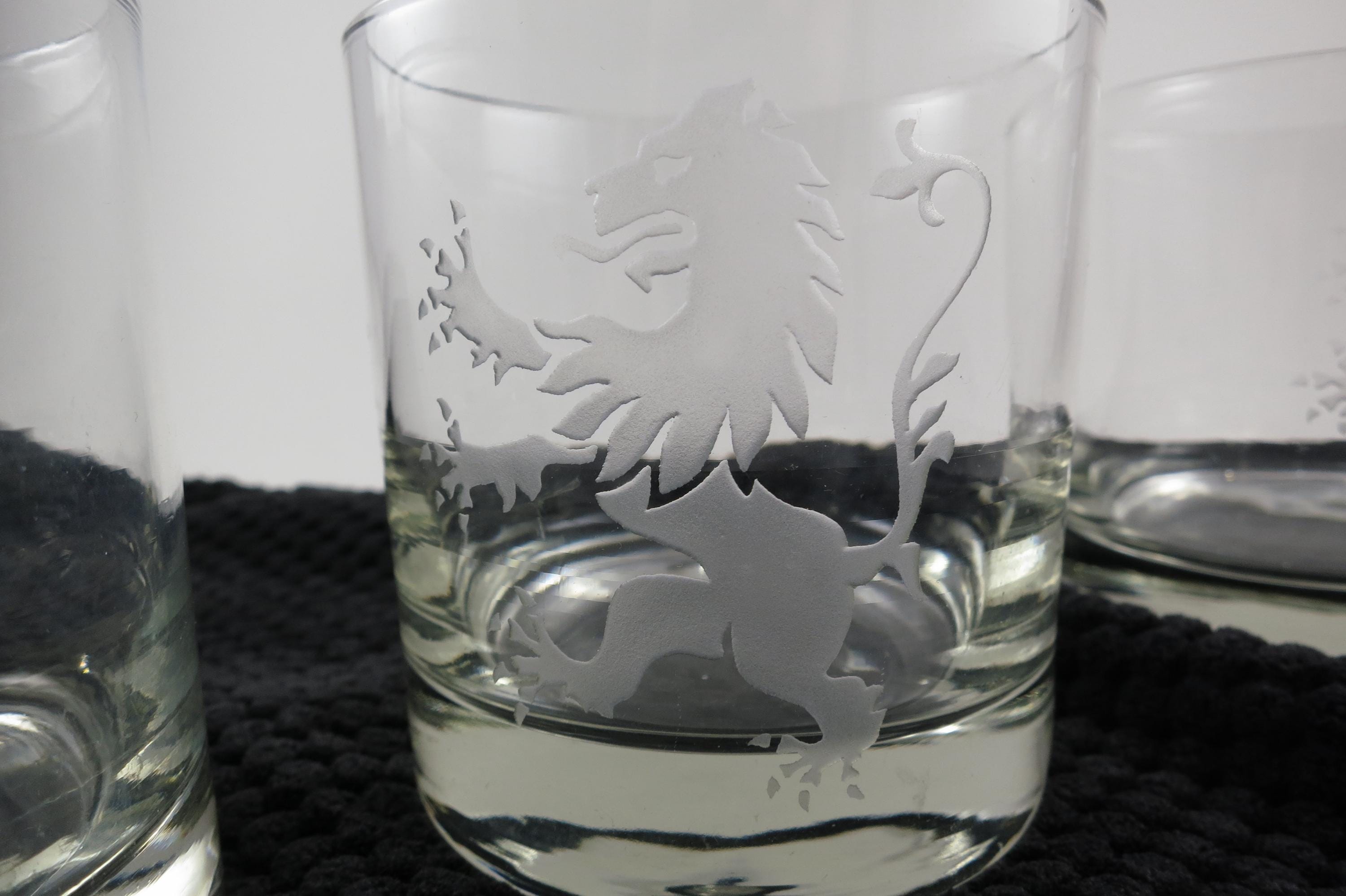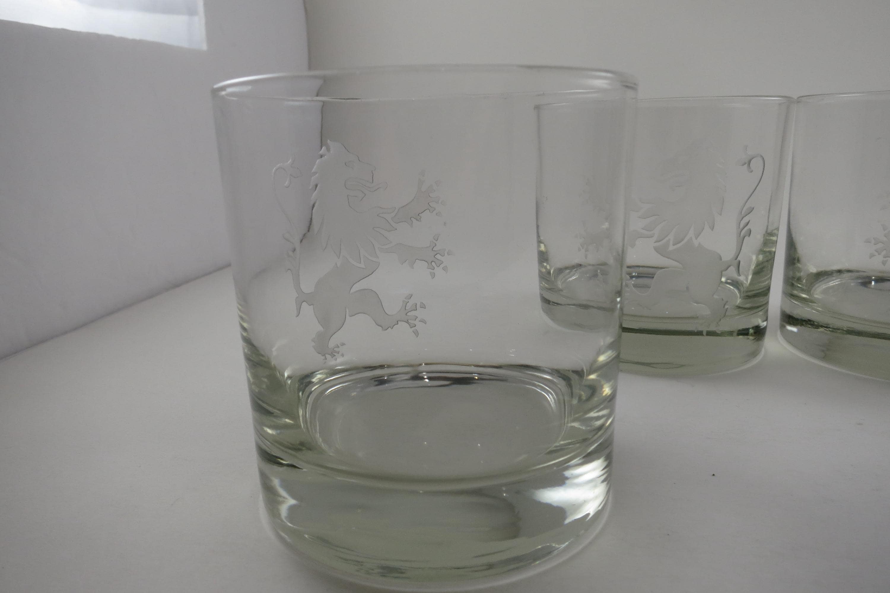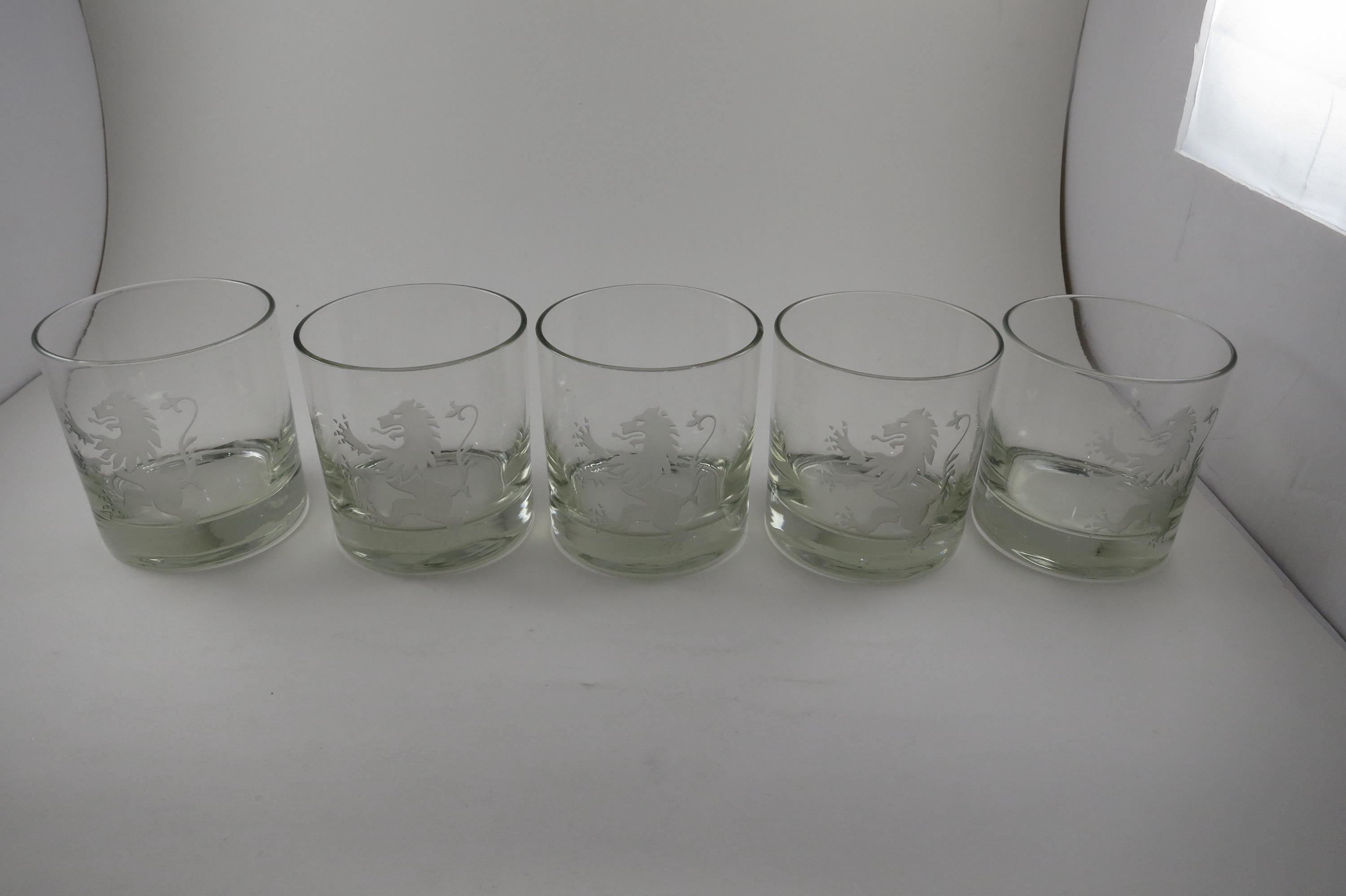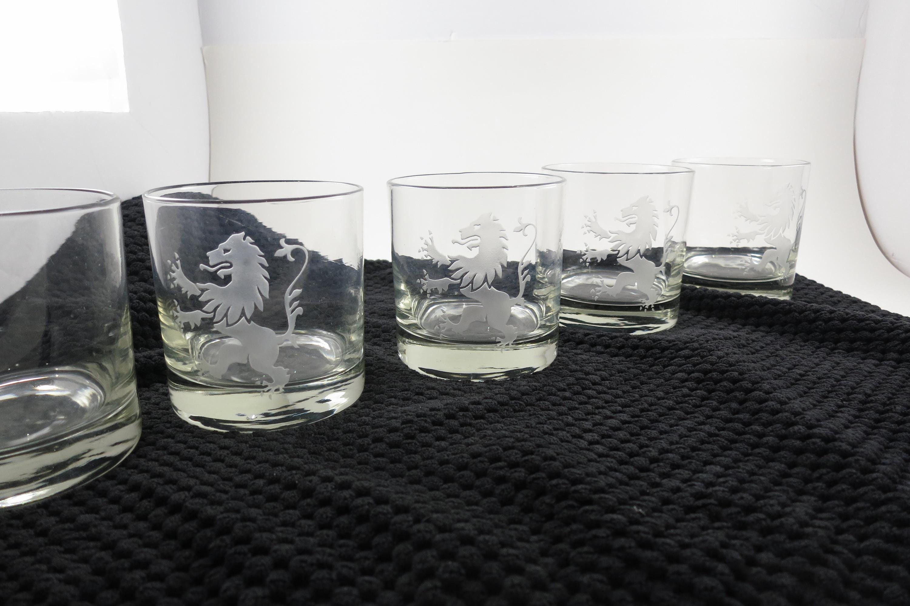Set of Five Vintage Etched Glass Lion Tumblers Whiskey