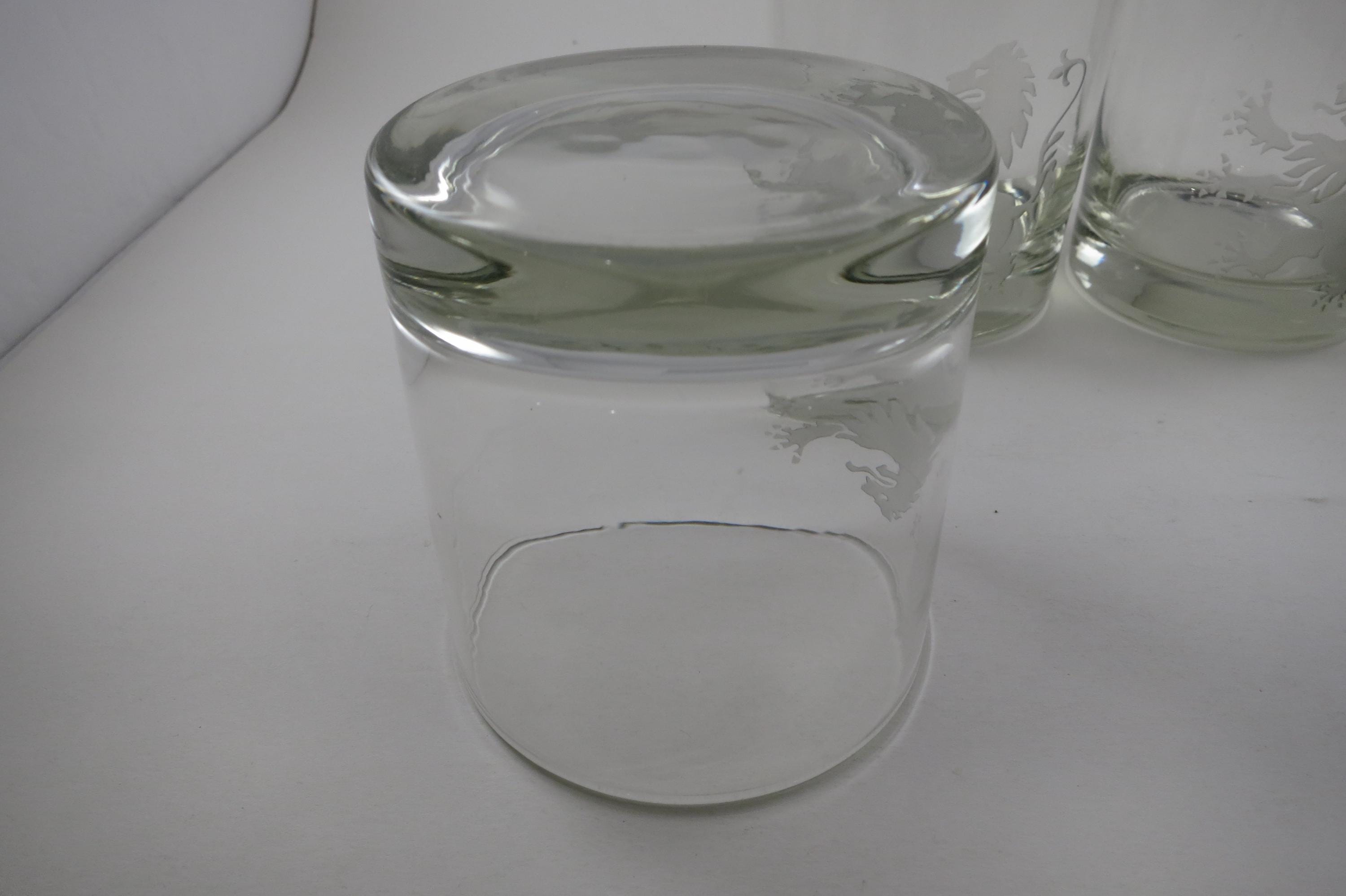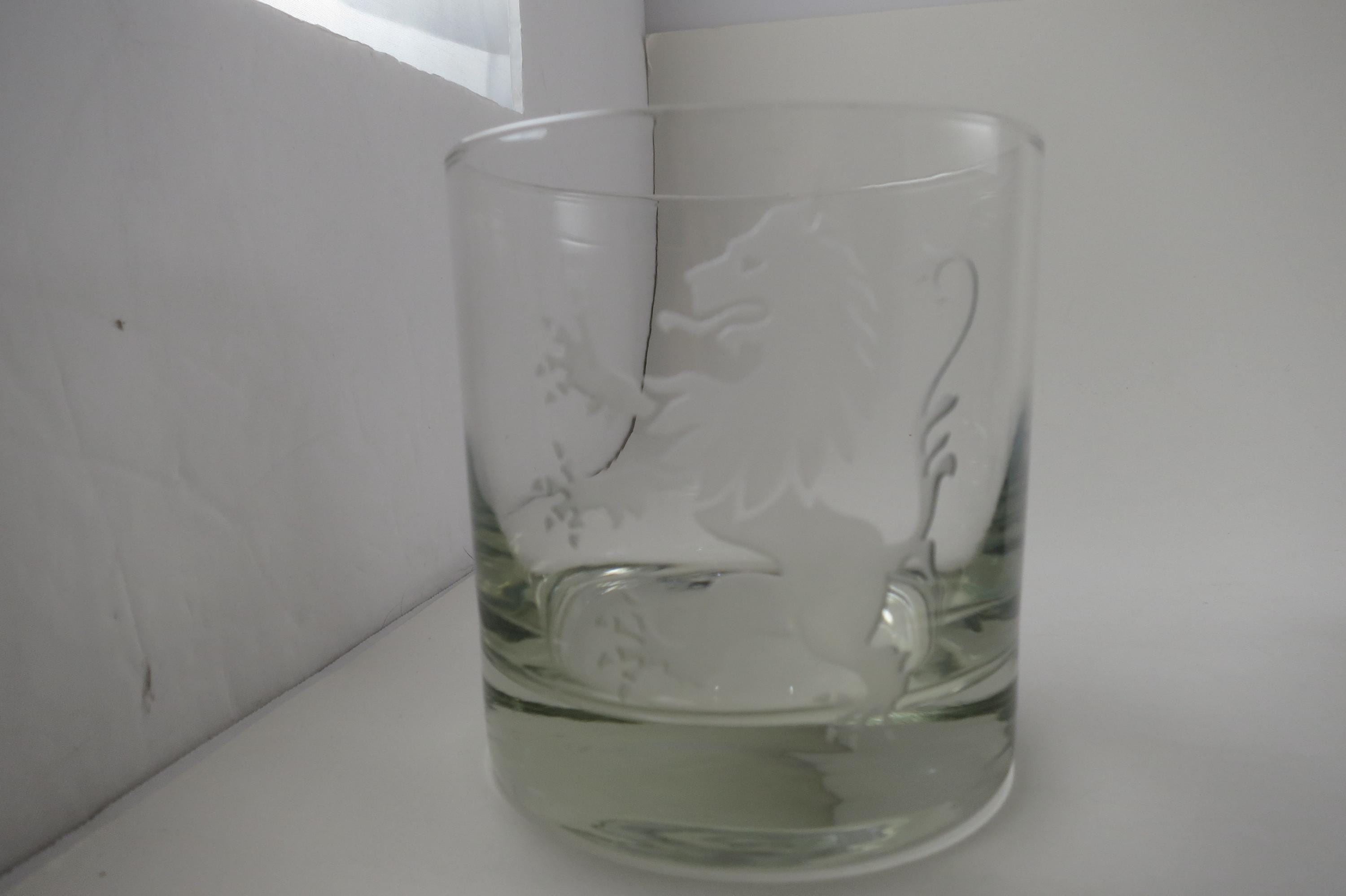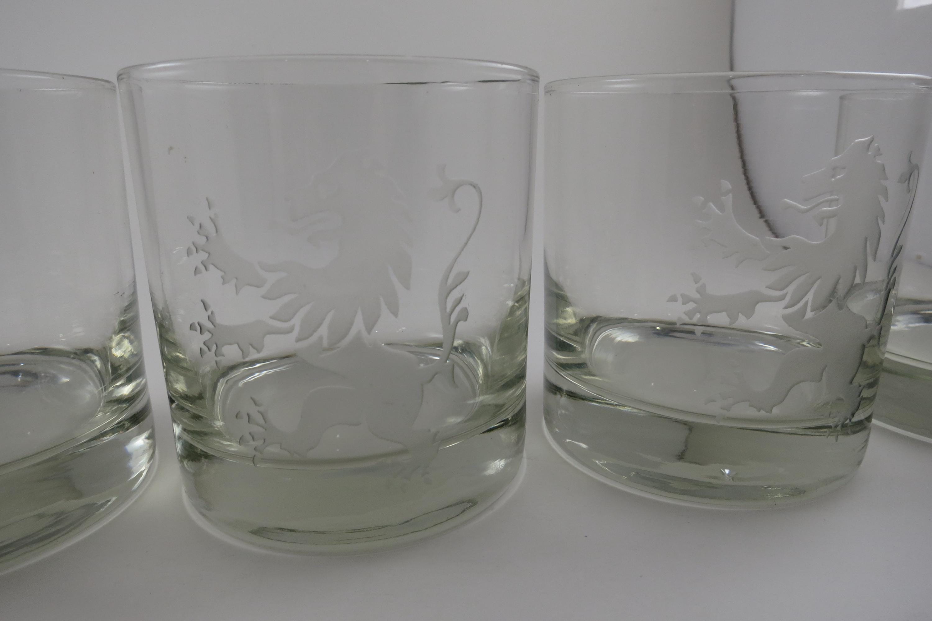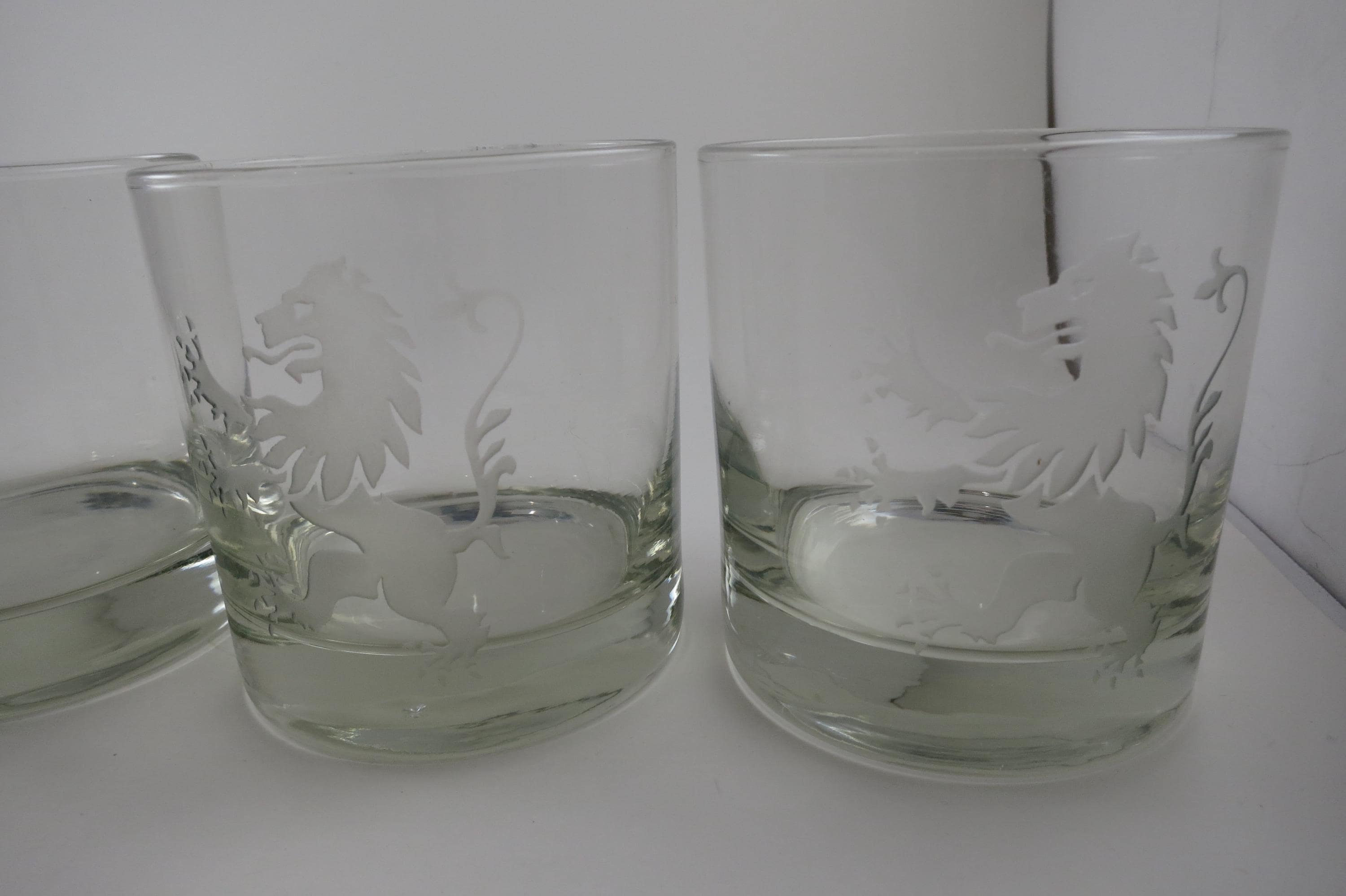 Set of Five Vintage Etched Glass Lion Tumblers Whiskey